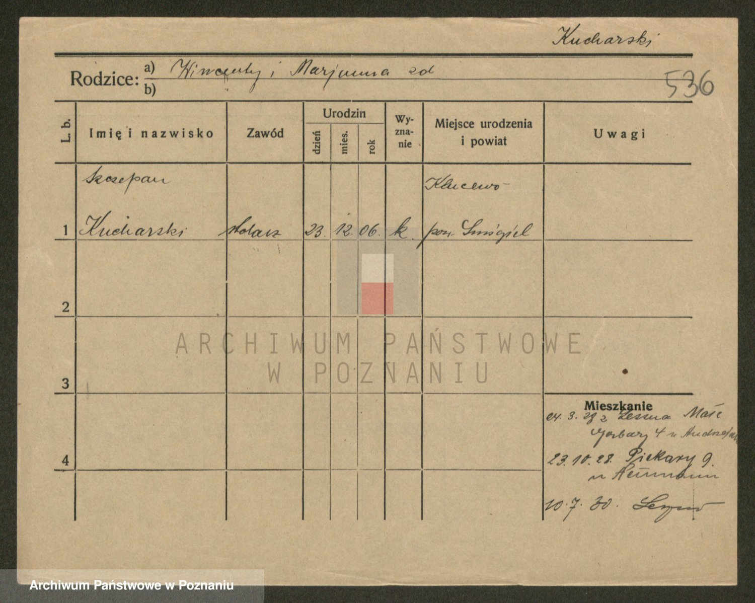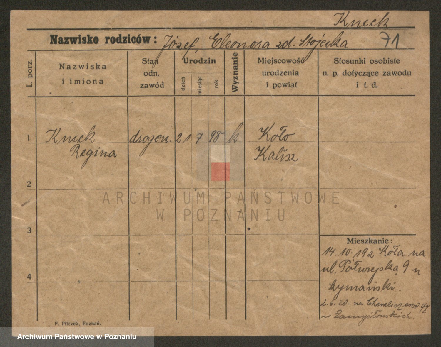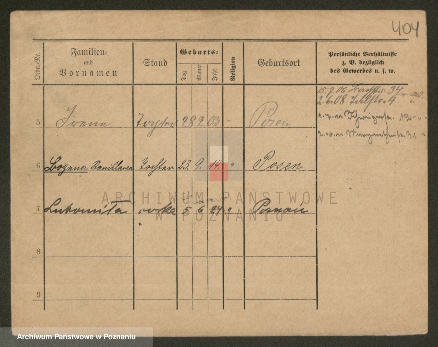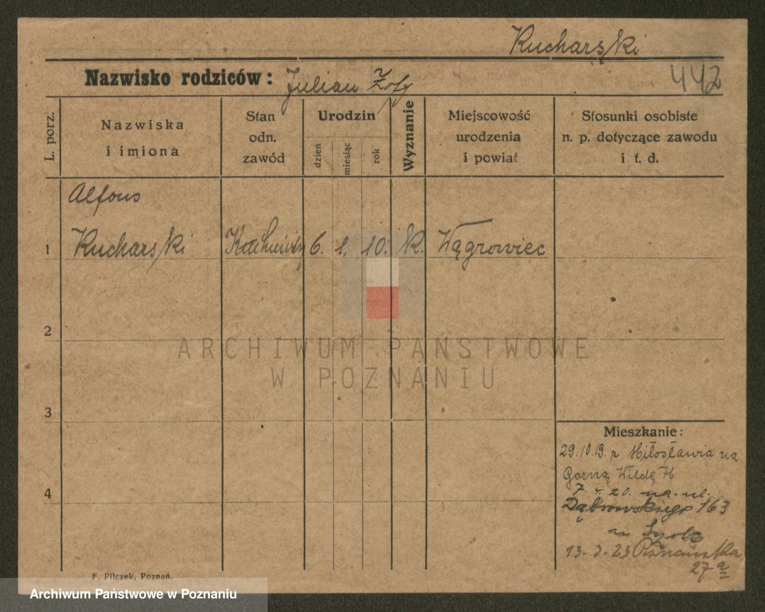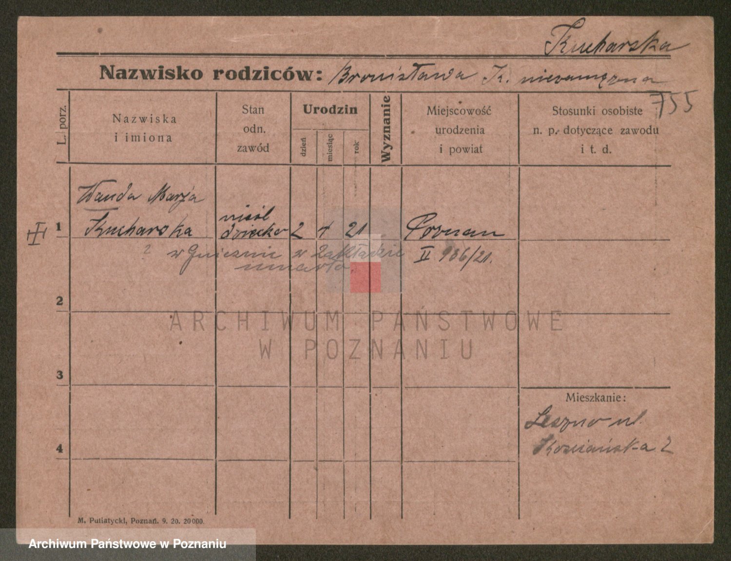 Podgląd karty osobowej dostępny jest po kliknięciu na nazwisko lub ikonkę karty. Można dokonywać powiększenia (ikony na górze) lub przechodzić między kolejnymi skanami (strzałki po bokach).