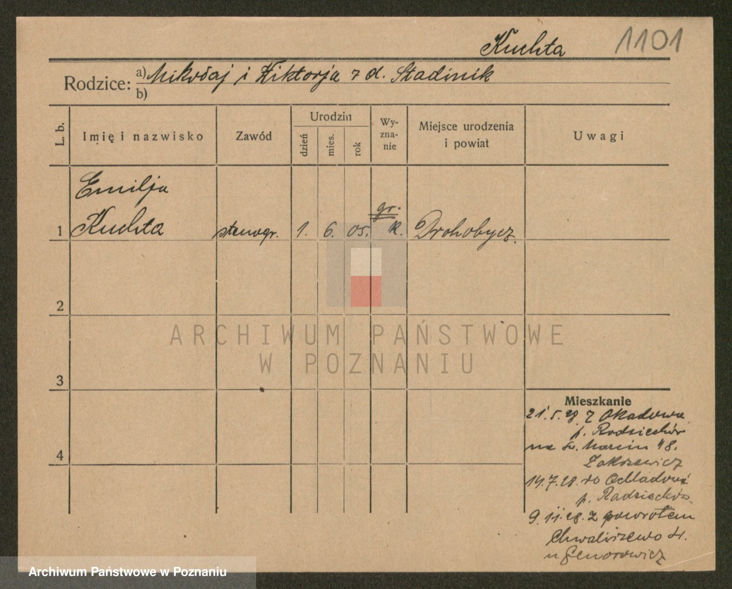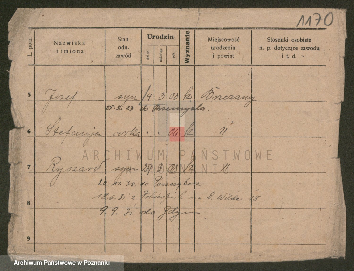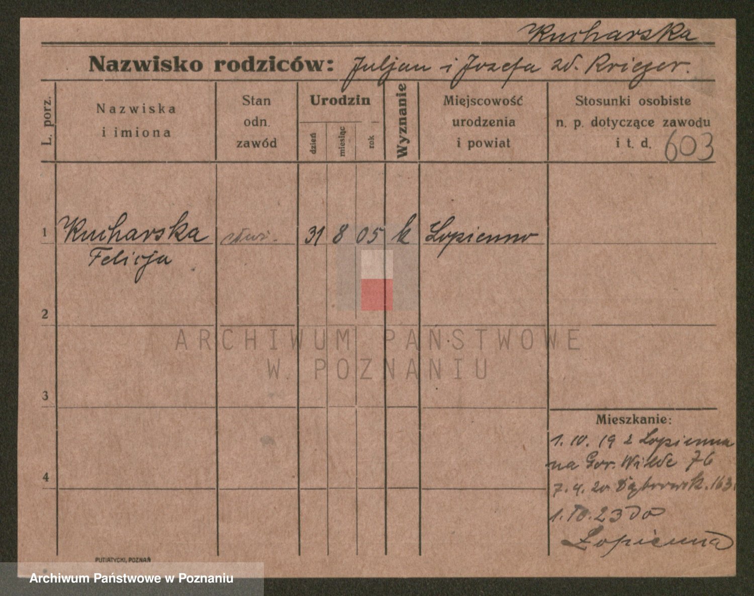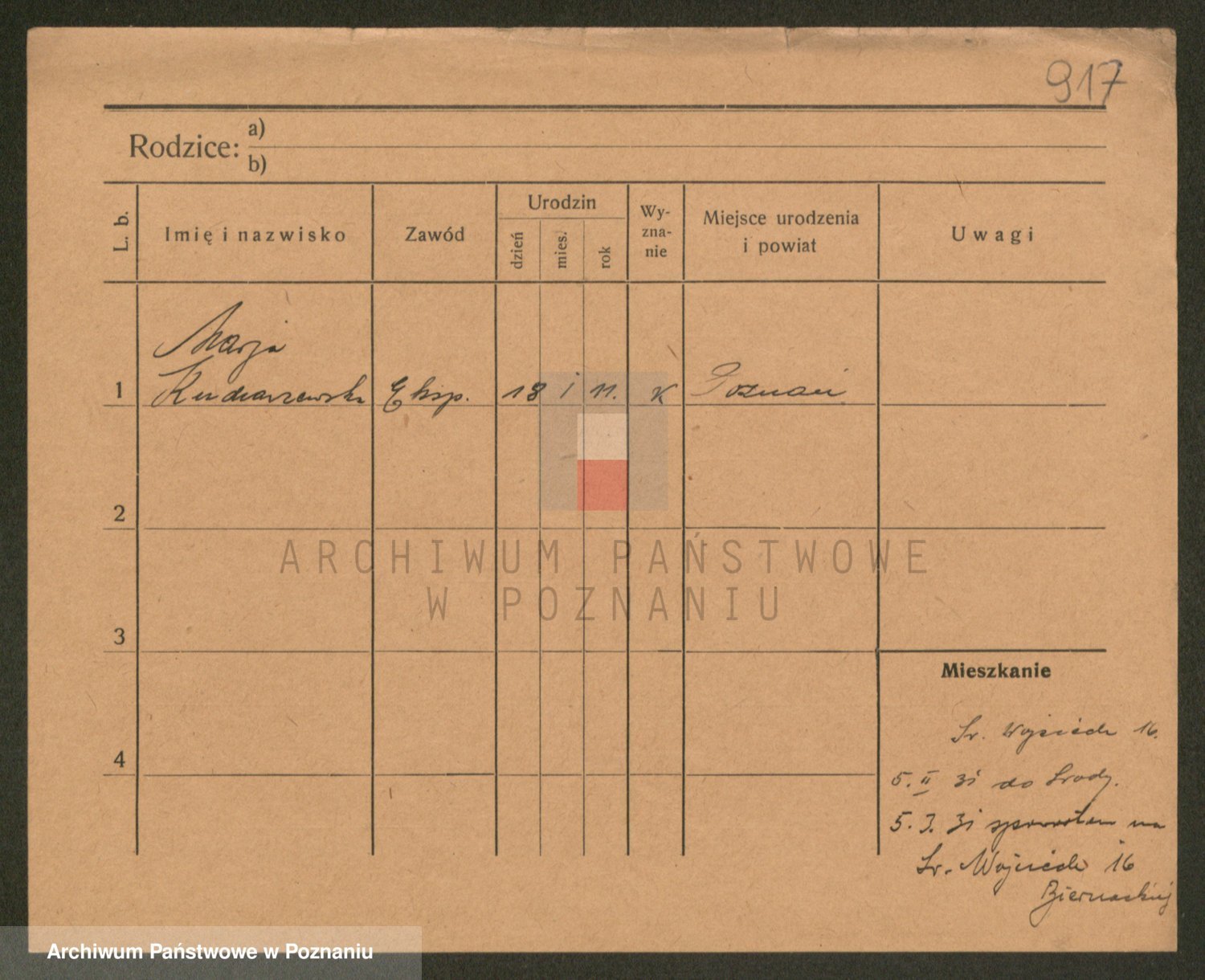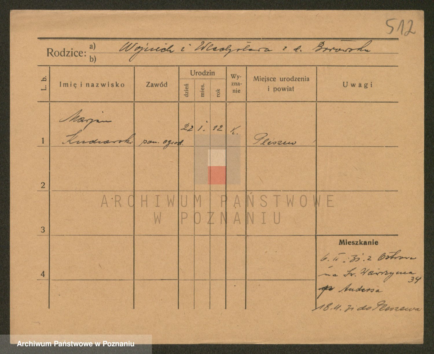 Podgląd karty osobowej dostępny jest po kliknięciu na nazwisko lub ikonkę karty. Można dokonywać powiększenia (ikony na górze) lub przechodzić między kolejnymi skanami (strzałki po bokach).