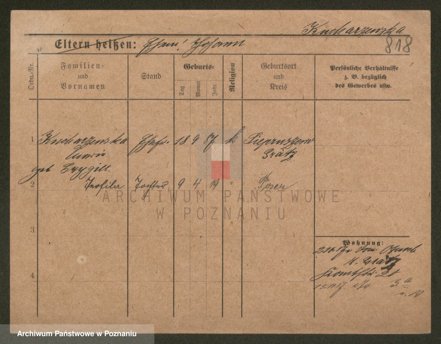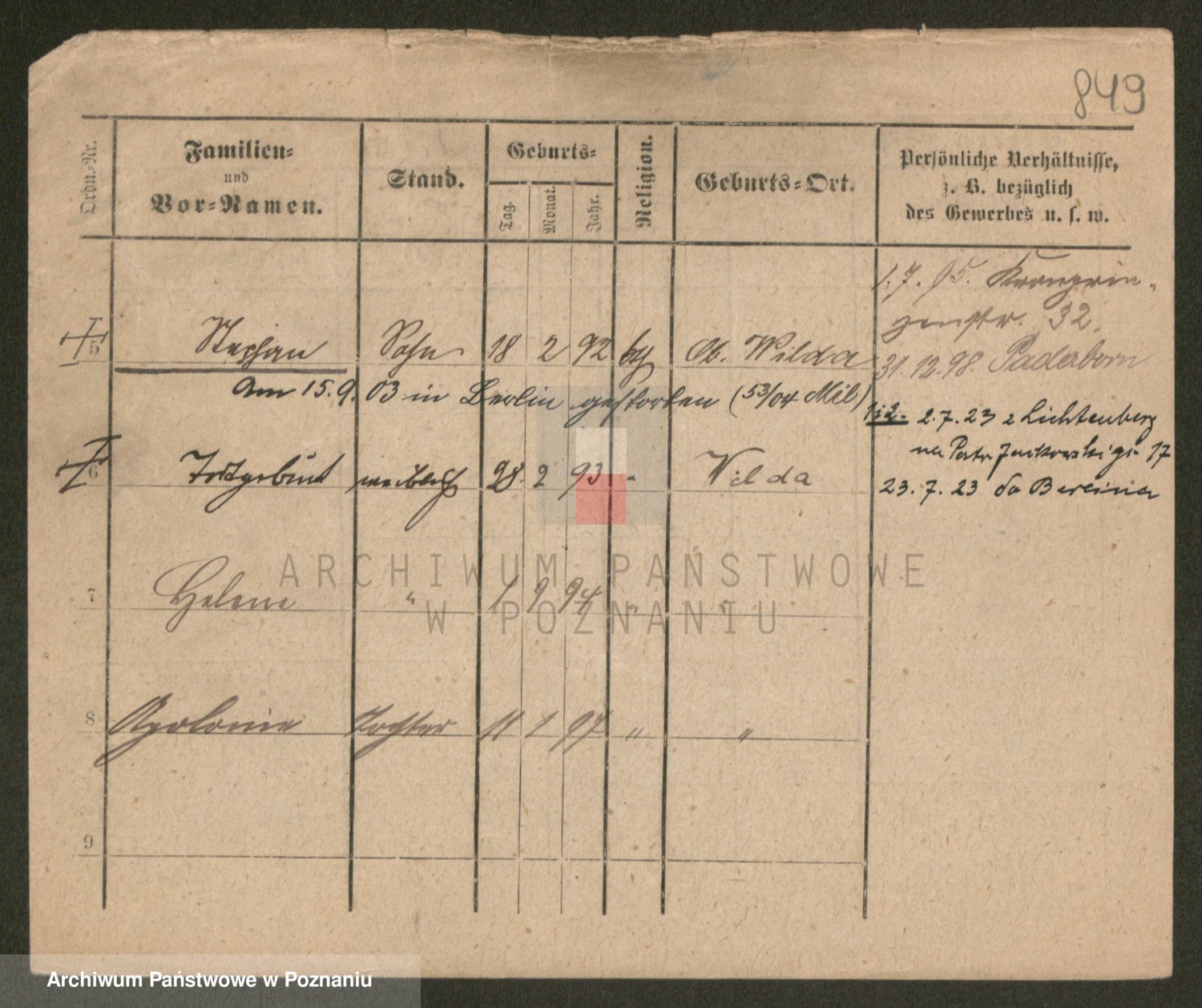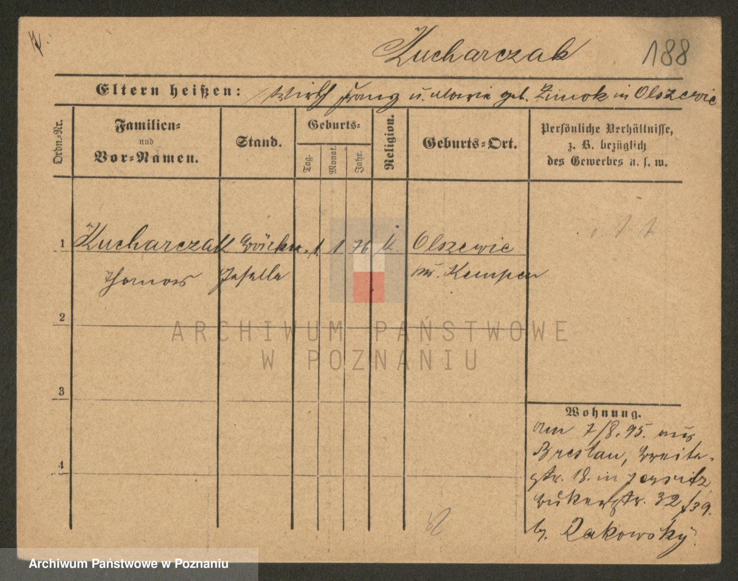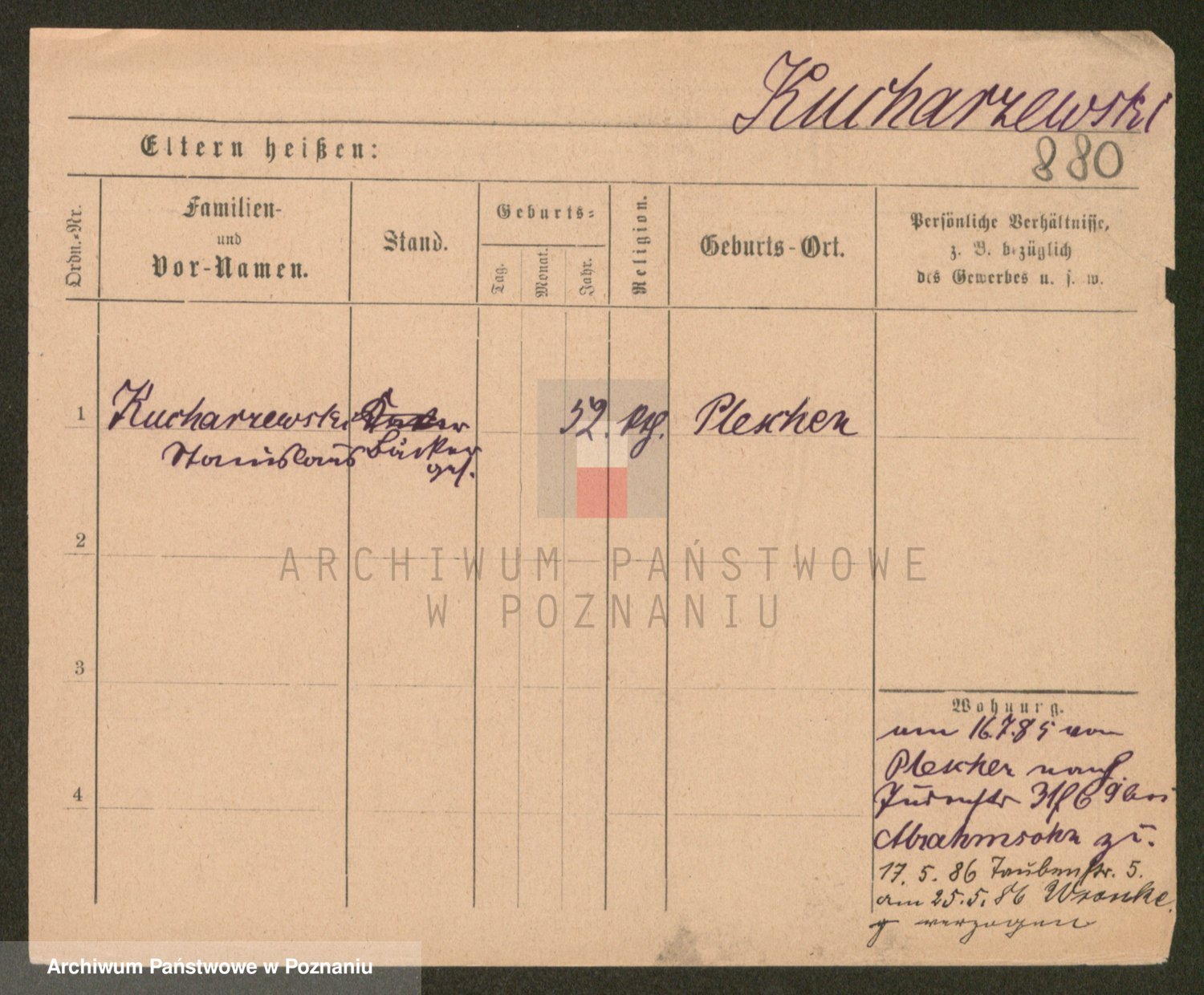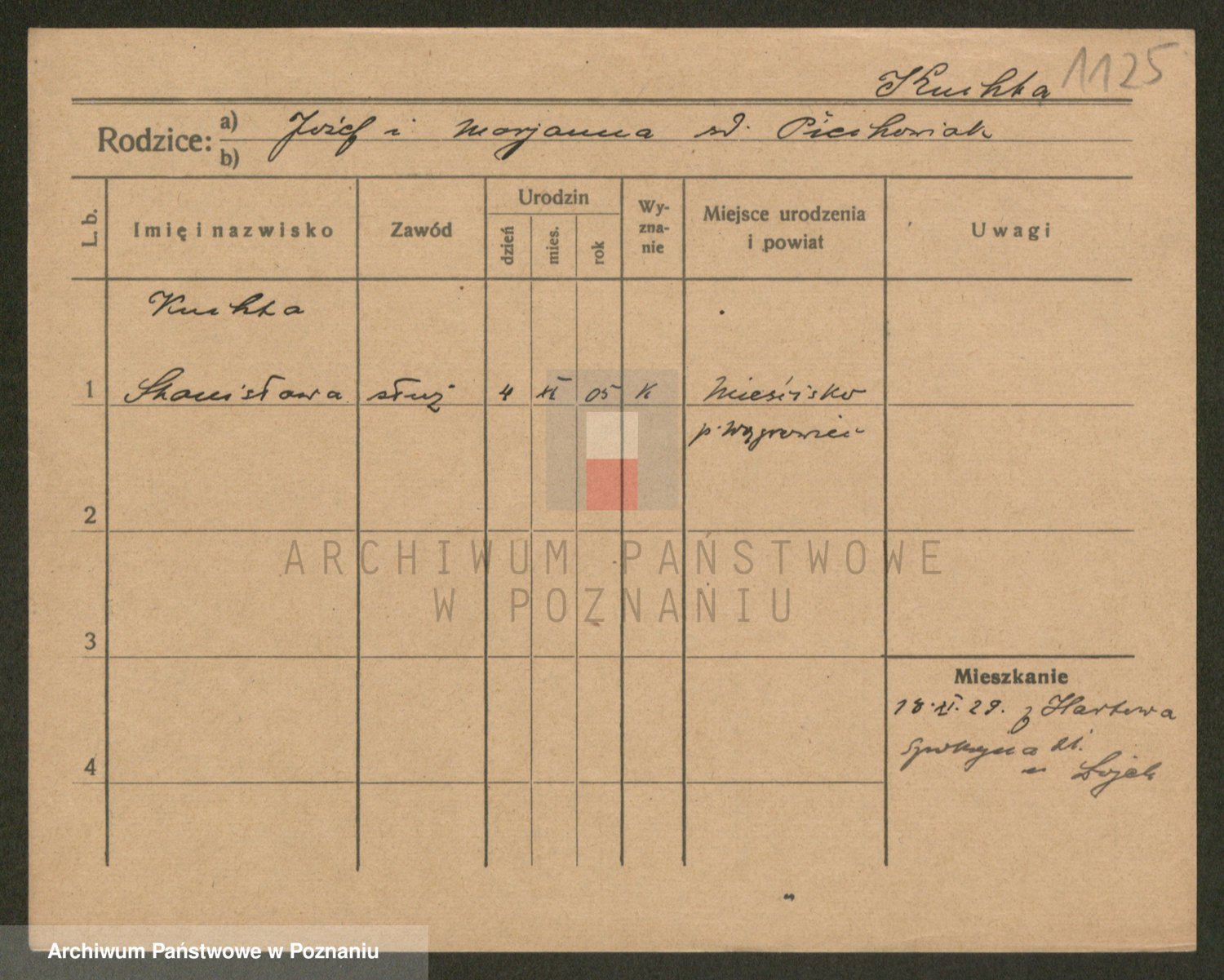 Podgląd karty osobowej dostępny jest po kliknięciu na nazwisko lub ikonkę karty. Można dokonywać powiększenia (ikony na górze) lub przechodzić między kolejnymi skanami (strzałki po bokach).