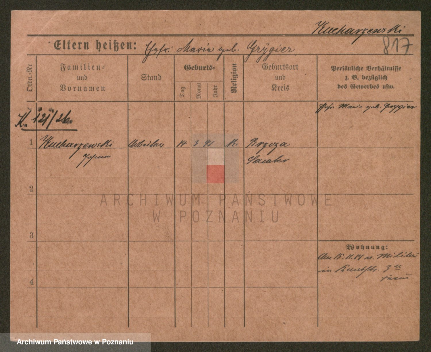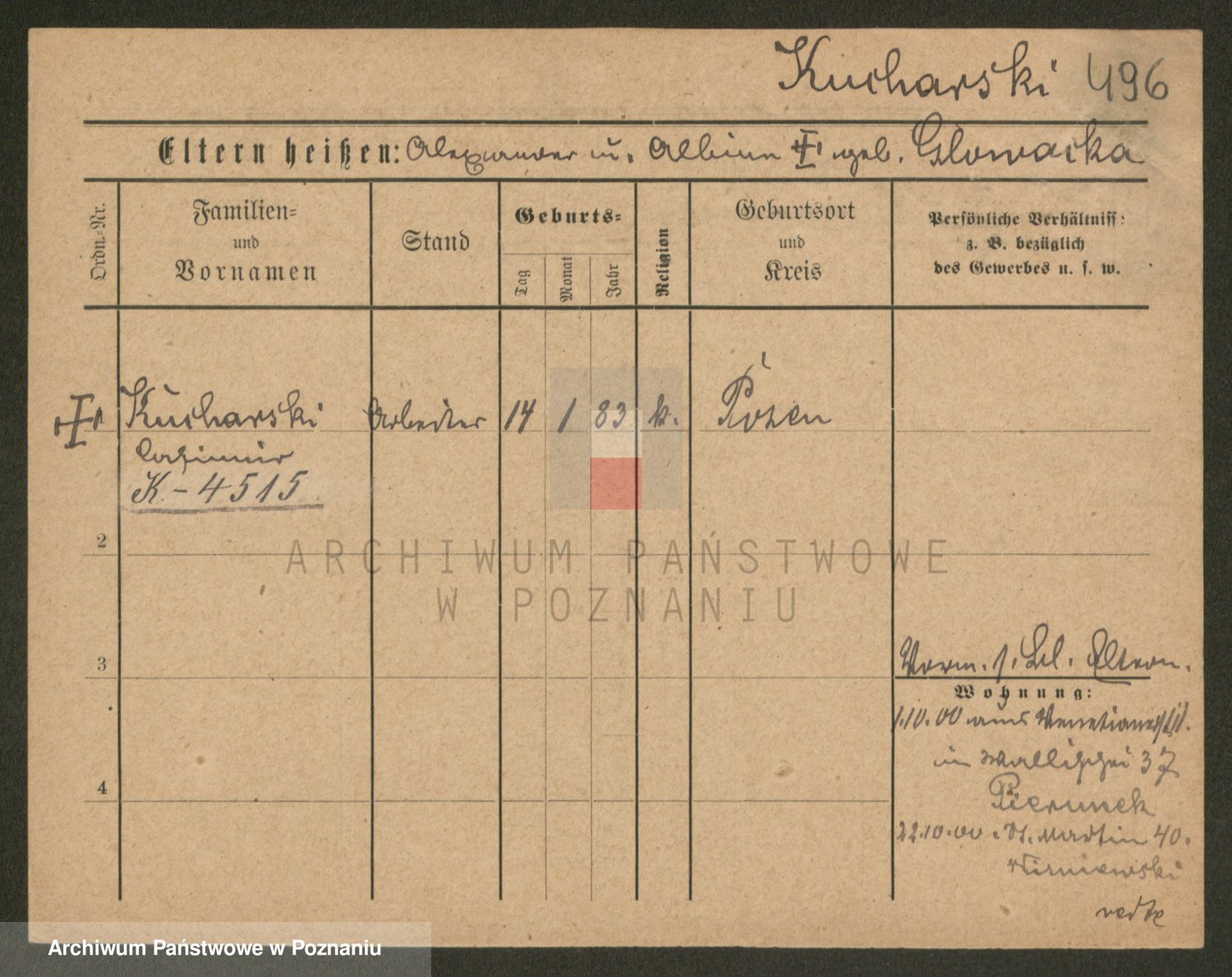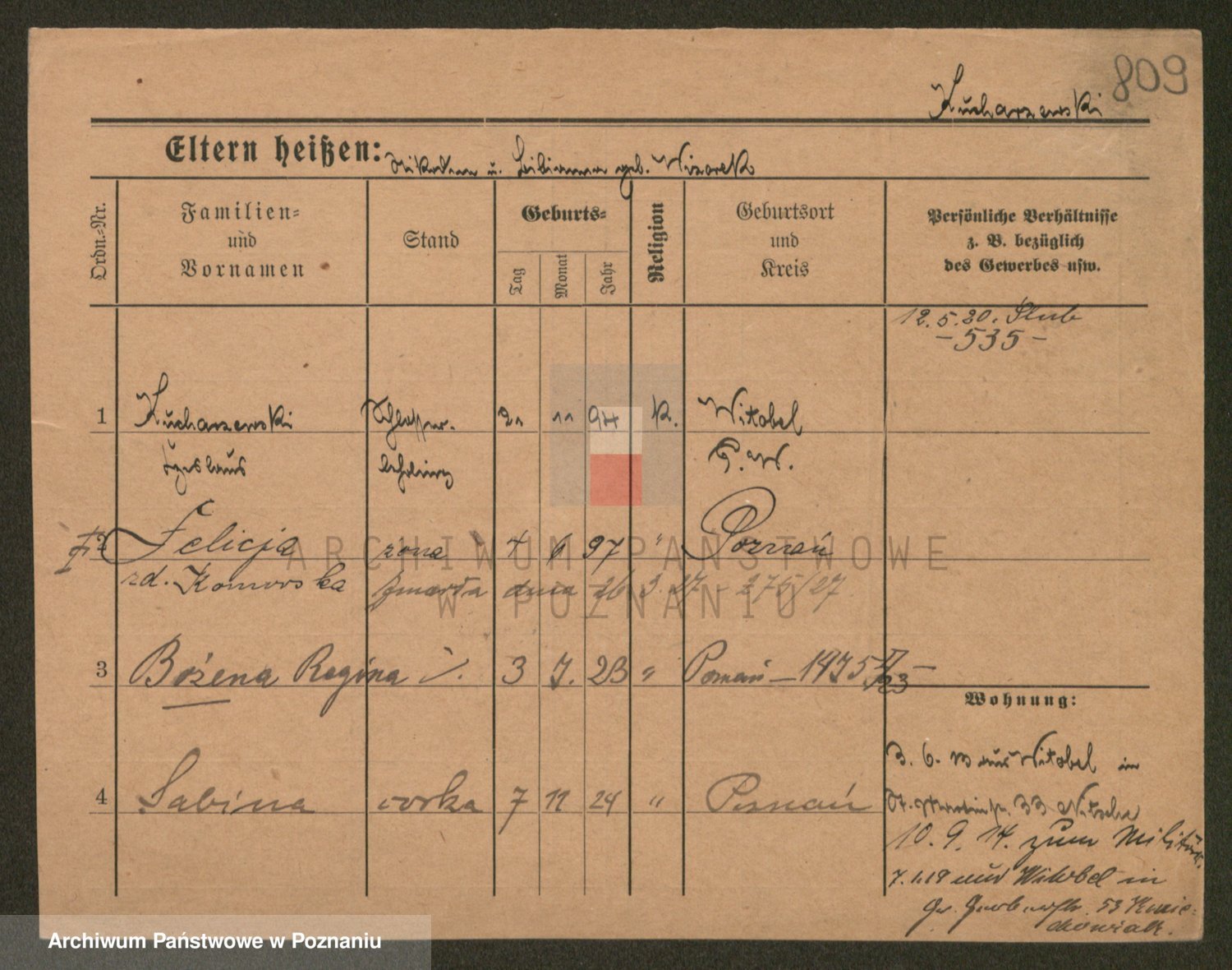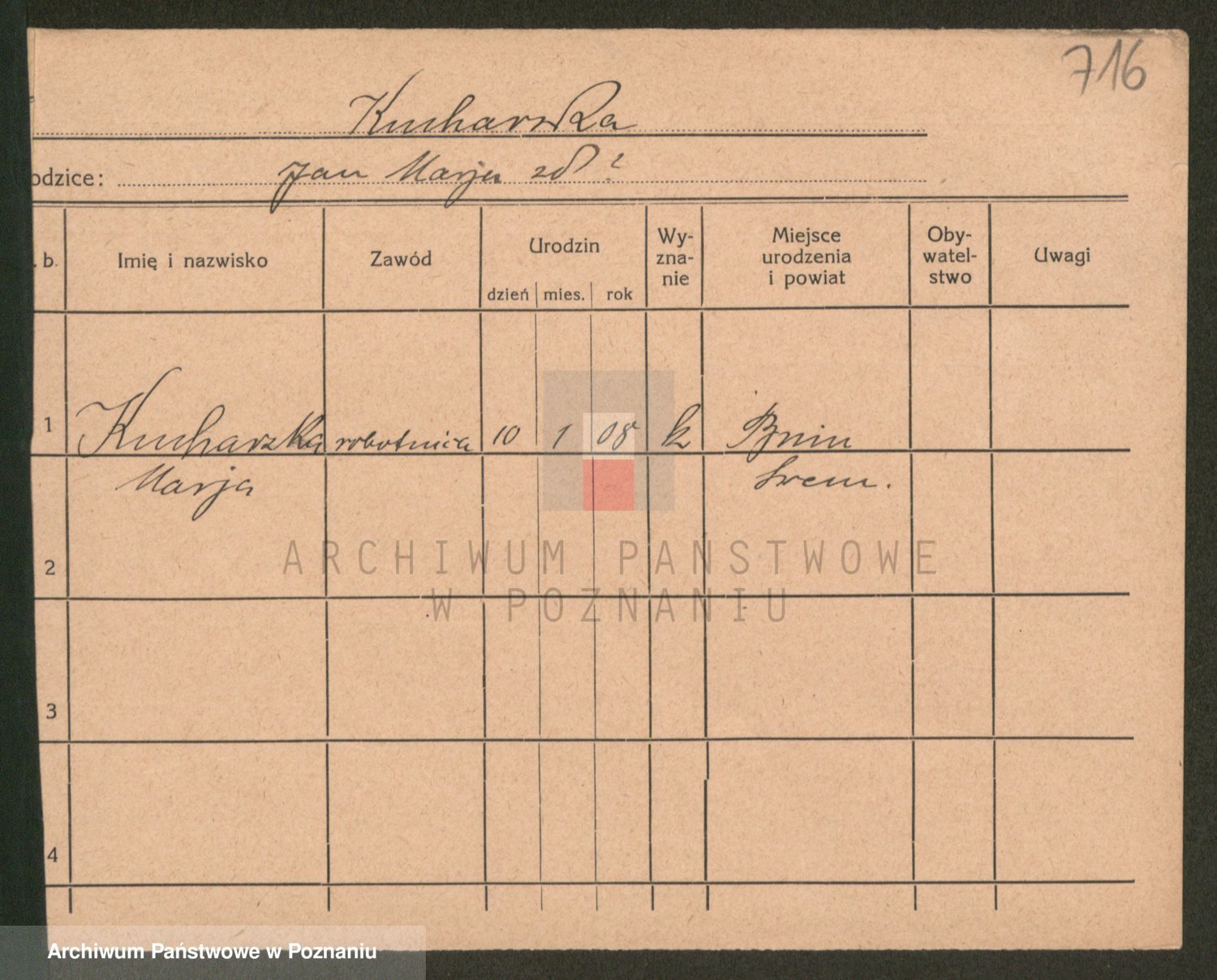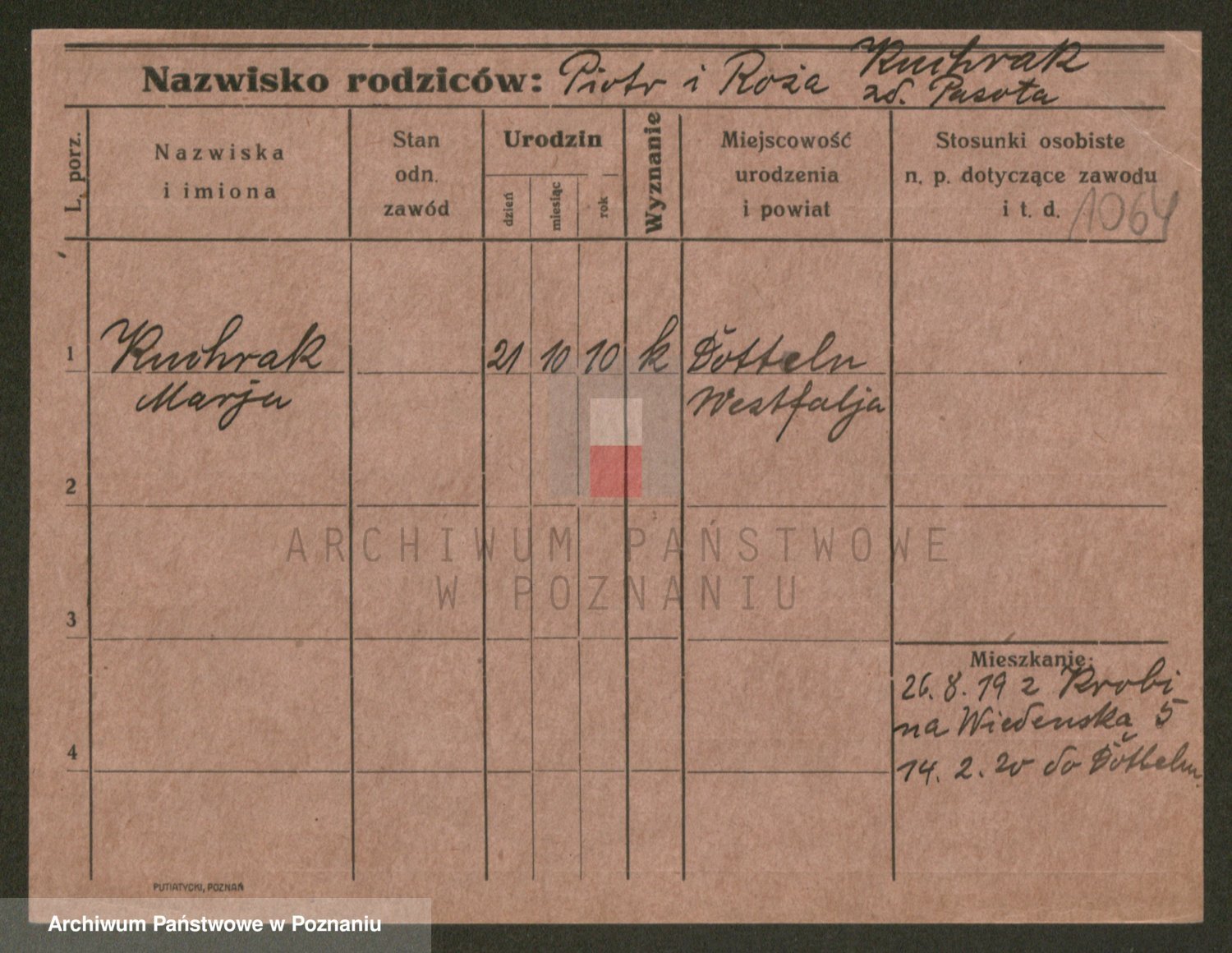 Podgląd karty osobowej dostępny jest po kliknięciu na nazwisko lub ikonkę karty. Można dokonywać powiększenia (ikony na górze) lub przechodzić między kolejnymi skanami (strzałki po bokach).