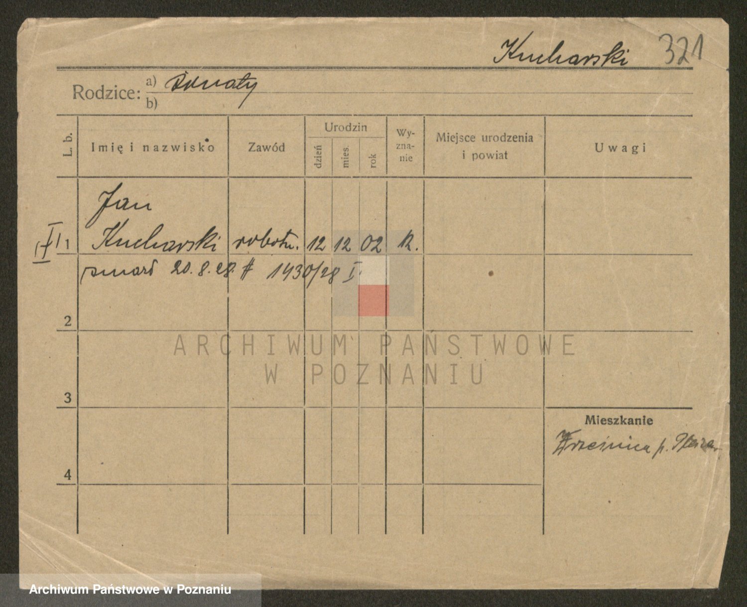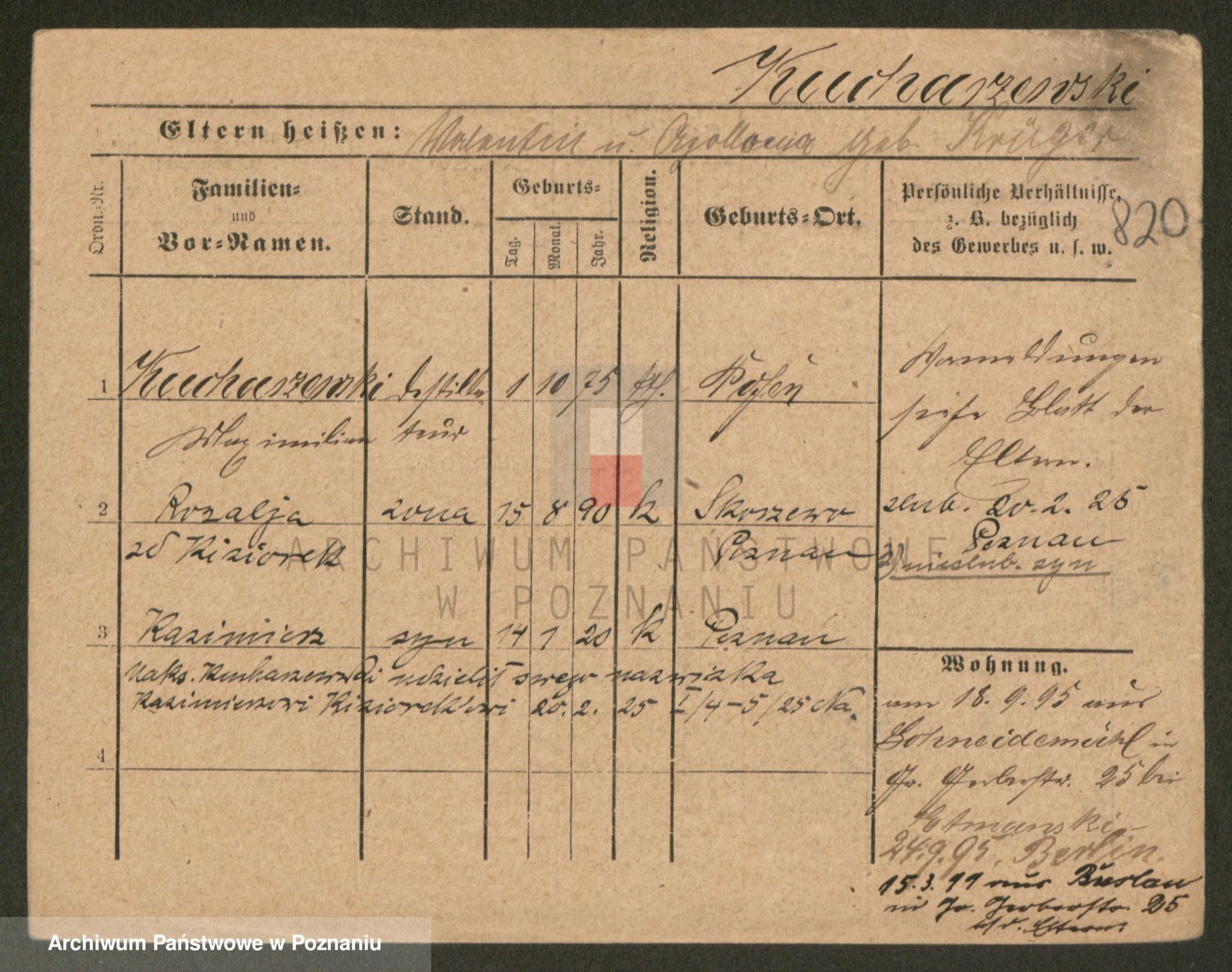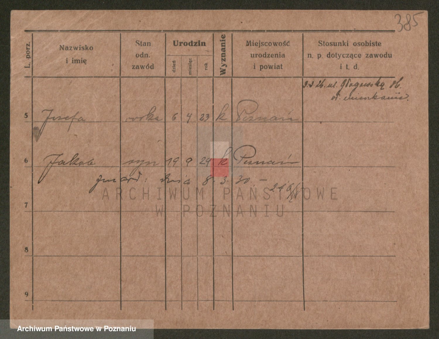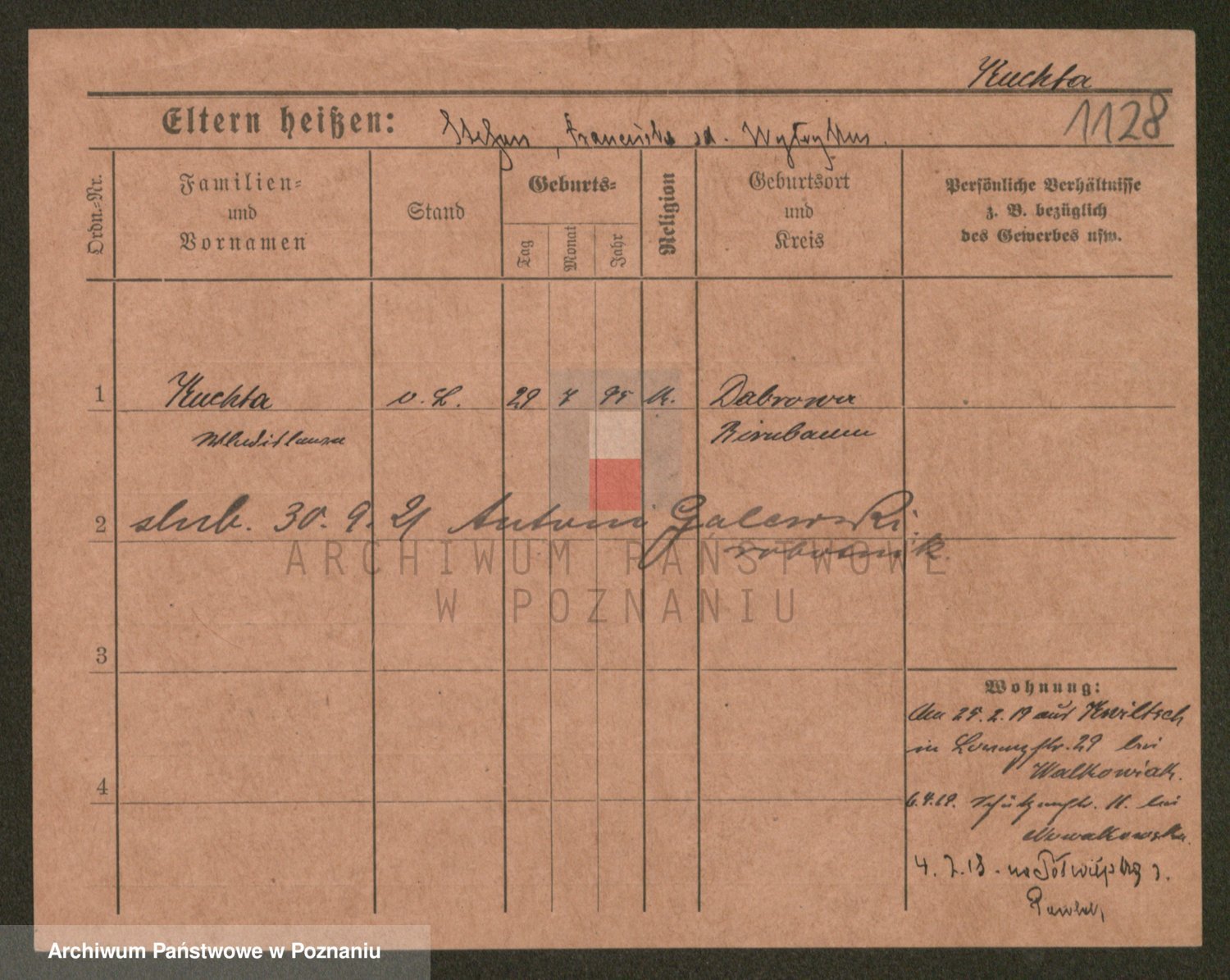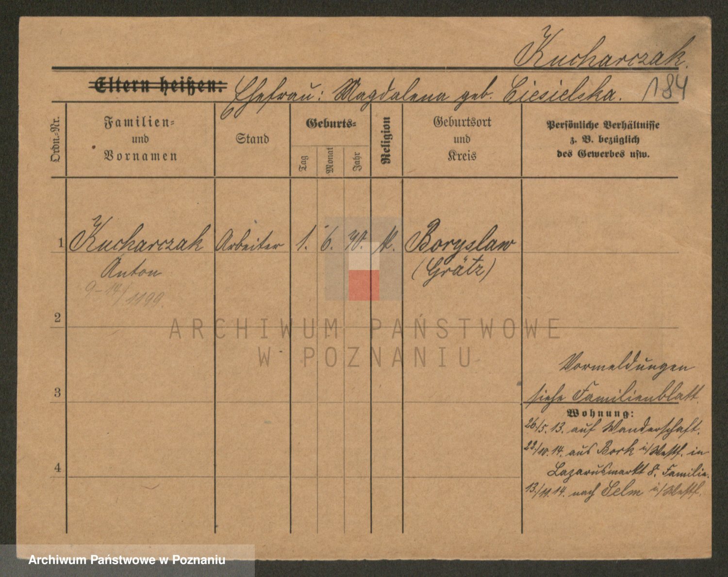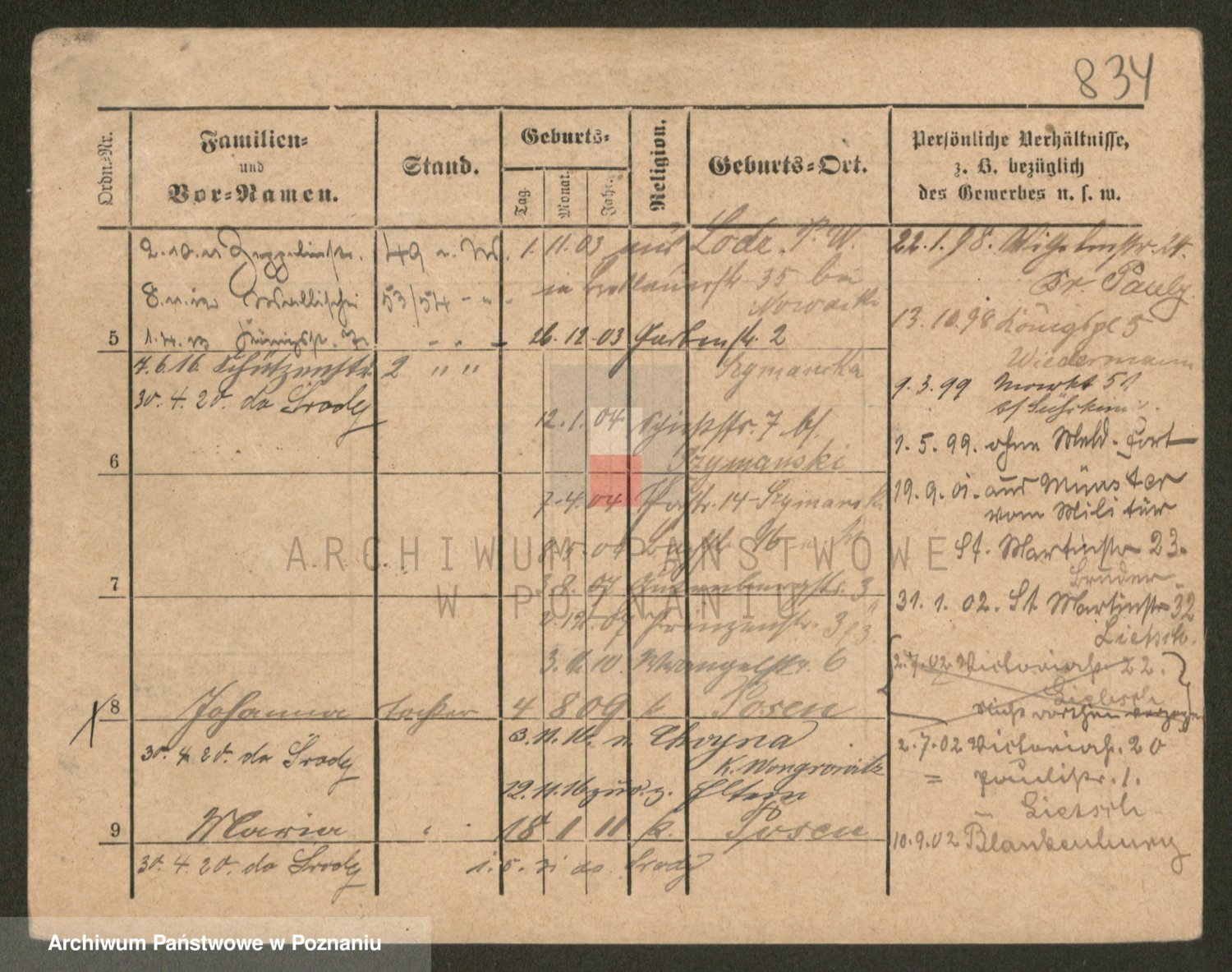 Podgląd karty osobowej dostępny jest po kliknięciu na nazwisko lub ikonkę karty. Można dokonywać powiększenia (ikony na górze) lub przechodzić między kolejnymi skanami (strzałki po bokach).