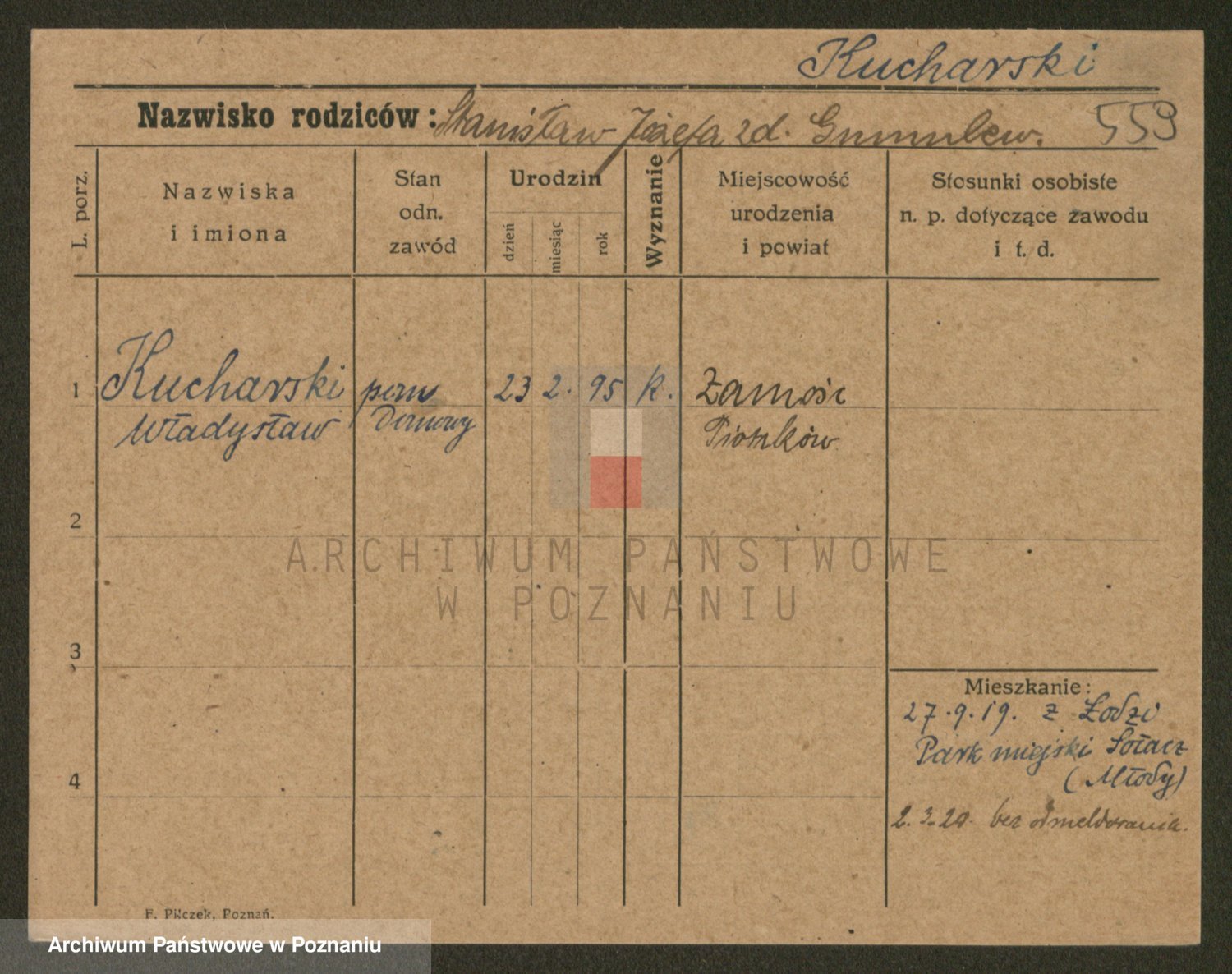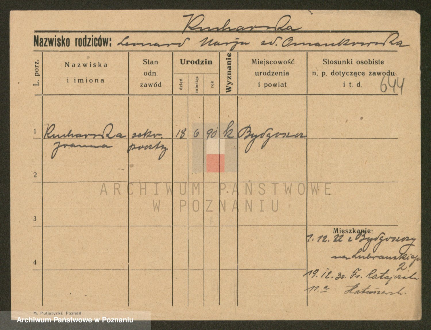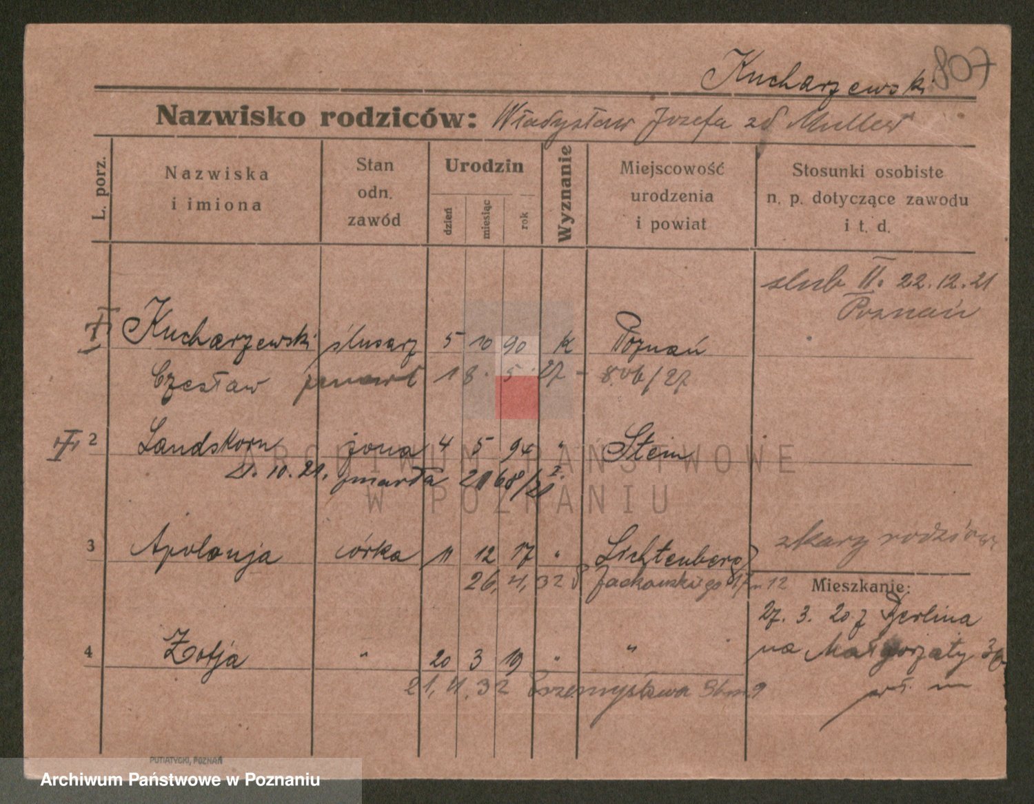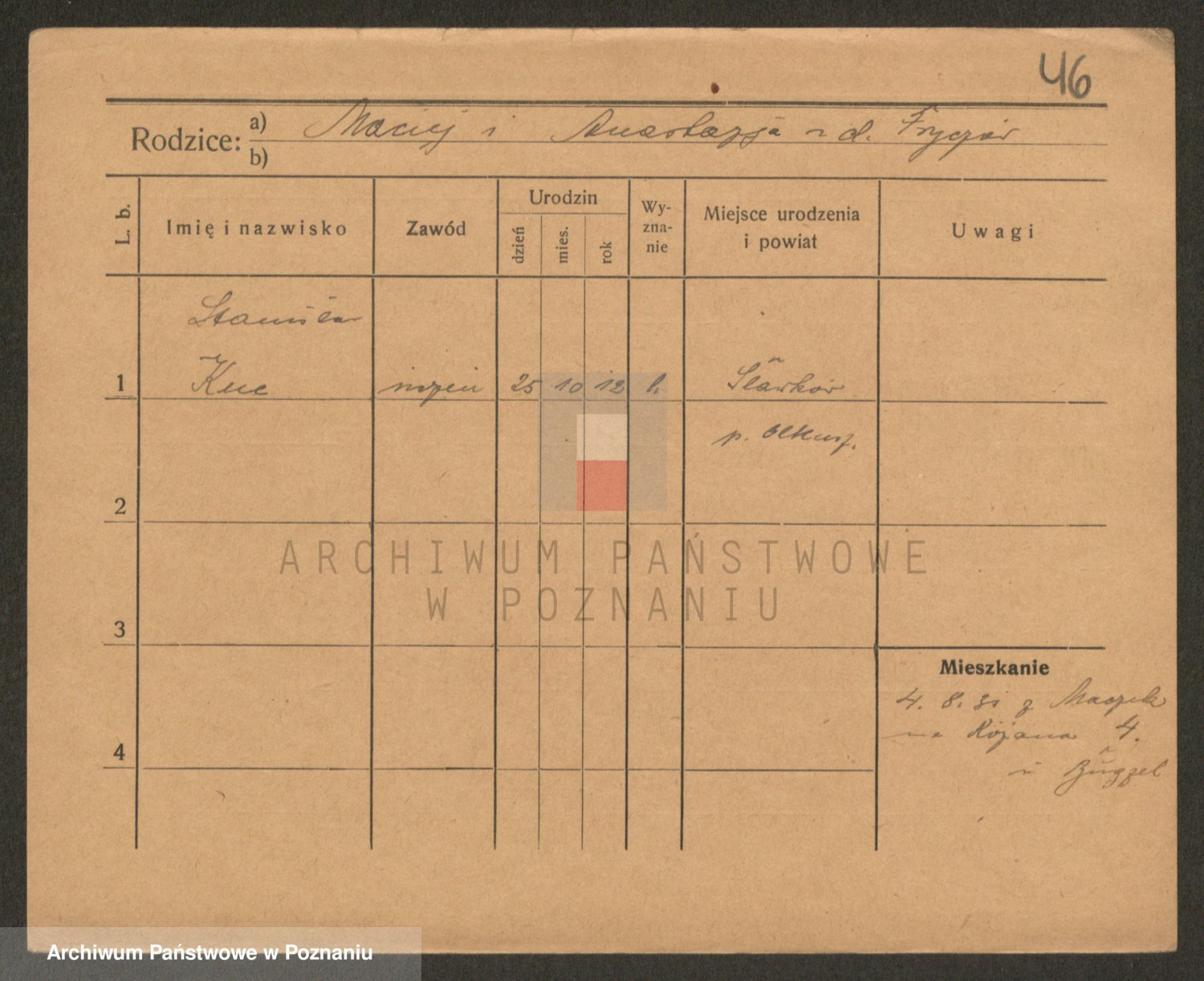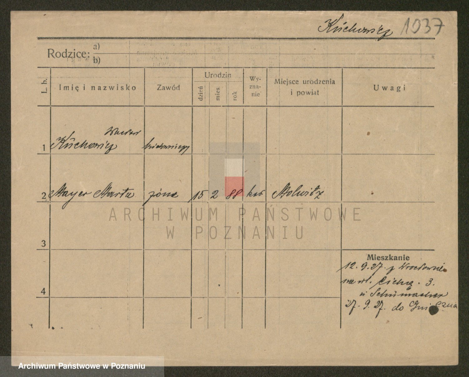 Podgląd karty osobowej dostępny jest po kliknięciu na nazwisko lub ikonkę karty. Można dokonywać powiększenia (ikony na górze) lub przechodzić między kolejnymi skanami (strzałki po bokach).