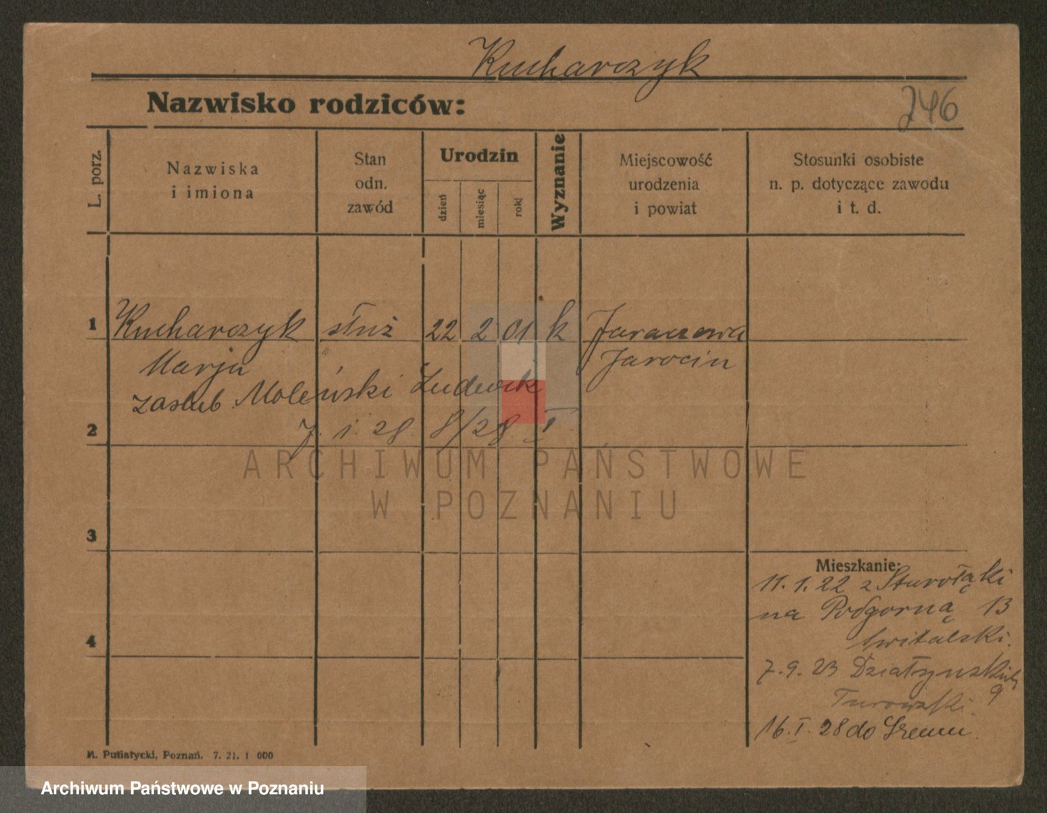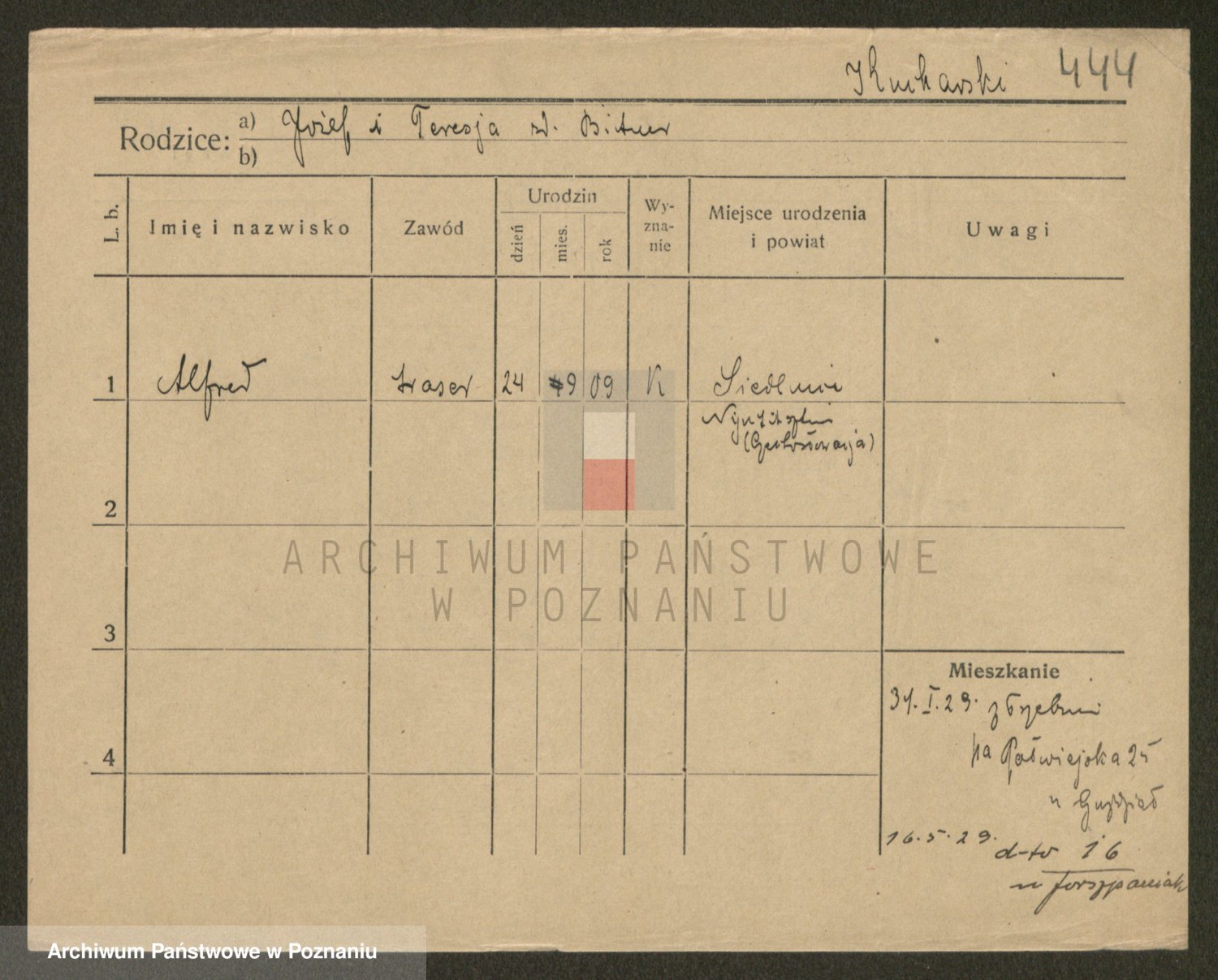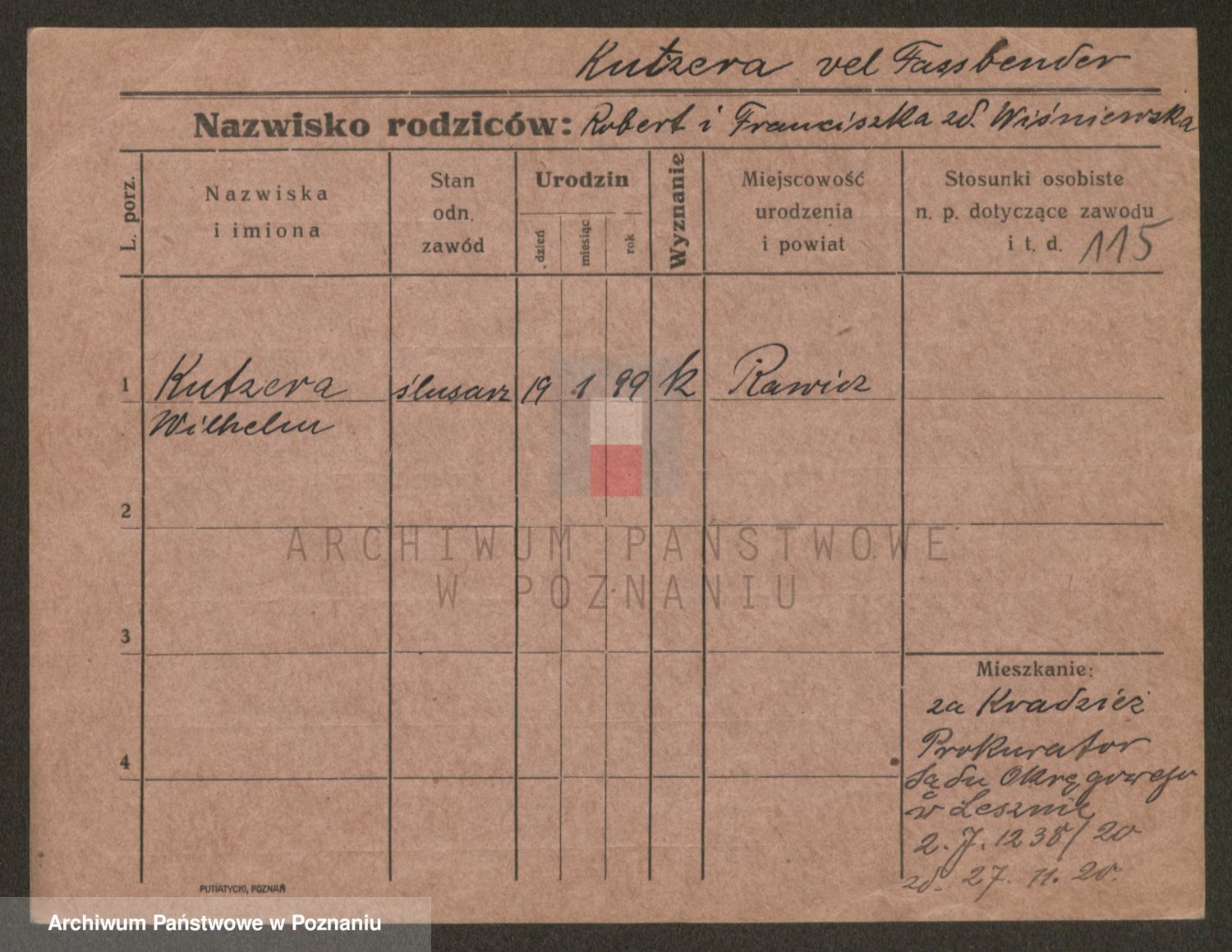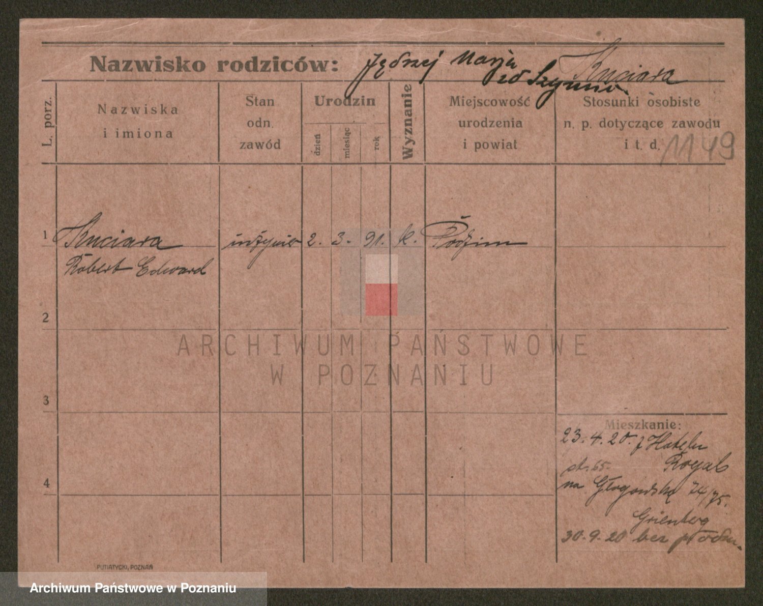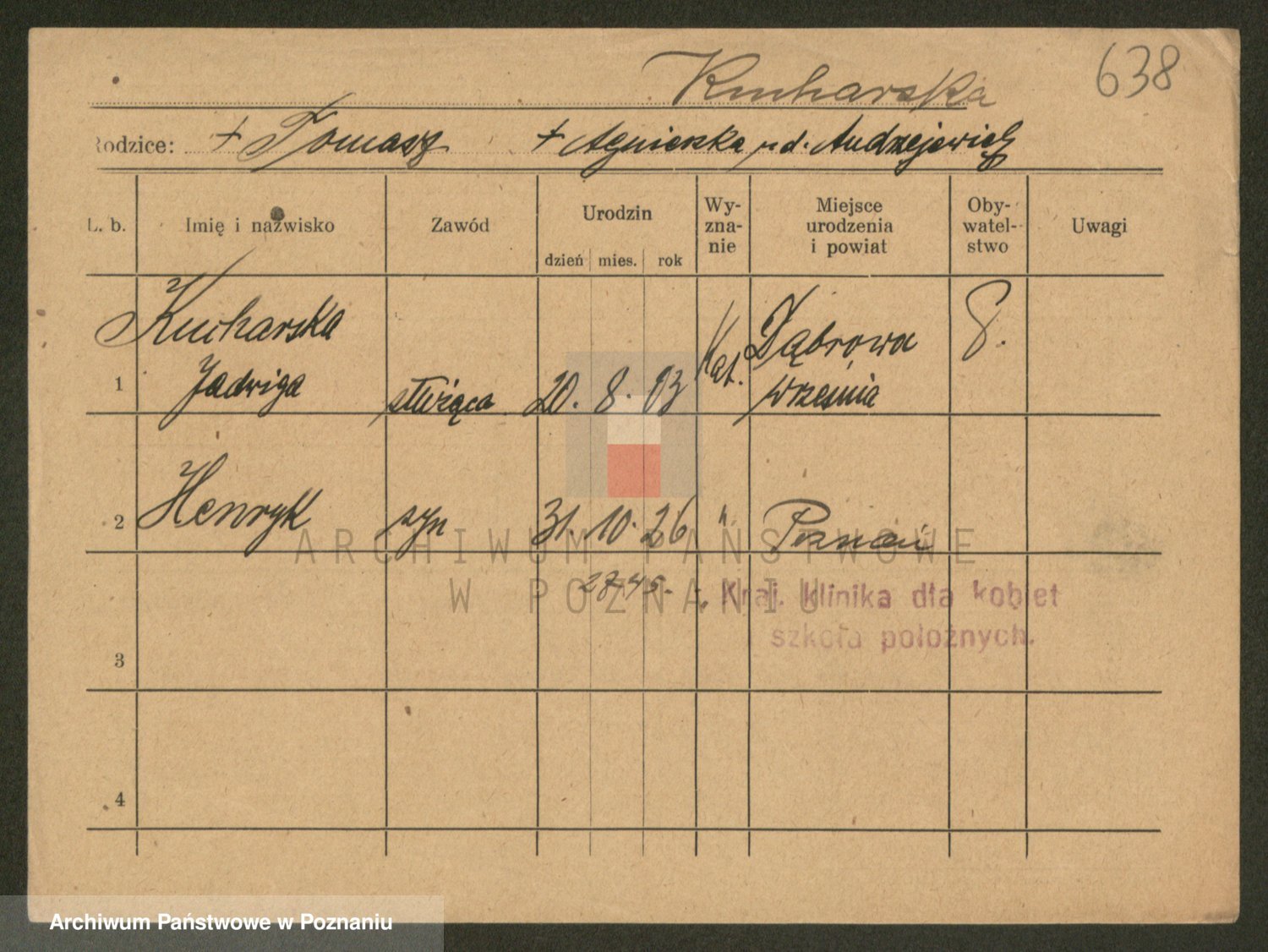 Podgląd karty osobowej dostępny jest po kliknięciu na nazwisko lub ikonkę karty. Można dokonywać powiększenia (ikony na górze) lub przechodzić między kolejnymi skanami (strzałki po bokach).