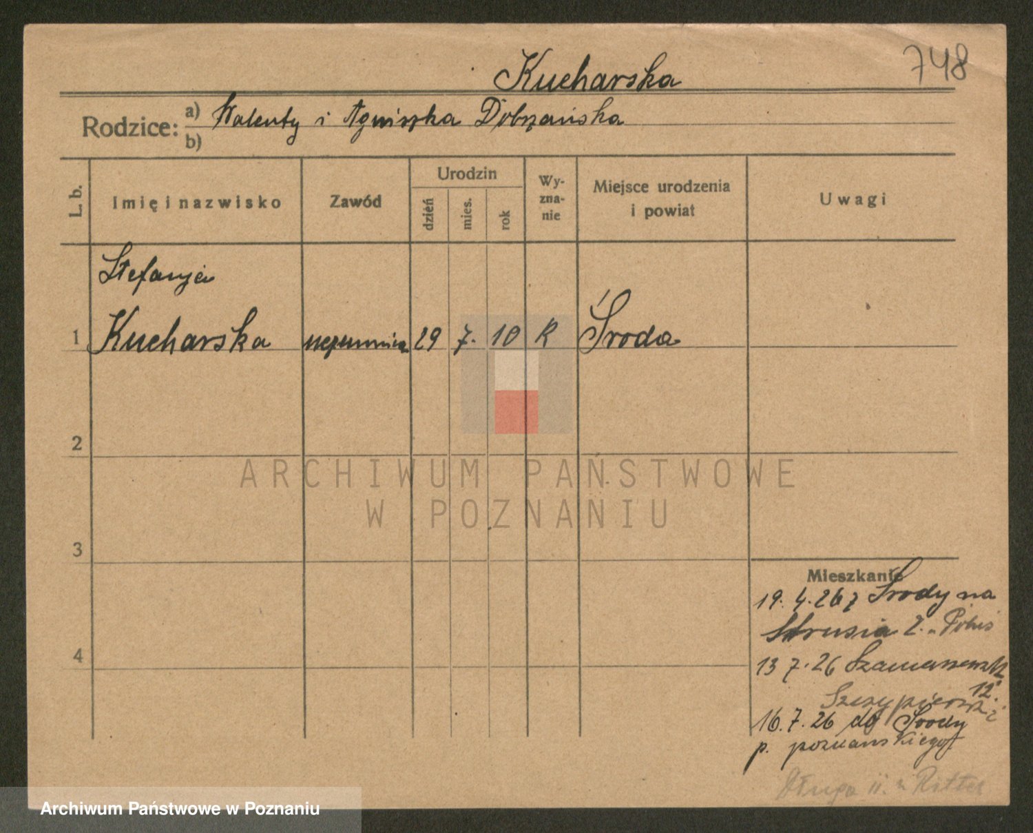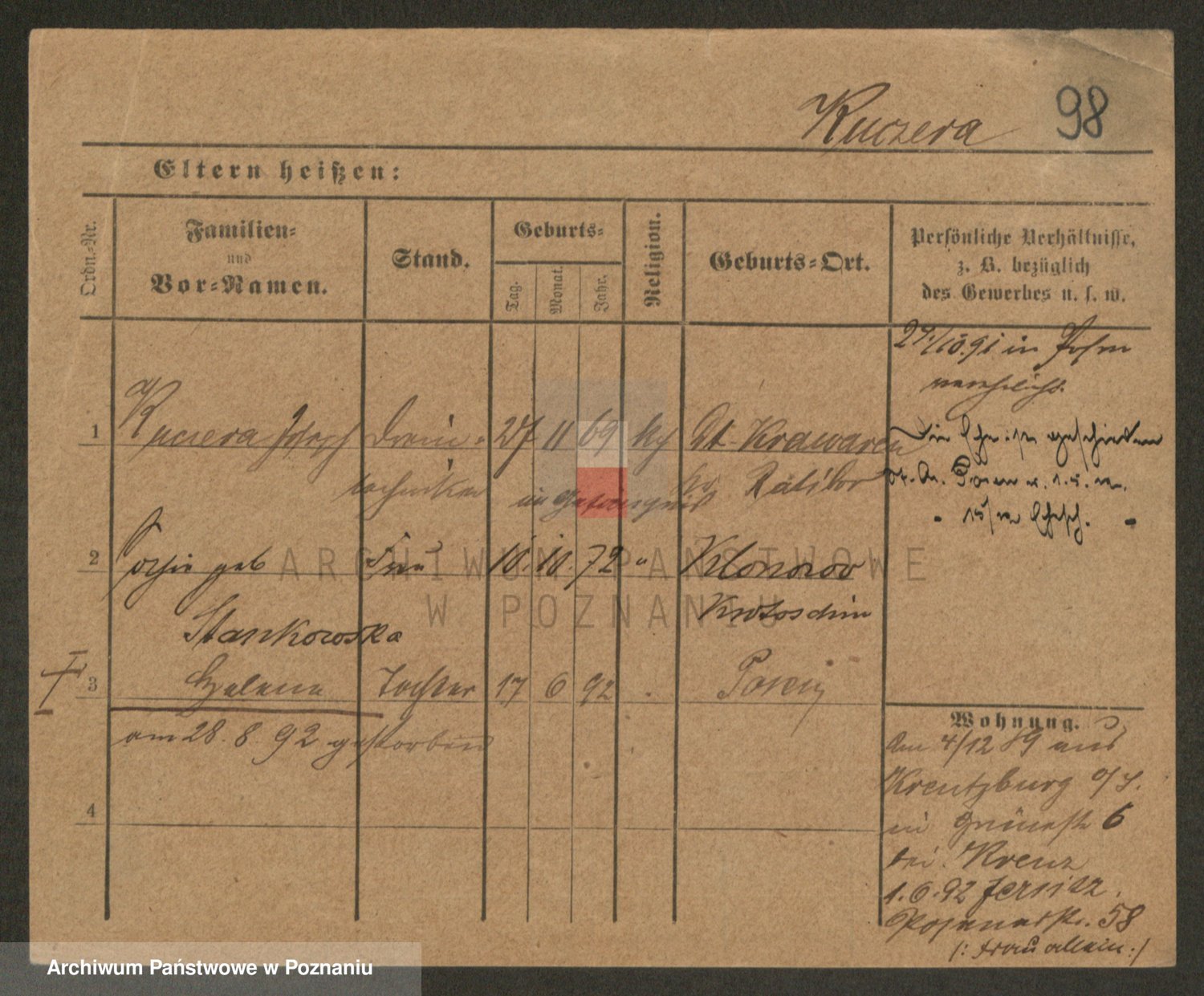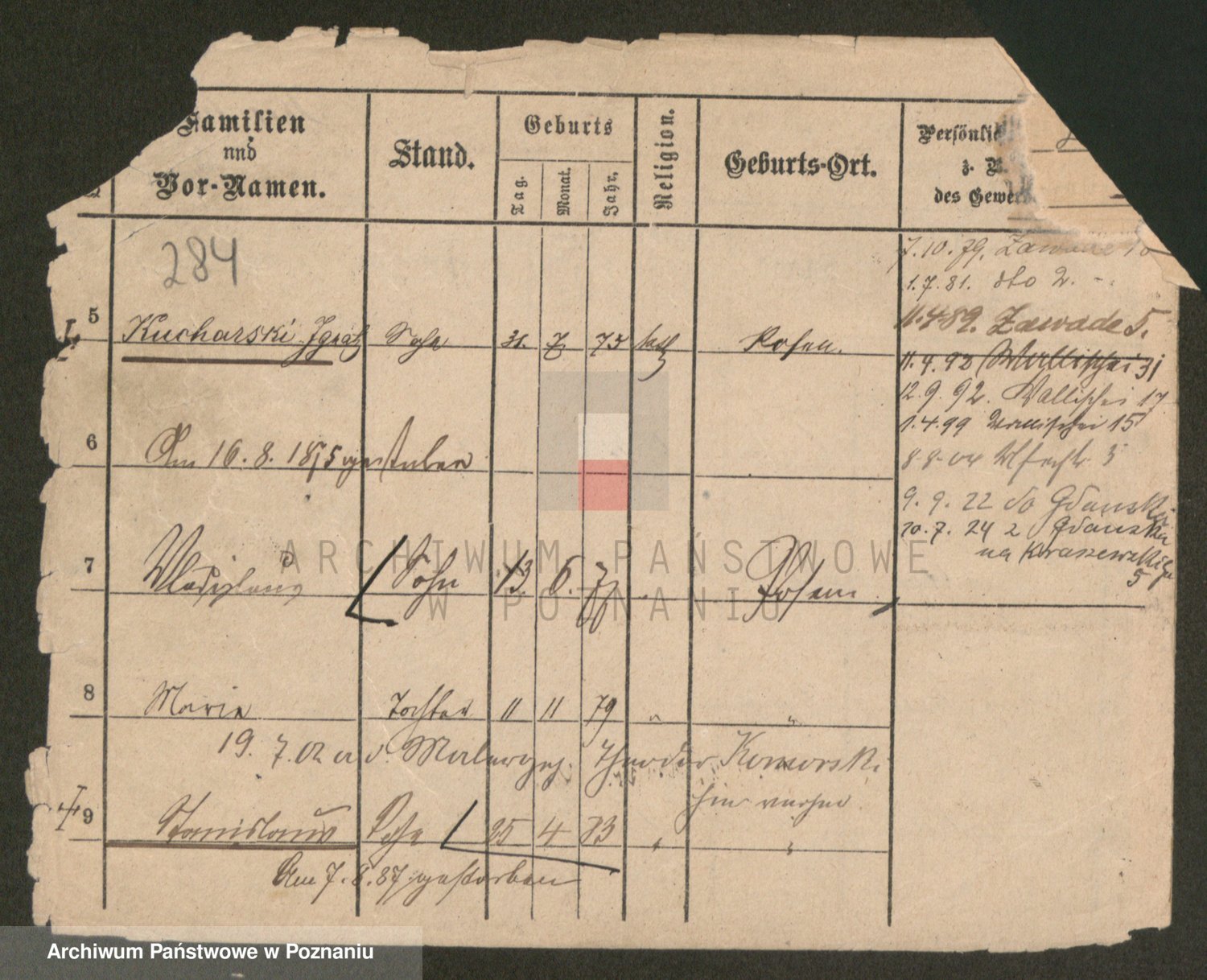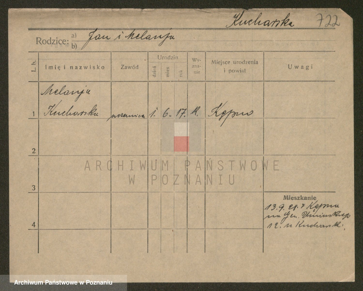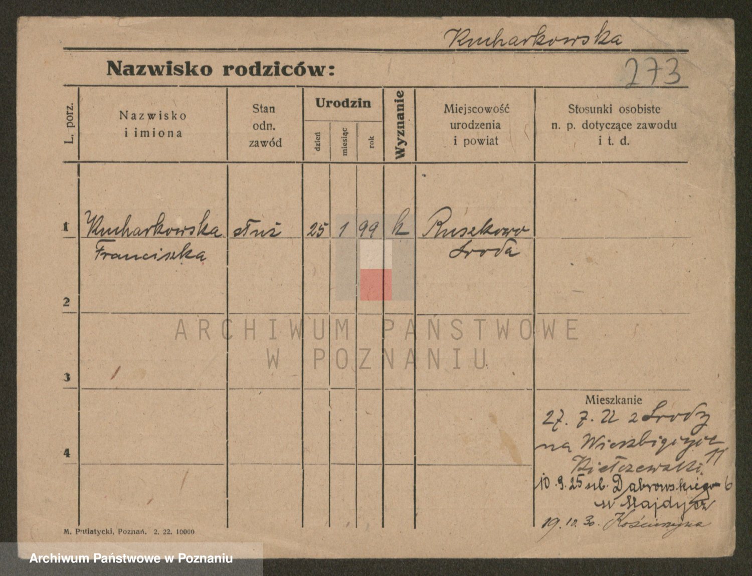 Podgląd karty osobowej dostępny jest po kliknięciu na nazwisko lub ikonkę karty. Można dokonywać powiększenia (ikony na górze) lub przechodzić między kolejnymi skanami (strzałki po bokach).