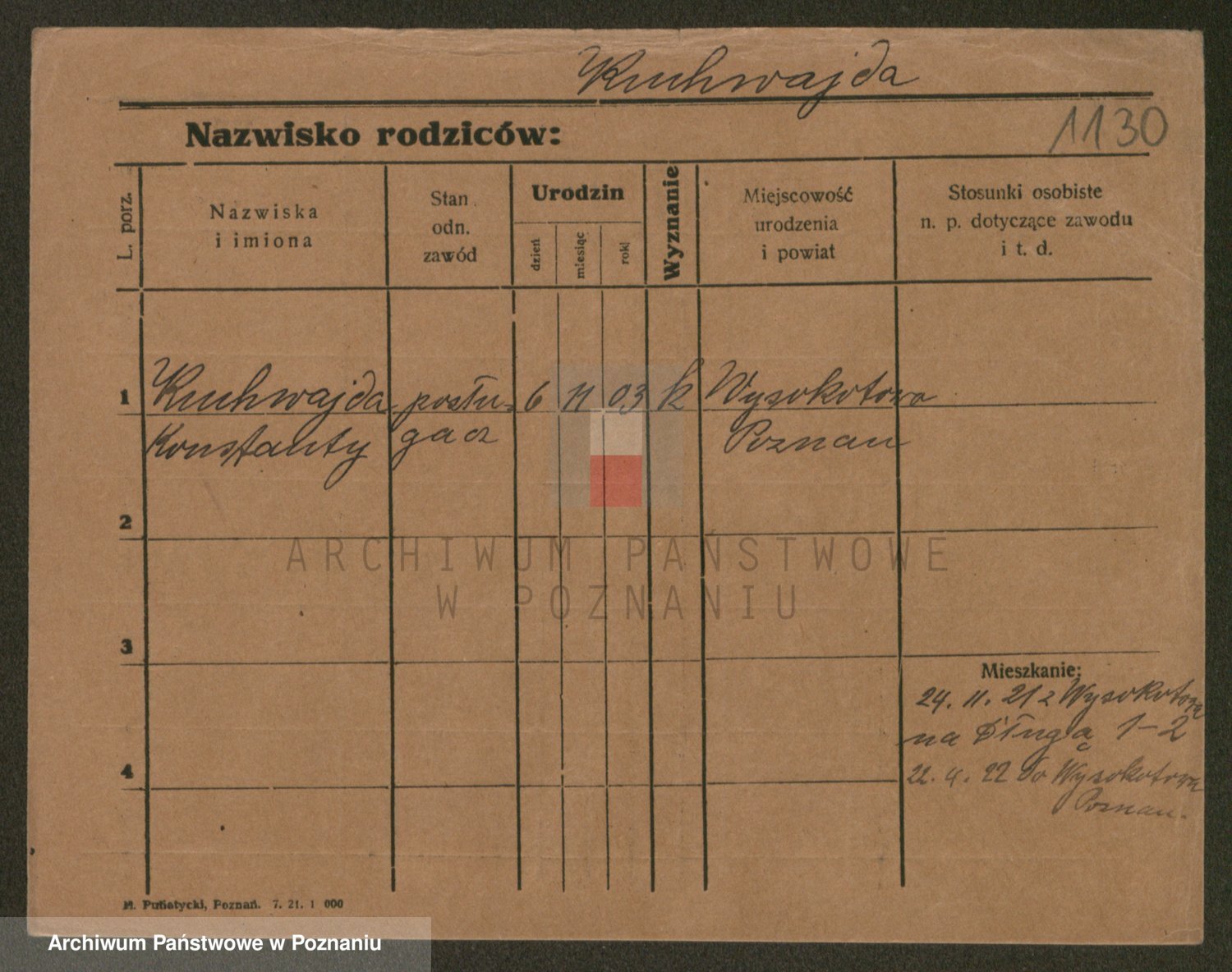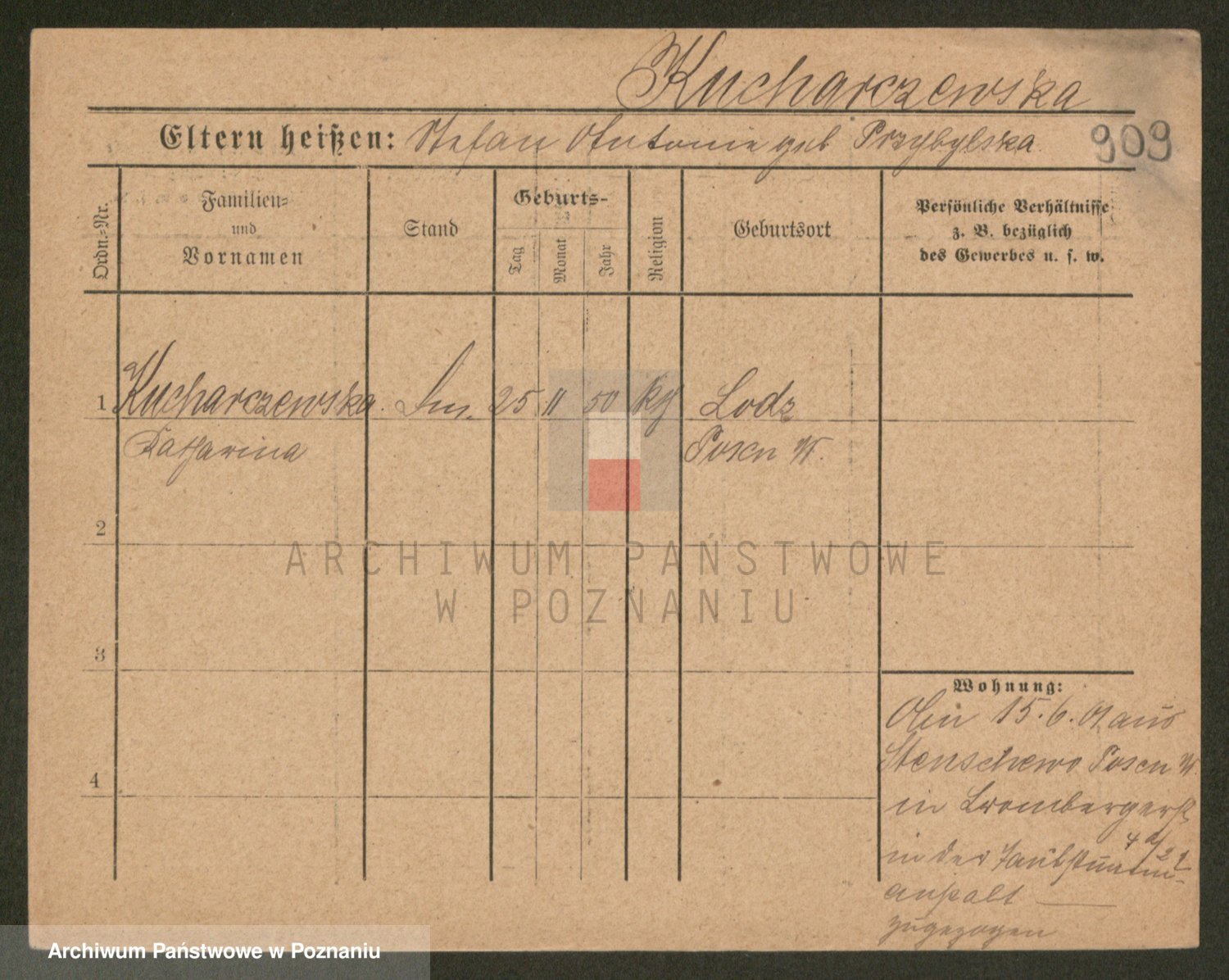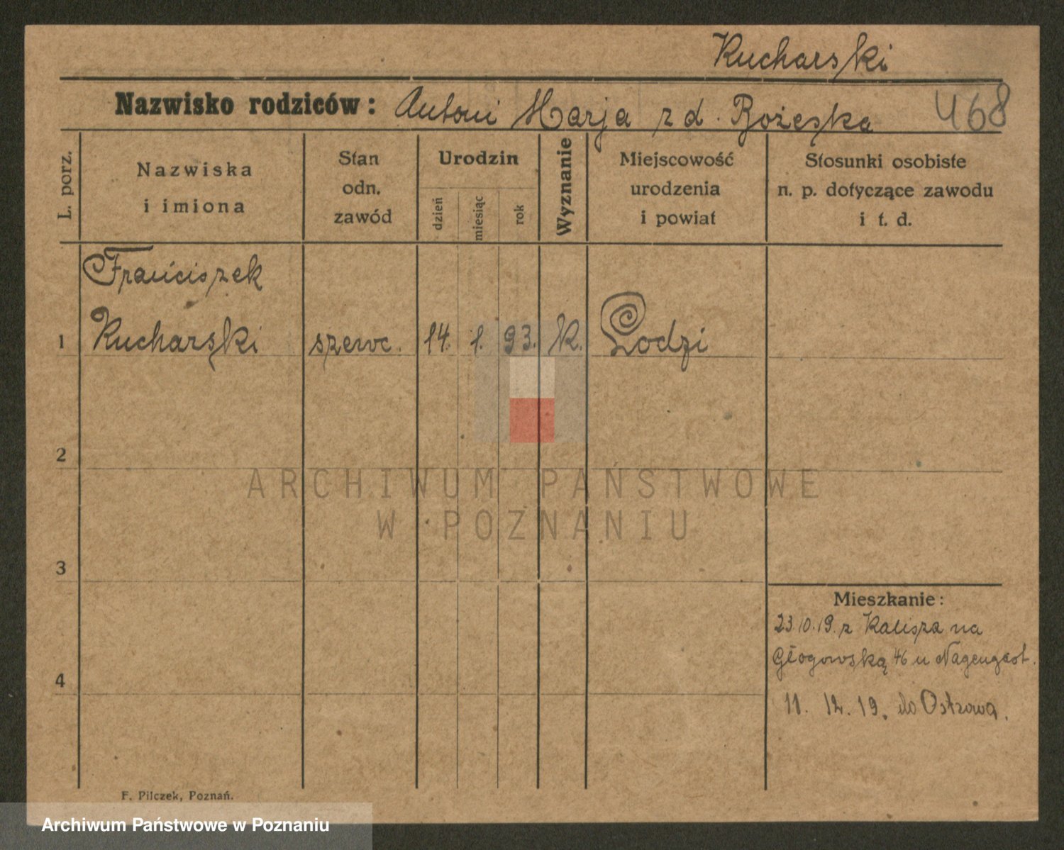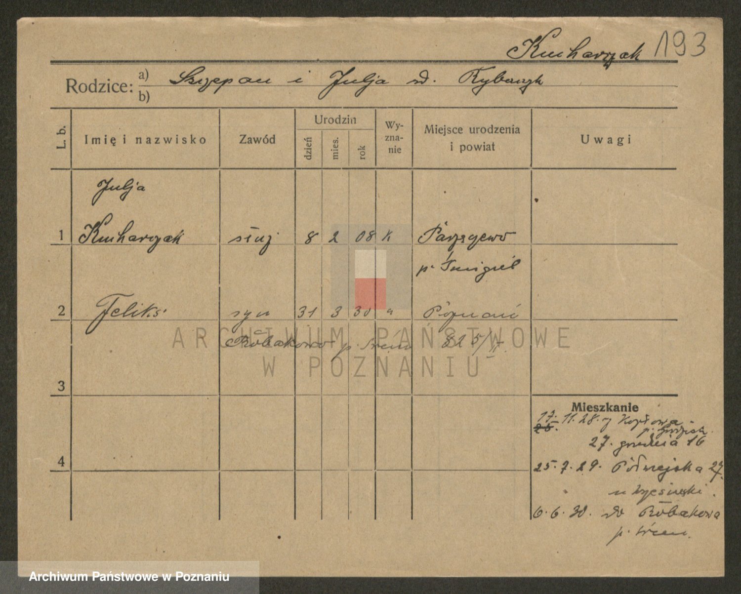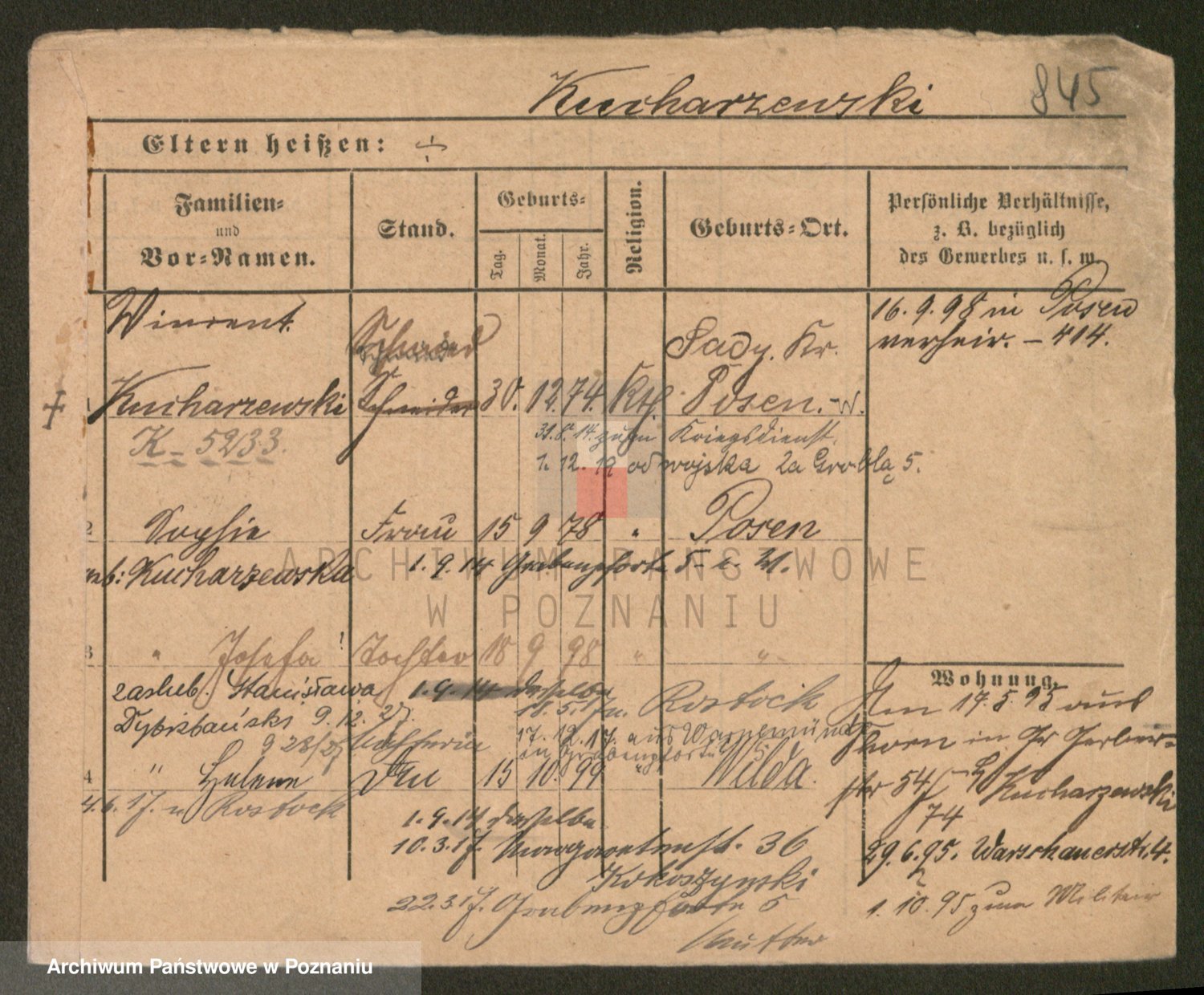 Podgląd karty osobowej dostępny jest po kliknięciu na nazwisko lub ikonkę karty. Można dokonywać powiększenia (ikony na górze) lub przechodzić między kolejnymi skanami (strzałki po bokach).