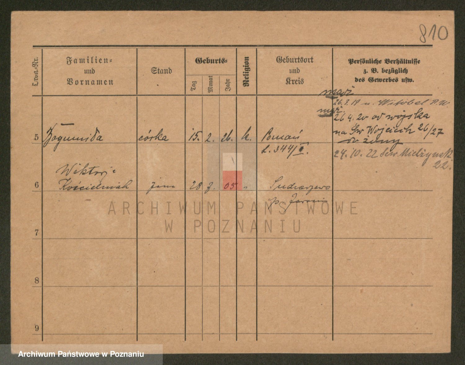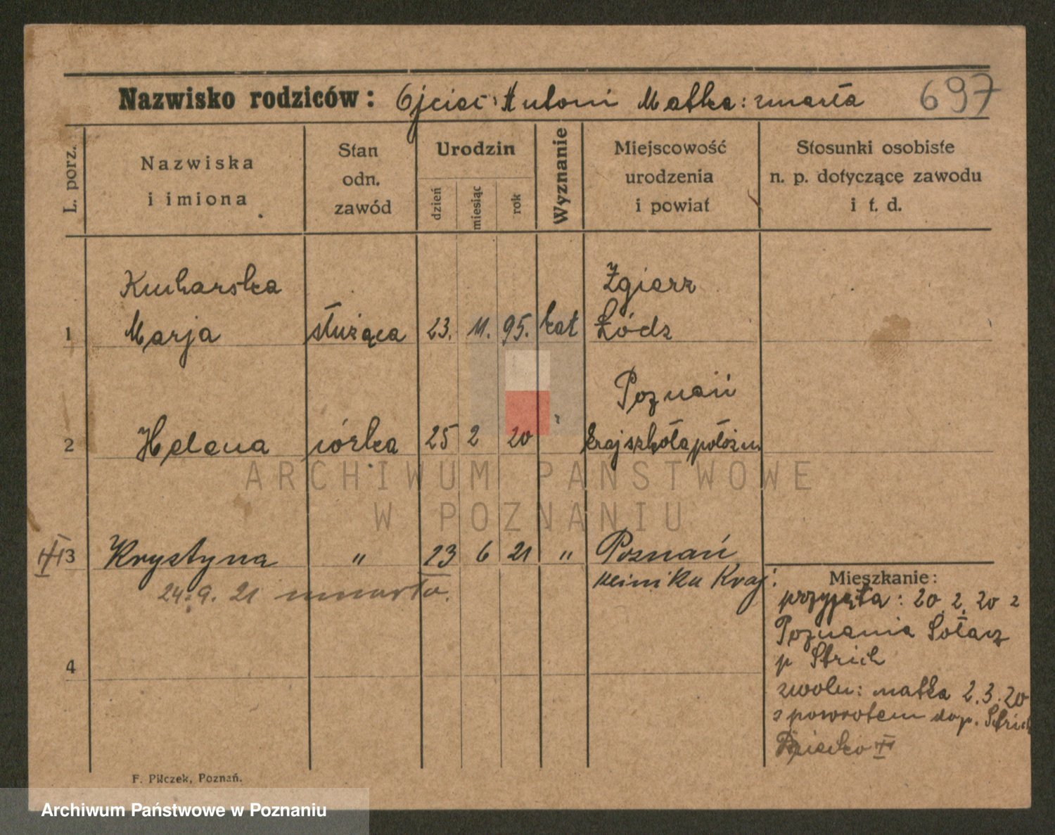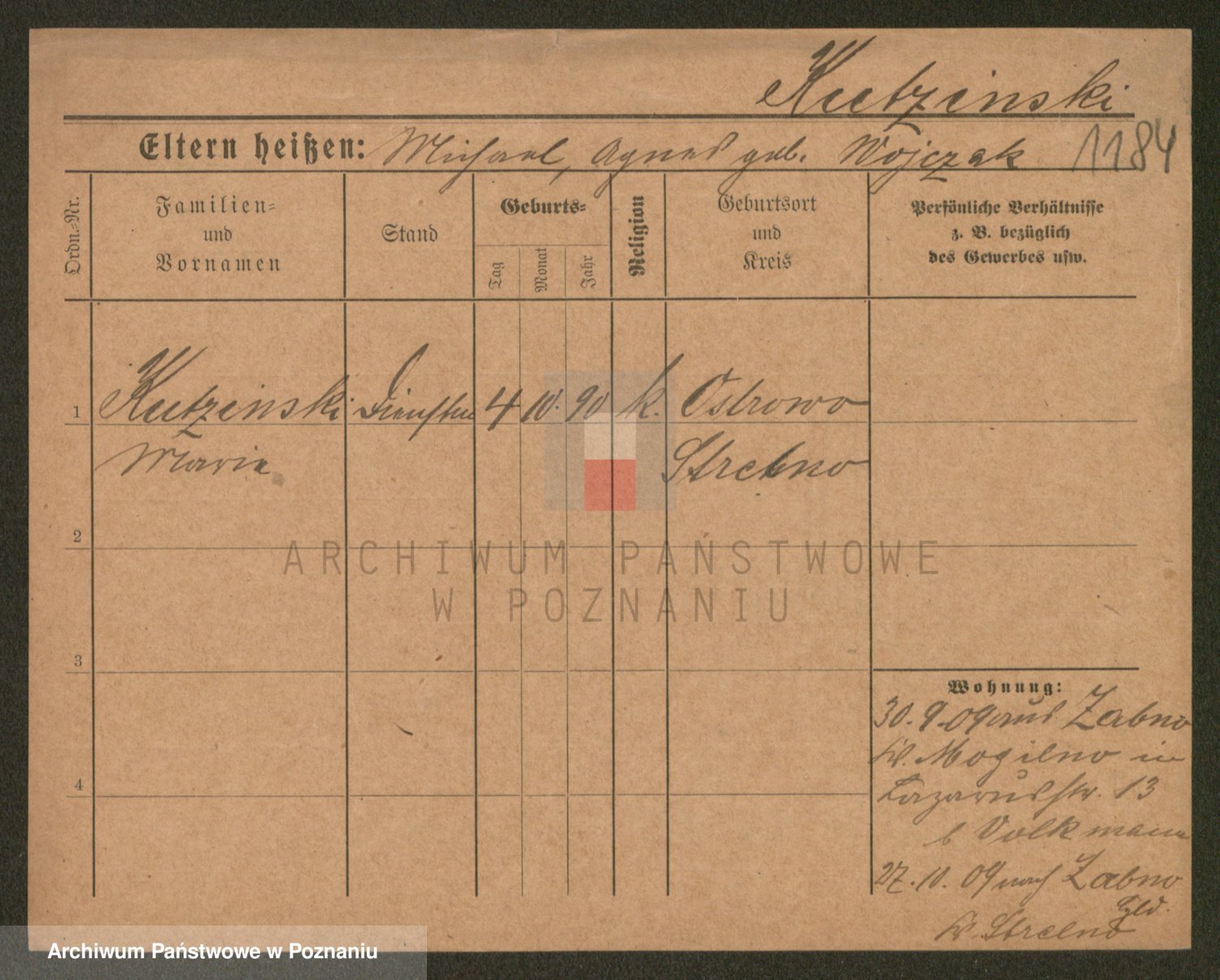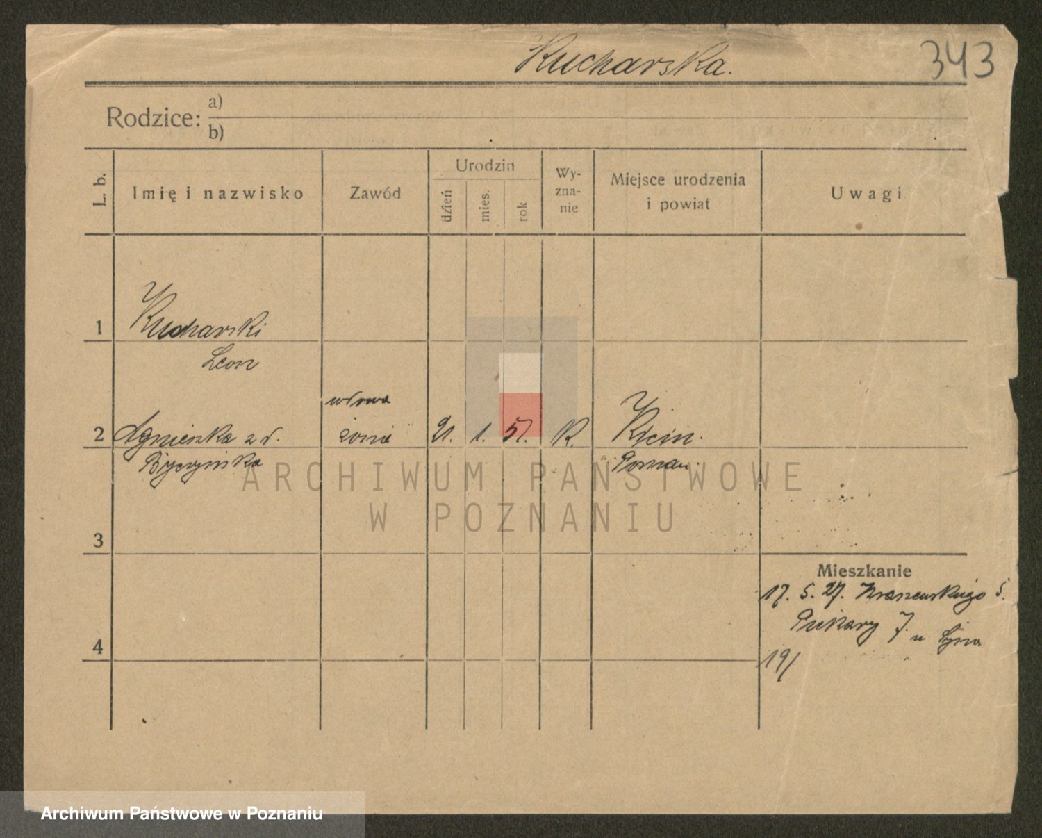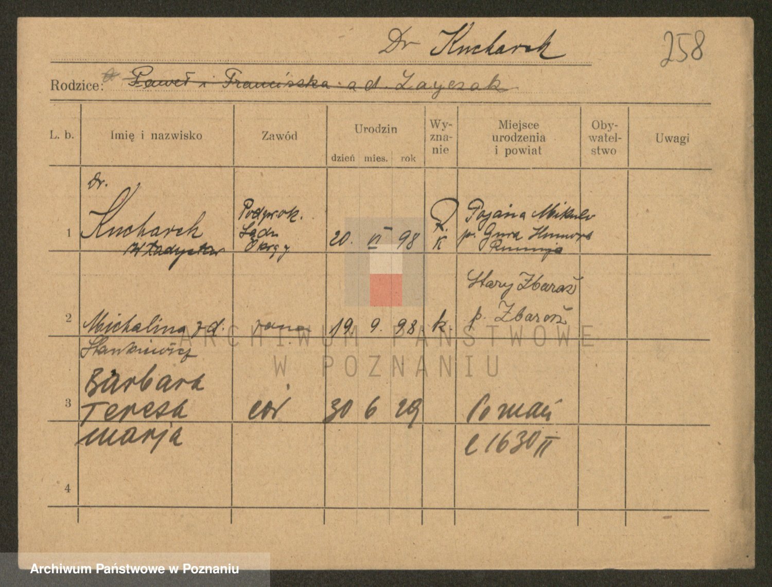 Podgląd karty osobowej dostępny jest po kliknięciu na nazwisko lub ikonkę karty. Można dokonywać powiększenia (ikony na górze) lub przechodzić między kolejnymi skanami (strzałki po bokach).