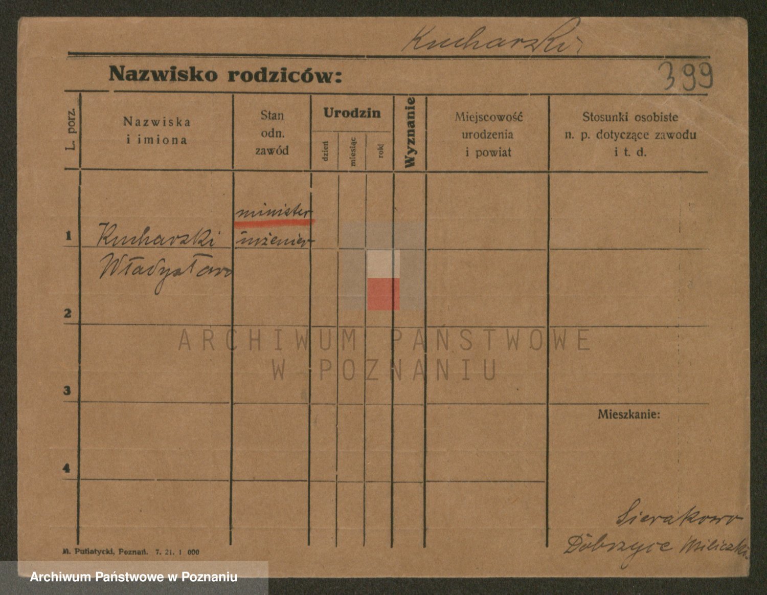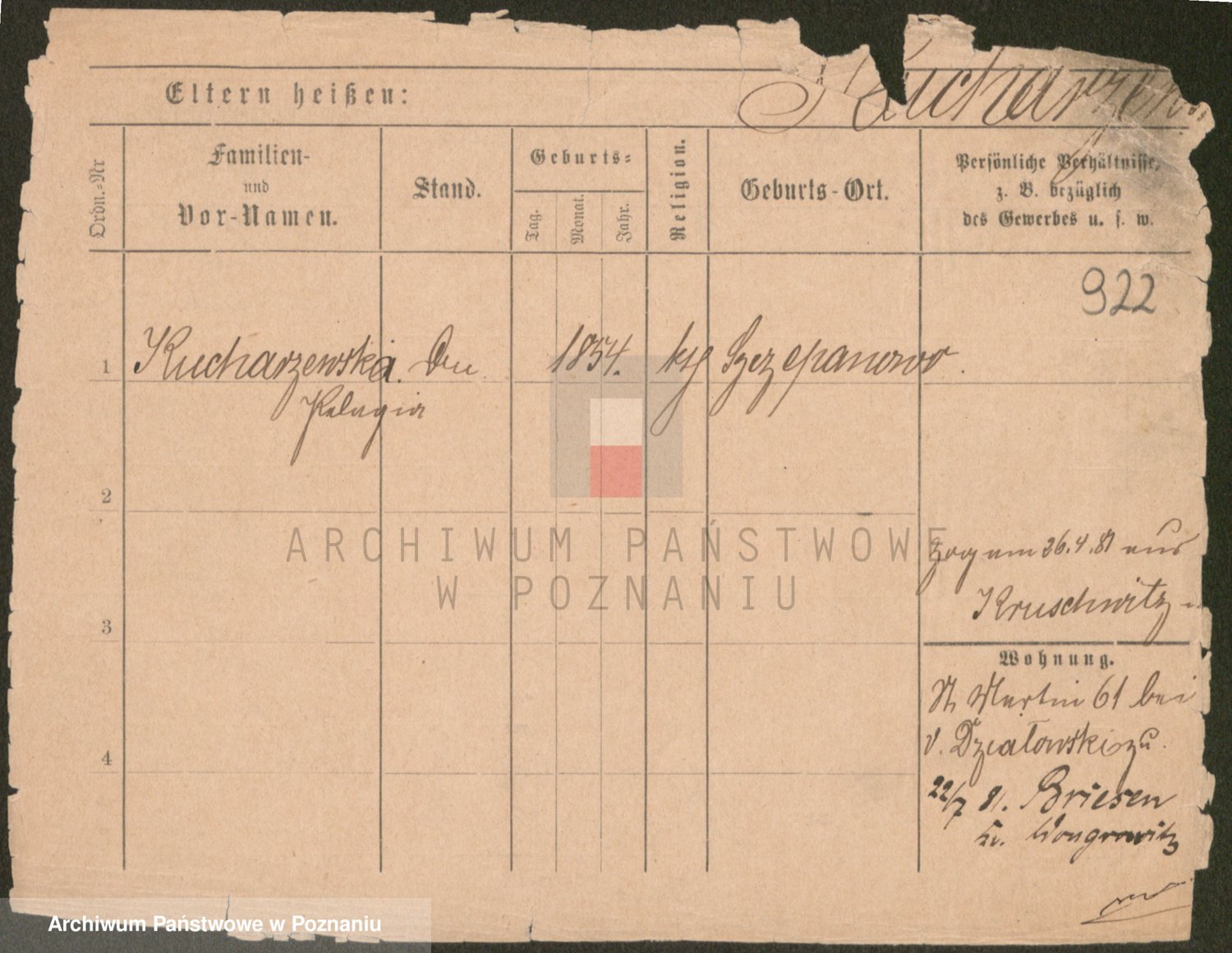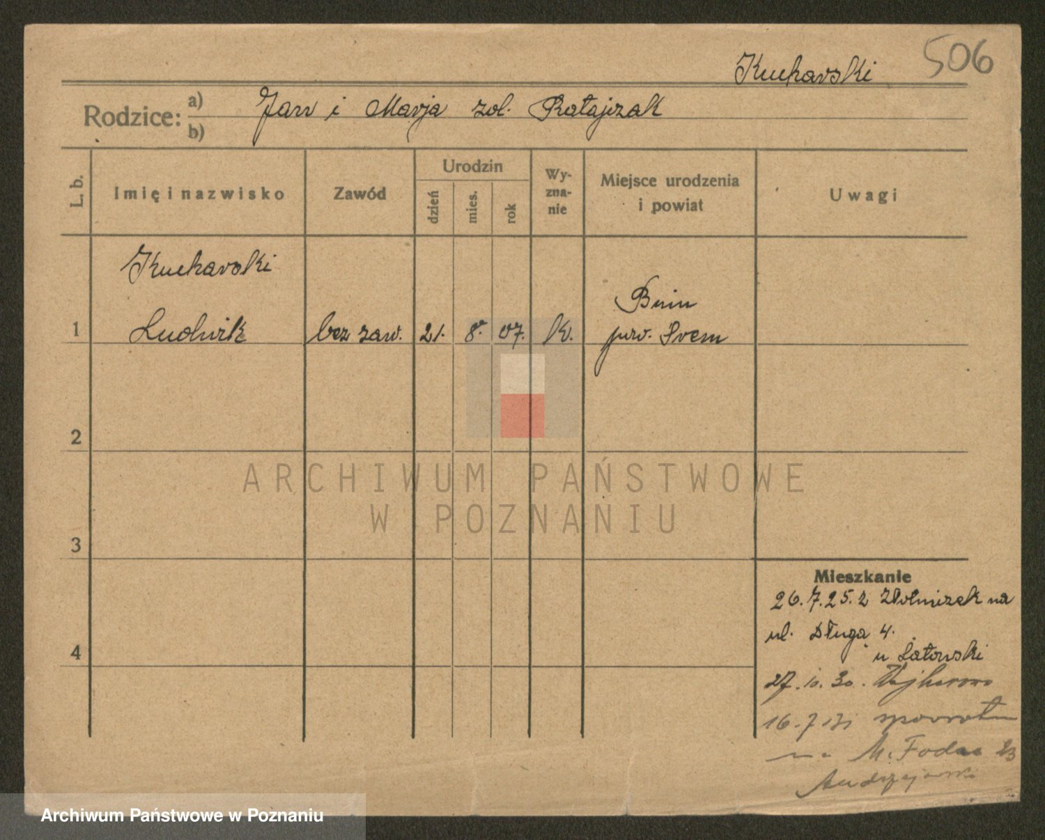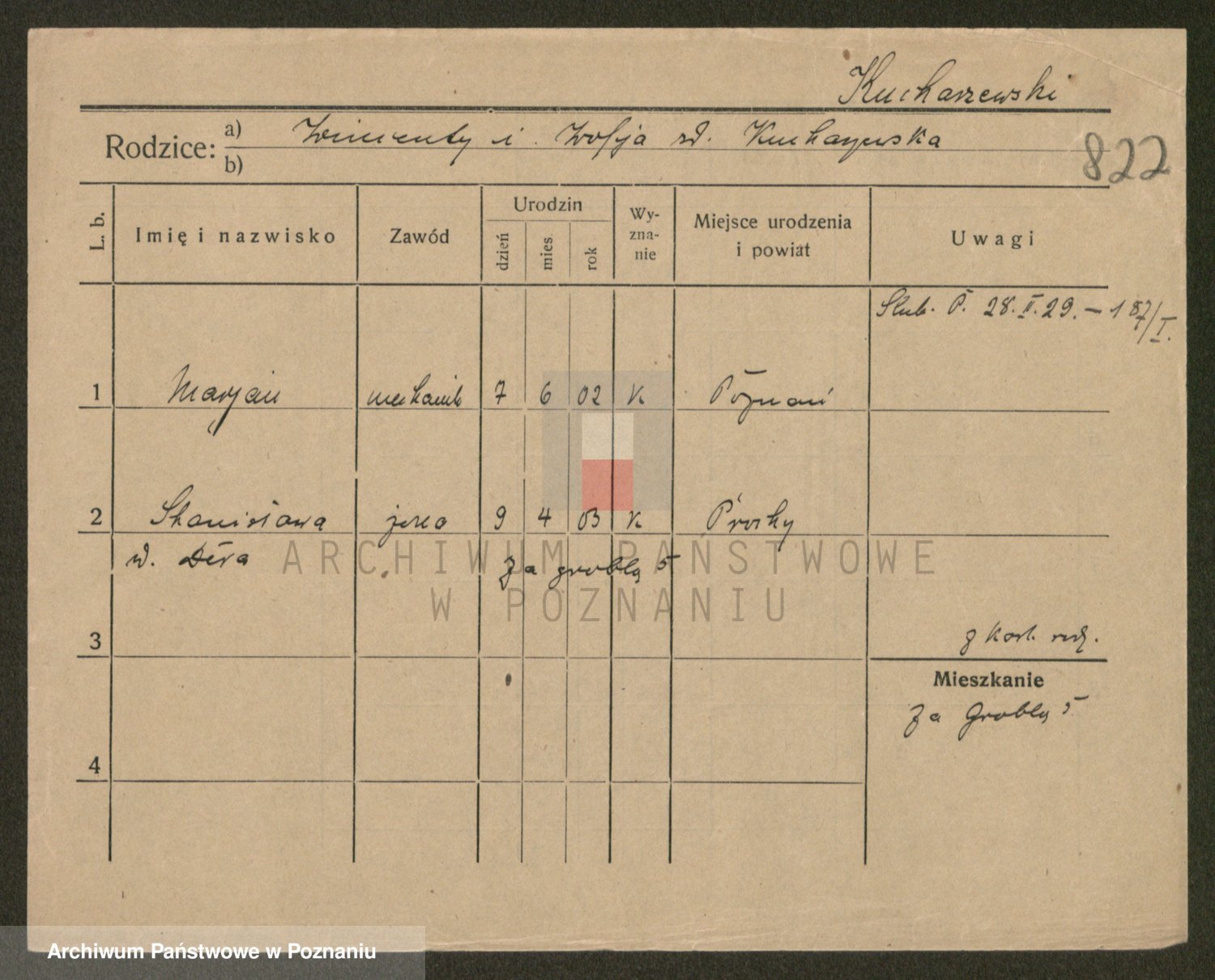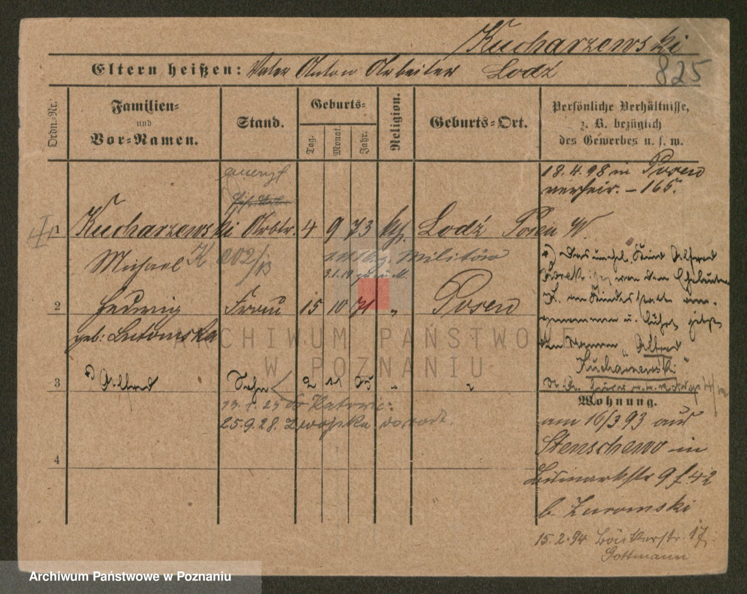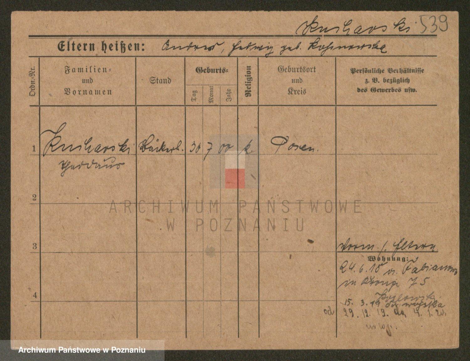 Podgląd karty osobowej dostępny jest po kliknięciu na nazwisko lub ikonkę karty. Można dokonywać powiększenia (ikony na górze) lub przechodzić między kolejnymi skanami (strzałki po bokach).