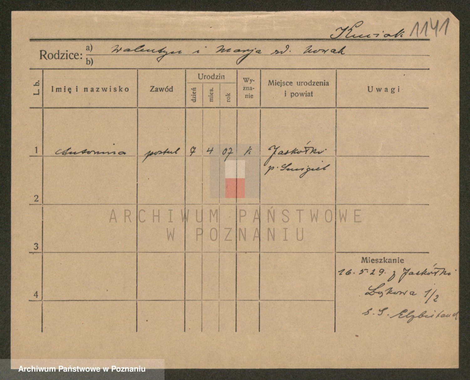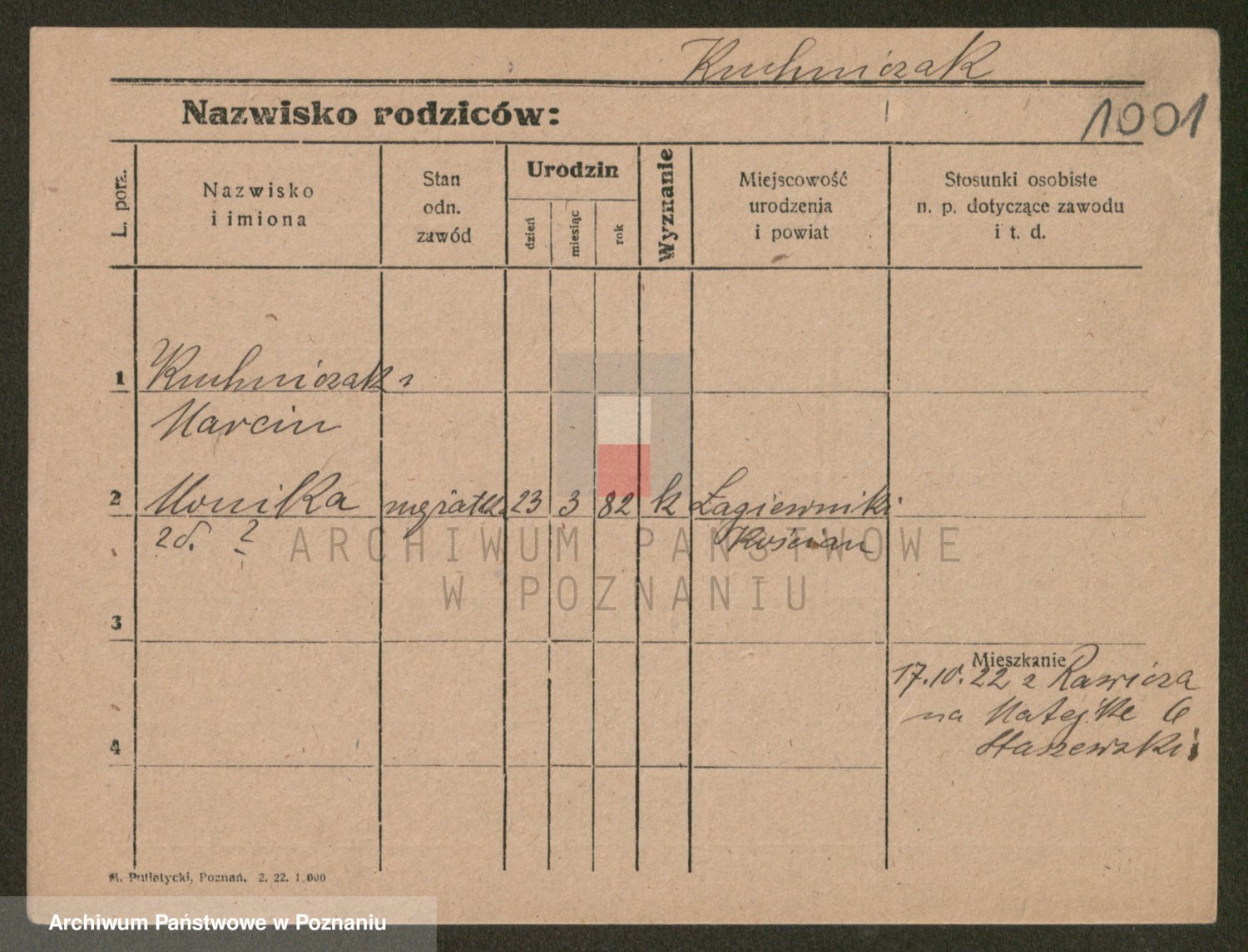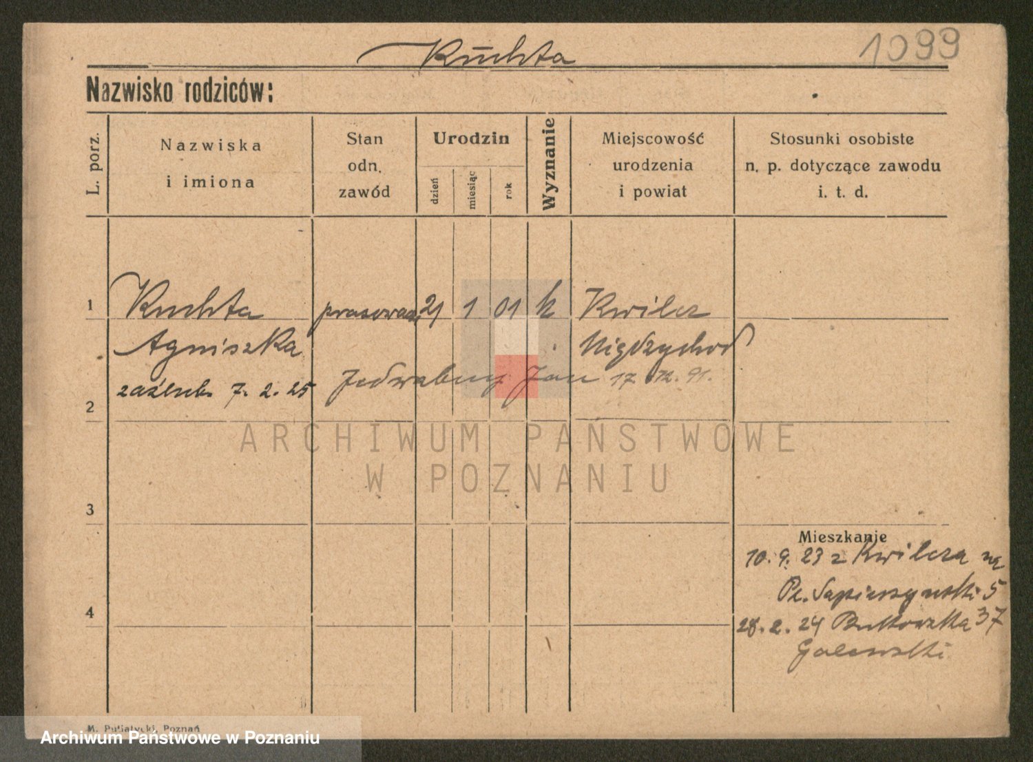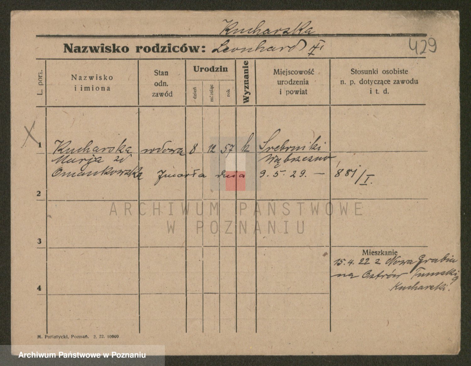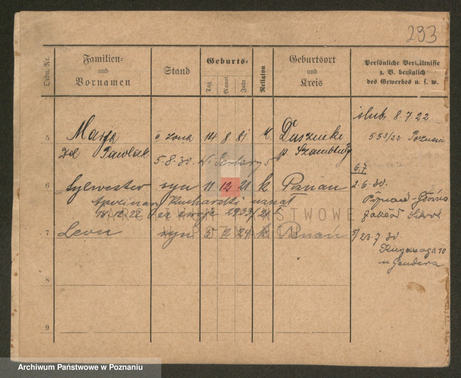 Podgląd karty osobowej dostępny jest po kliknięciu na nazwisko lub ikonkę karty. Można dokonywać powiększenia (ikony na górze) lub przechodzić między kolejnymi skanami (strzałki po bokach).