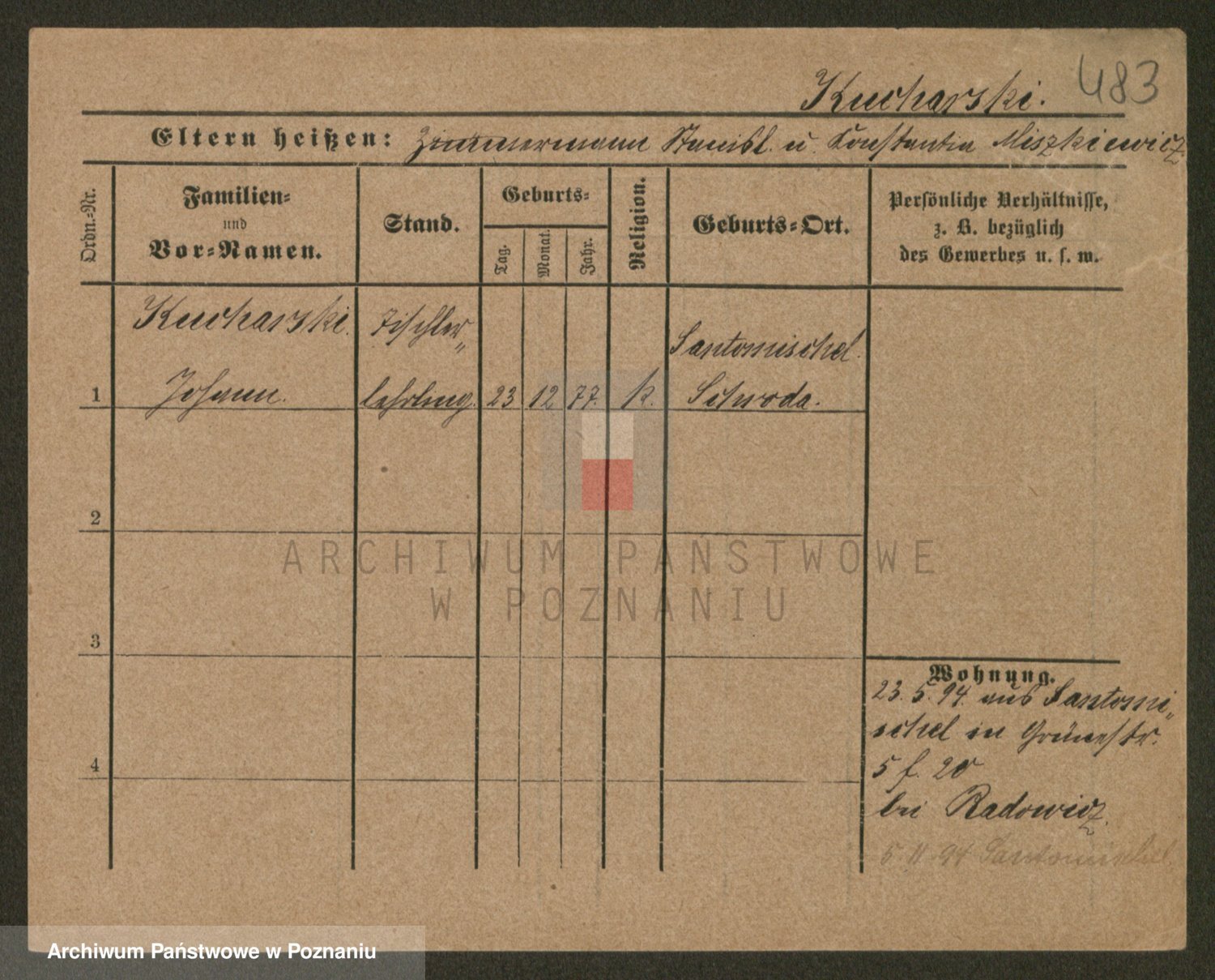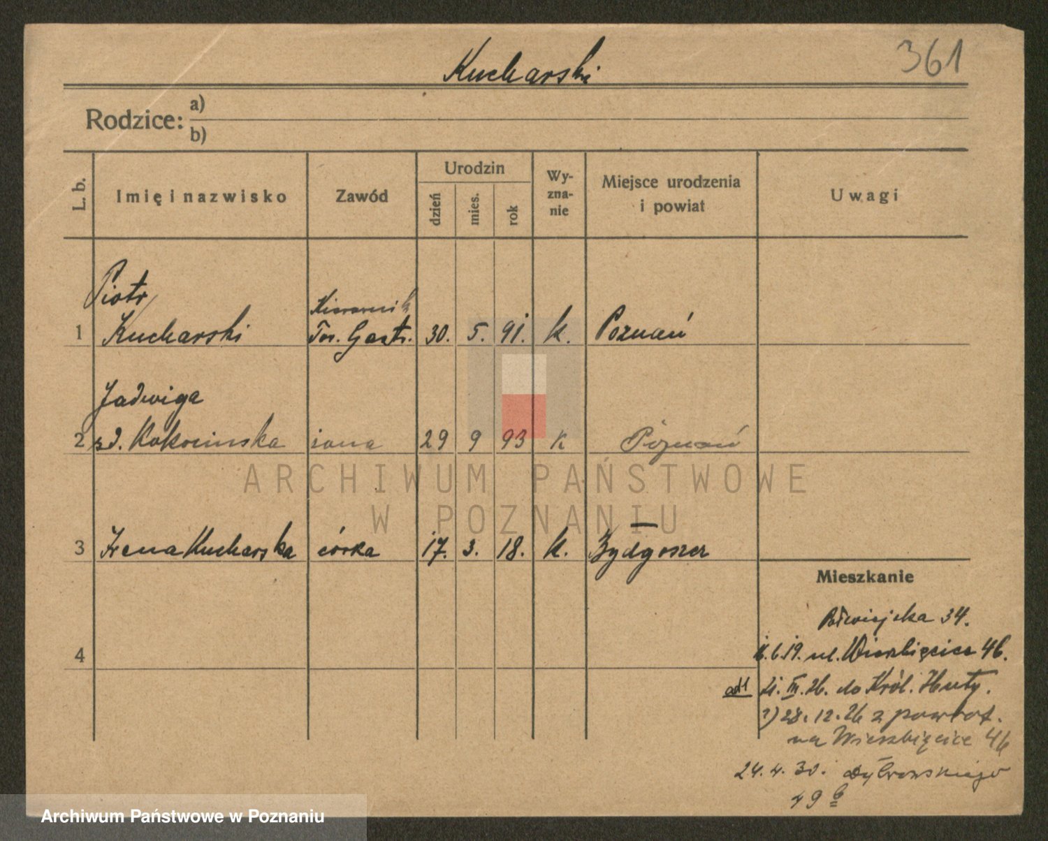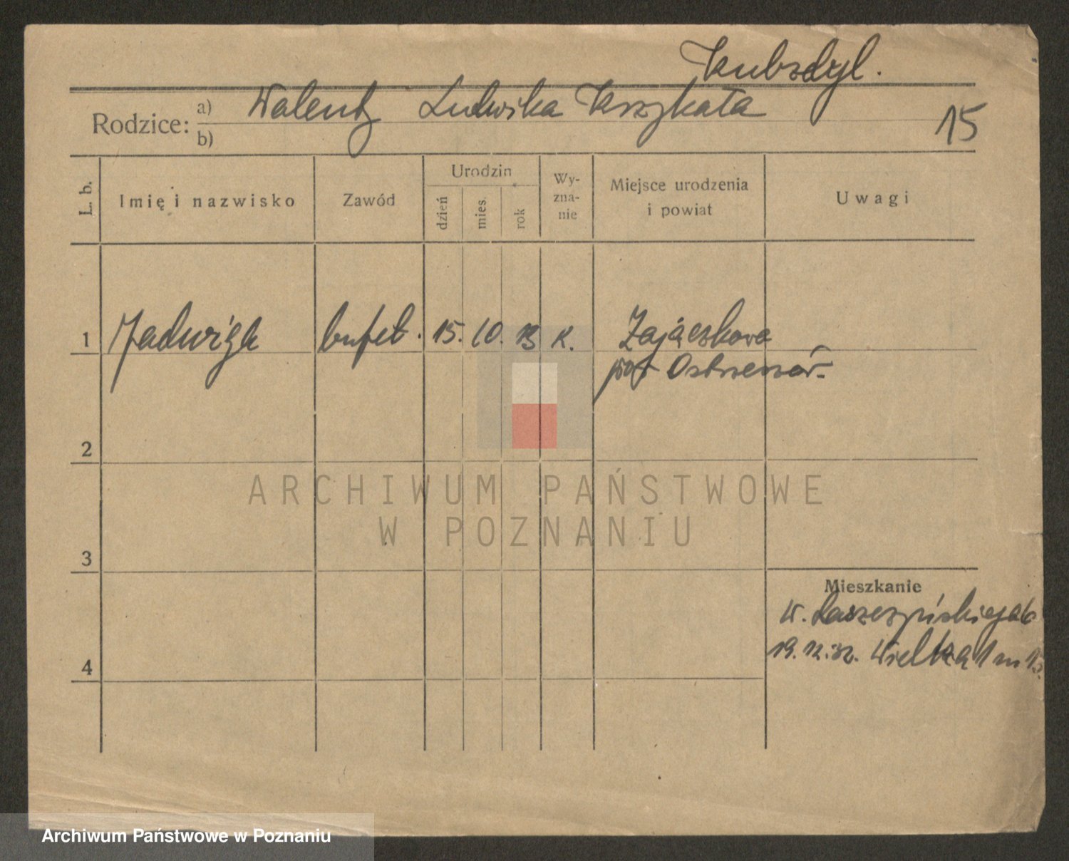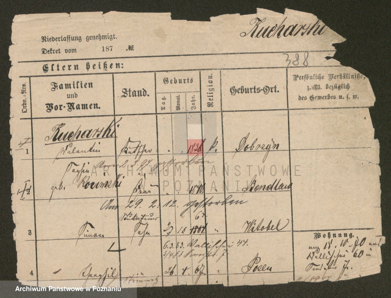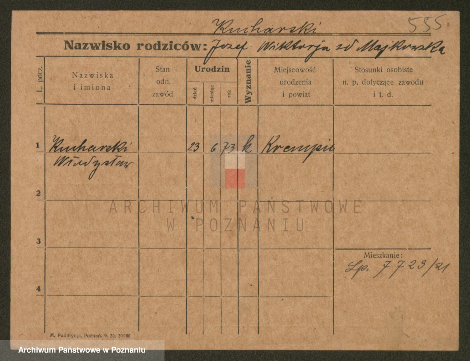 Podgląd karty osobowej dostępny jest po kliknięciu na nazwisko lub ikonkę karty. Można dokonywać powiększenia (ikony na górze) lub przechodzić między kolejnymi skanami (strzałki po bokach).