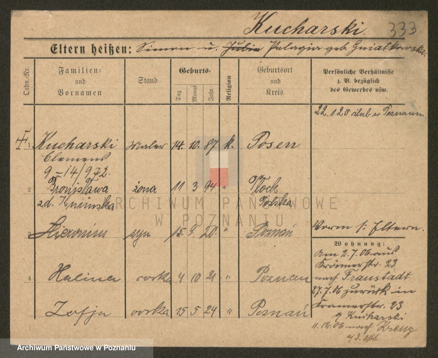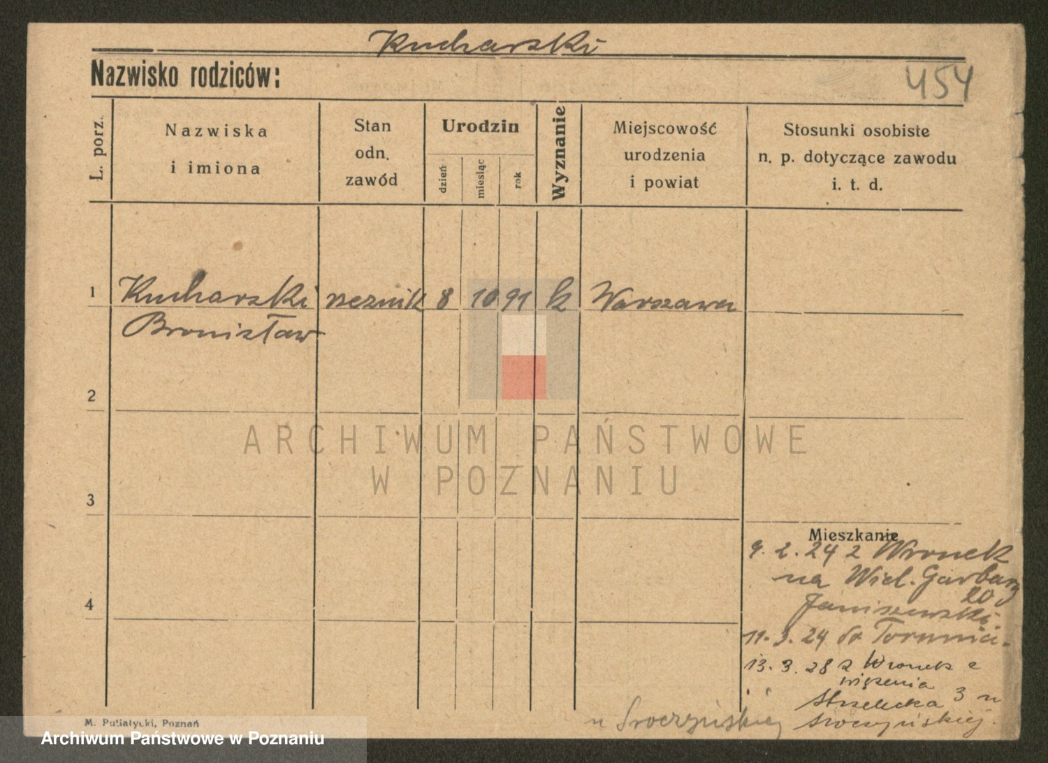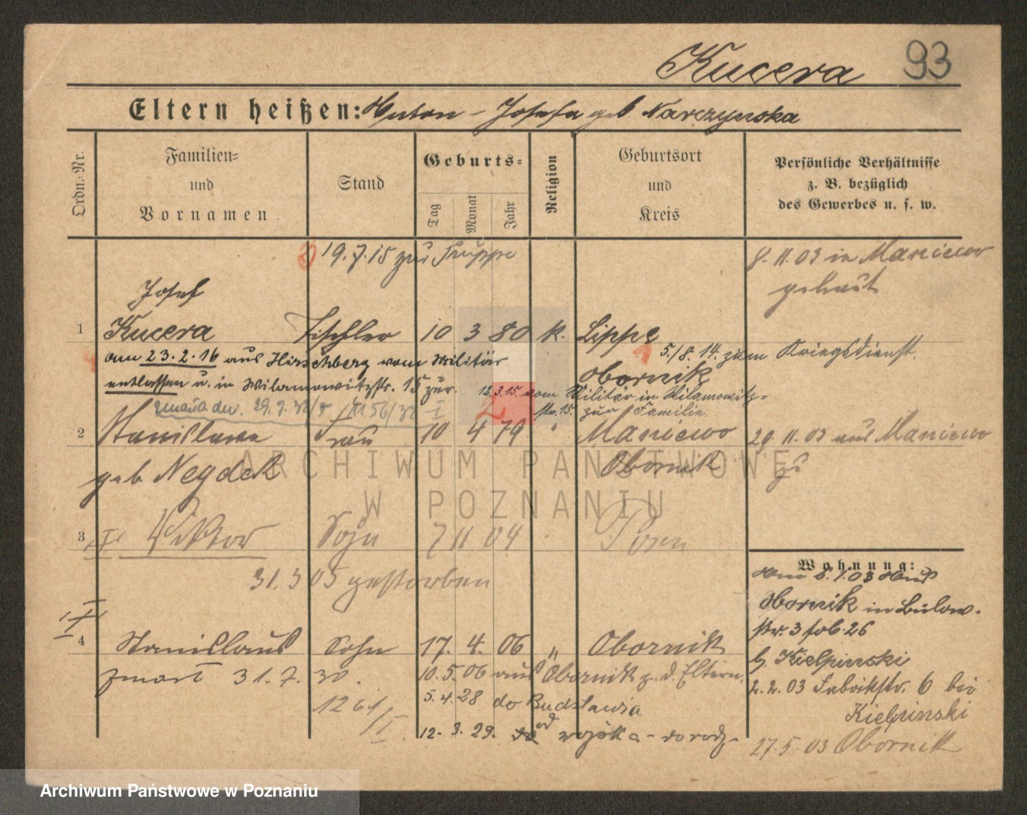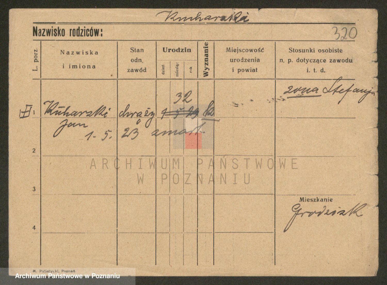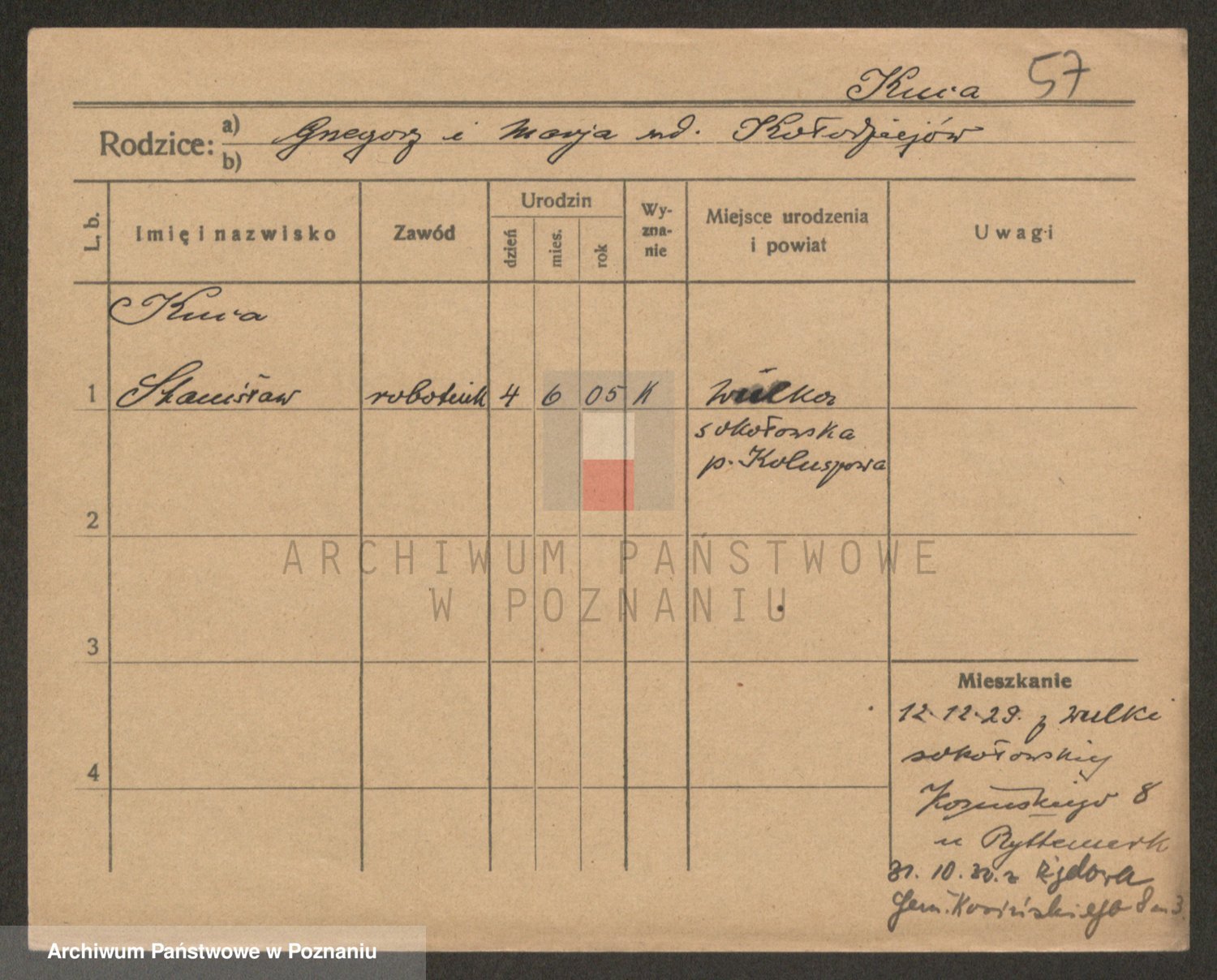 Podgląd karty osobowej dostępny jest po kliknięciu na nazwisko lub ikonkę karty. Można dokonywać powiększenia (ikony na górze) lub przechodzić między kolejnymi skanami (strzałki po bokach).