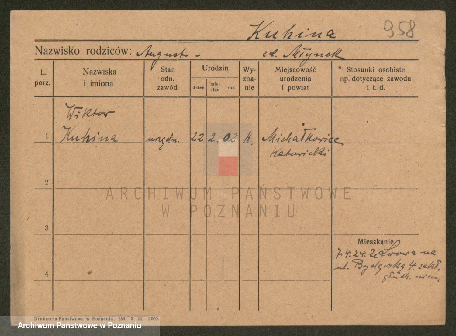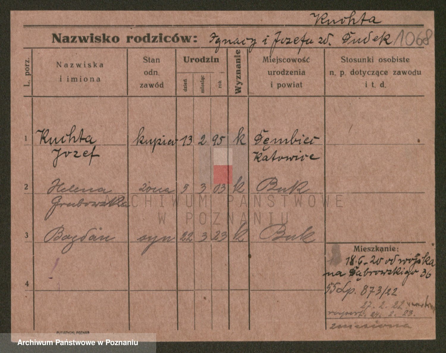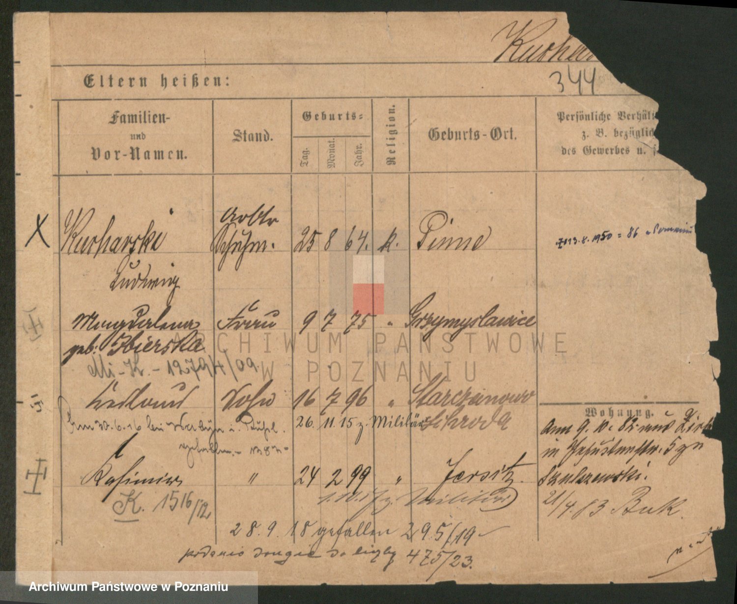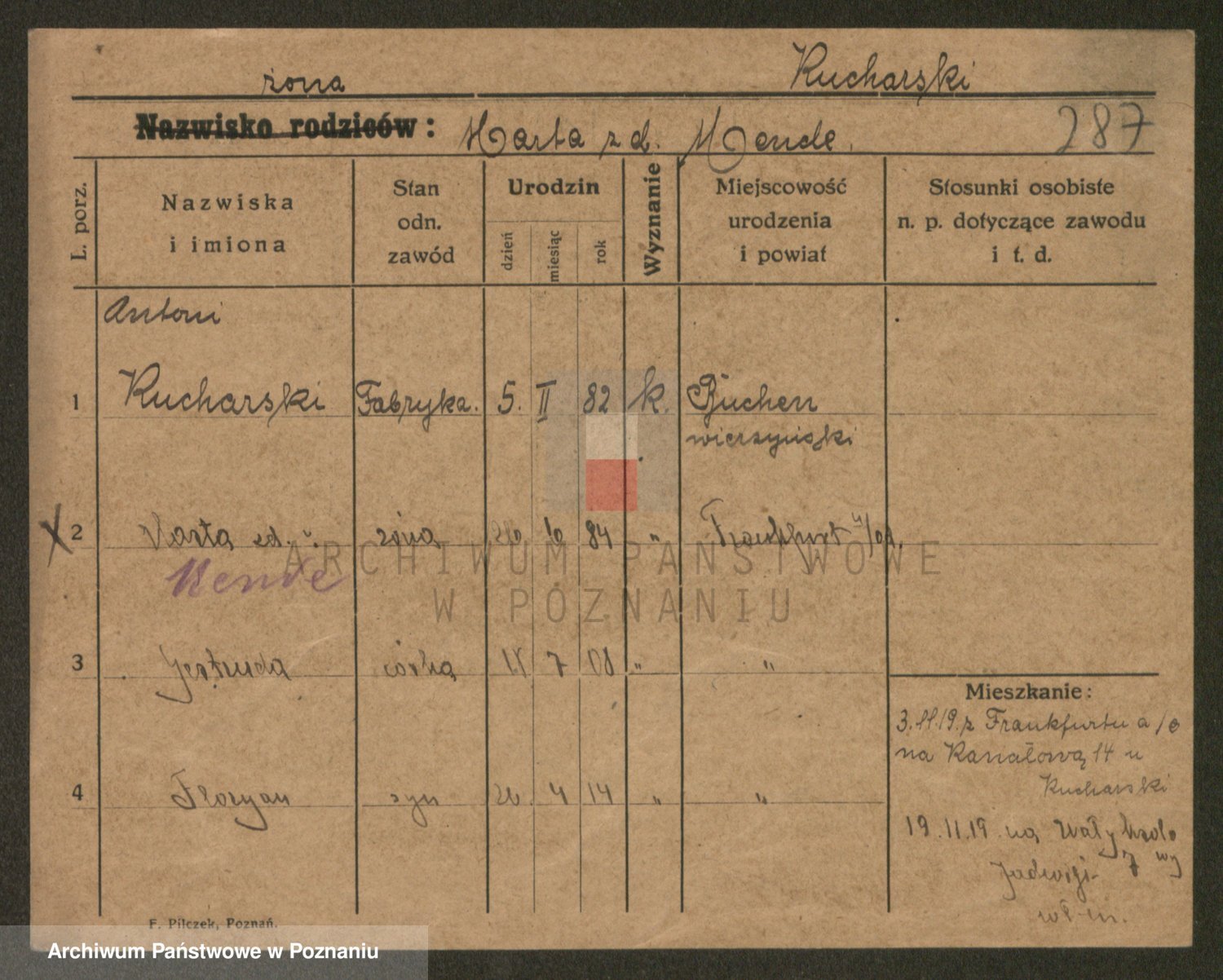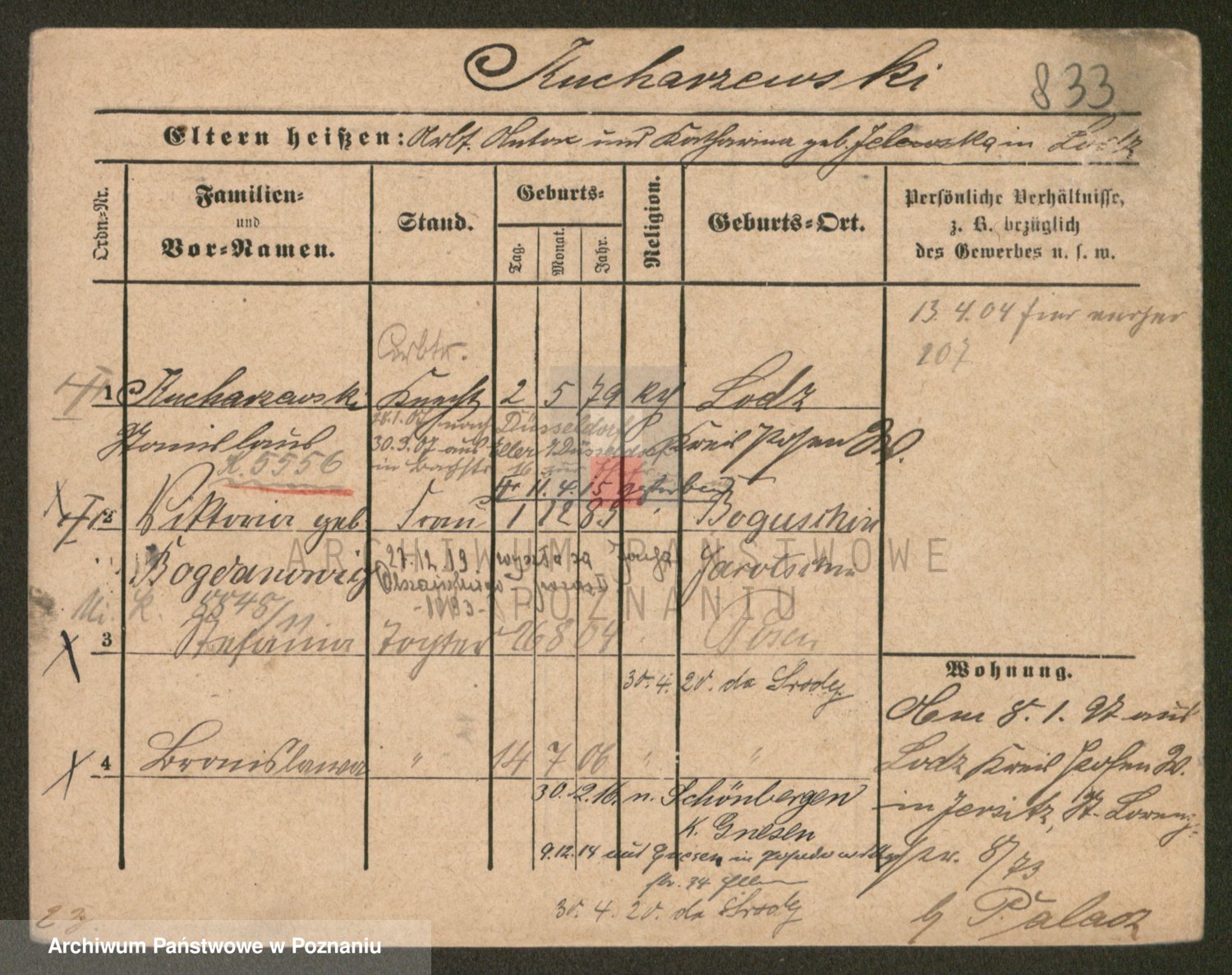 Podgląd karty osobowej dostępny jest po kliknięciu na nazwisko lub ikonkę karty. Można dokonywać powiększenia (ikony na górze) lub przechodzić między kolejnymi skanami (strzałki po bokach).