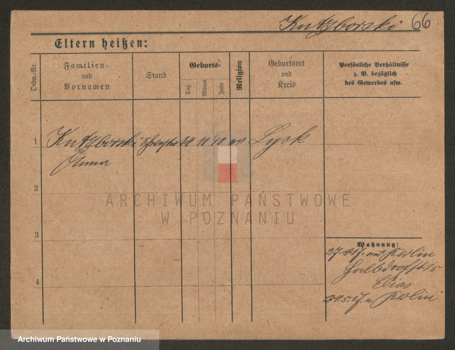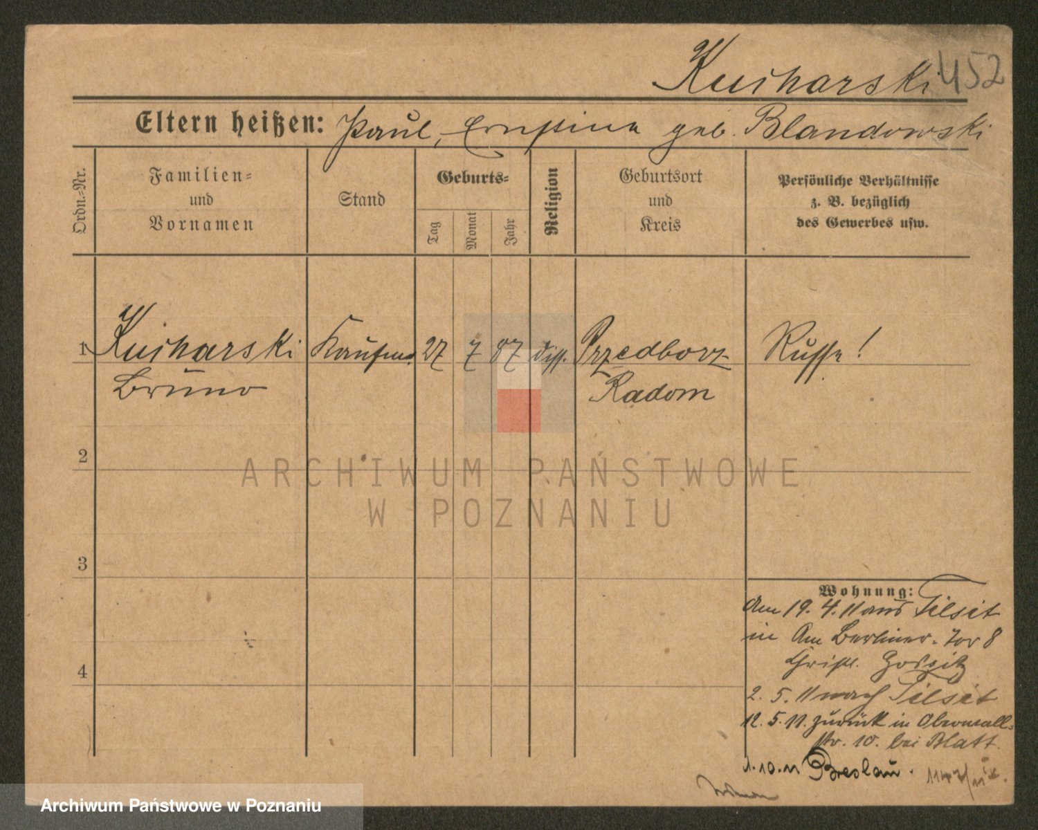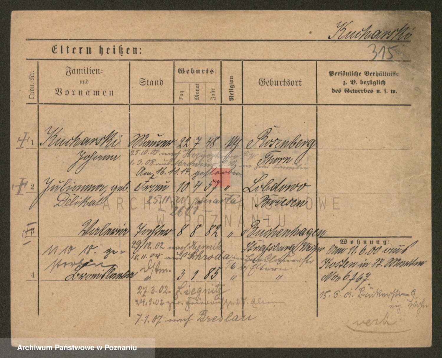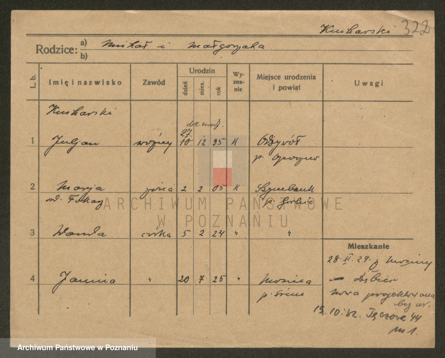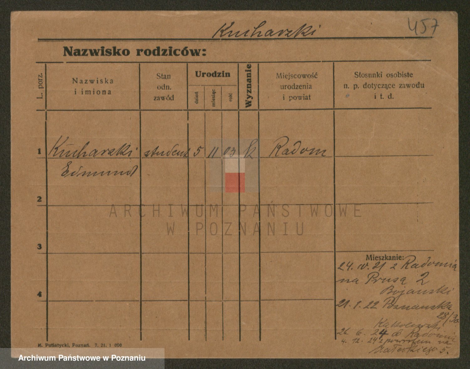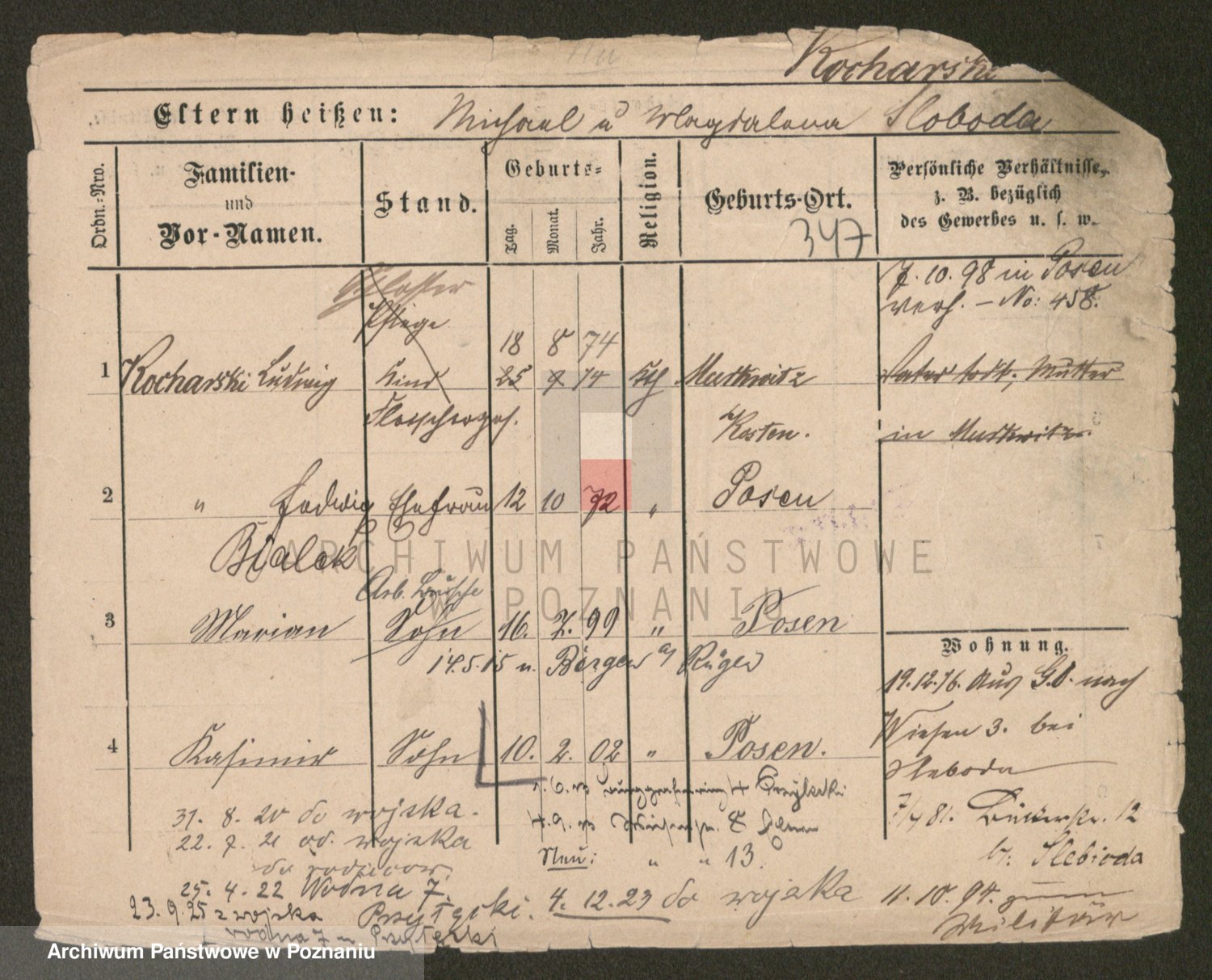 Podgląd karty osobowej dostępny jest po kliknięciu na nazwisko lub ikonkę karty. Można dokonywać powiększenia (ikony na górze) lub przechodzić między kolejnymi skanami (strzałki po bokach).
