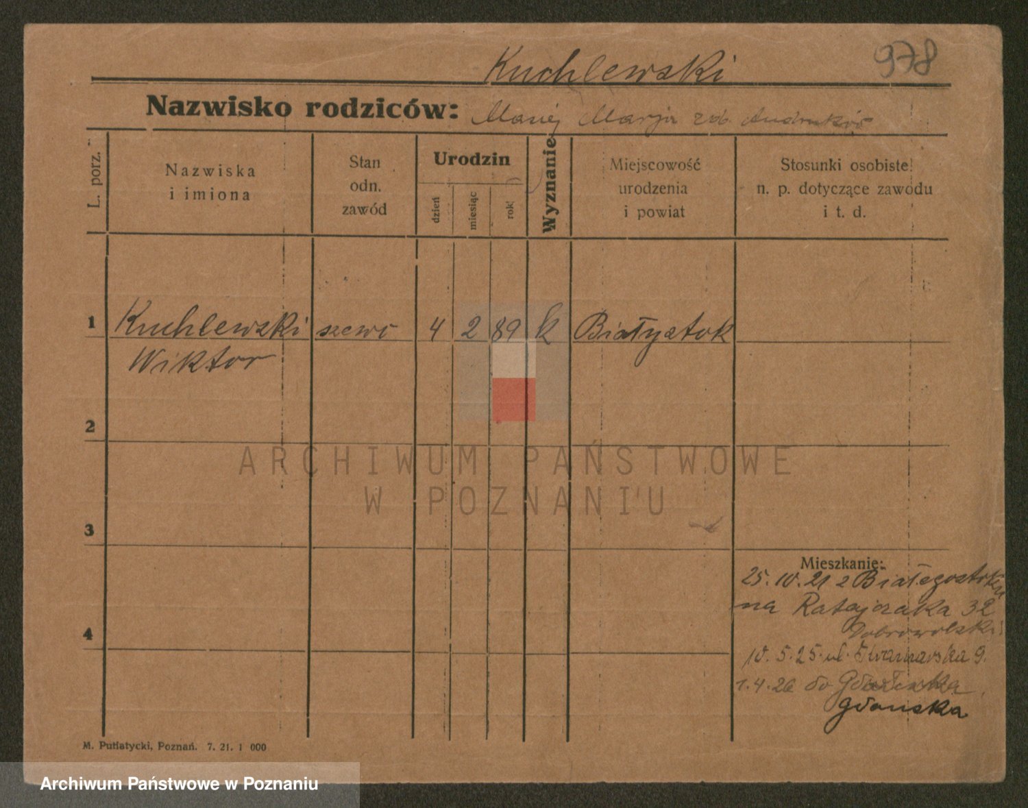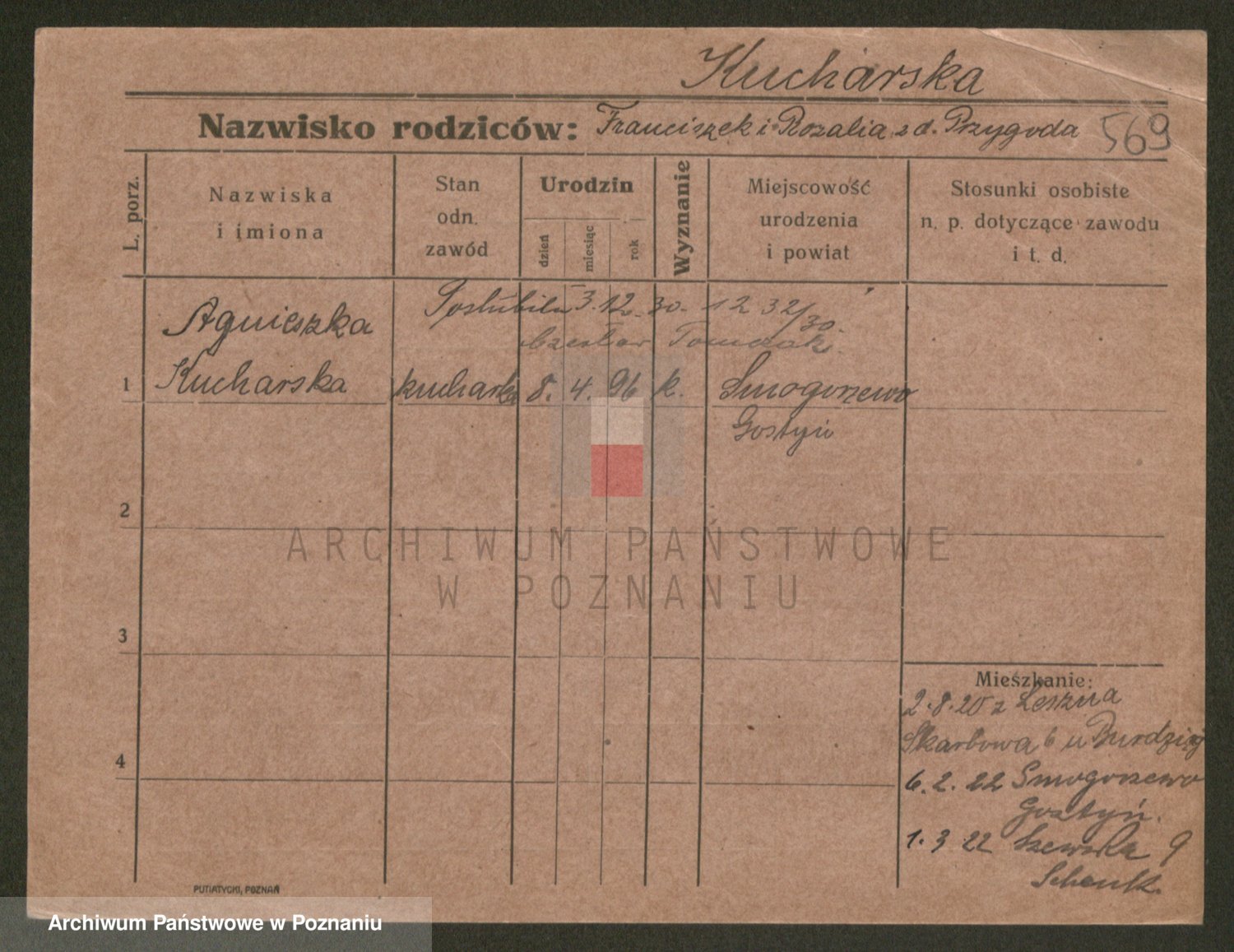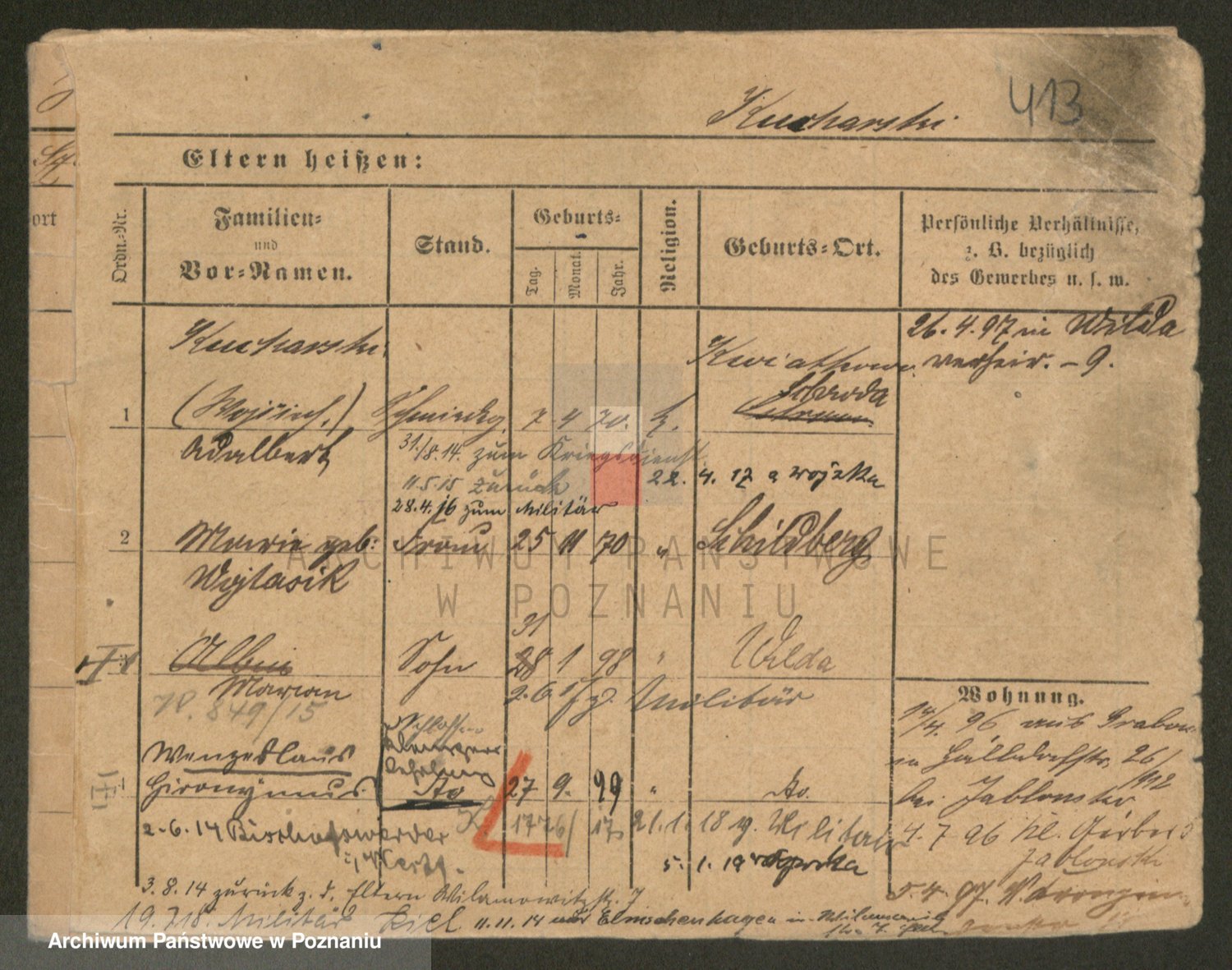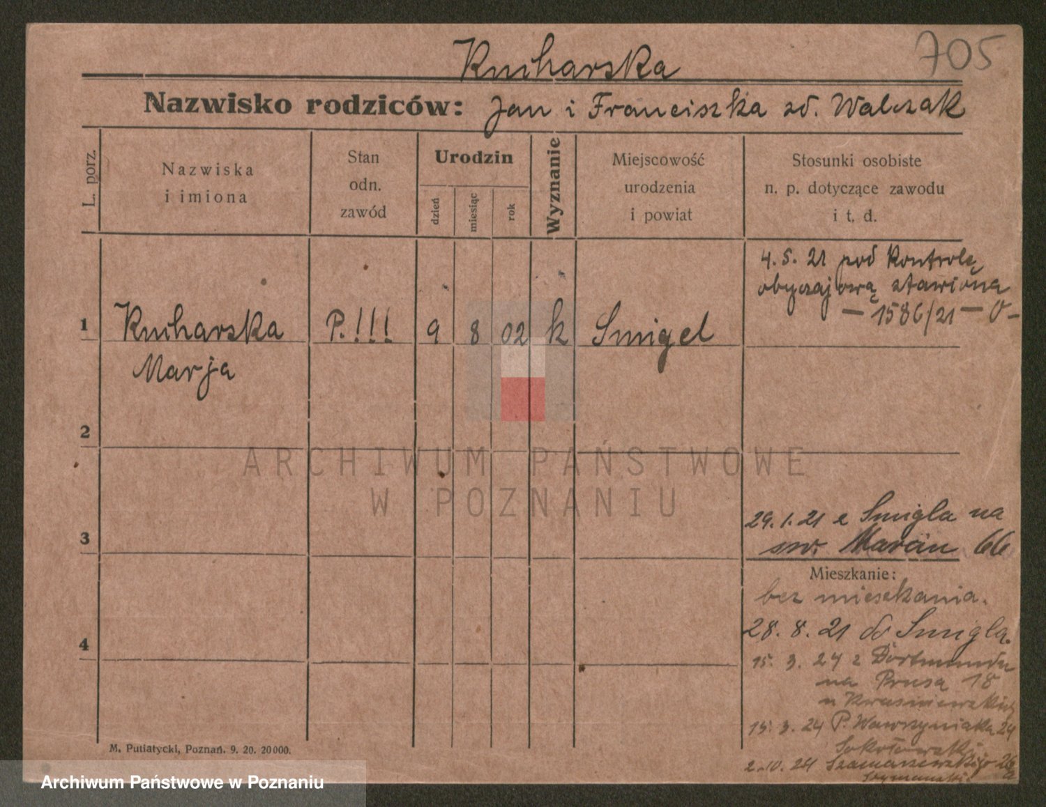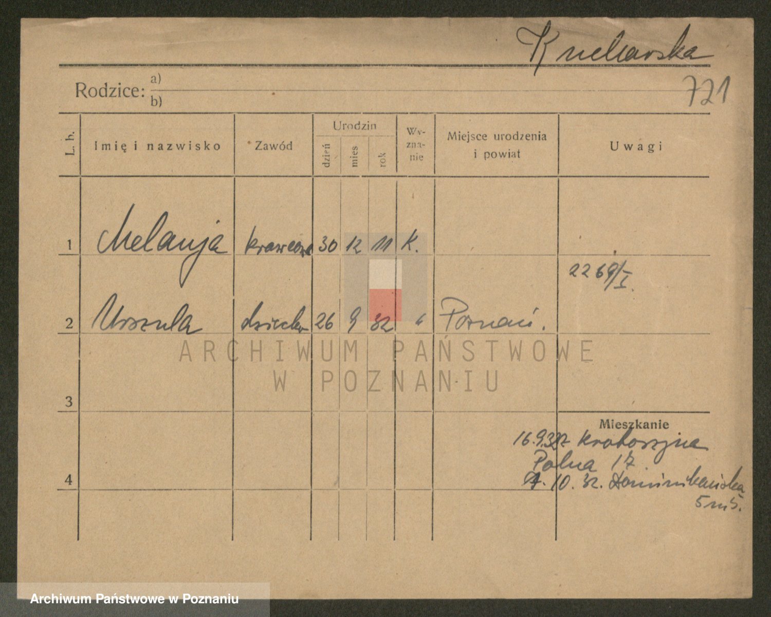 Podgląd karty osobowej dostępny jest po kliknięciu na nazwisko lub ikonkę karty. Można dokonywać powiększenia (ikony na górze) lub przechodzić między kolejnymi skanami (strzałki po bokach).