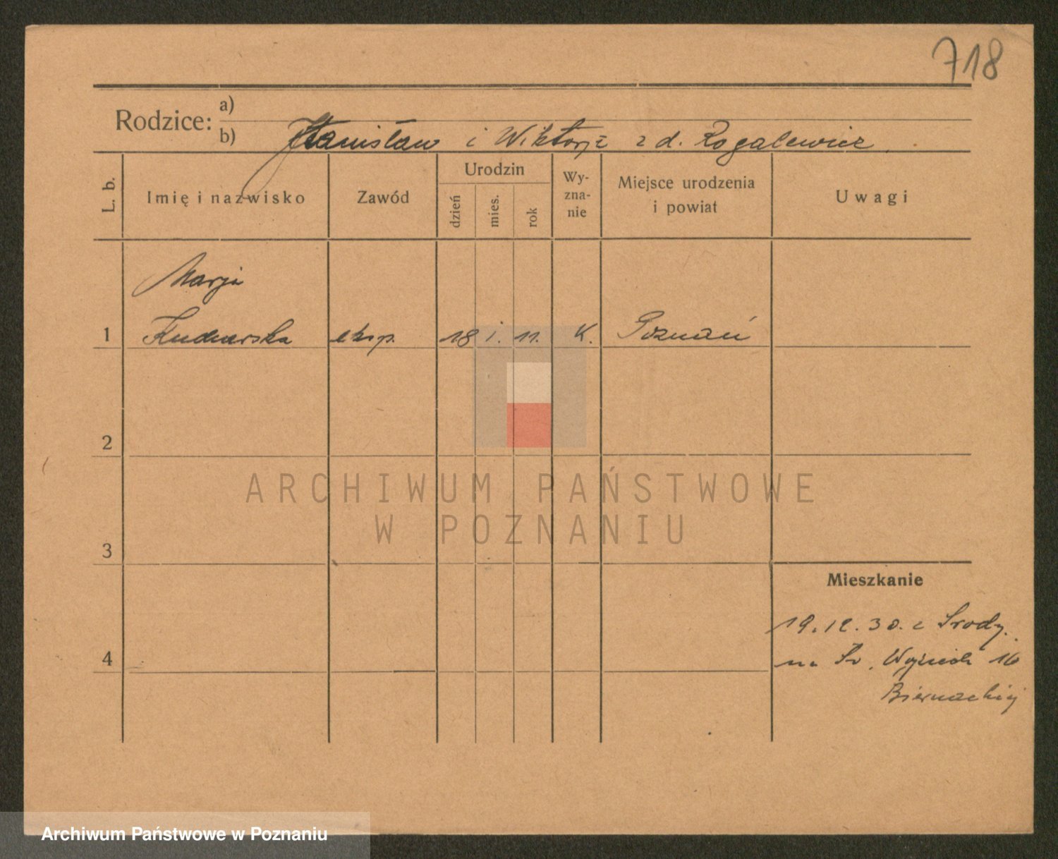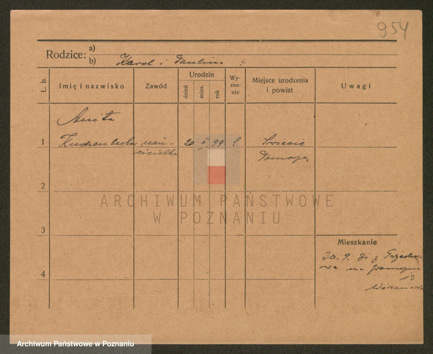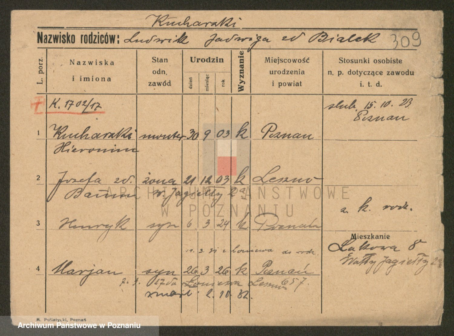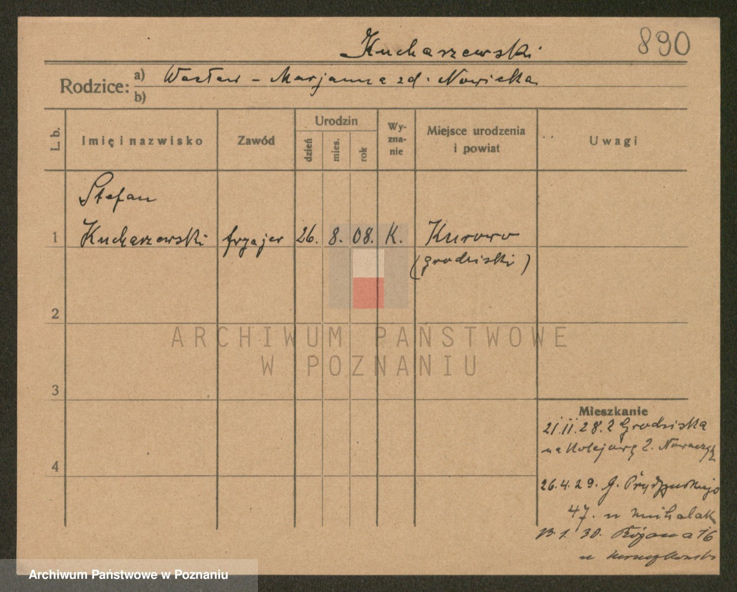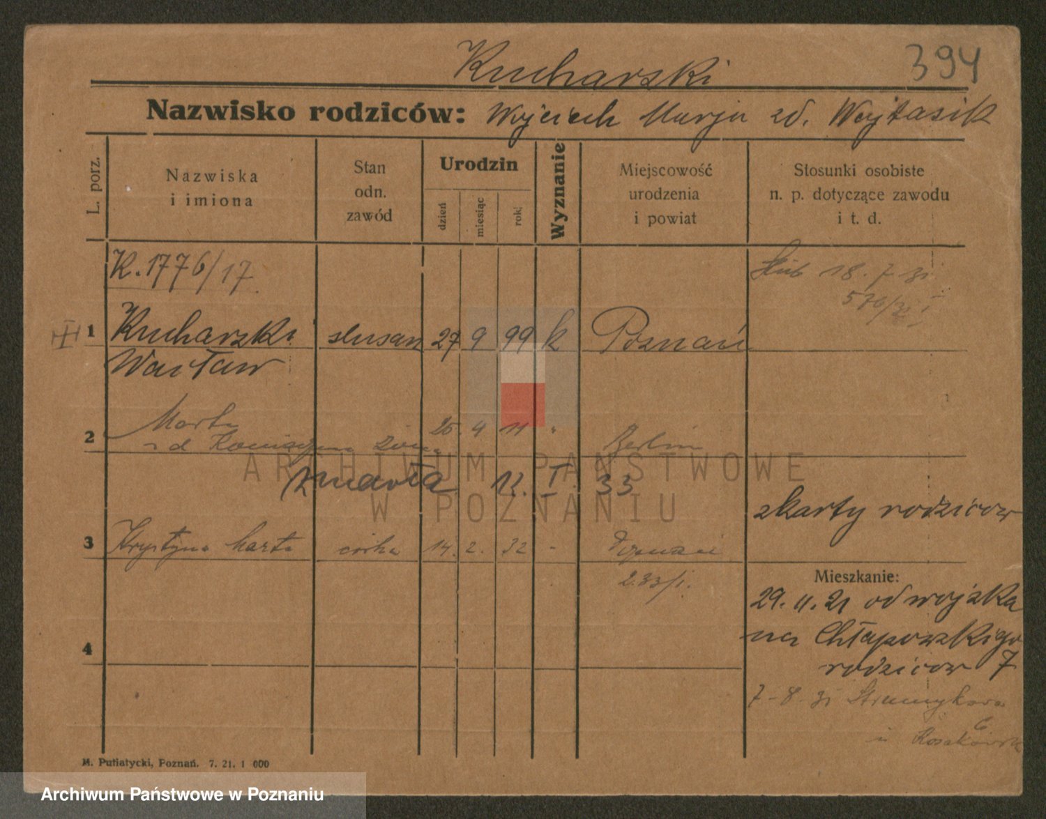 Podgląd karty osobowej dostępny jest po kliknięciu na nazwisko lub ikonkę karty. Można dokonywać powiększenia (ikony na górze) lub przechodzić między kolejnymi skanami (strzałki po bokach).