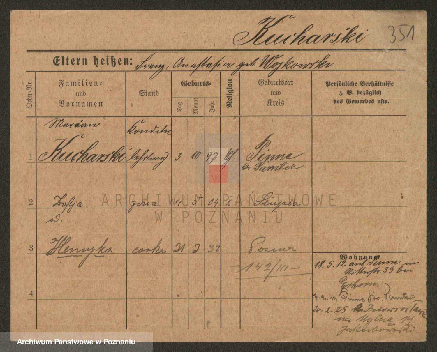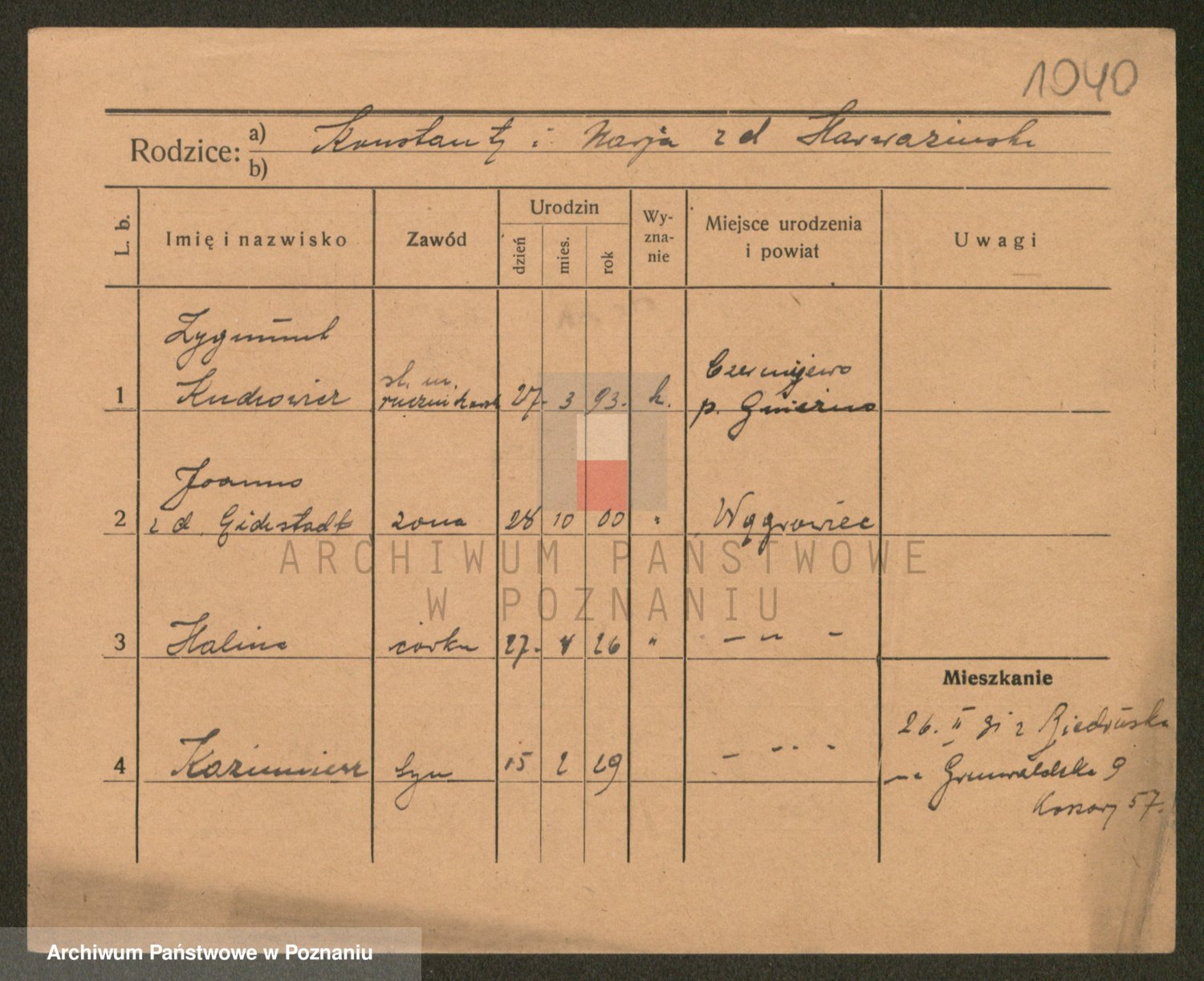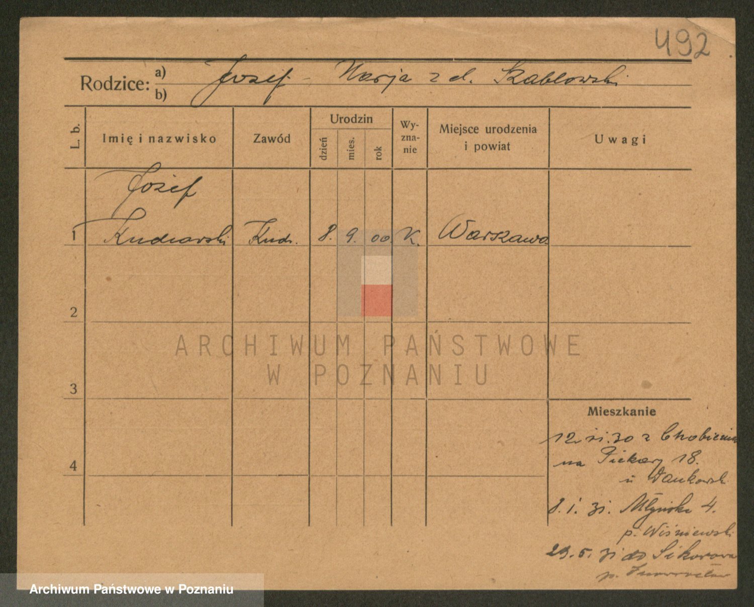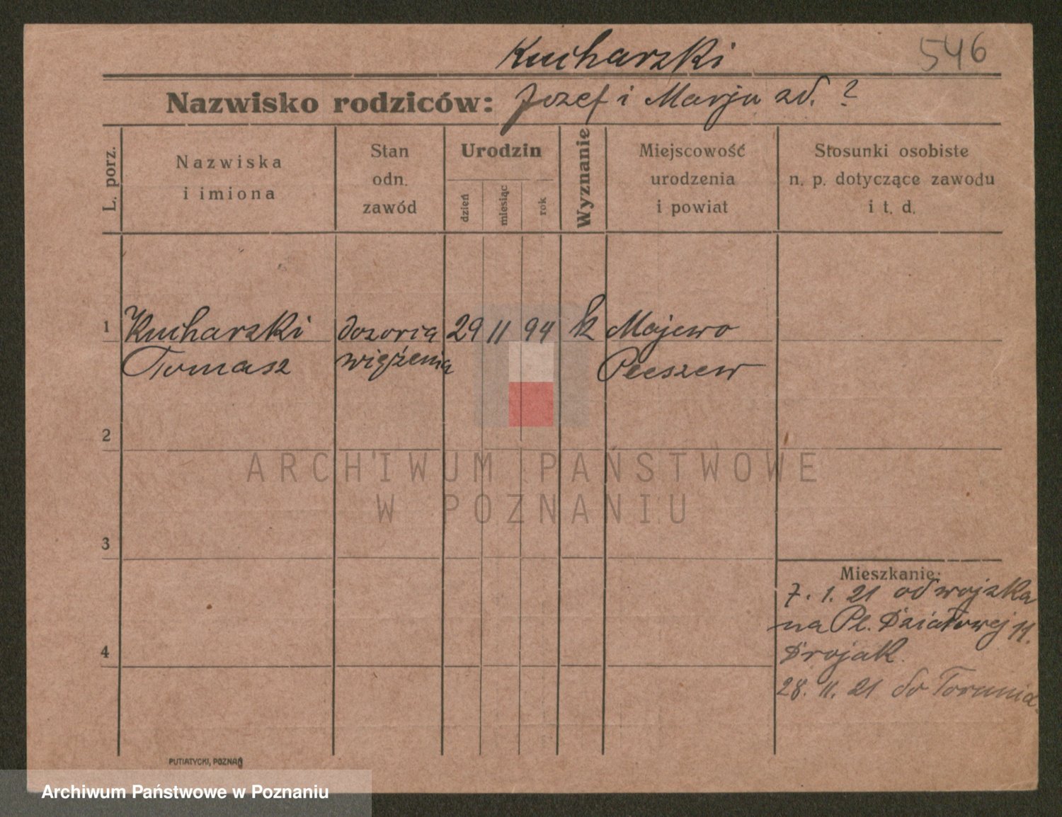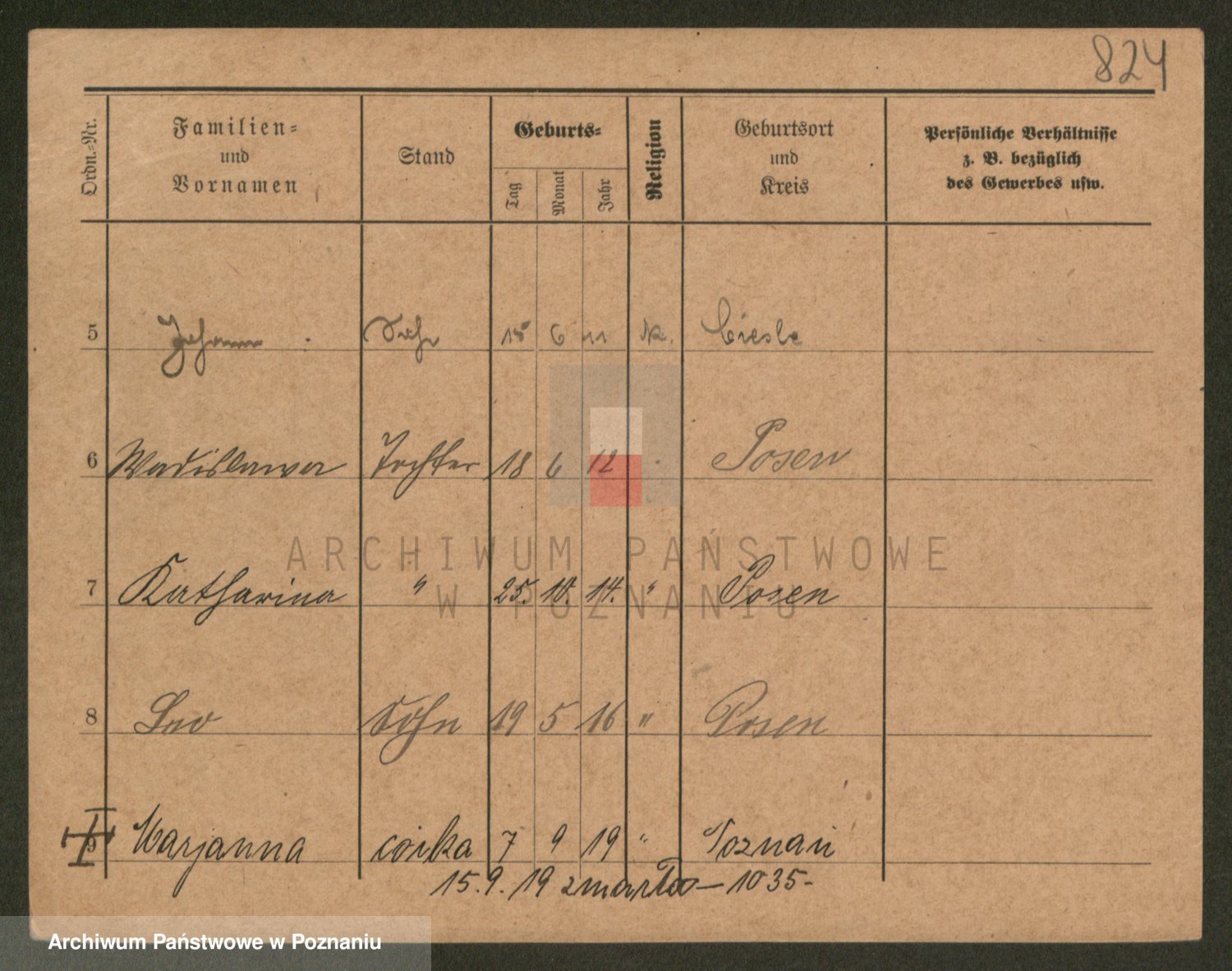 Podgląd karty osobowej dostępny jest po kliknięciu na nazwisko lub ikonkę karty. Można dokonywać powiększenia (ikony na górze) lub przechodzić między kolejnymi skanami (strzałki po bokach).