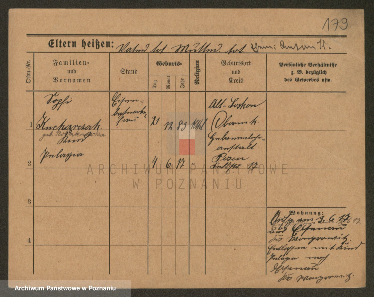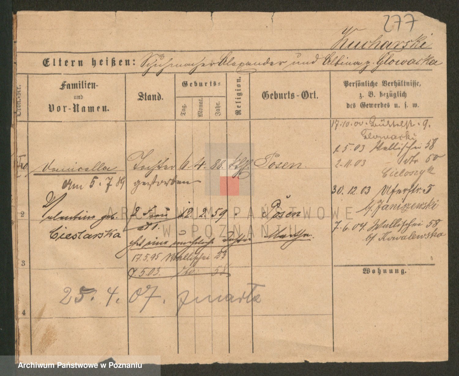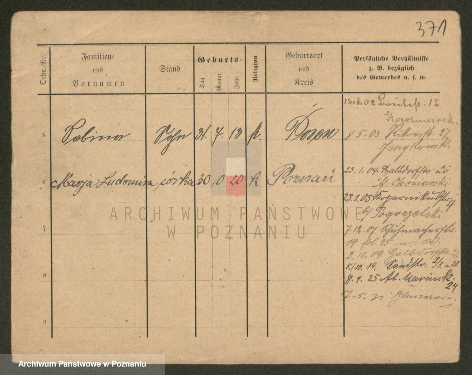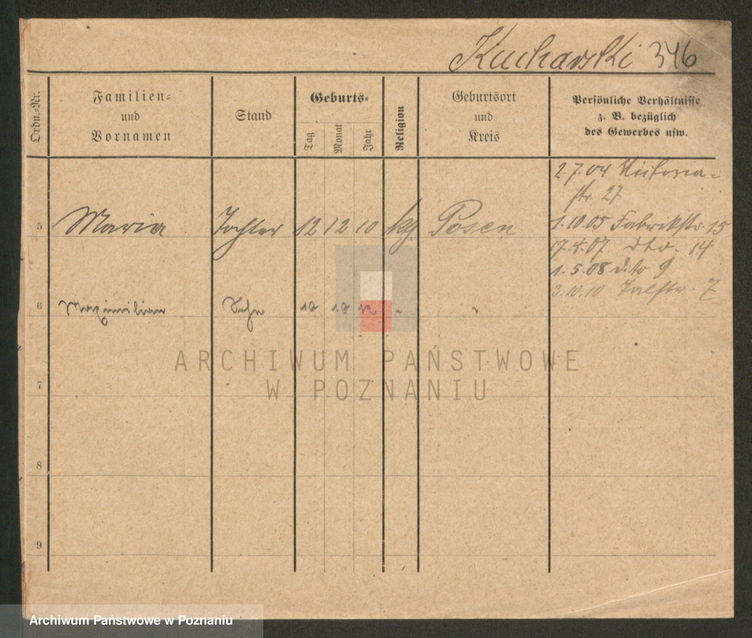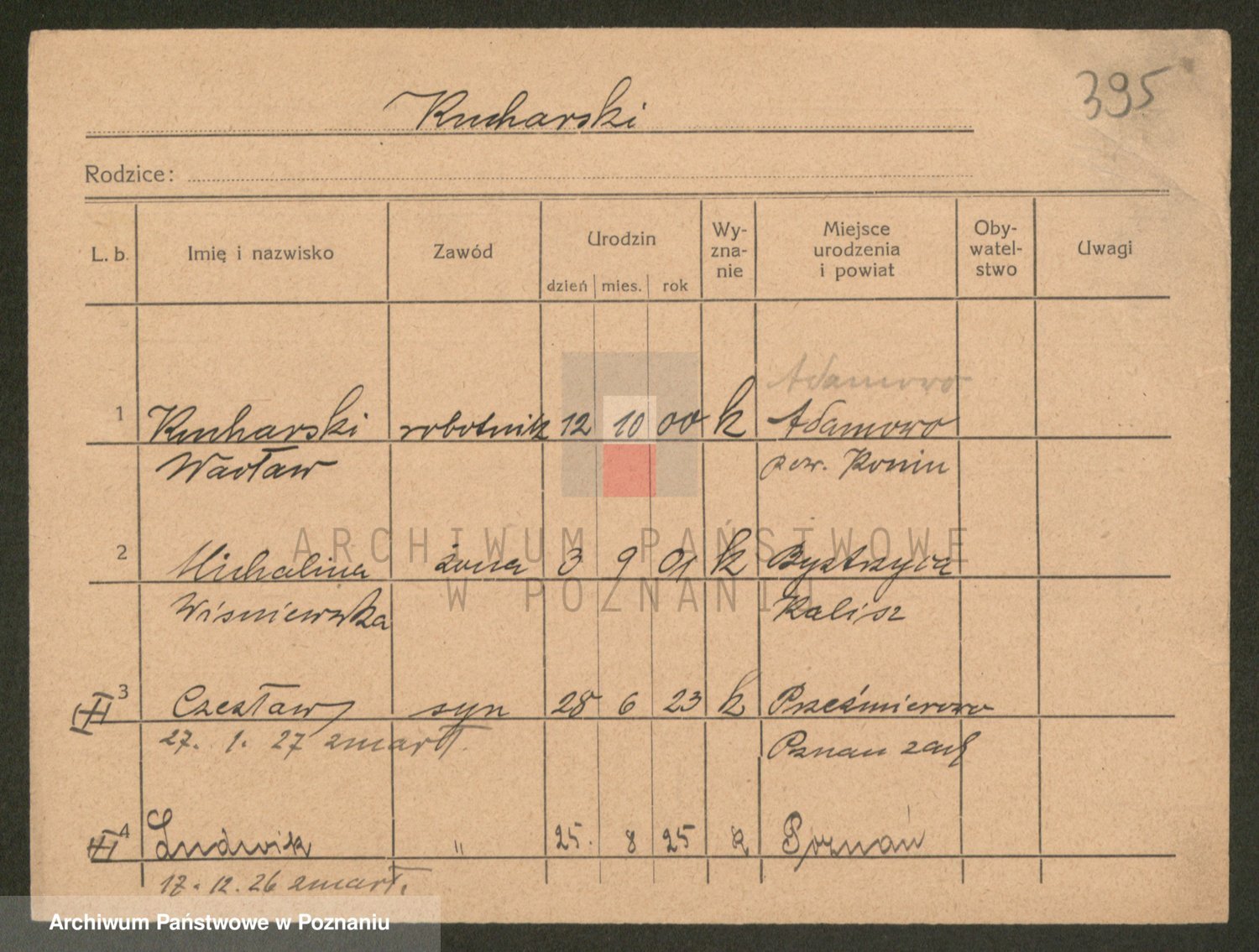 Podgląd karty osobowej dostępny jest po kliknięciu na nazwisko lub ikonkę karty. Można dokonywać powiększenia (ikony na górze) lub przechodzić między kolejnymi skanami (strzałki po bokach).