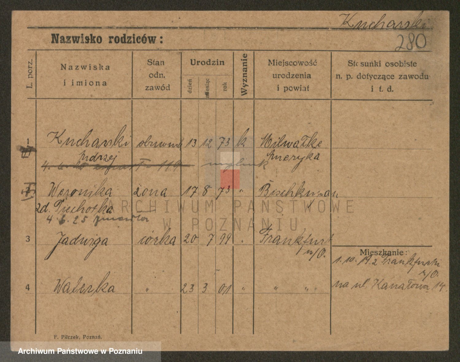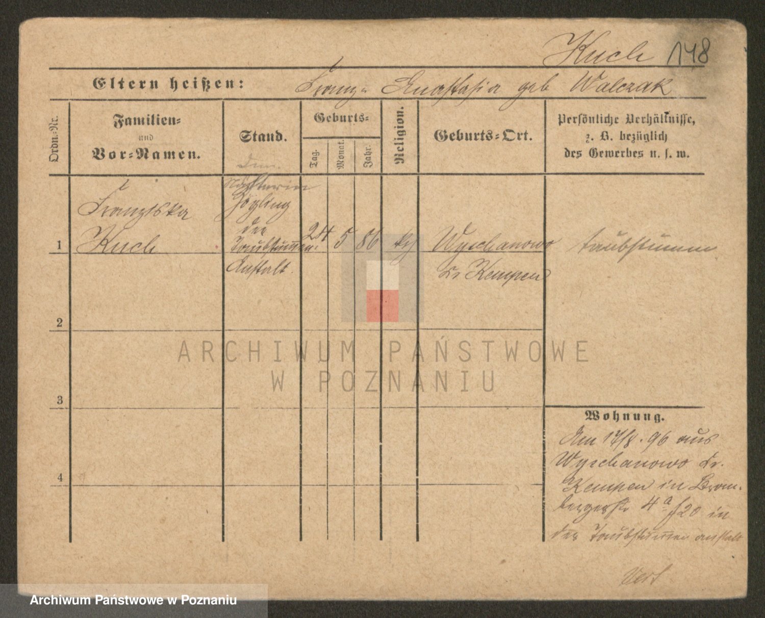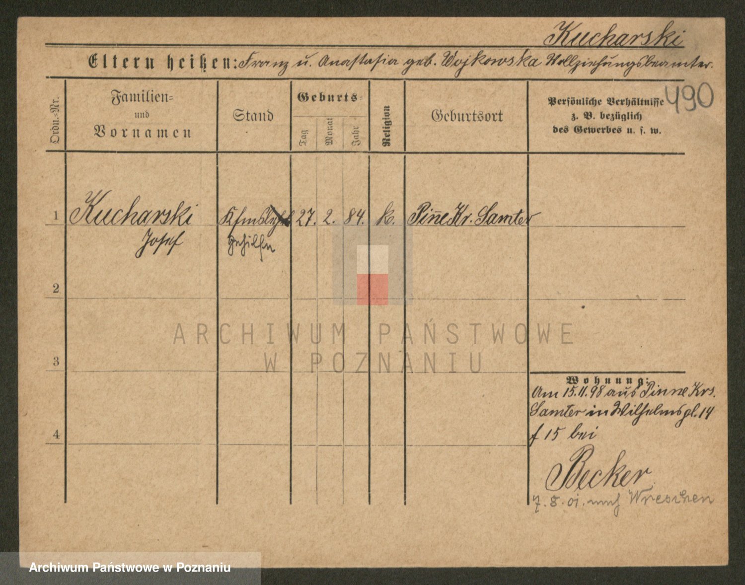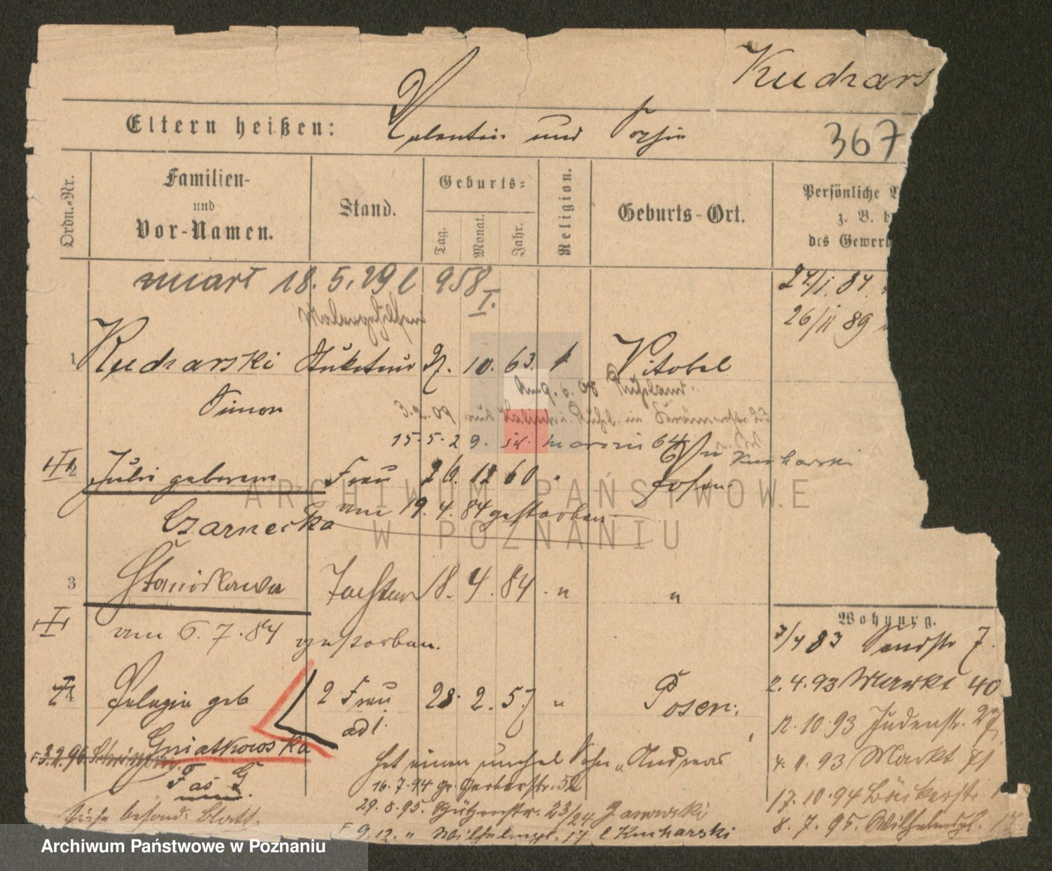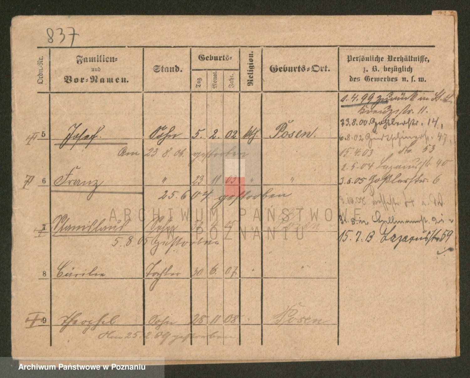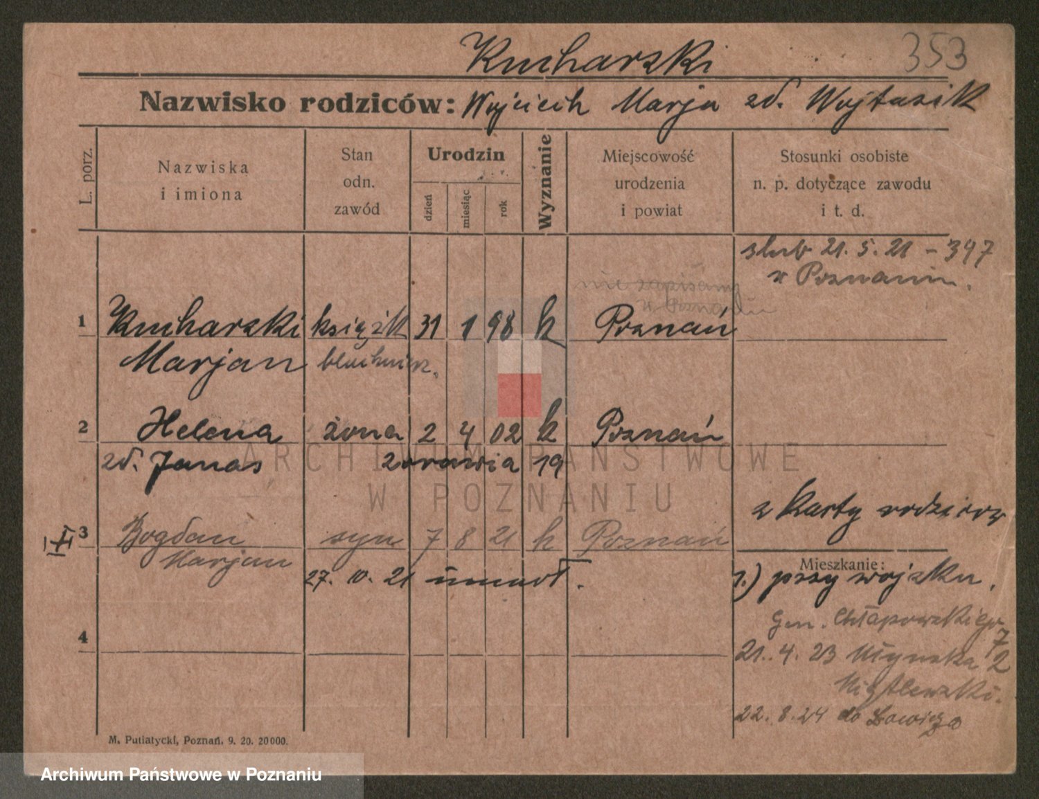 Podgląd karty osobowej dostępny jest po kliknięciu na nazwisko lub ikonkę karty. Można dokonywać powiększenia (ikony na górze) lub przechodzić między kolejnymi skanami (strzałki po bokach).