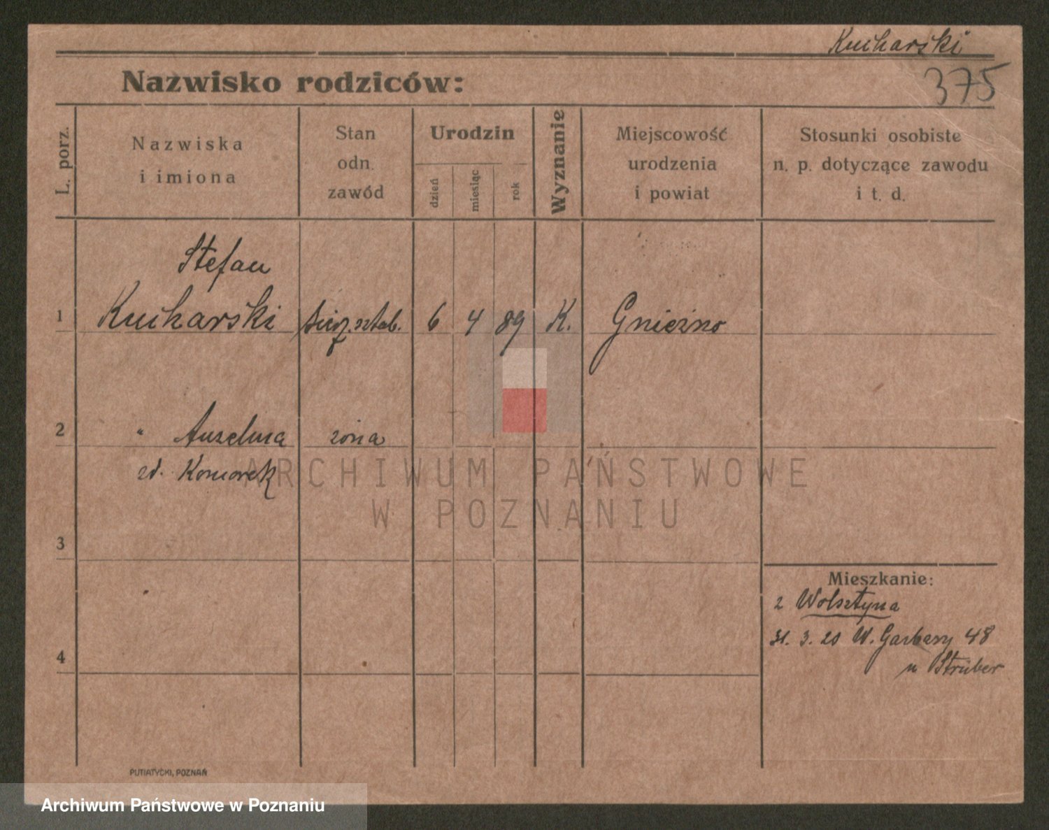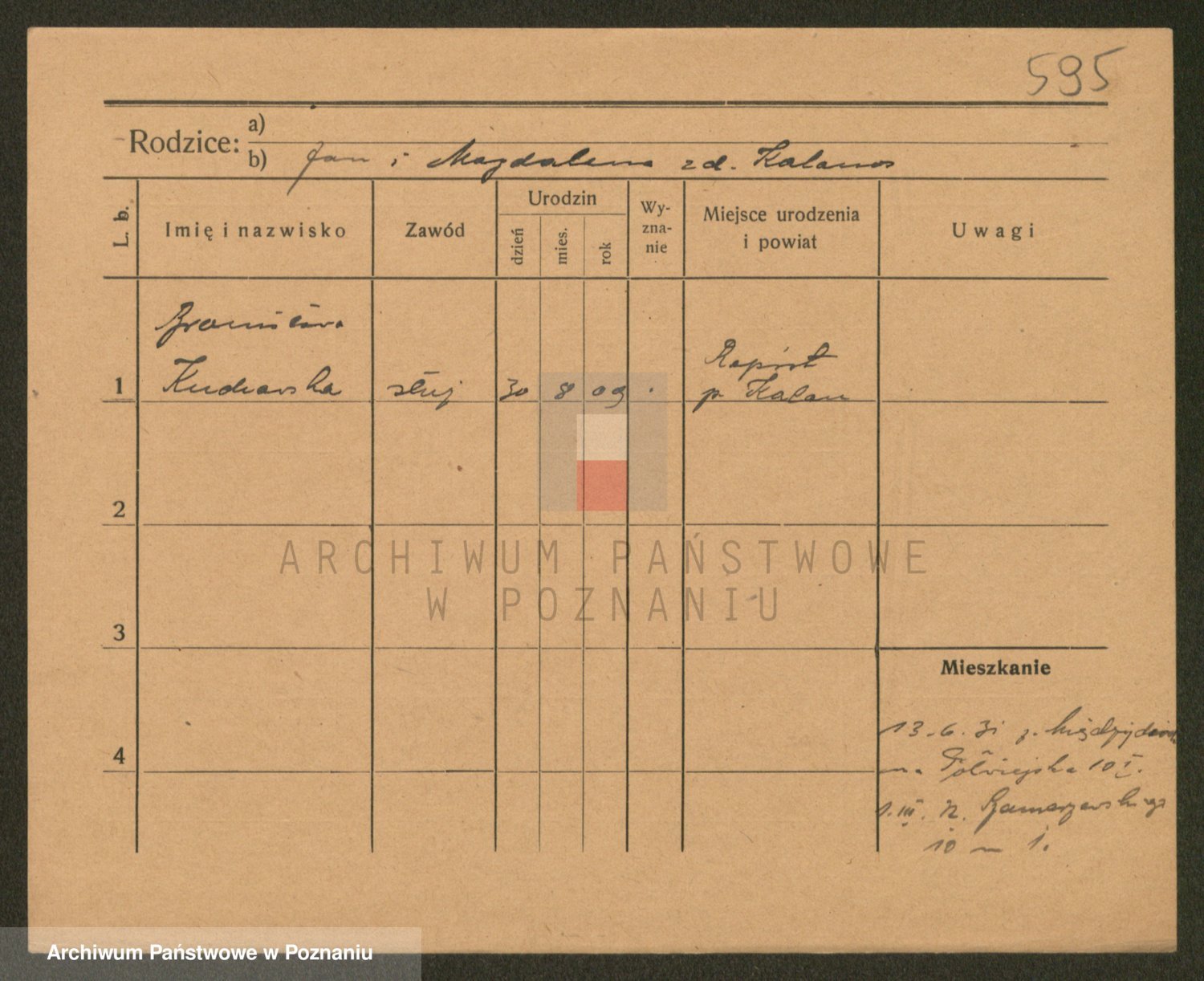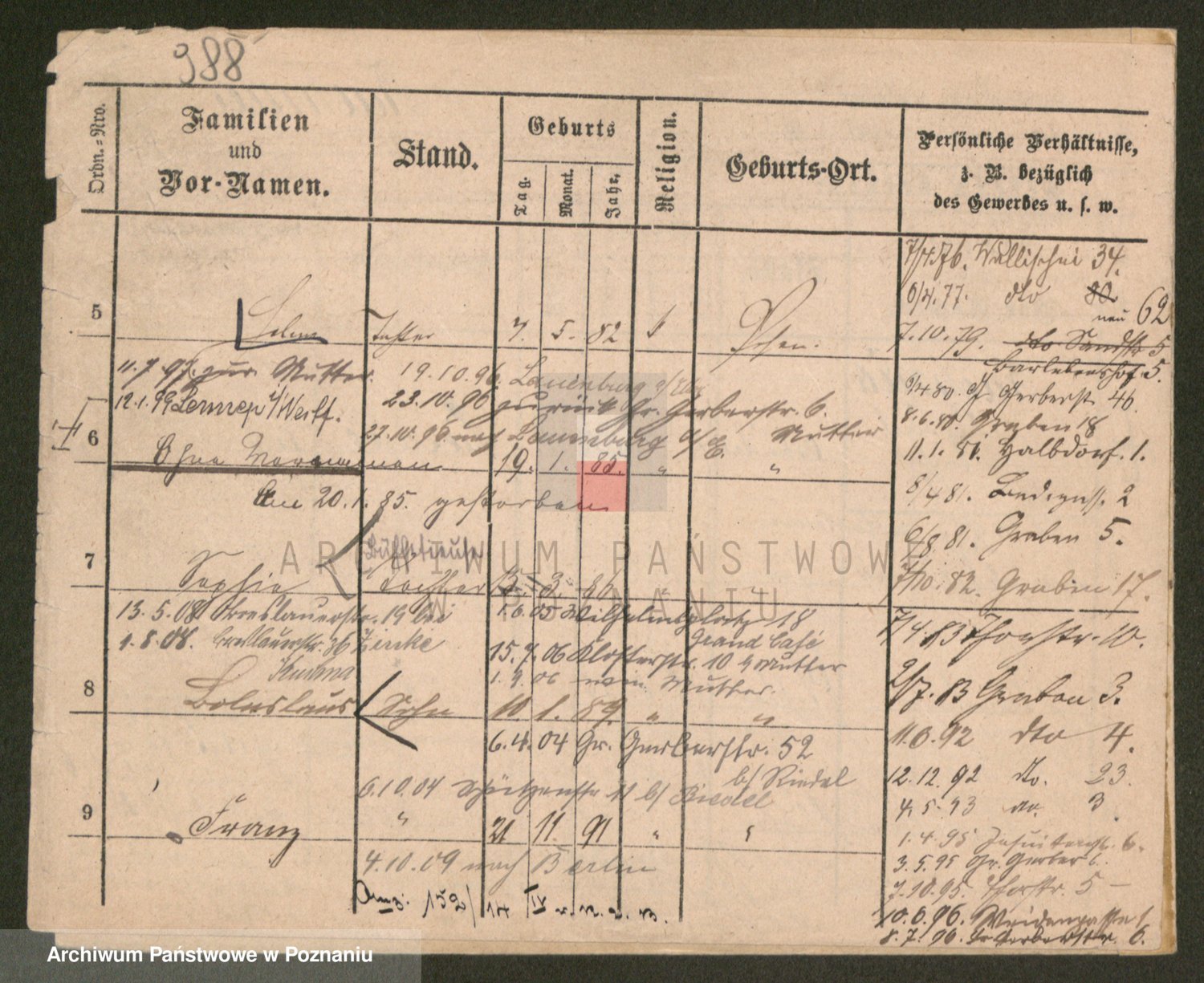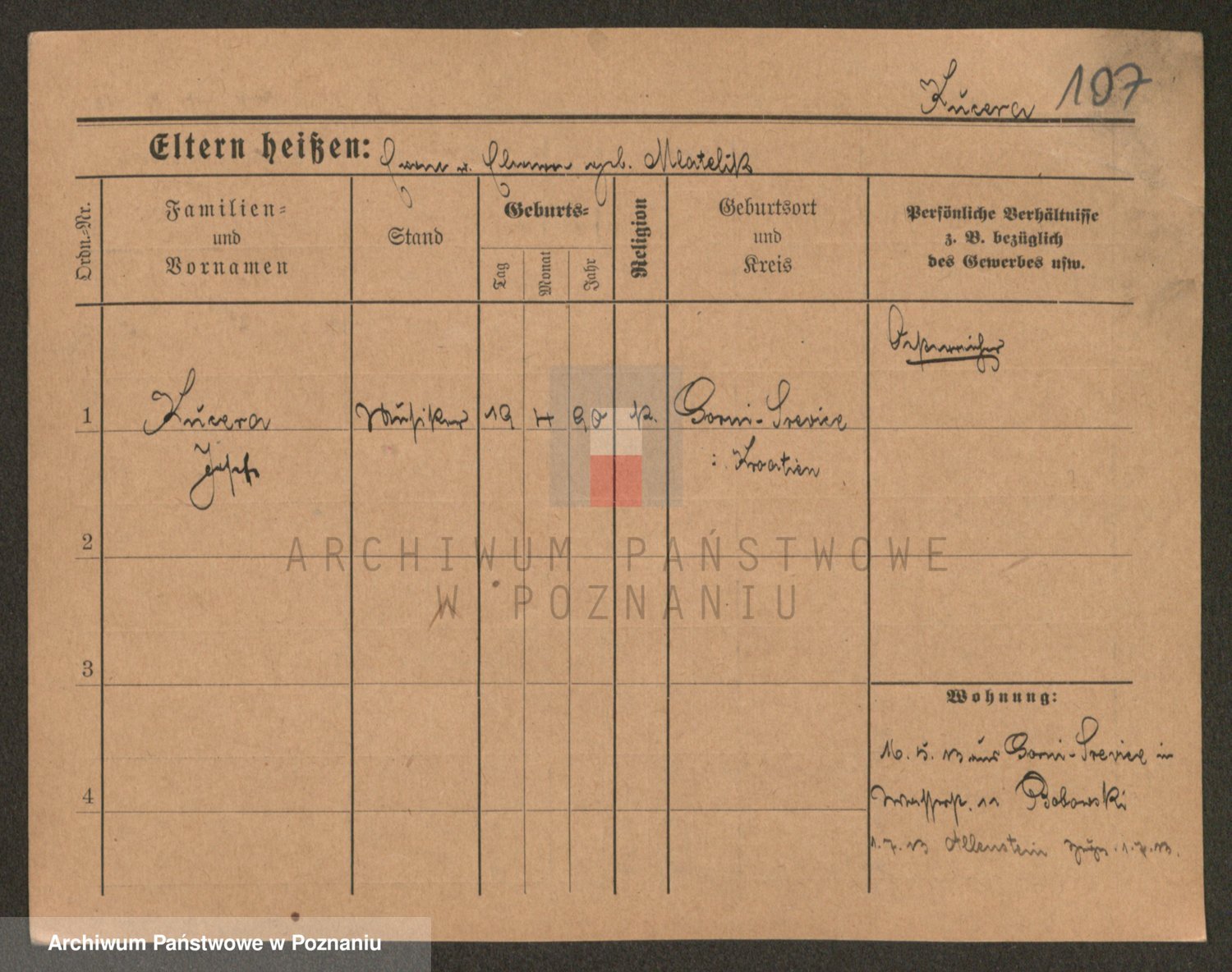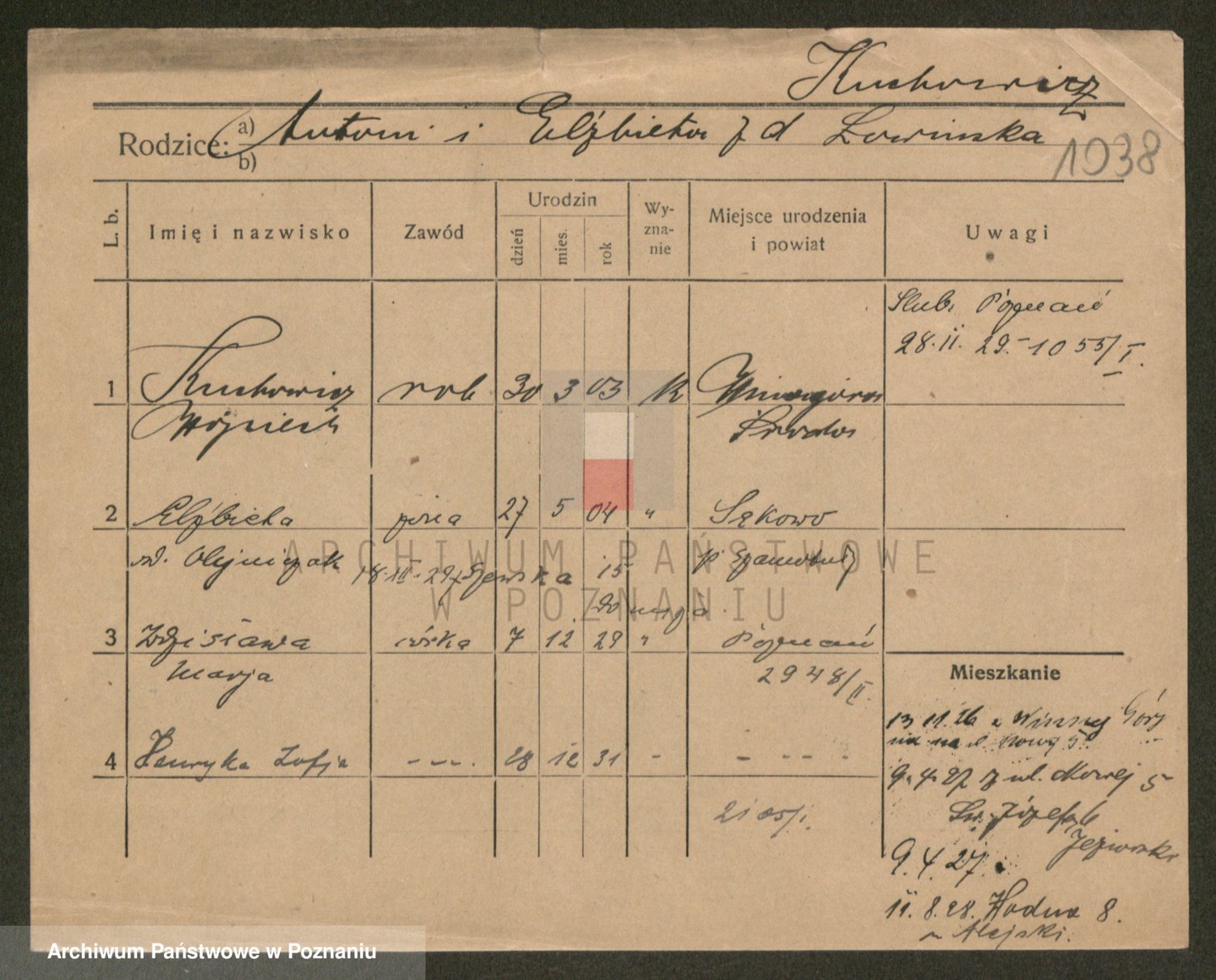 Podgląd karty osobowej dostępny jest po kliknięciu na nazwisko lub ikonkę karty. Można dokonywać powiększenia (ikony na górze) lub przechodzić między kolejnymi skanami (strzałki po bokach).