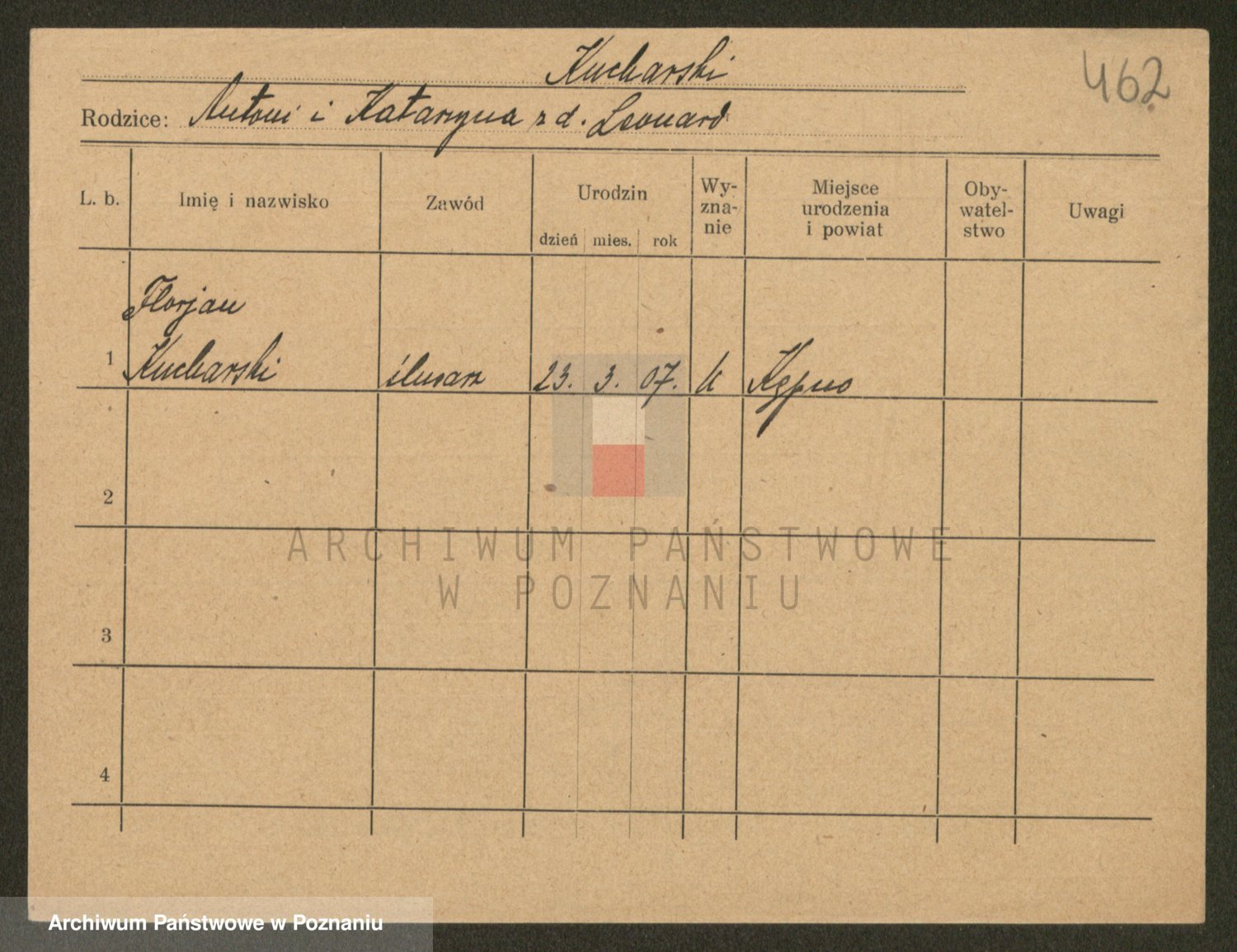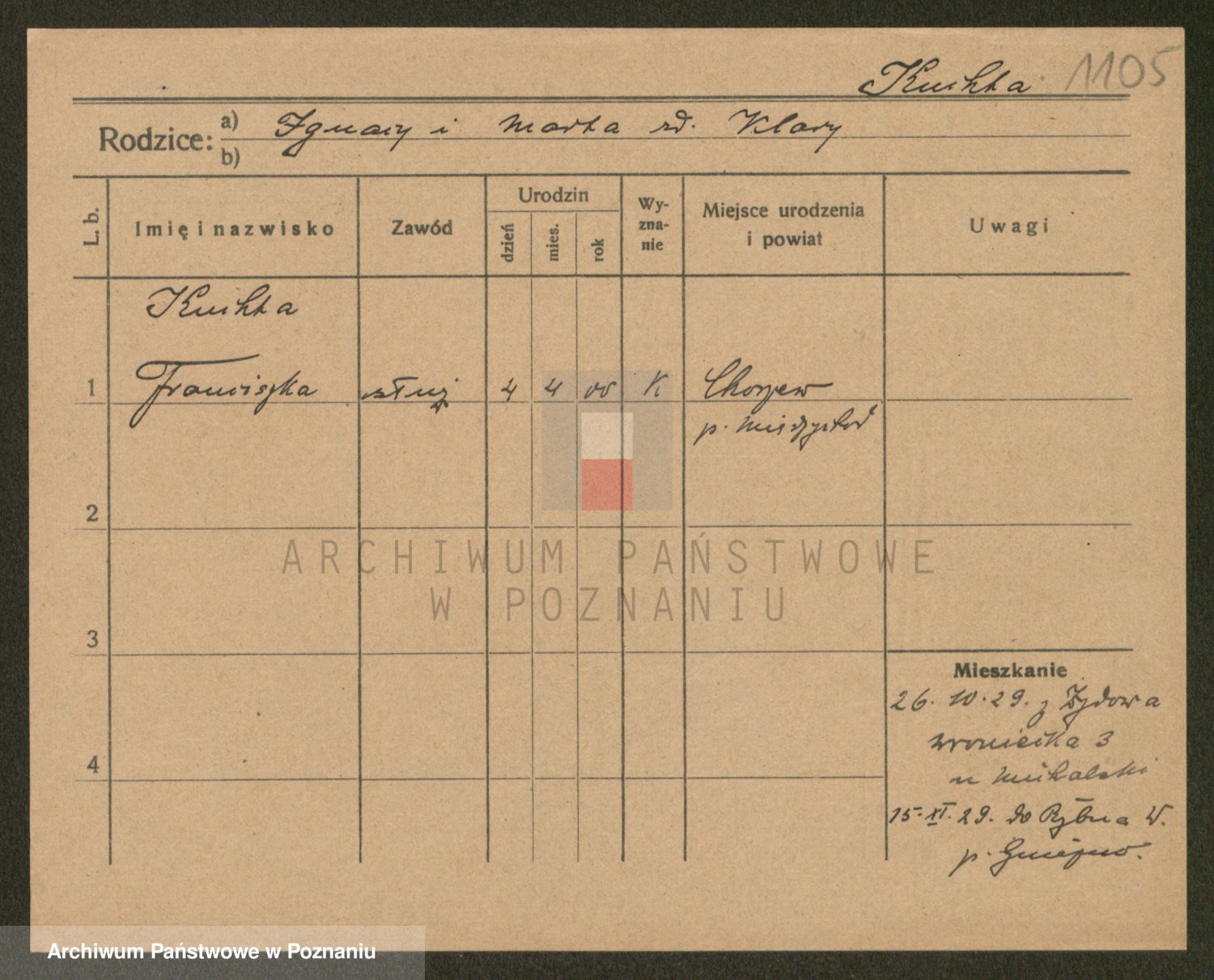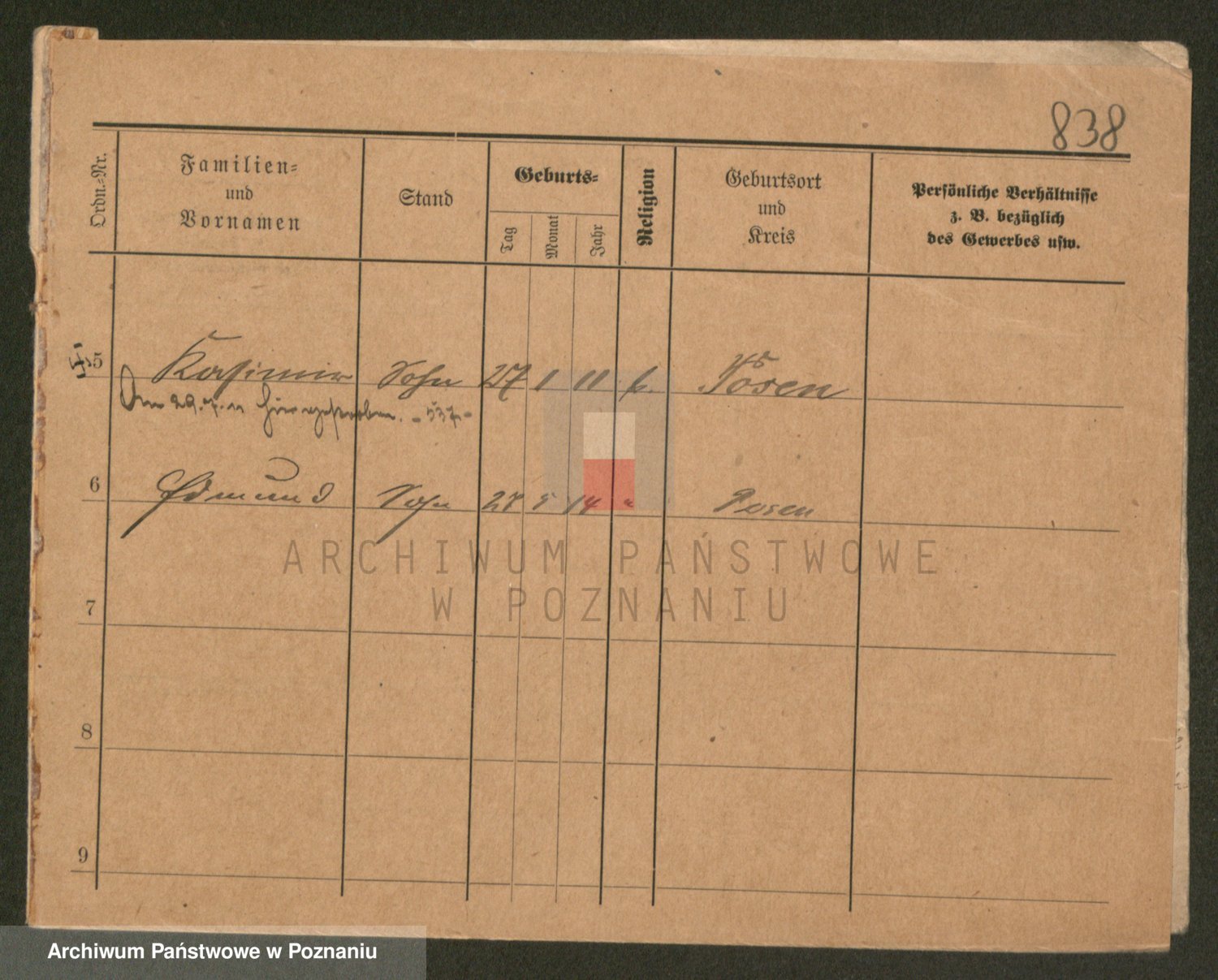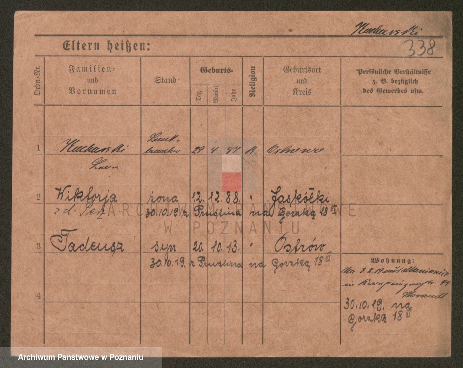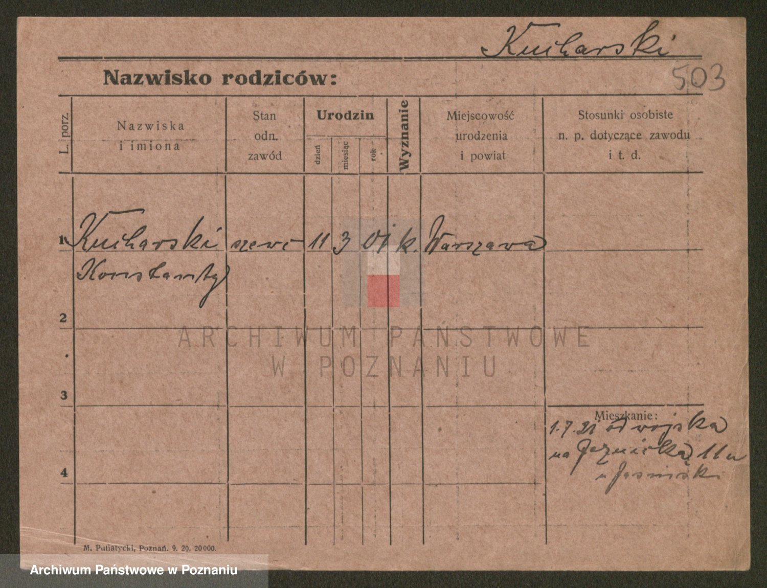 Podgląd karty osobowej dostępny jest po kliknięciu na nazwisko lub ikonkę karty. Można dokonywać powiększenia (ikony na górze) lub przechodzić między kolejnymi skanami (strzałki po bokach).