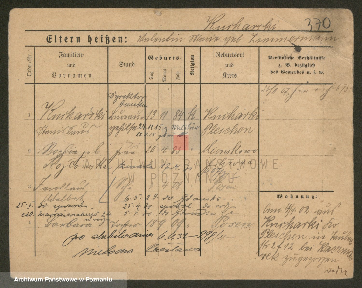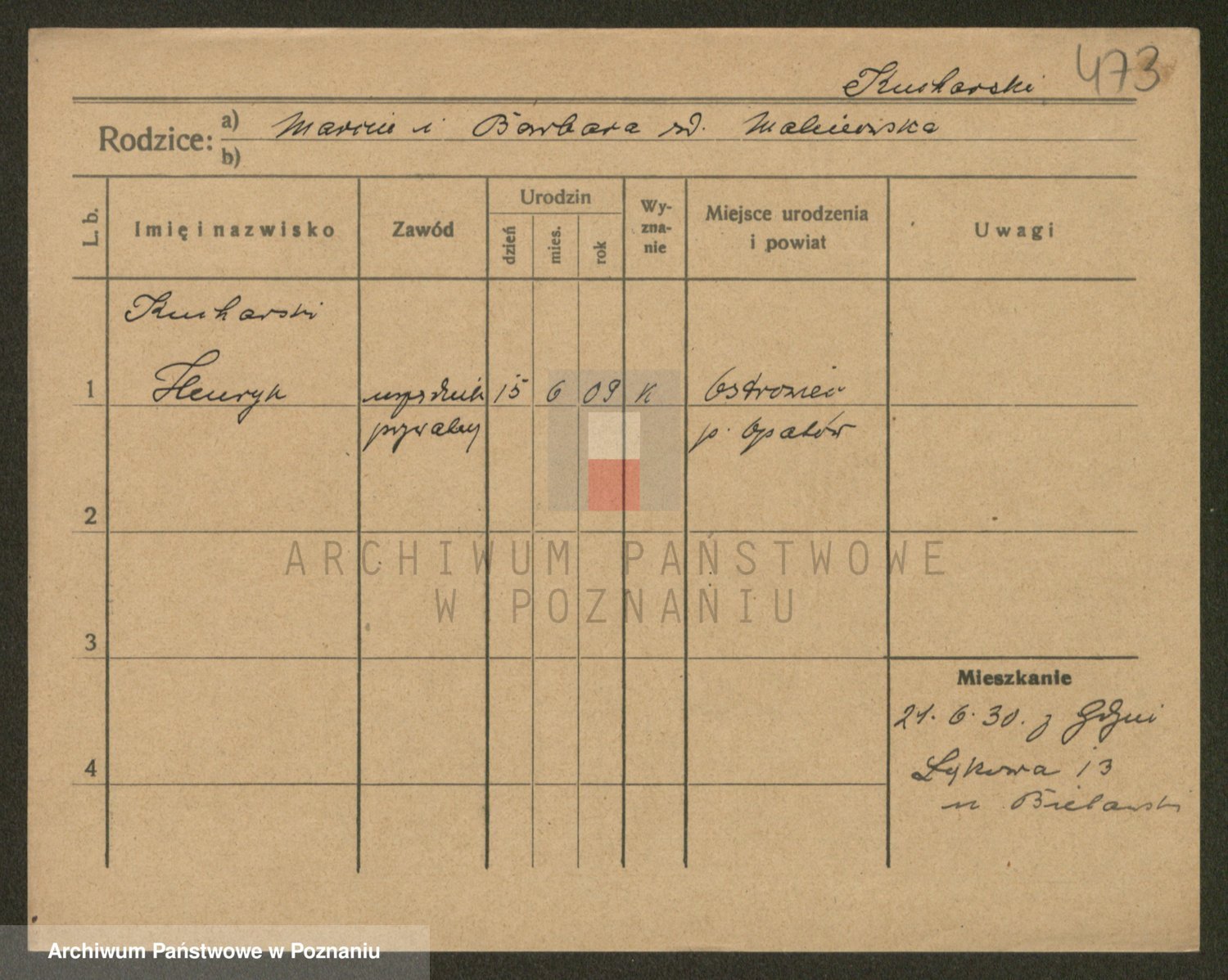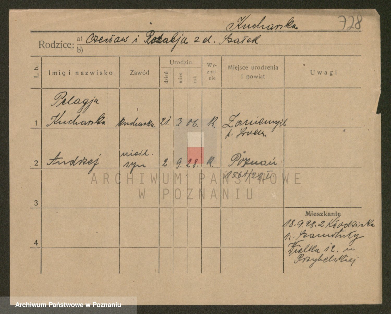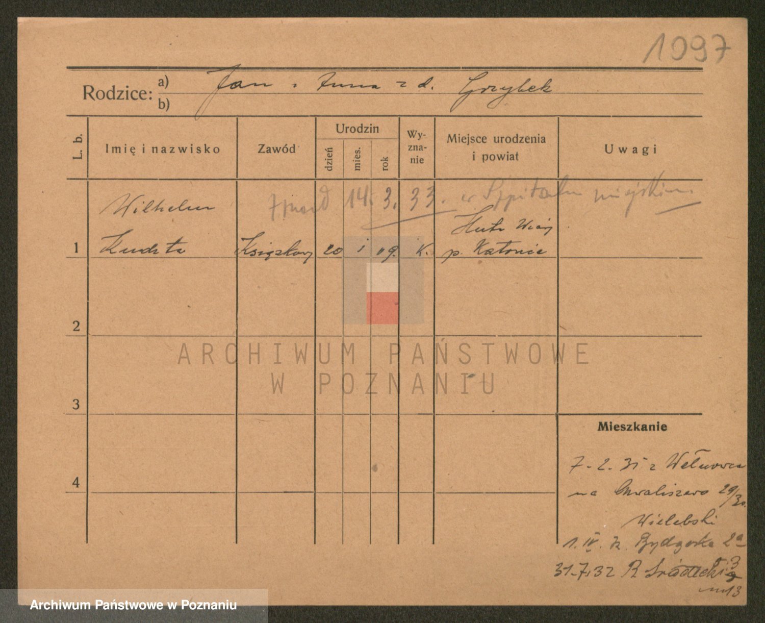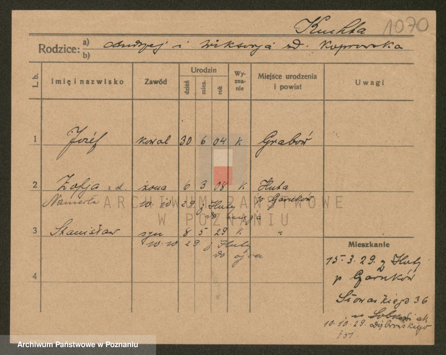 Podgląd karty osobowej dostępny jest po kliknięciu na nazwisko lub ikonkę karty. Można dokonywać powiększenia (ikony na górze) lub przechodzić między kolejnymi skanami (strzałki po bokach).