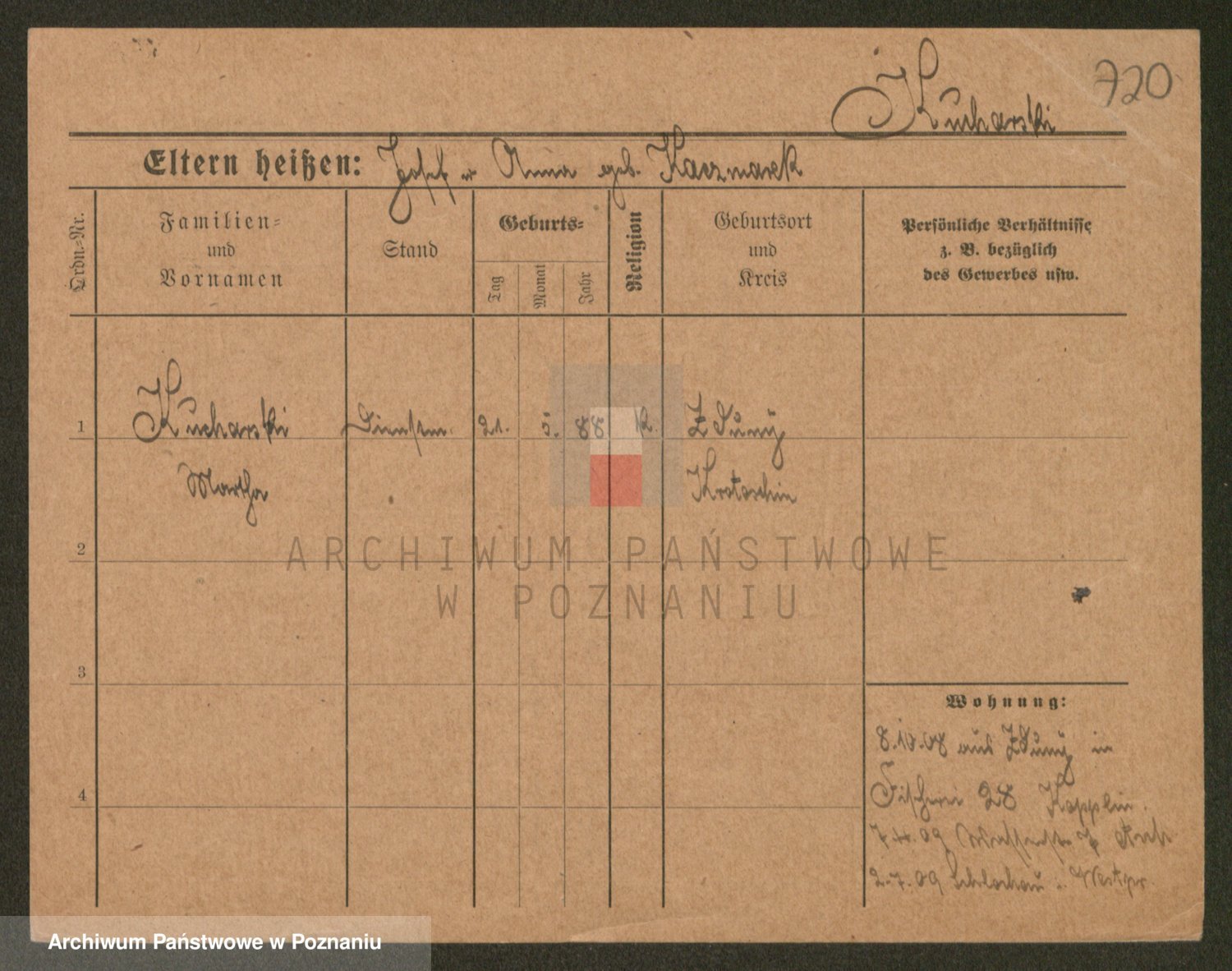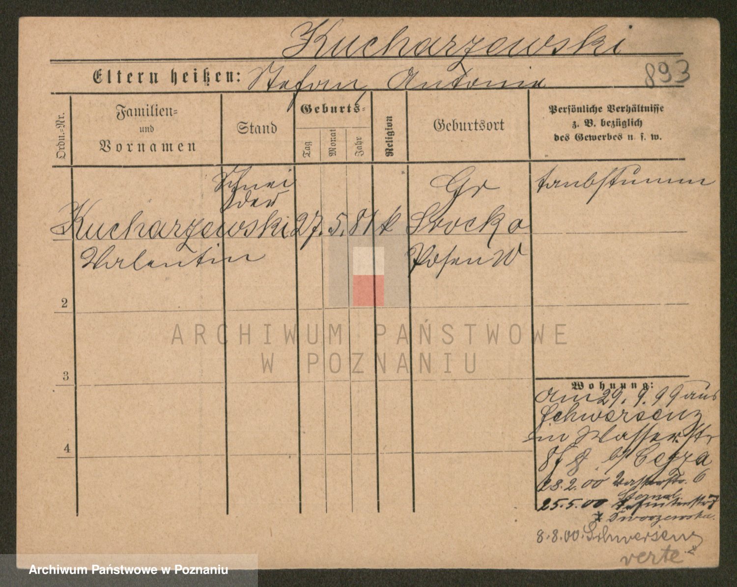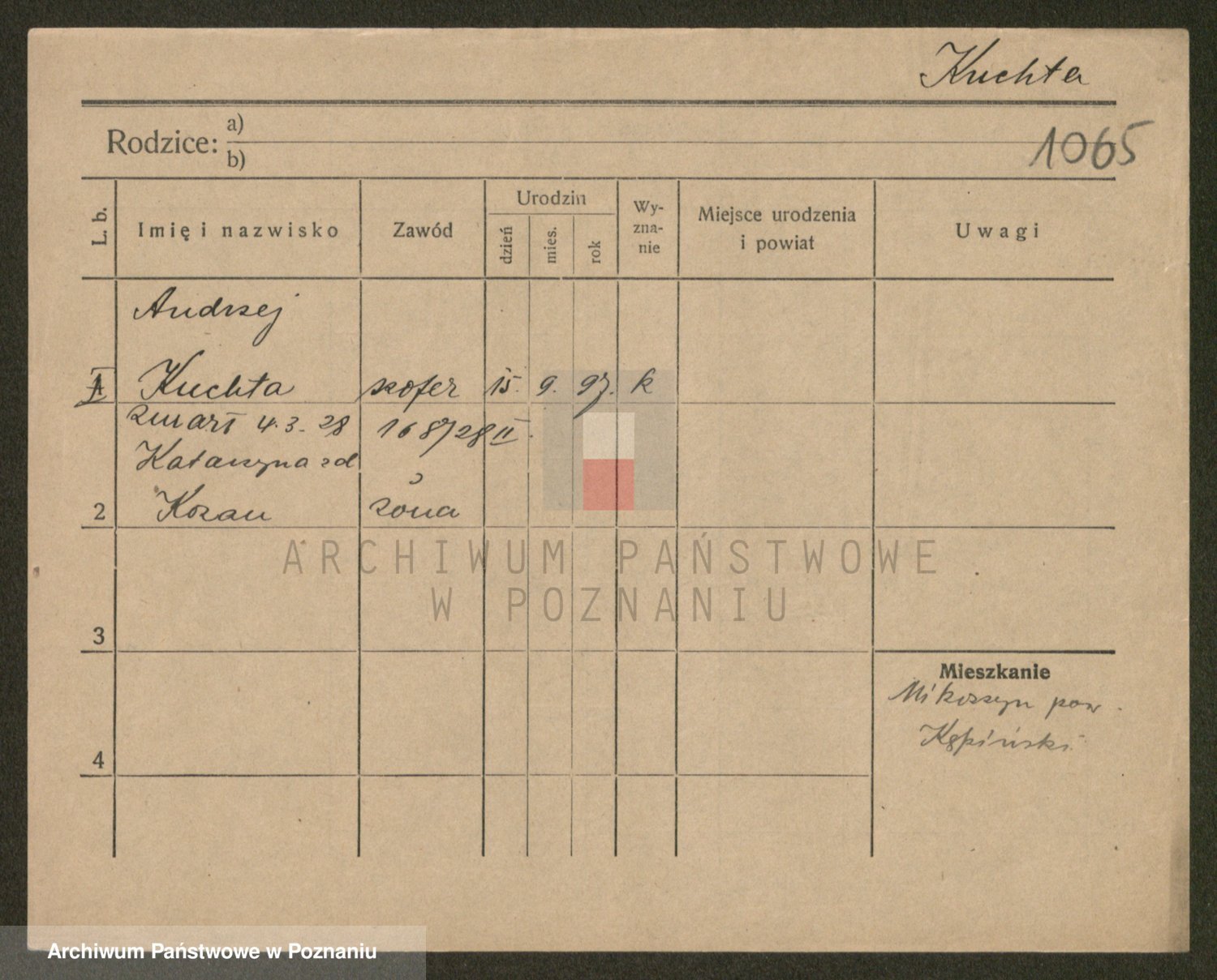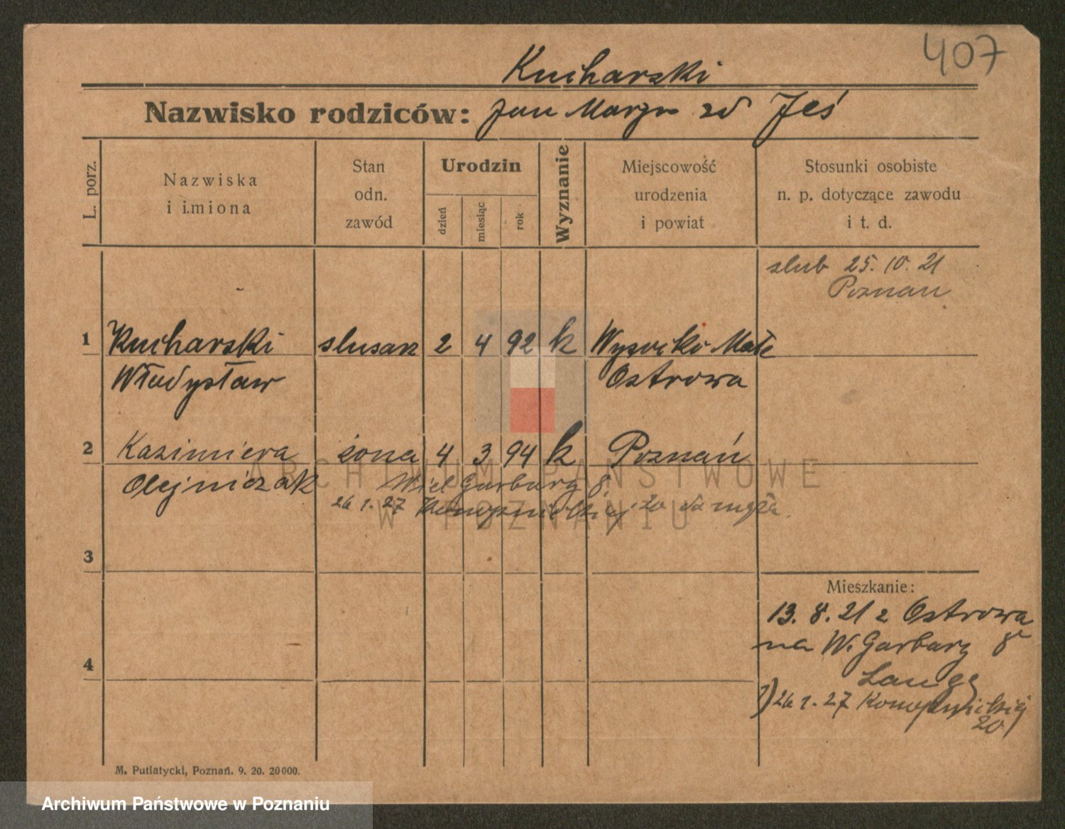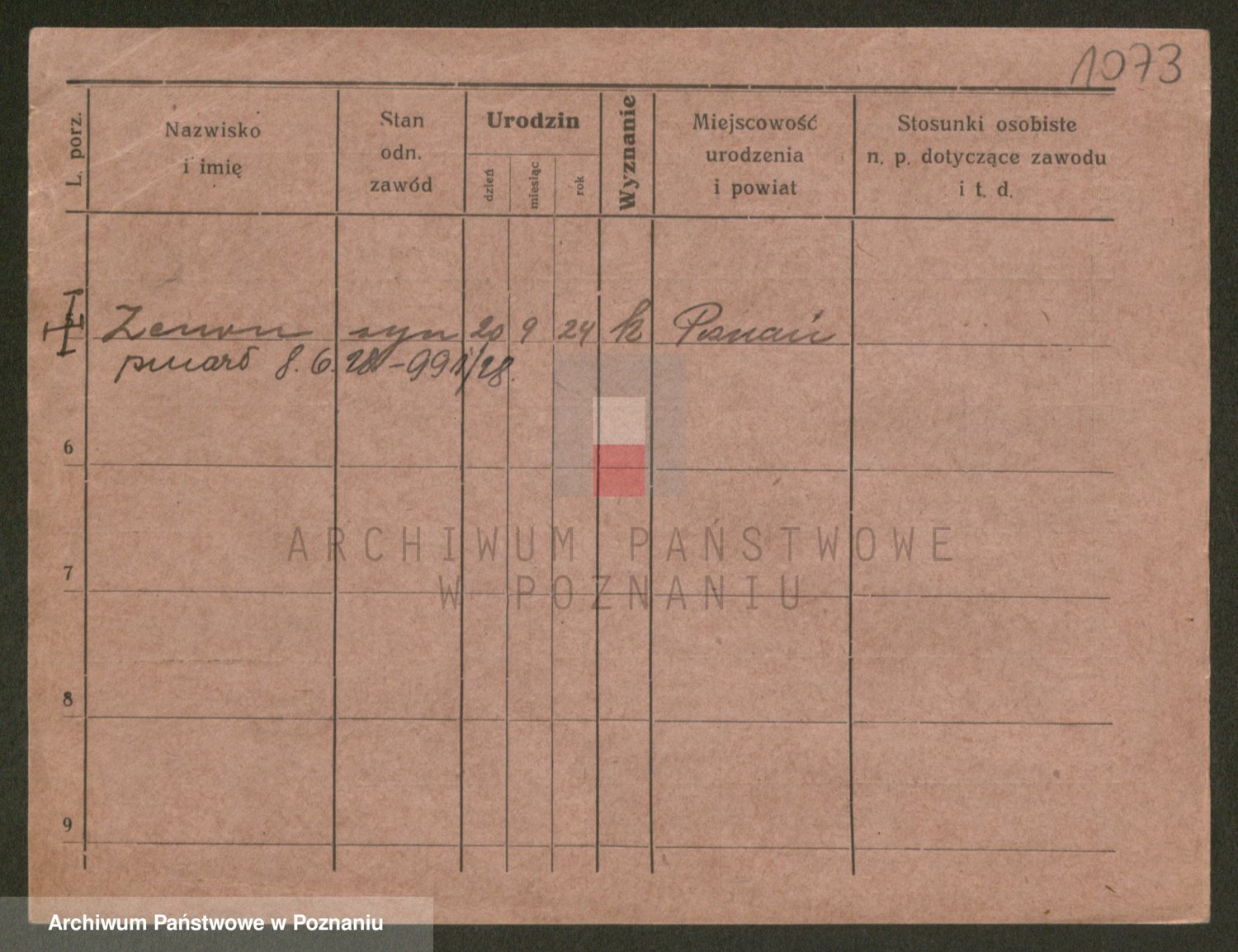 Podgląd karty osobowej dostępny jest po kliknięciu na nazwisko lub ikonkę karty. Można dokonywać powiększenia (ikony na górze) lub przechodzić między kolejnymi skanami (strzałki po bokach).