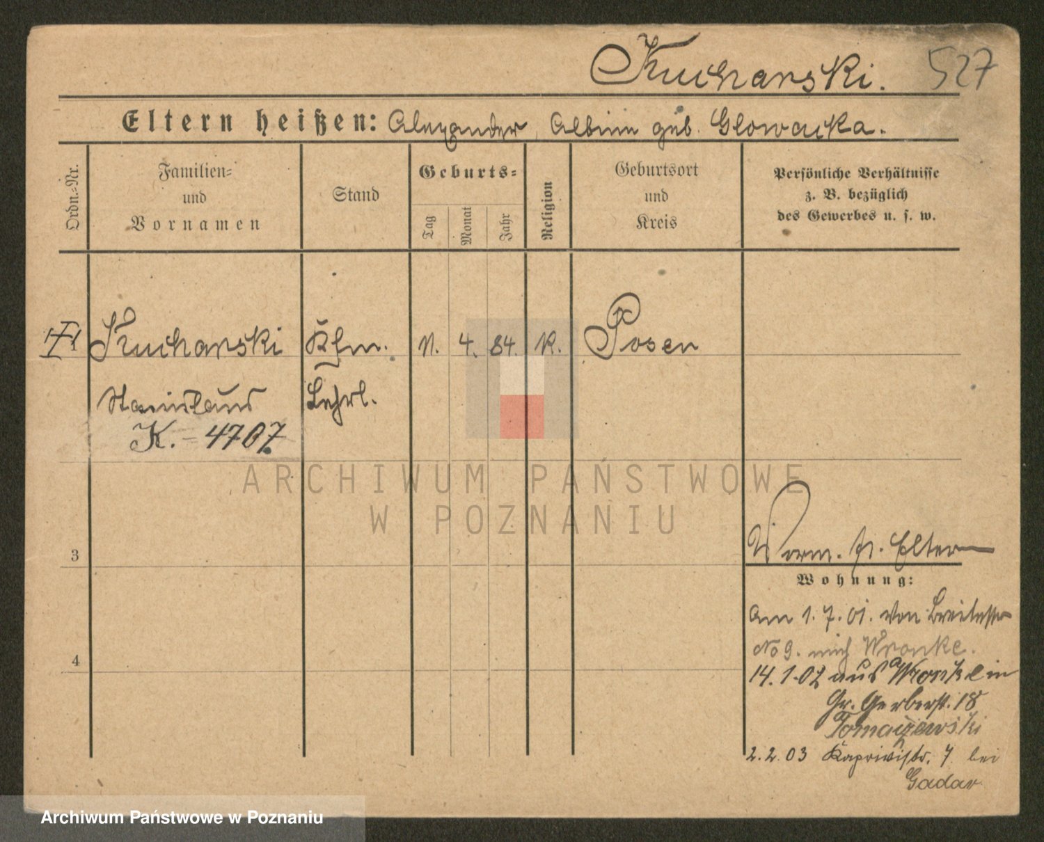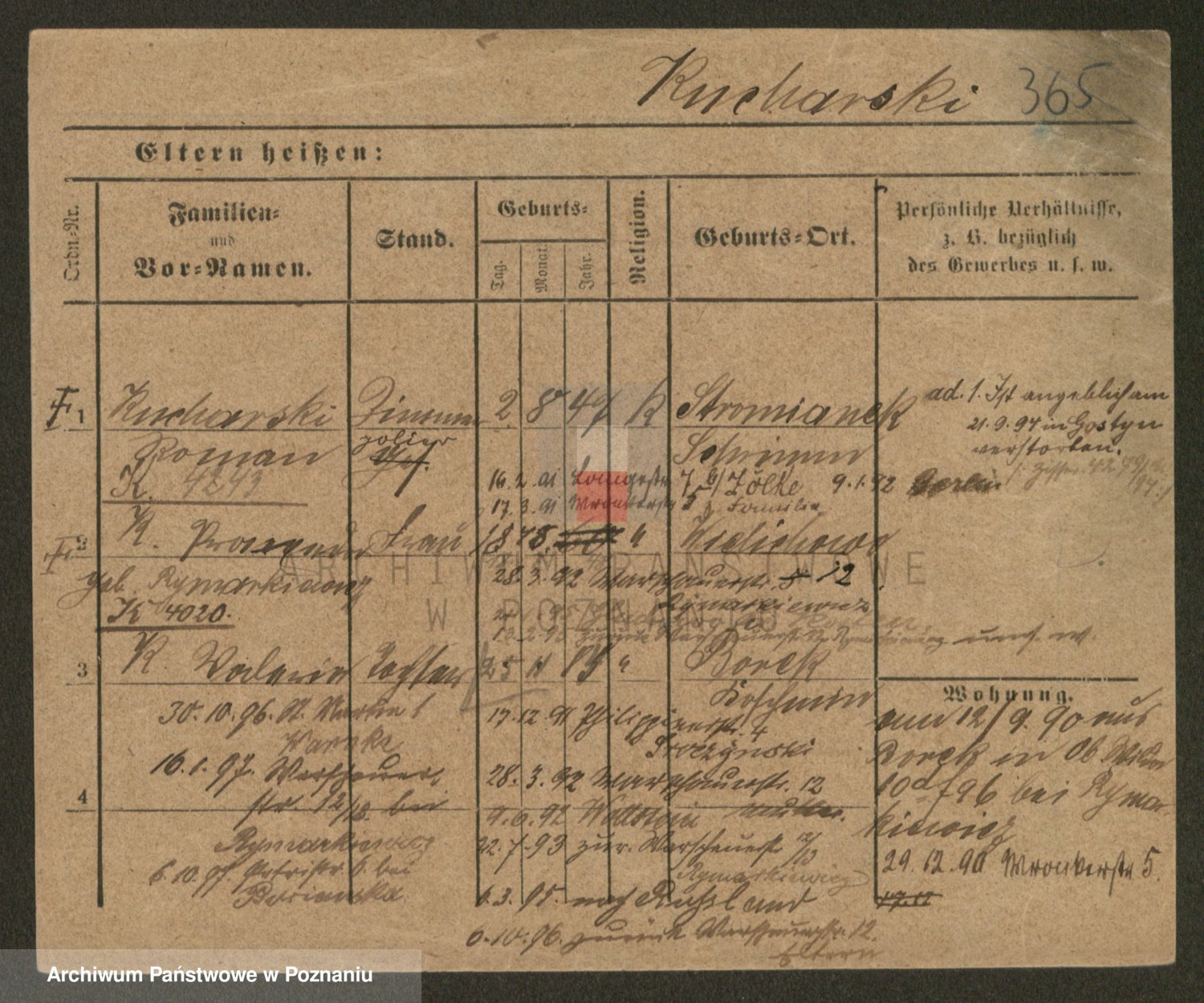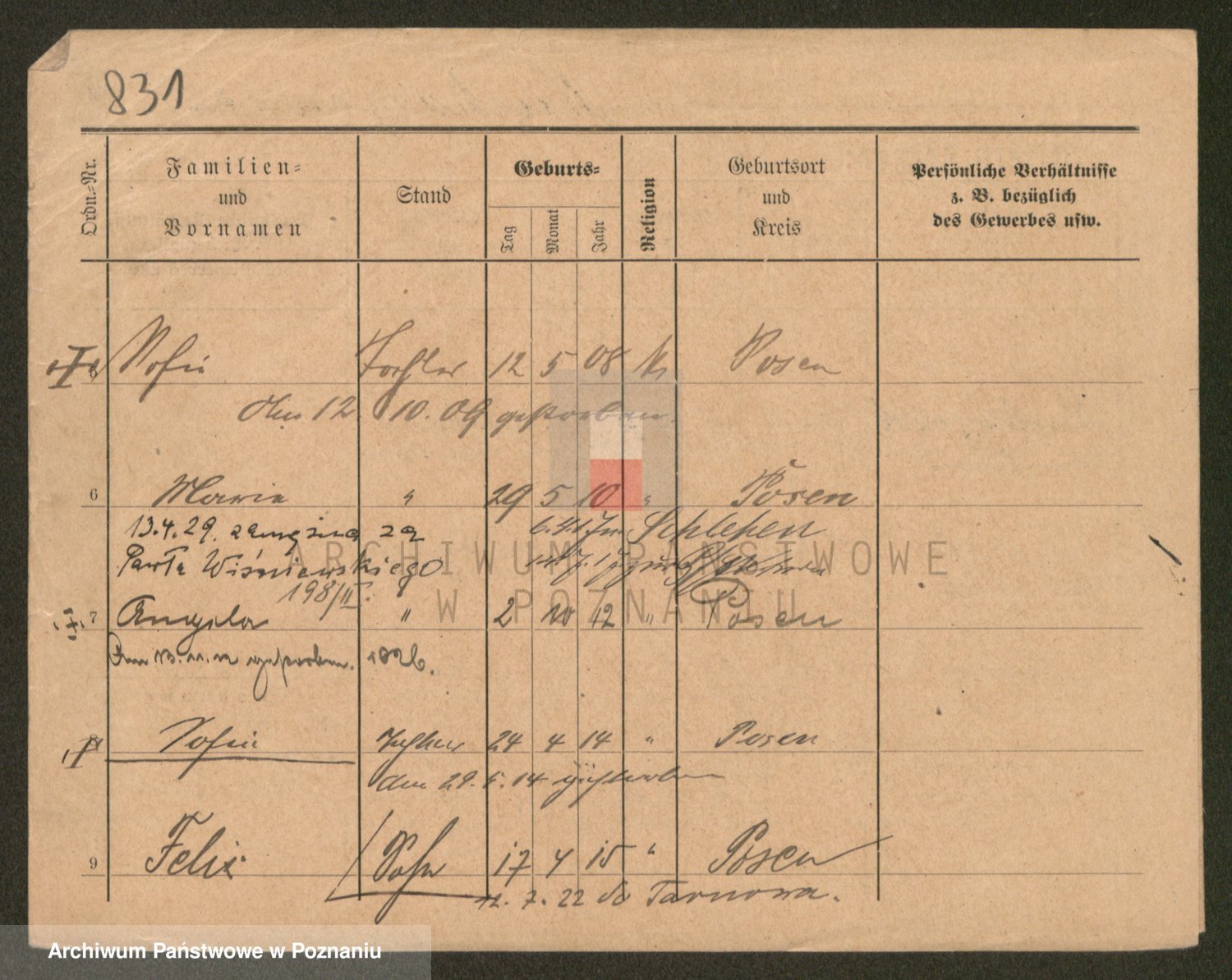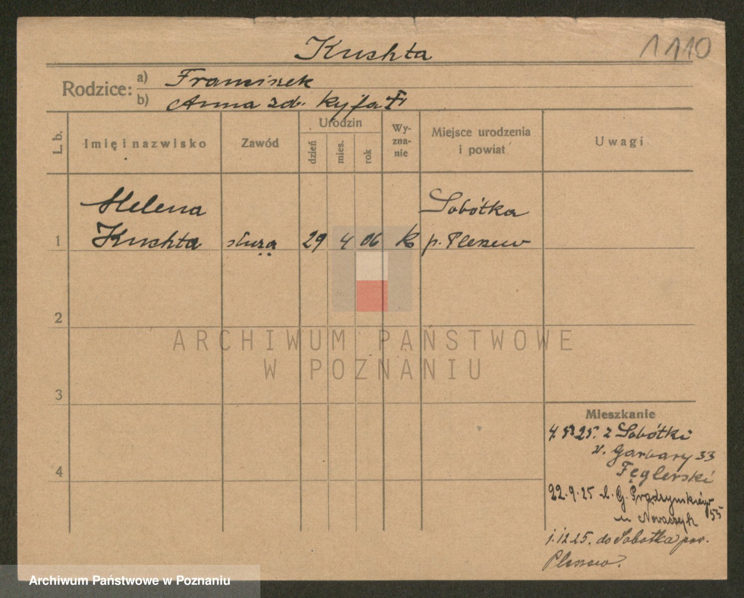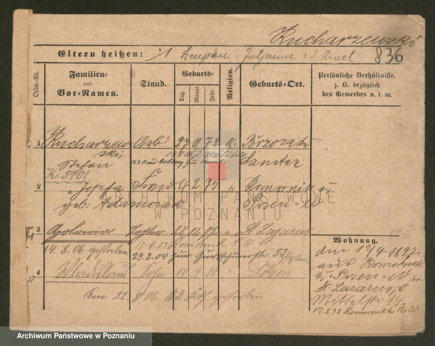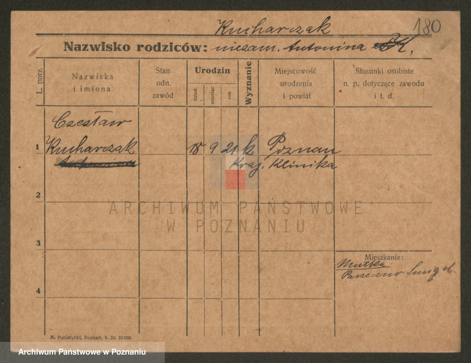 Podgląd karty osobowej dostępny jest po kliknięciu na nazwisko lub ikonkę karty. Można dokonywać powiększenia (ikony na górze) lub przechodzić między kolejnymi skanami (strzałki po bokach).