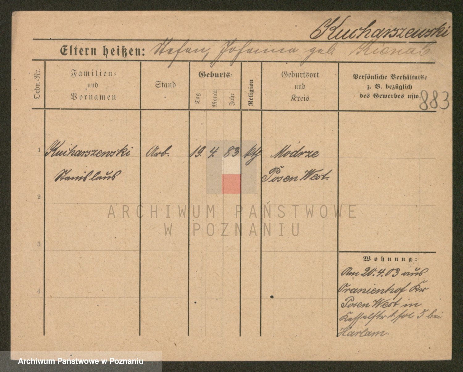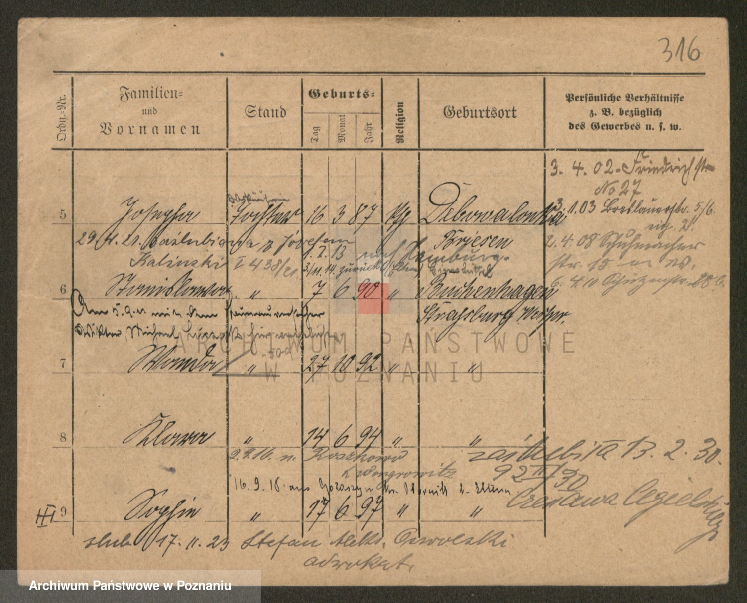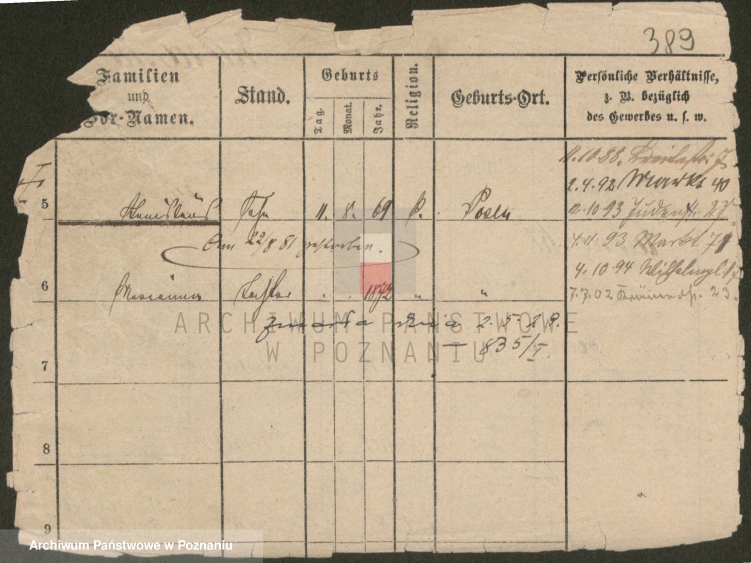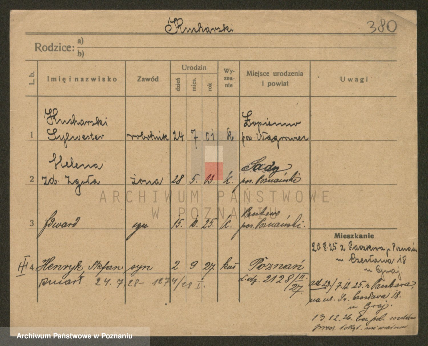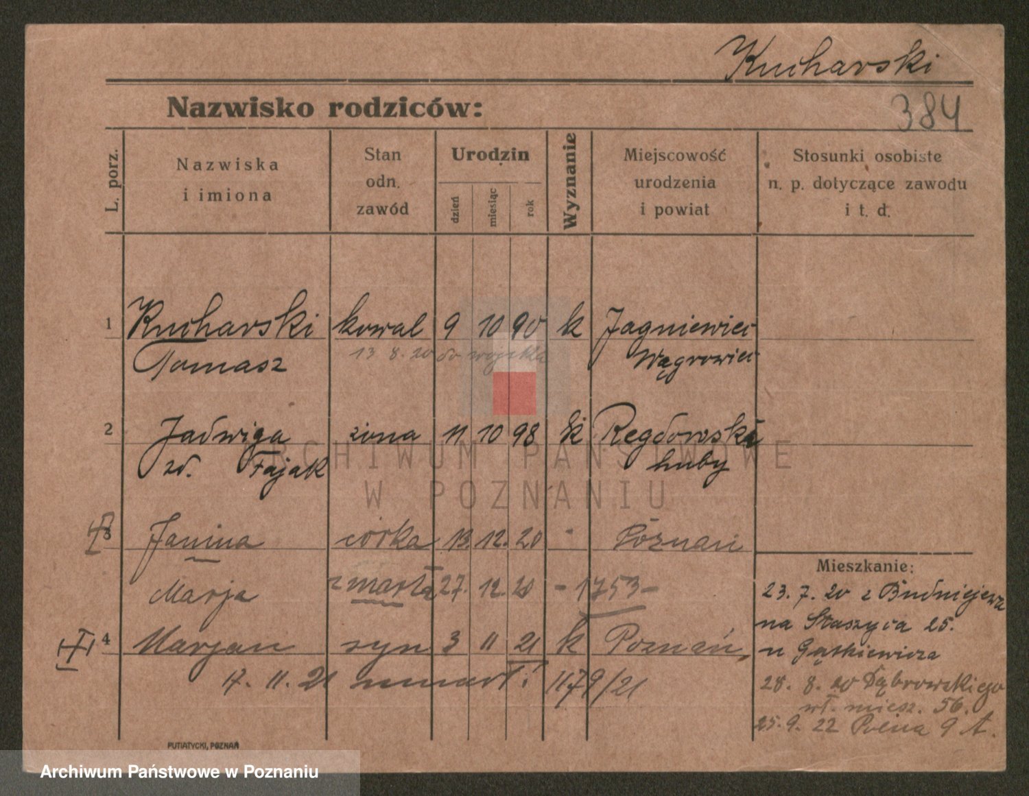 Podgląd karty osobowej dostępny jest po kliknięciu na nazwisko lub ikonkę karty. Można dokonywać powiększenia (ikony na górze) lub przechodzić między kolejnymi skanami (strzałki po bokach).