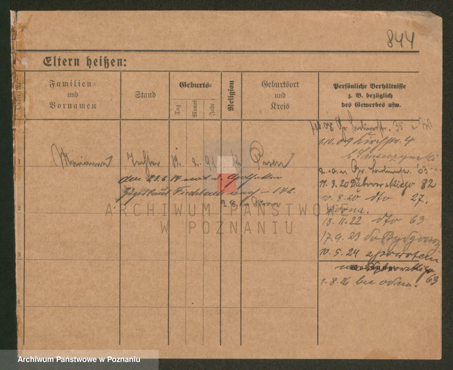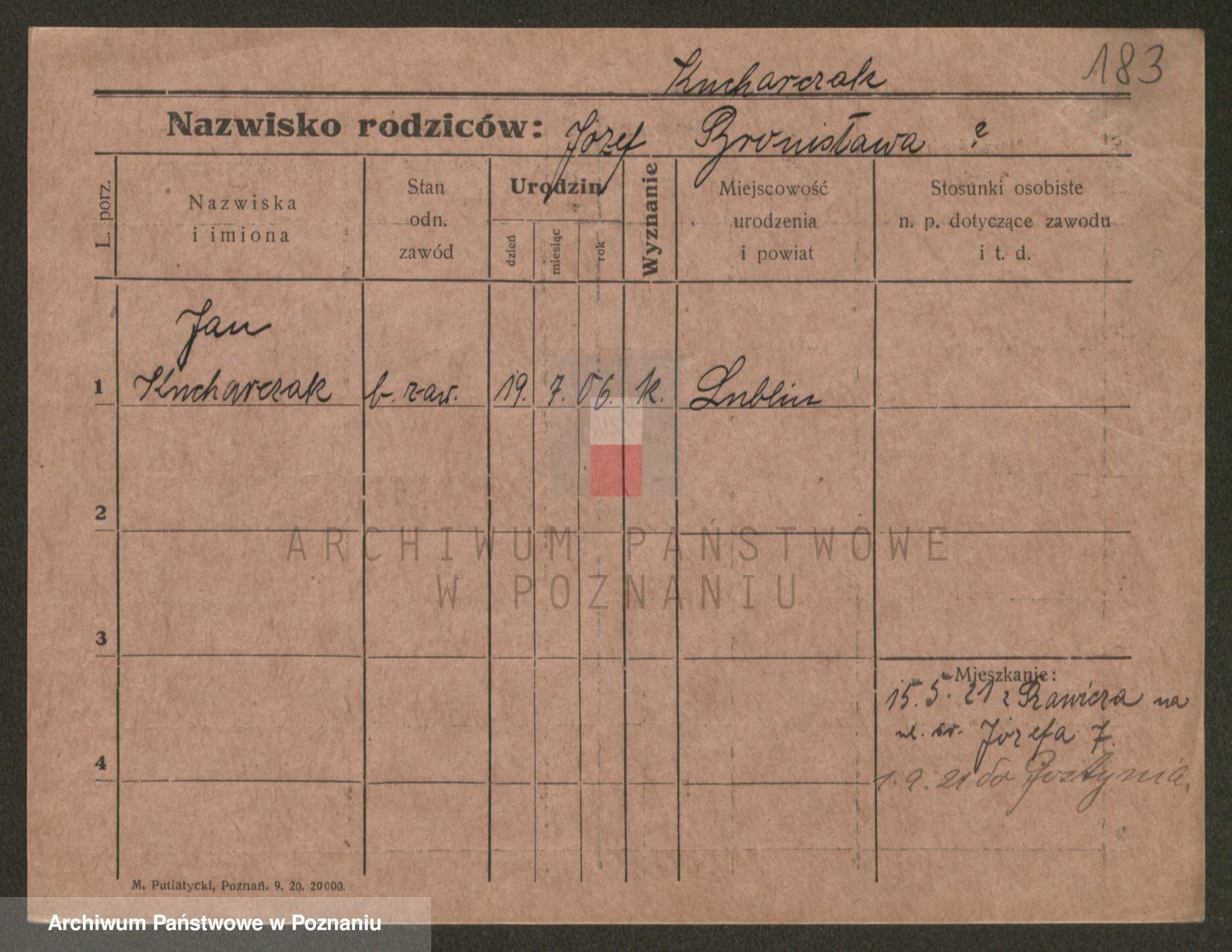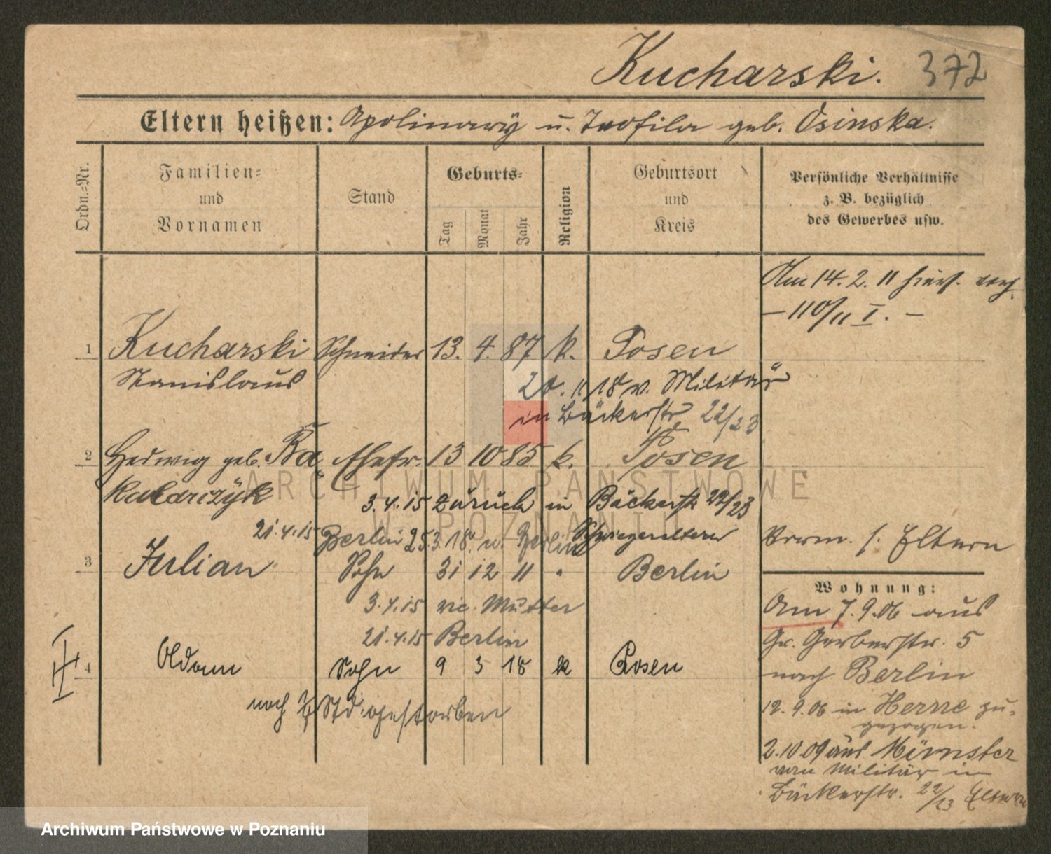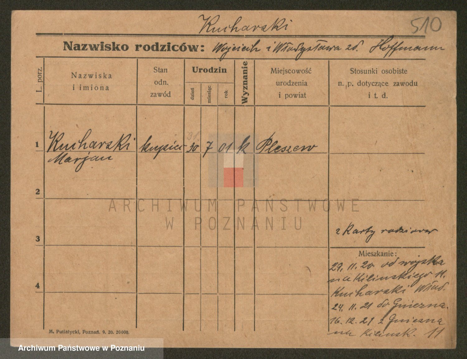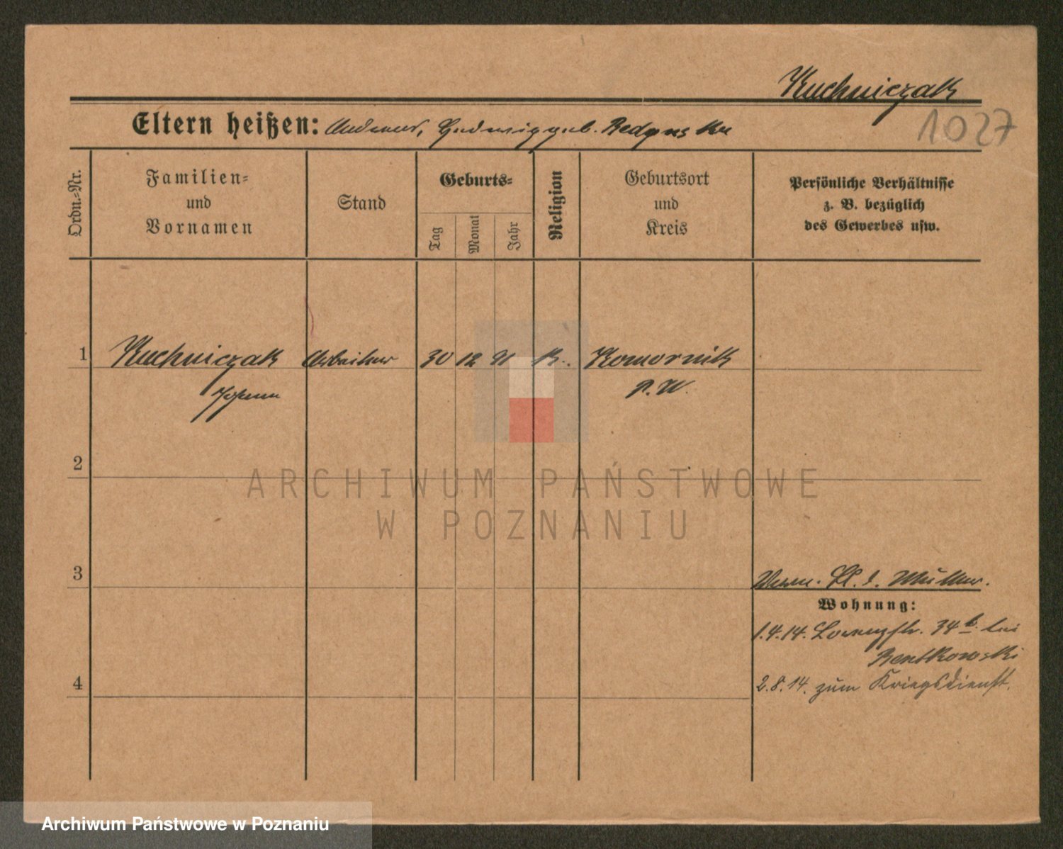 Podgląd karty osobowej dostępny jest po kliknięciu na nazwisko lub ikonkę karty. Można dokonywać powiększenia (ikony na górze) lub przechodzić między kolejnymi skanami (strzałki po bokach).