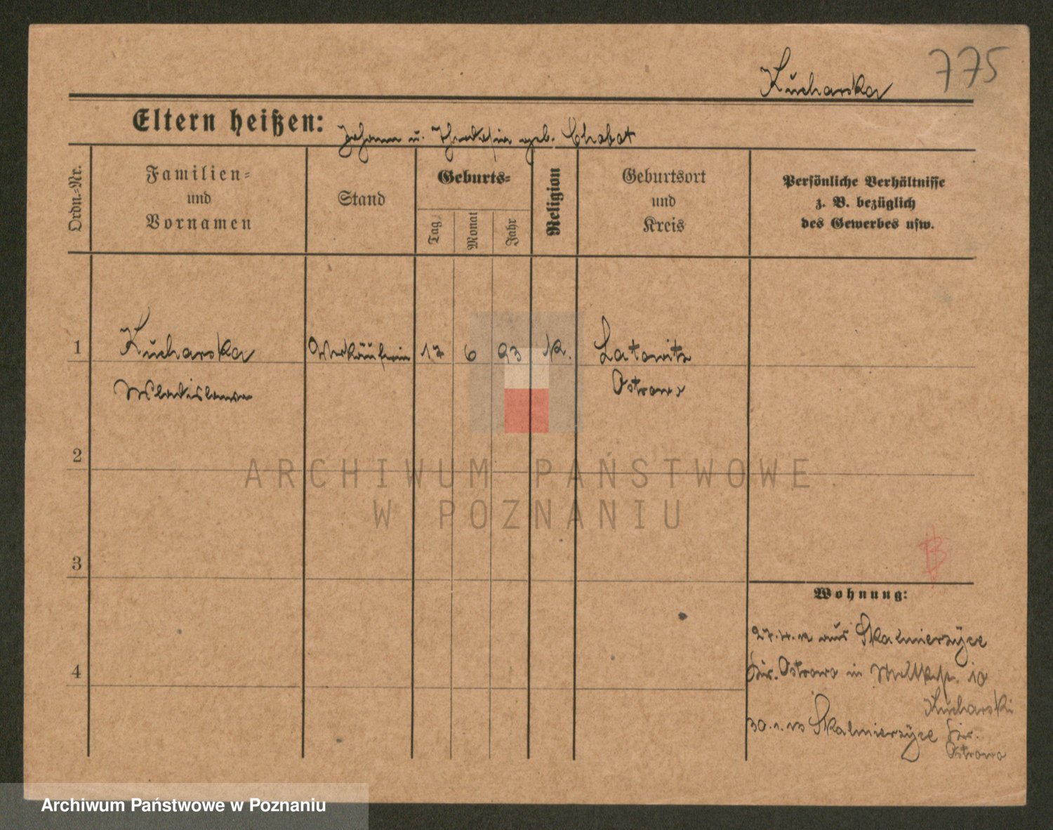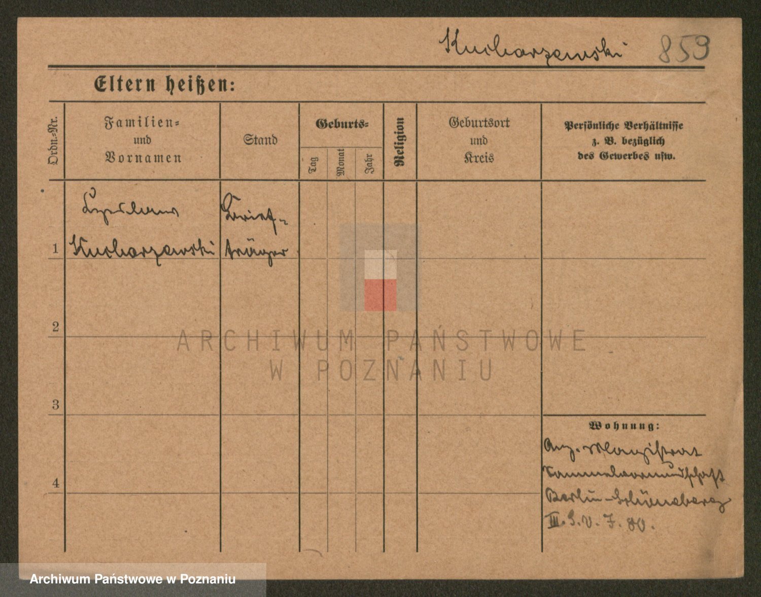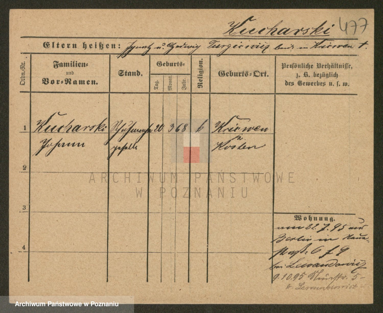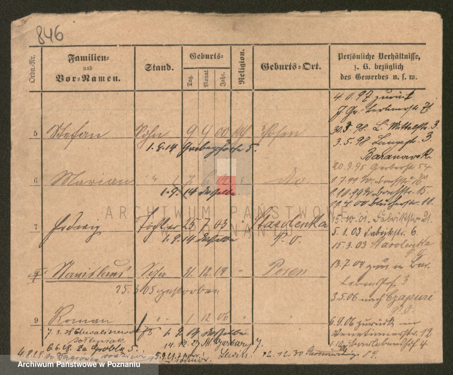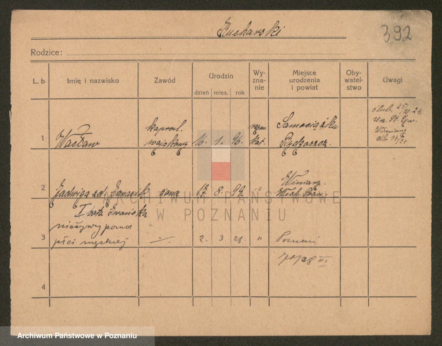 Podgląd karty osobowej dostępny jest po kliknięciu na nazwisko lub ikonkę karty. Można dokonywać powiększenia (ikony na górze) lub przechodzić między kolejnymi skanami (strzałki po bokach).