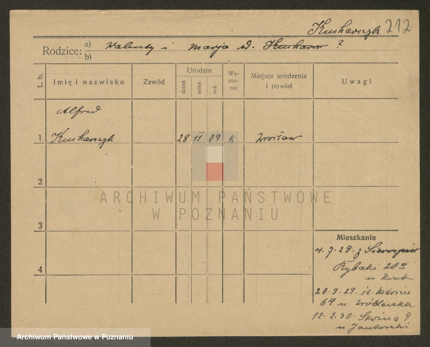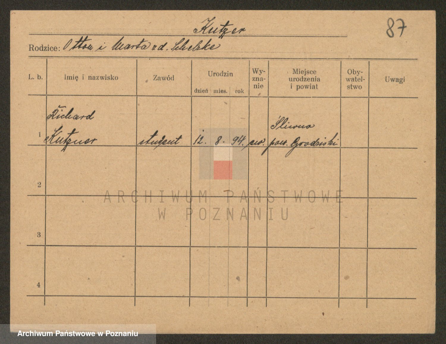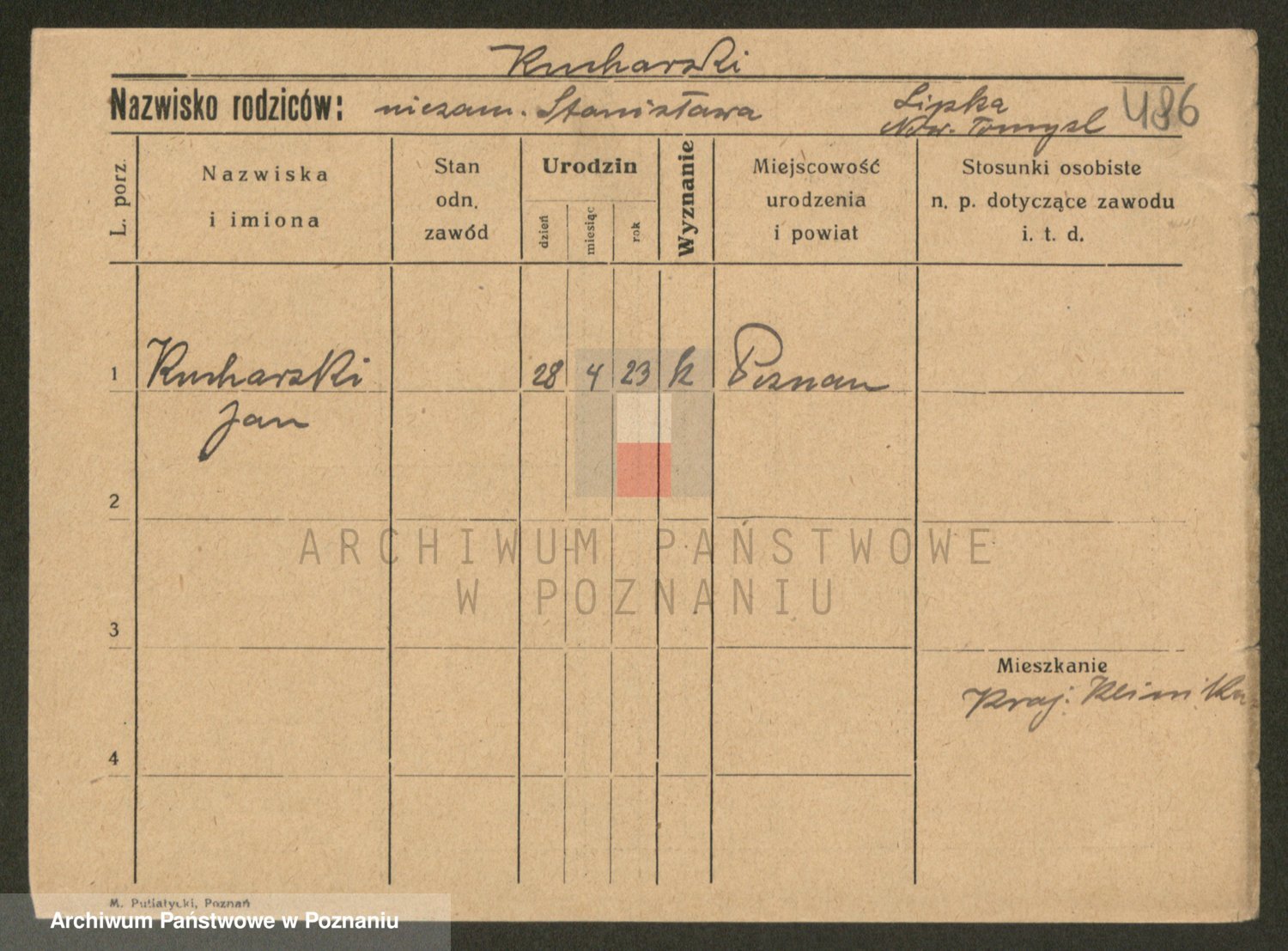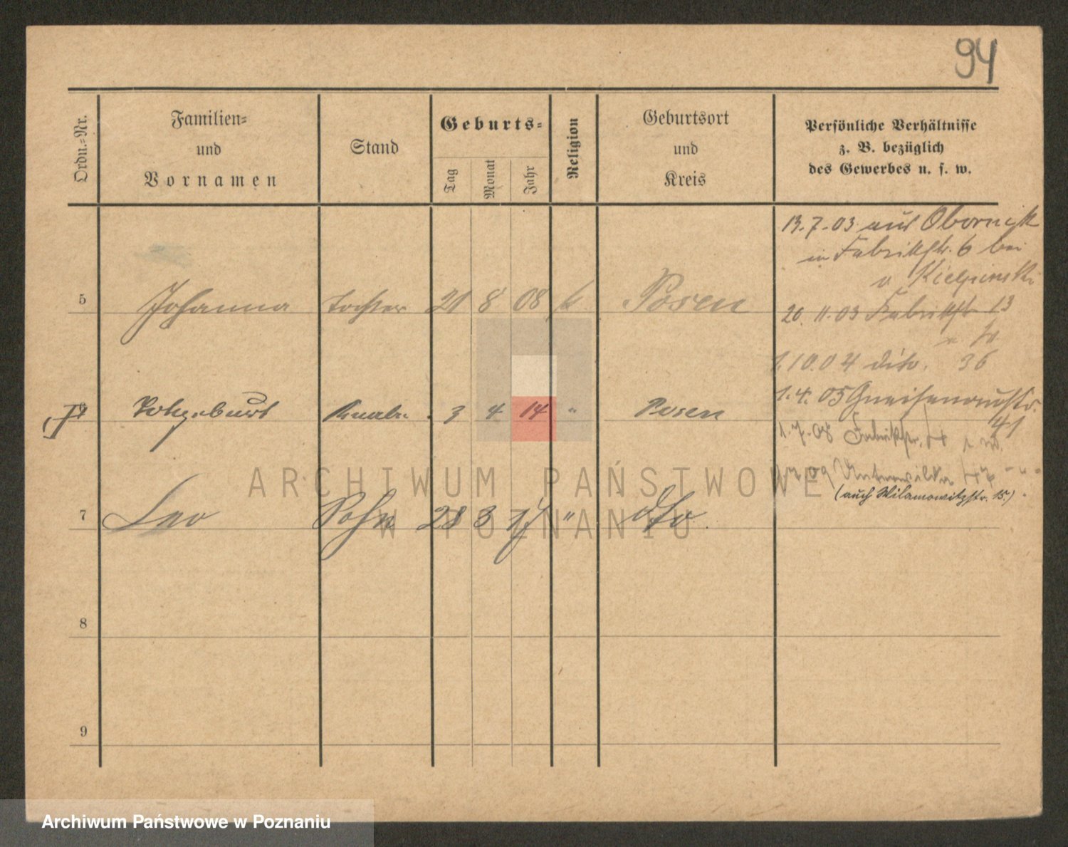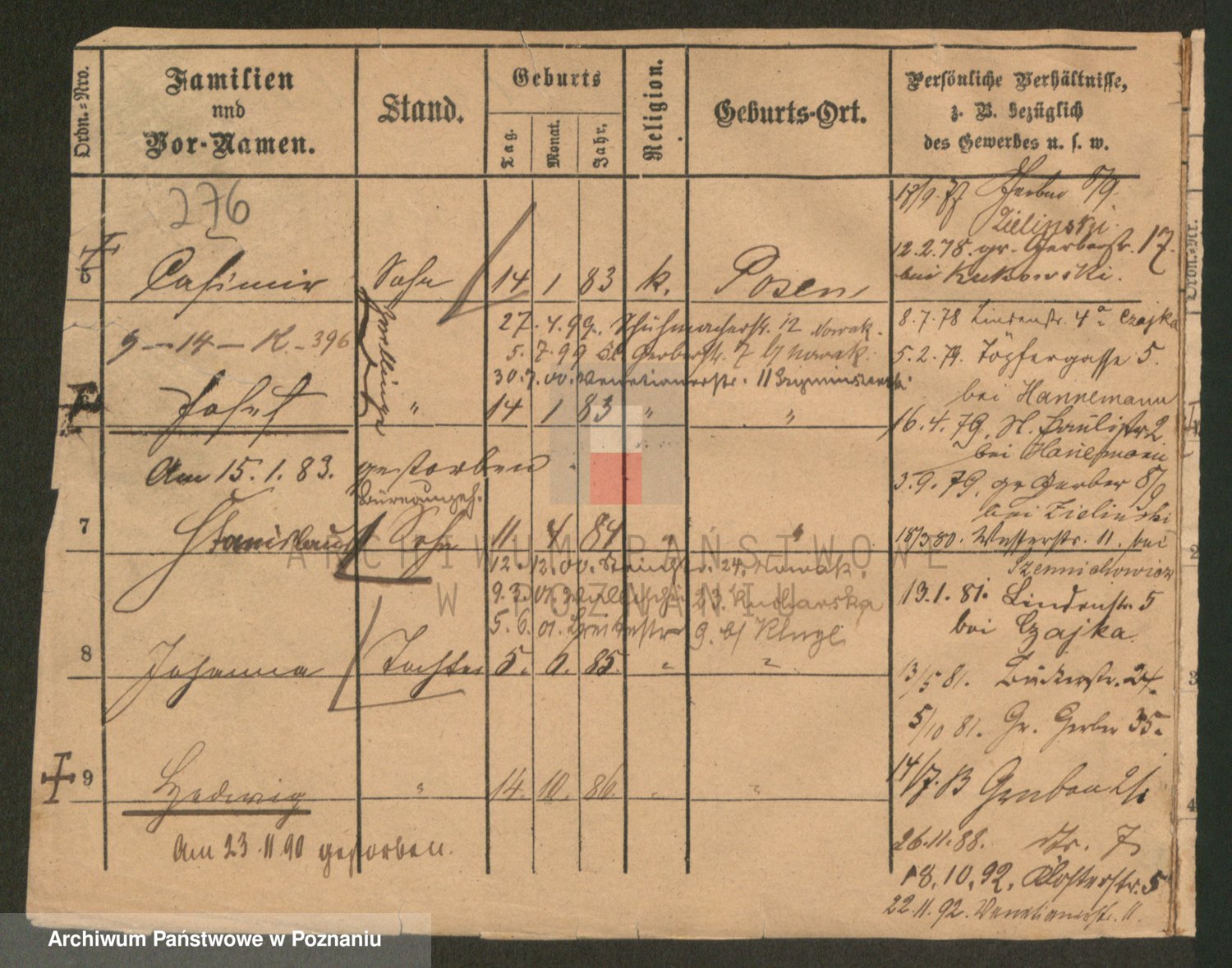 Podgląd karty osobowej dostępny jest po kliknięciu na nazwisko lub ikonkę karty. Można dokonywać powiększenia (ikony na górze) lub przechodzić między kolejnymi skanami (strzałki po bokach).