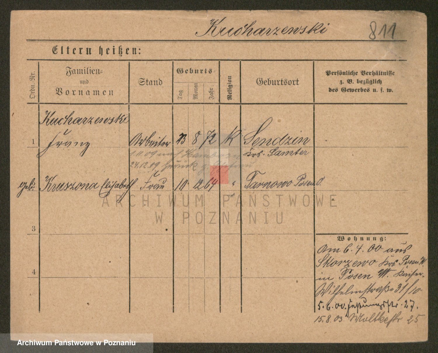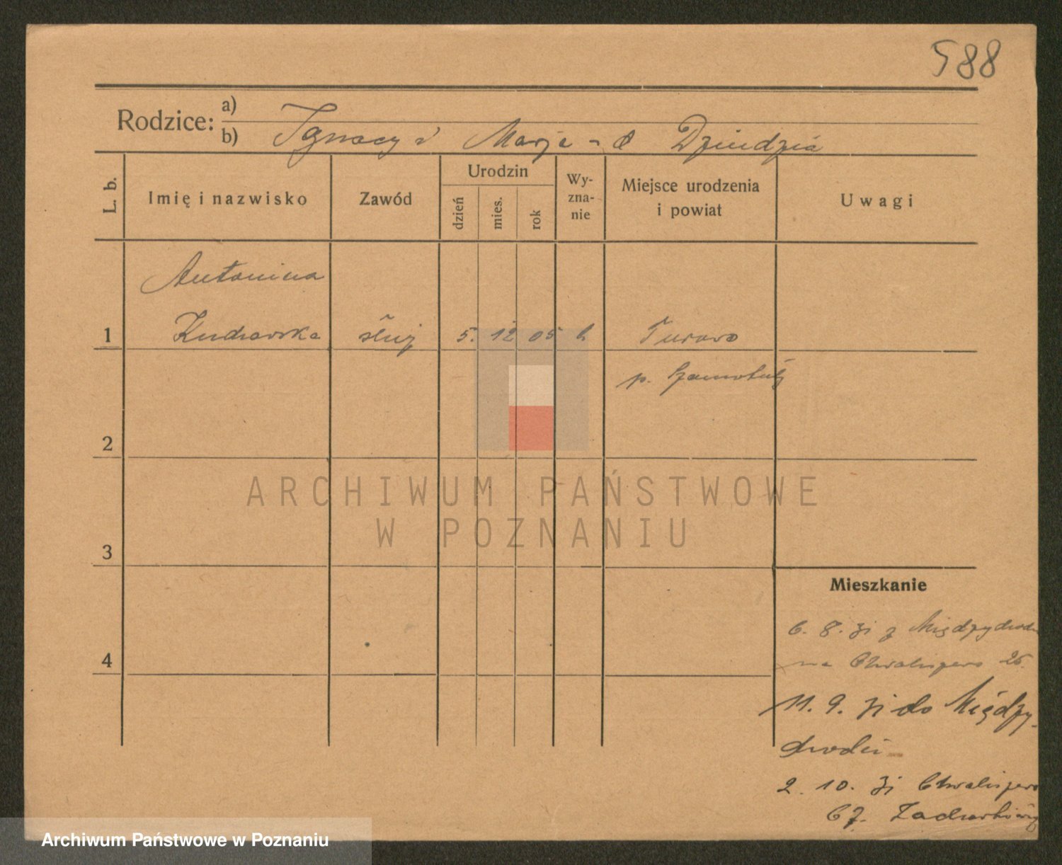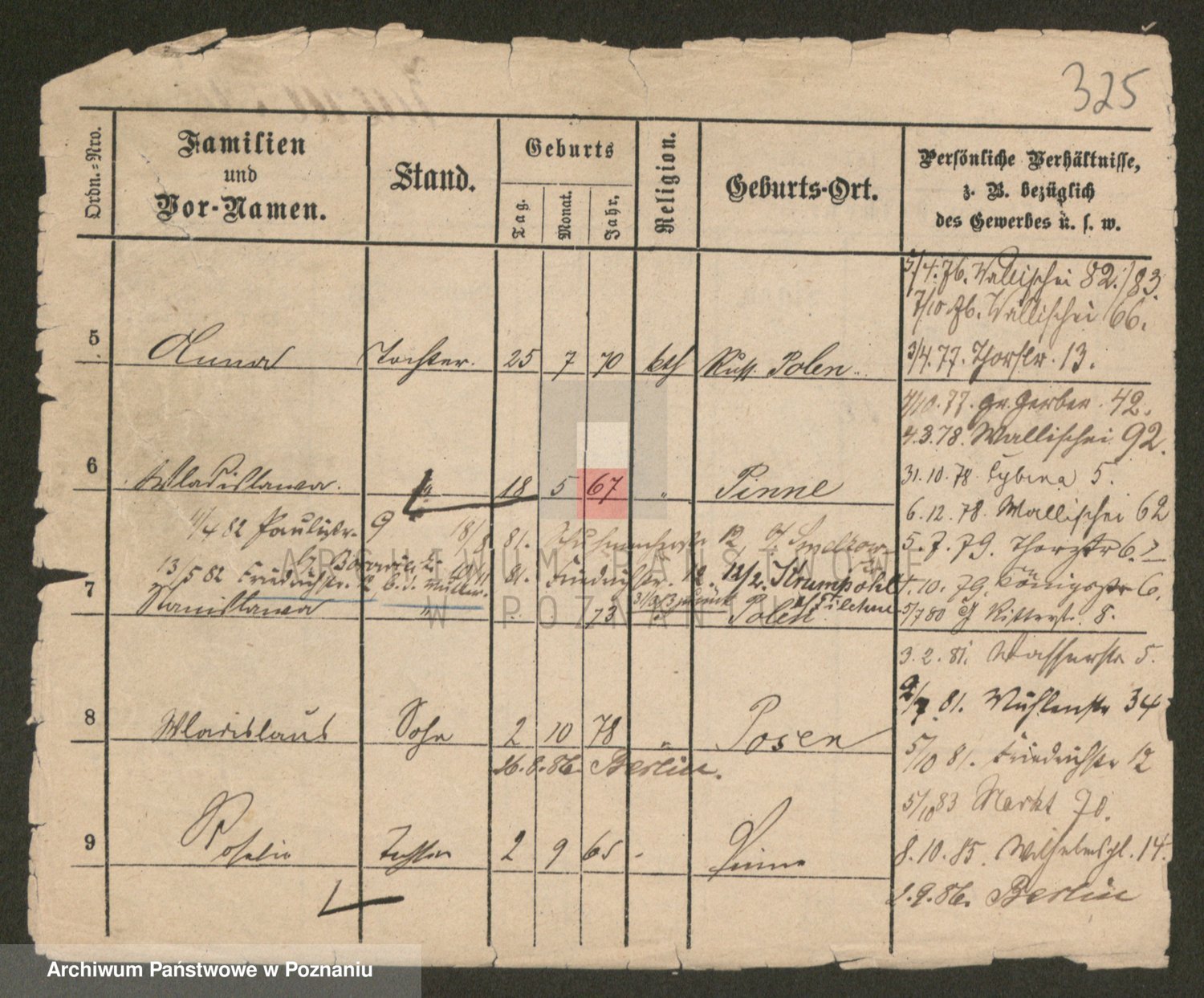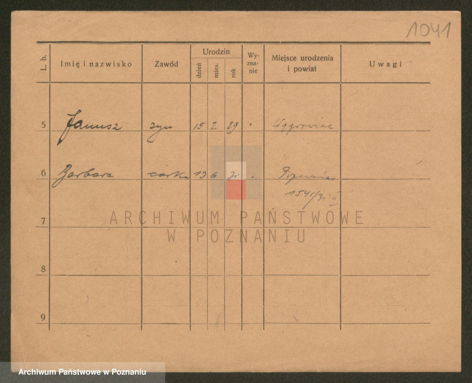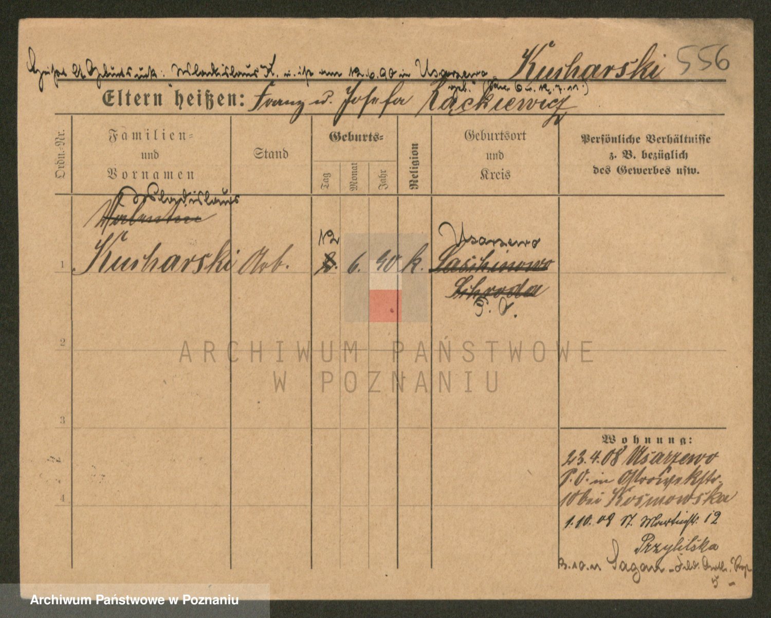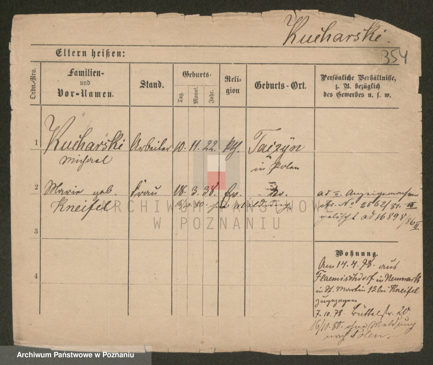 Podgląd karty osobowej dostępny jest po kliknięciu na nazwisko lub ikonkę karty. Można dokonywać powiększenia (ikony na górze) lub przechodzić między kolejnymi skanami (strzałki po bokach).
