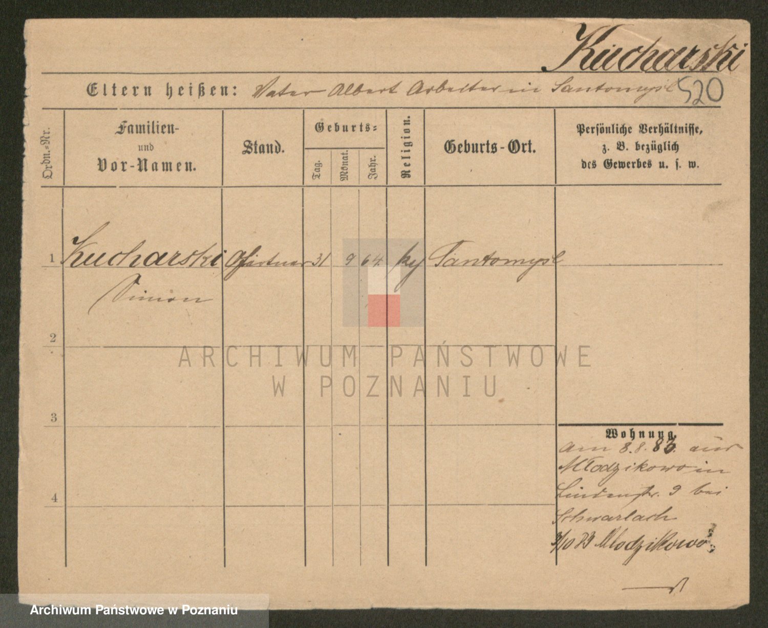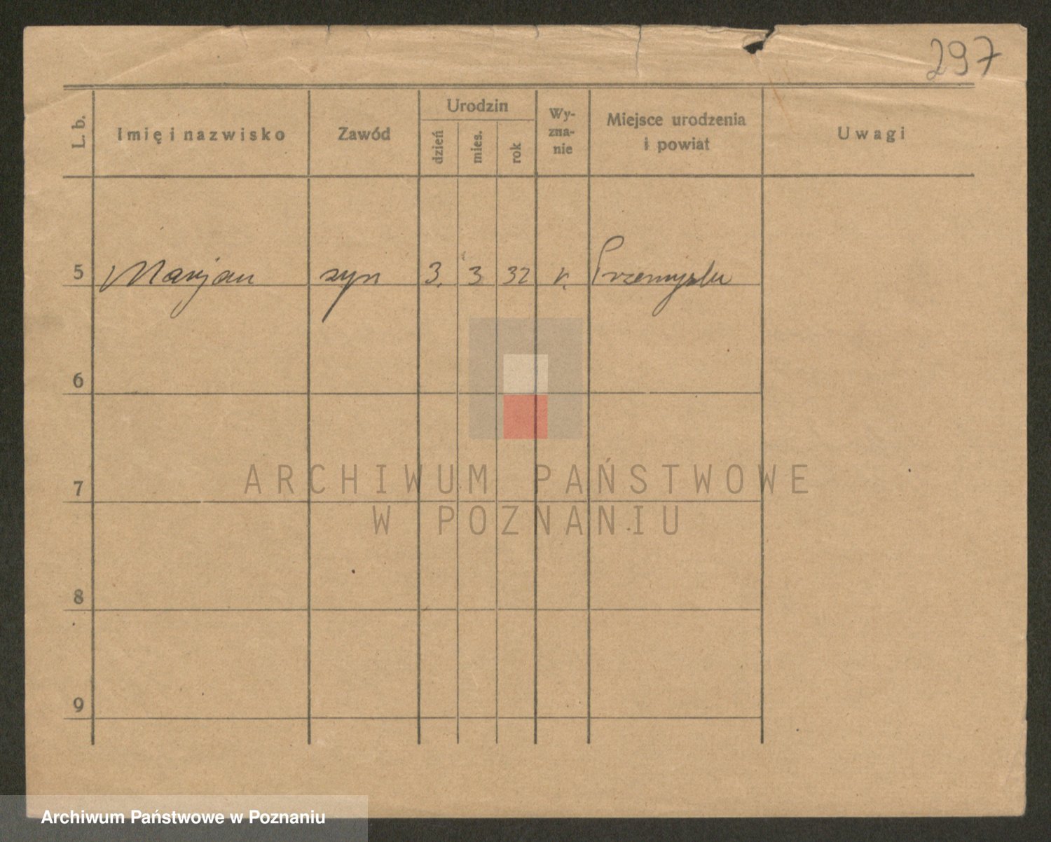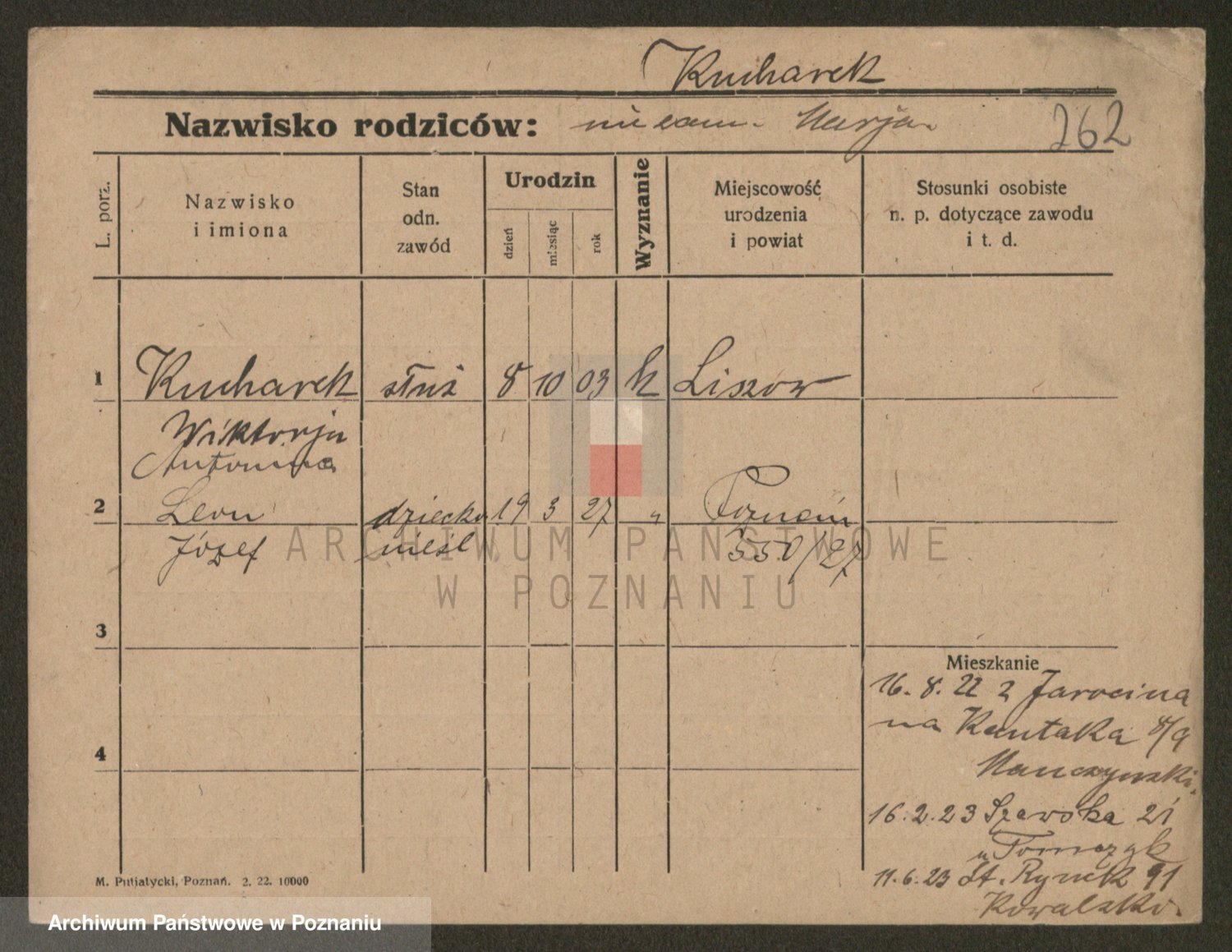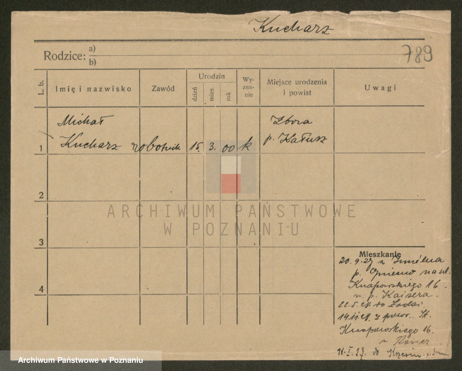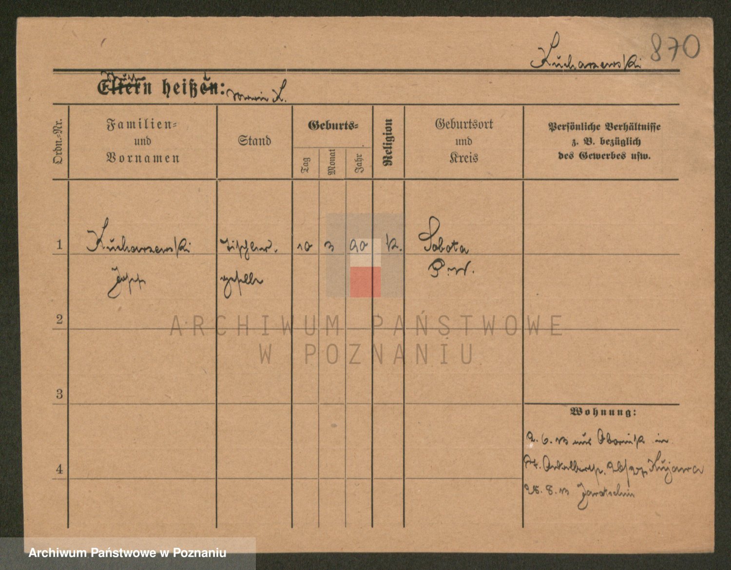 Podgląd karty osobowej dostępny jest po kliknięciu na nazwisko lub ikonkę karty. Można dokonywać powiększenia (ikony na górze) lub przechodzić między kolejnymi skanami (strzałki po bokach).