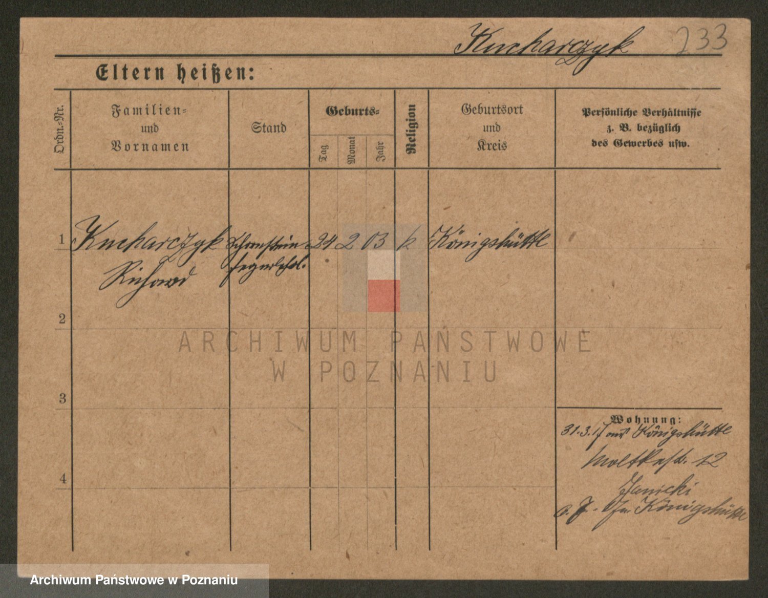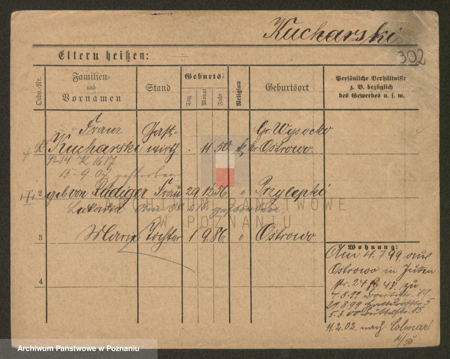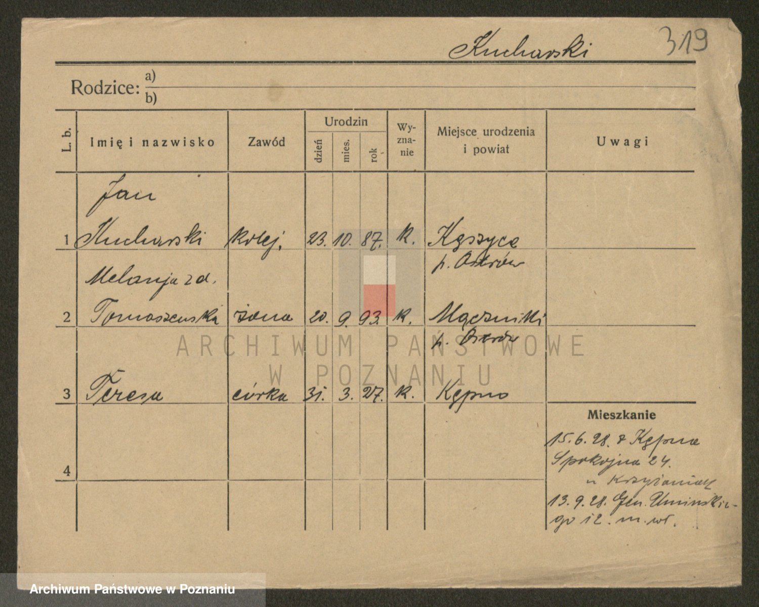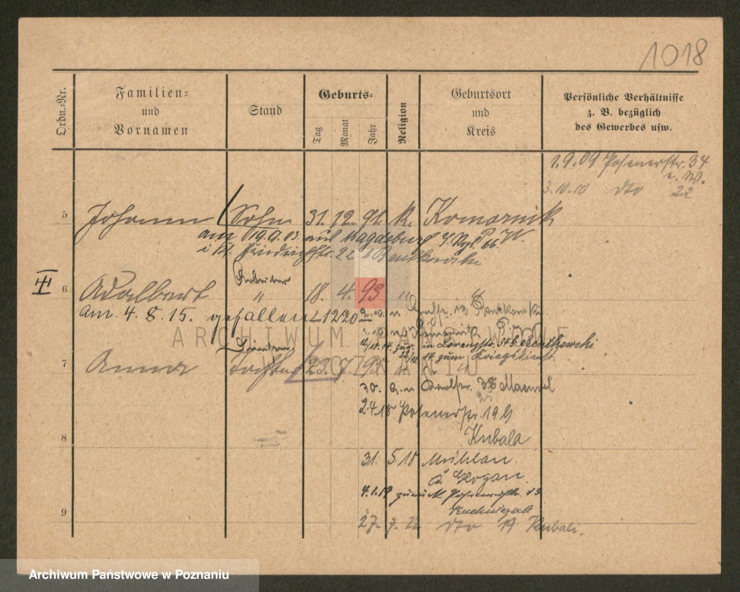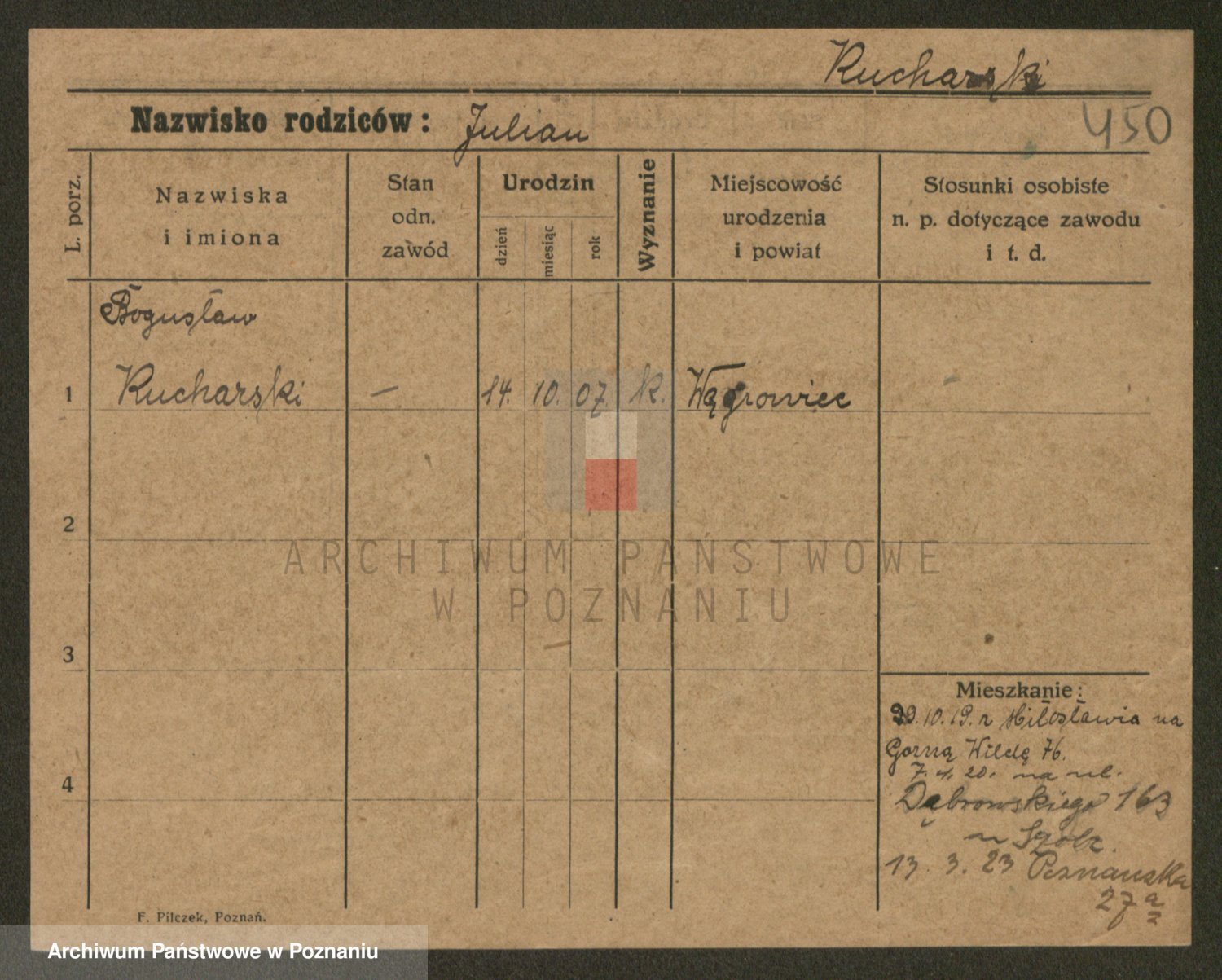 Podgląd karty osobowej dostępny jest po kliknięciu na nazwisko lub ikonkę karty. Można dokonywać powiększenia (ikony na górze) lub przechodzić między kolejnymi skanami (strzałki po bokach).