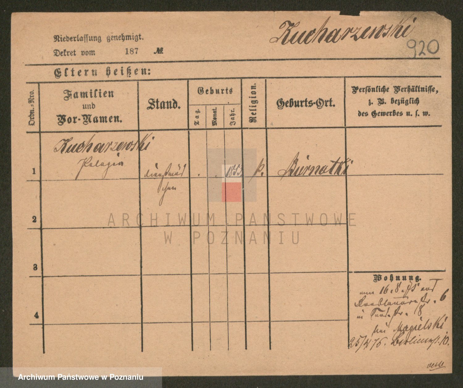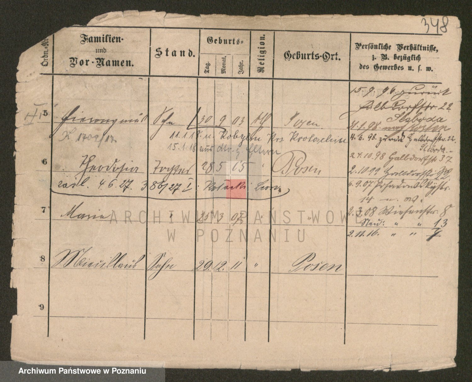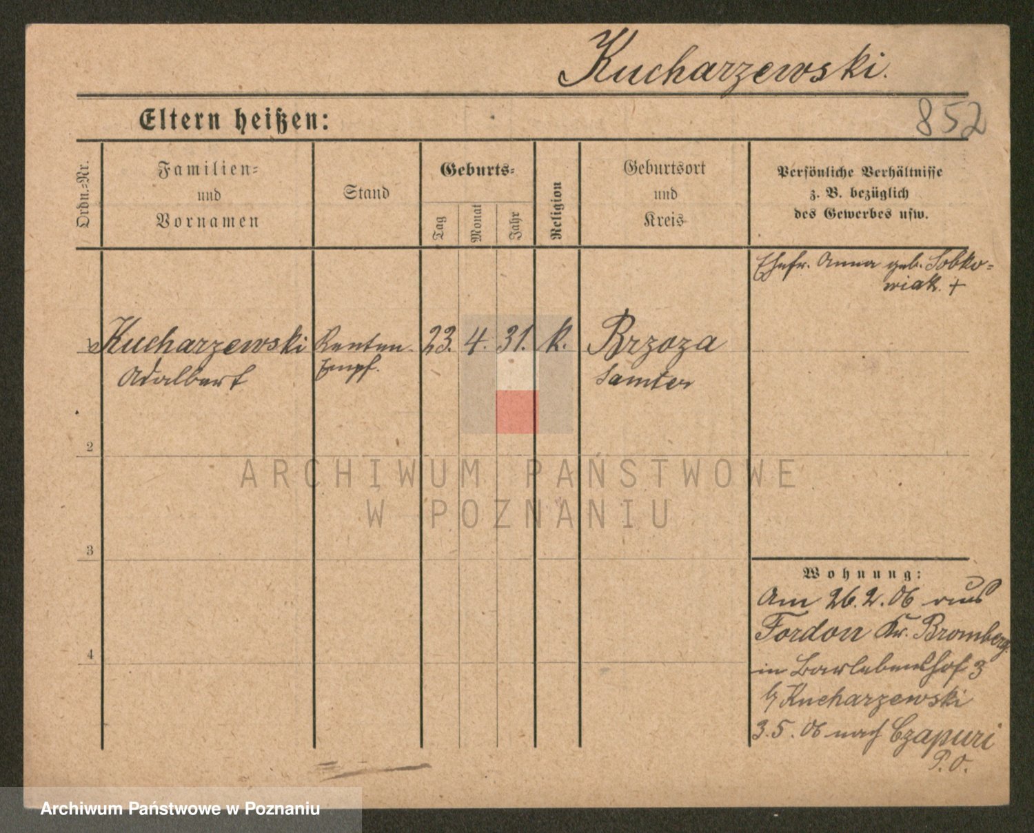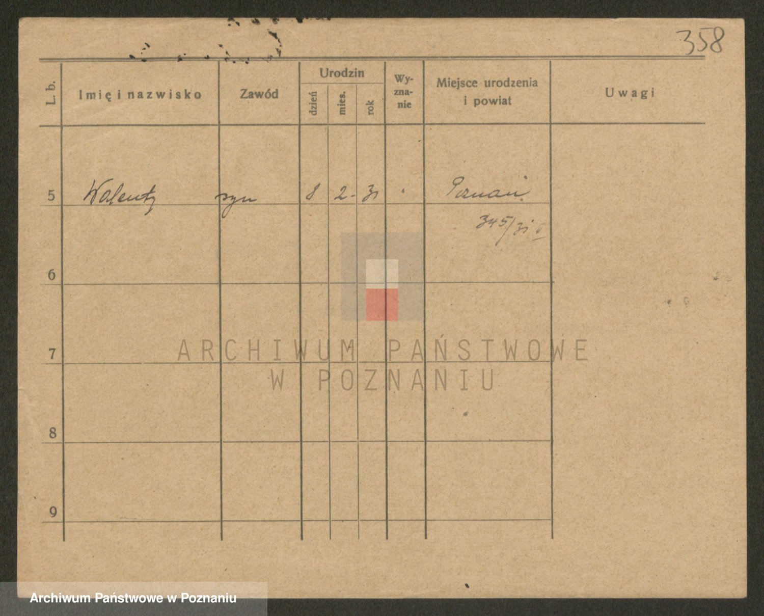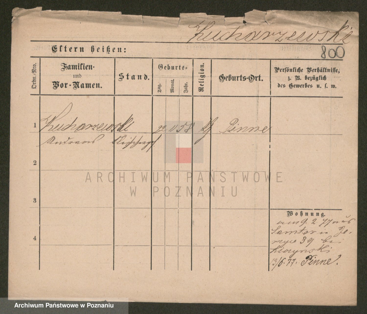 Podgląd karty osobowej dostępny jest po kliknięciu na nazwisko lub ikonkę karty. Można dokonywać powiększenia (ikony na górze) lub przechodzić między kolejnymi skanami (strzałki po bokach).