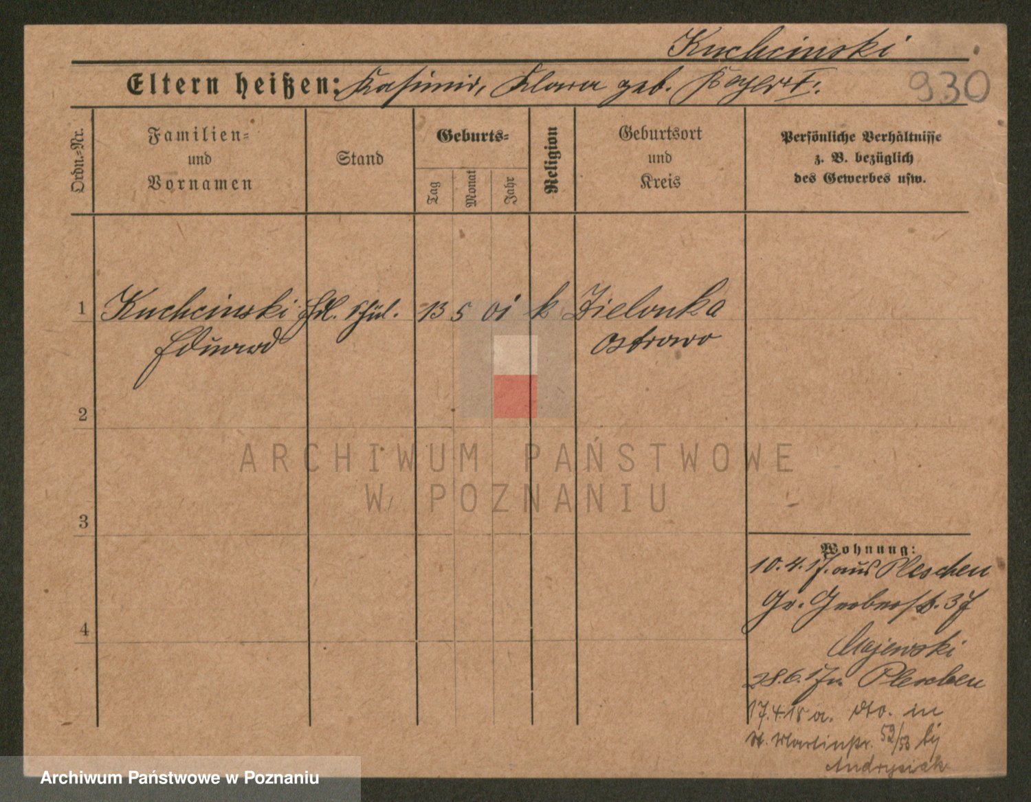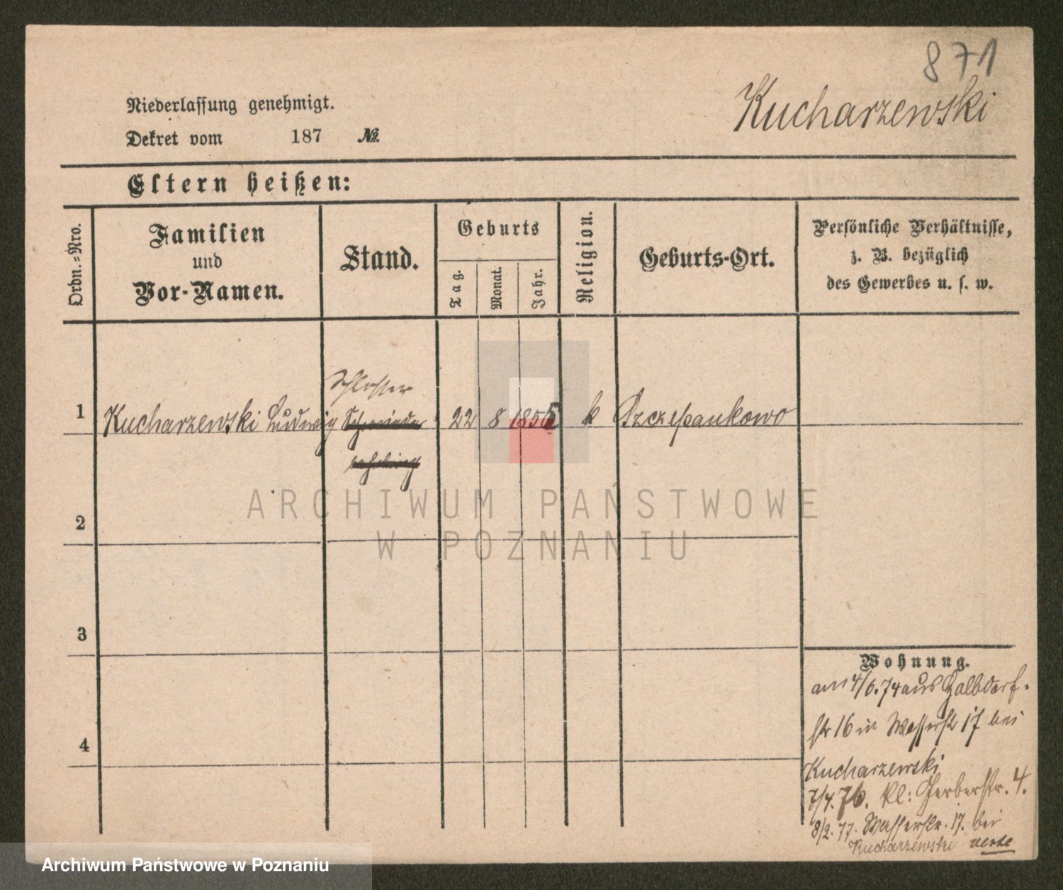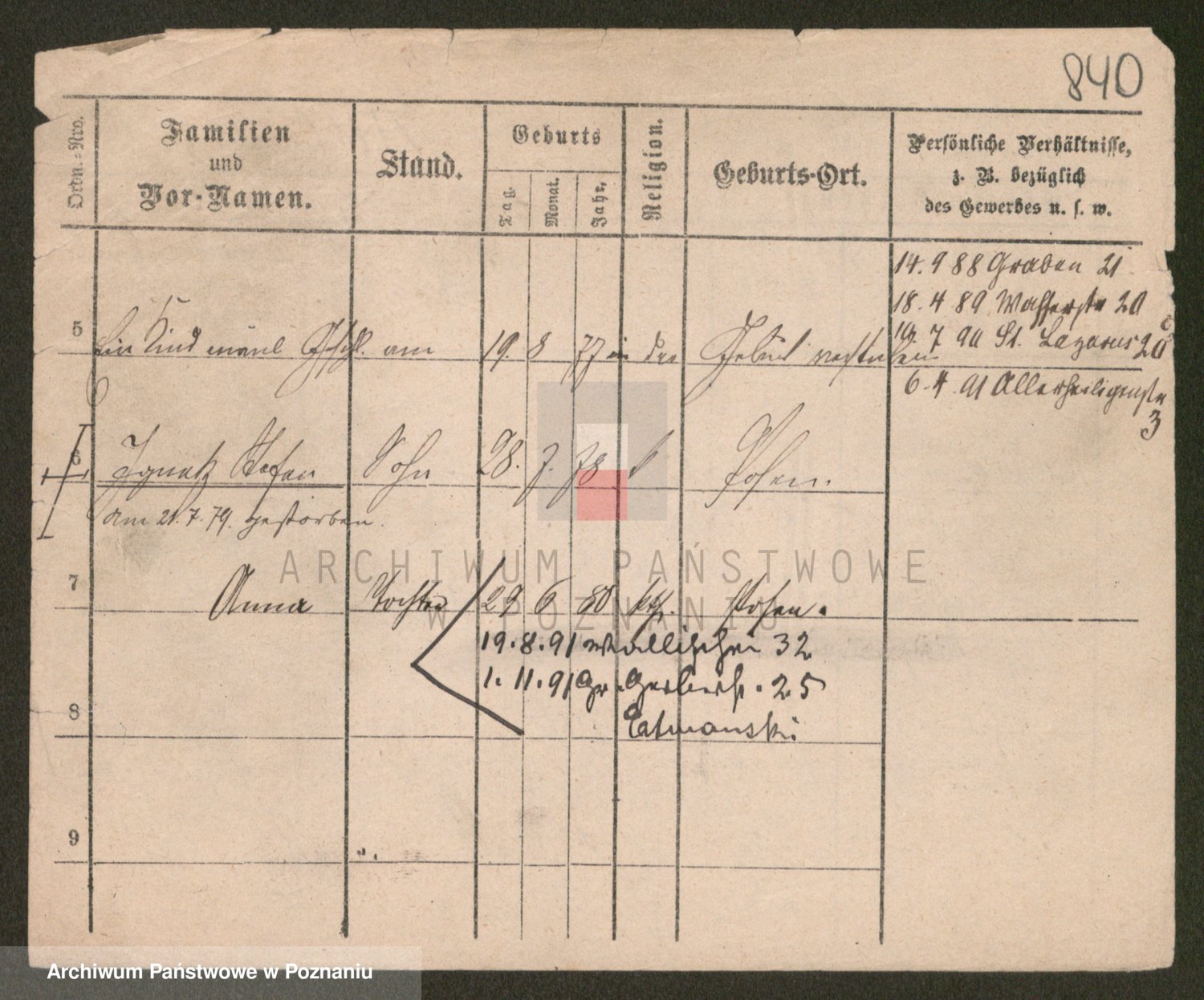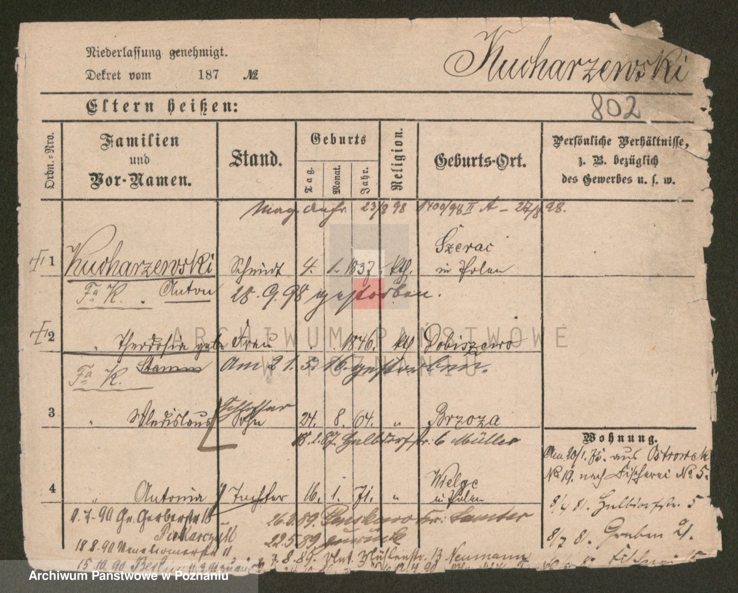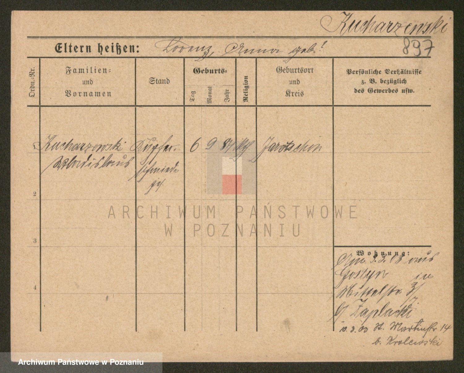 Podgląd karty osobowej dostępny jest po kliknięciu na nazwisko lub ikonkę karty. Można dokonywać powiększenia (ikony na górze) lub przechodzić między kolejnymi skanami (strzałki po bokach).