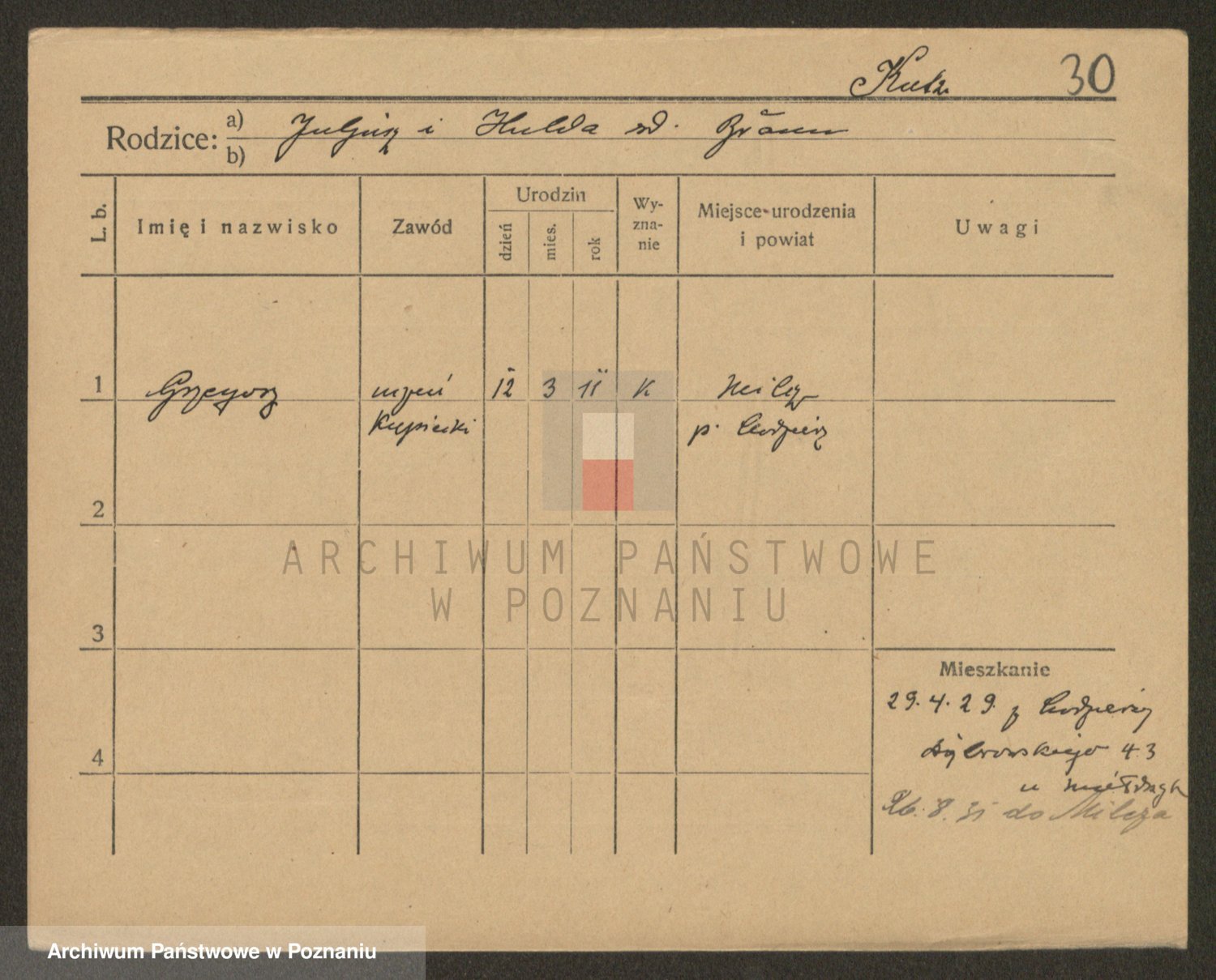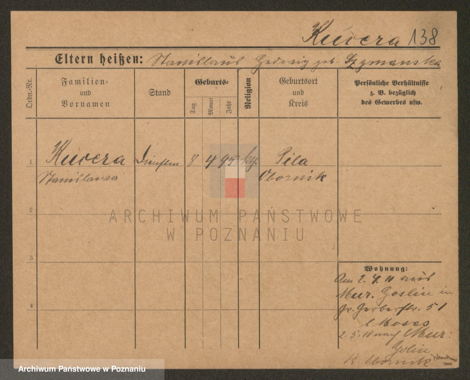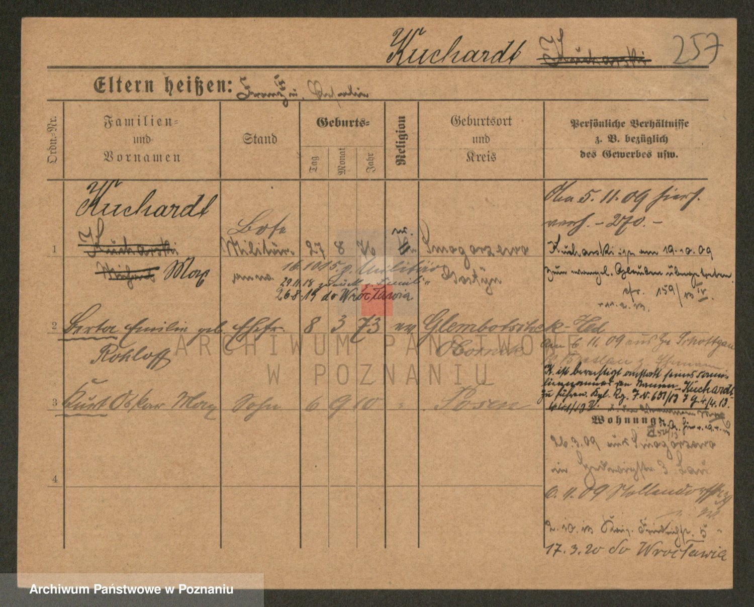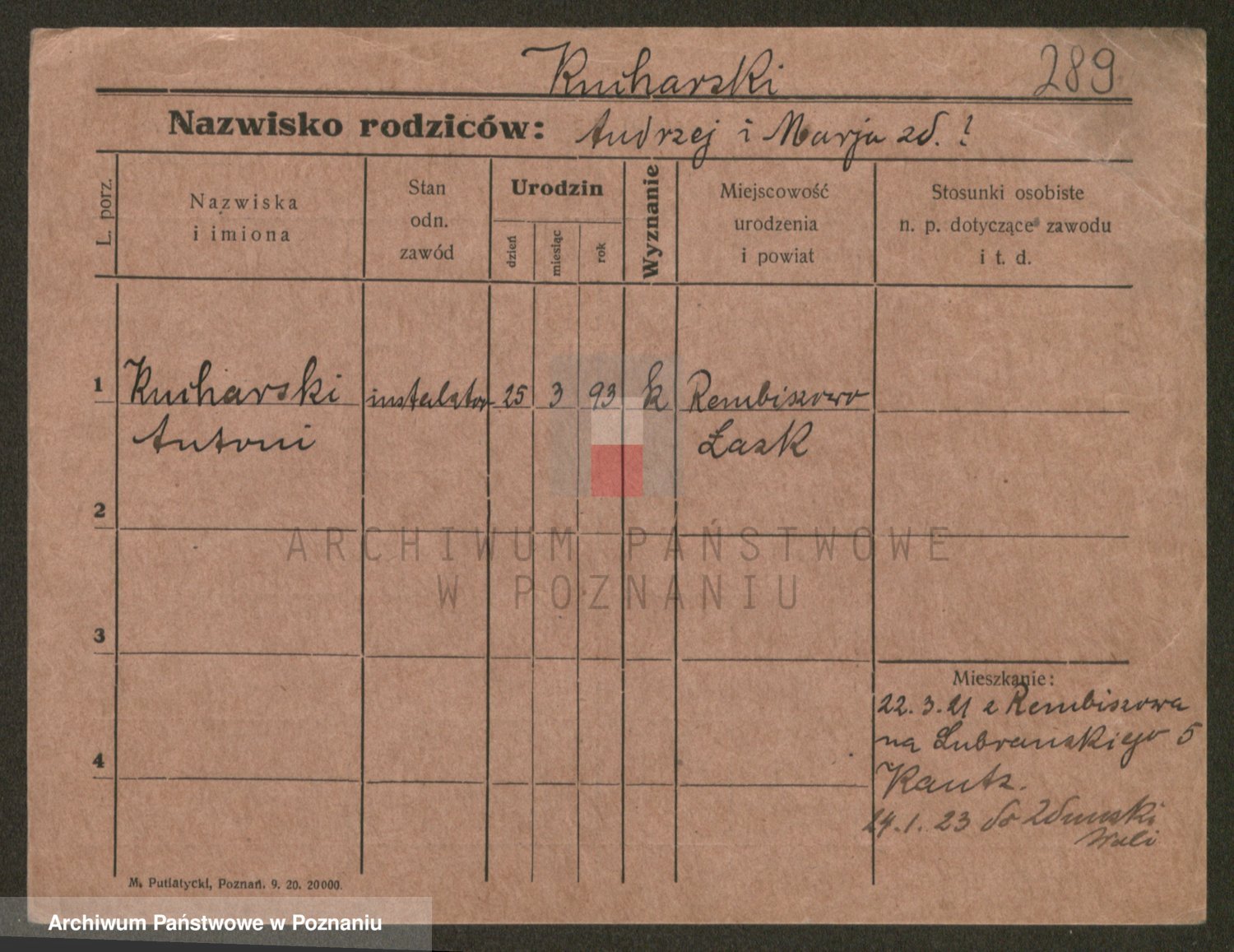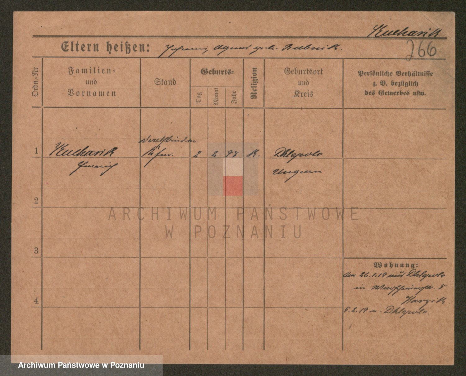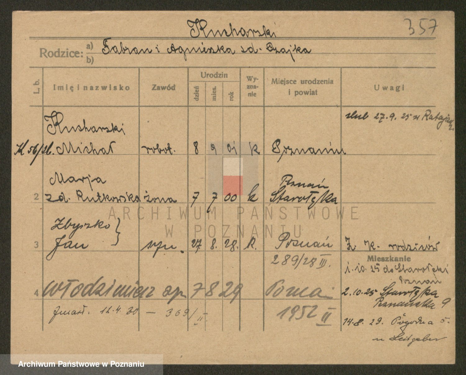 Podgląd karty osobowej dostępny jest po kliknięciu na nazwisko lub ikonkę karty. Można dokonywać powiększenia (ikony na górze) lub przechodzić między kolejnymi skanami (strzałki po bokach).