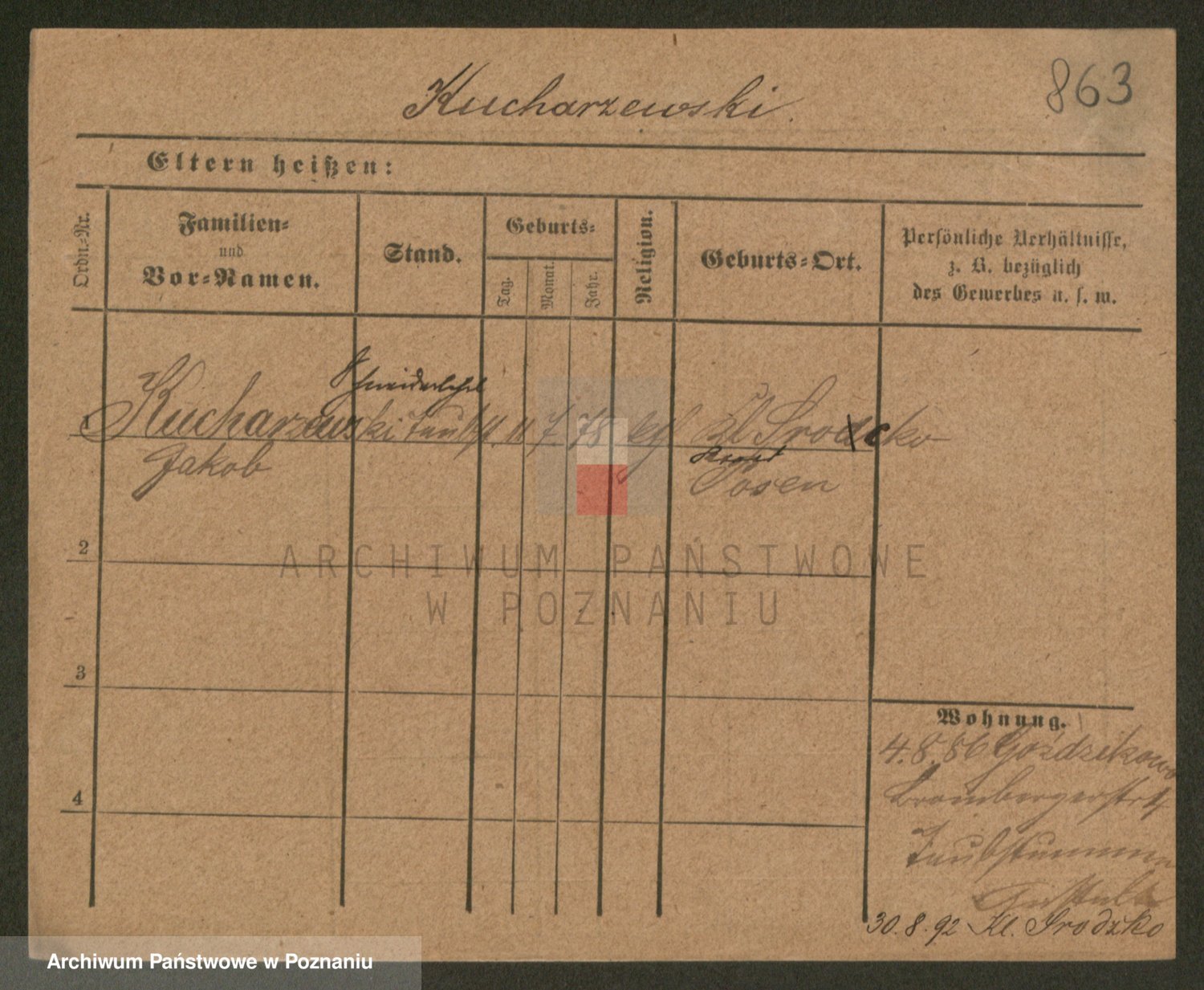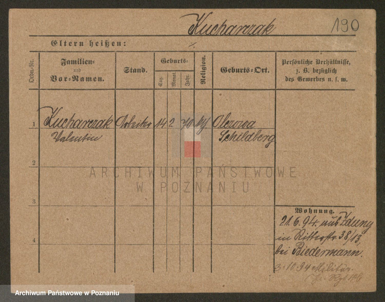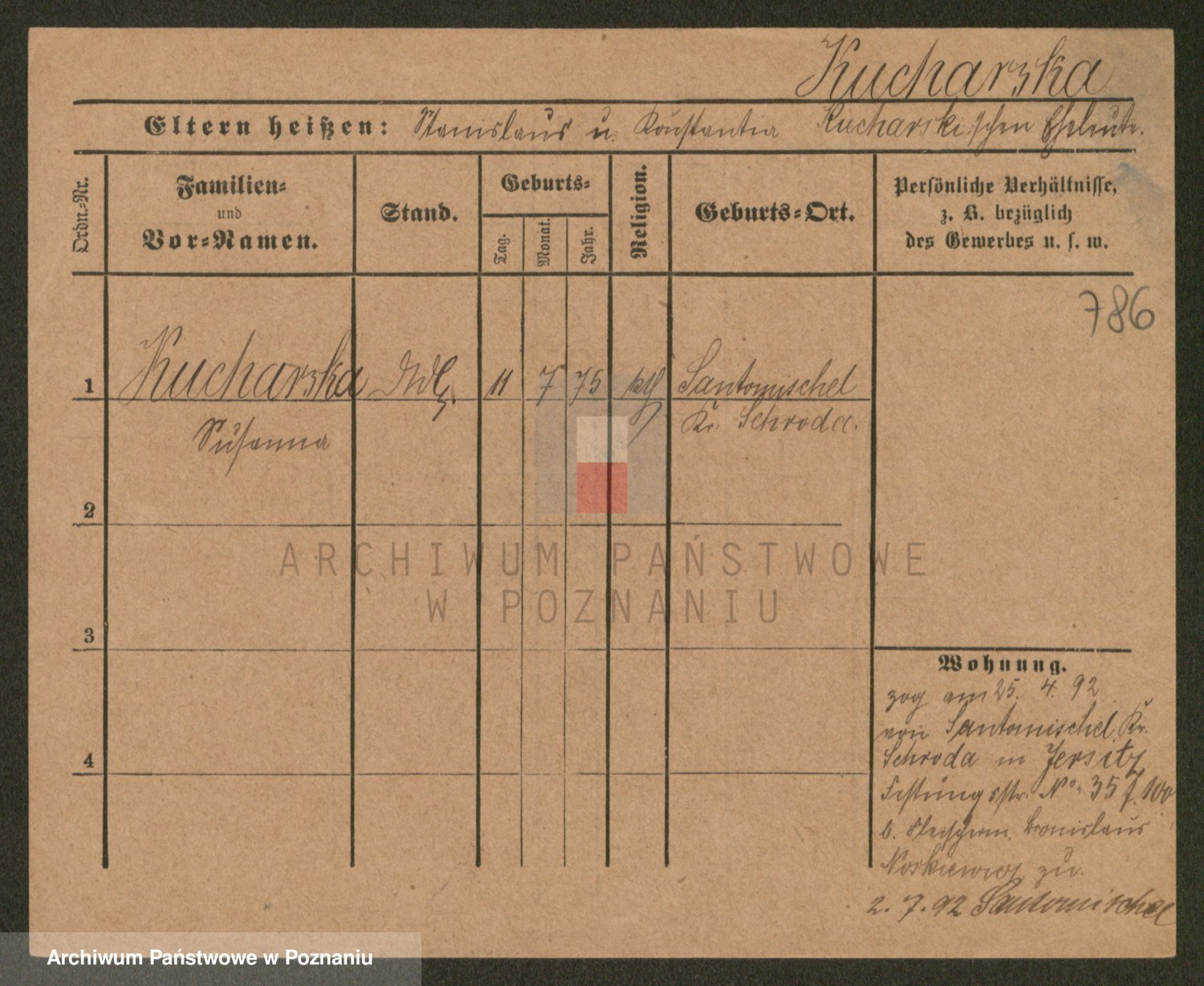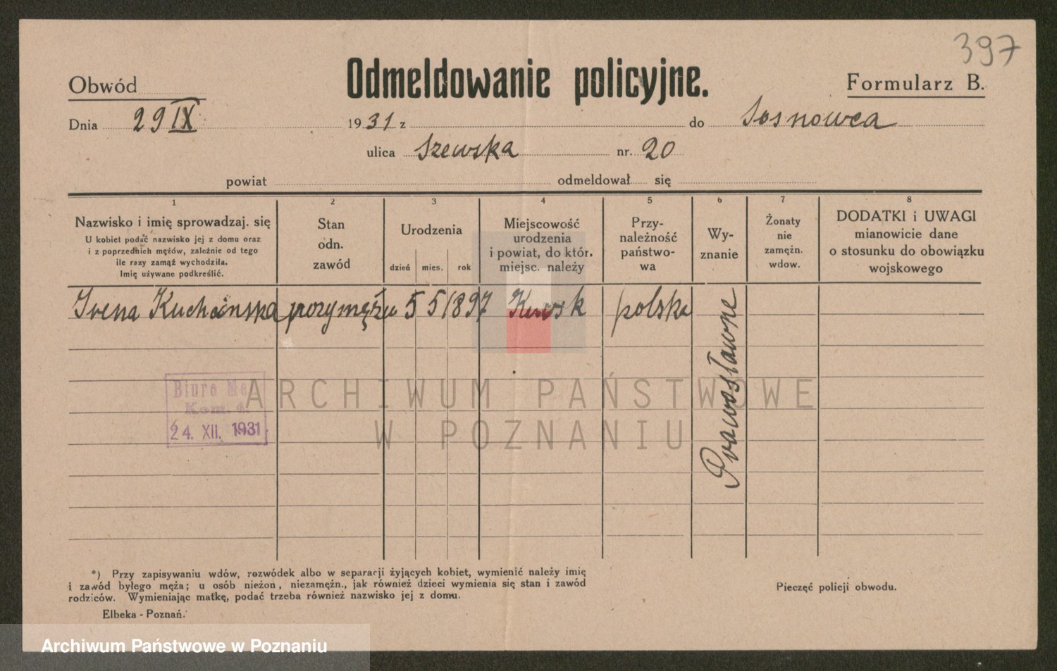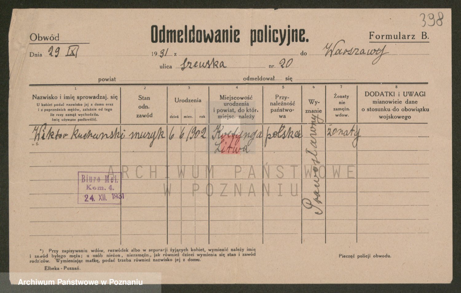 Podgląd karty osobowej dostępny jest po kliknięciu na nazwisko lub ikonkę karty. Można dokonywać powiększenia (ikony na górze) lub przechodzić między kolejnymi skanami (strzałki po bokach).