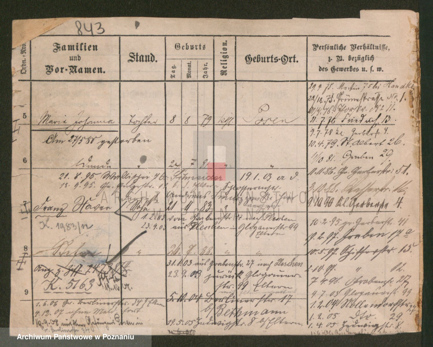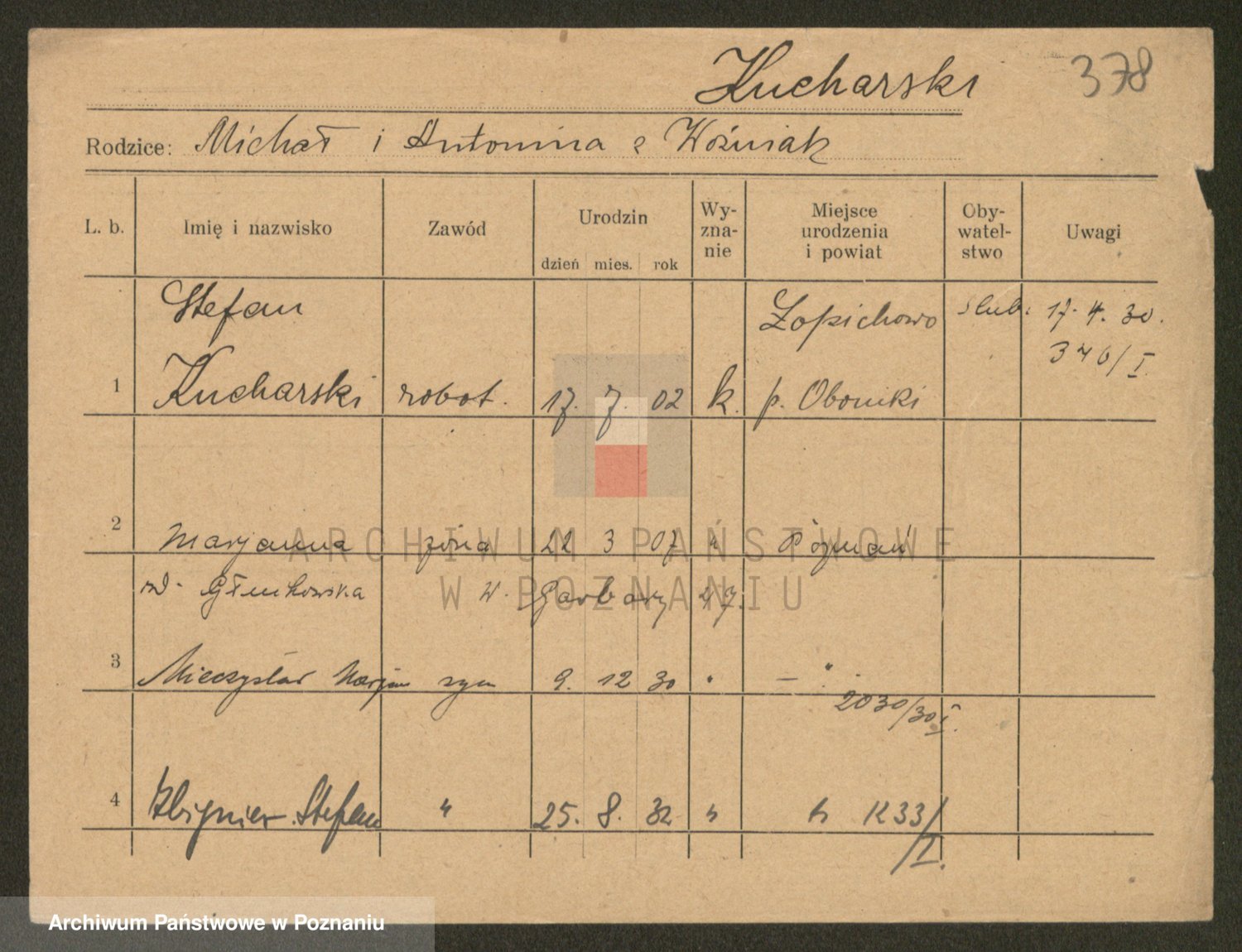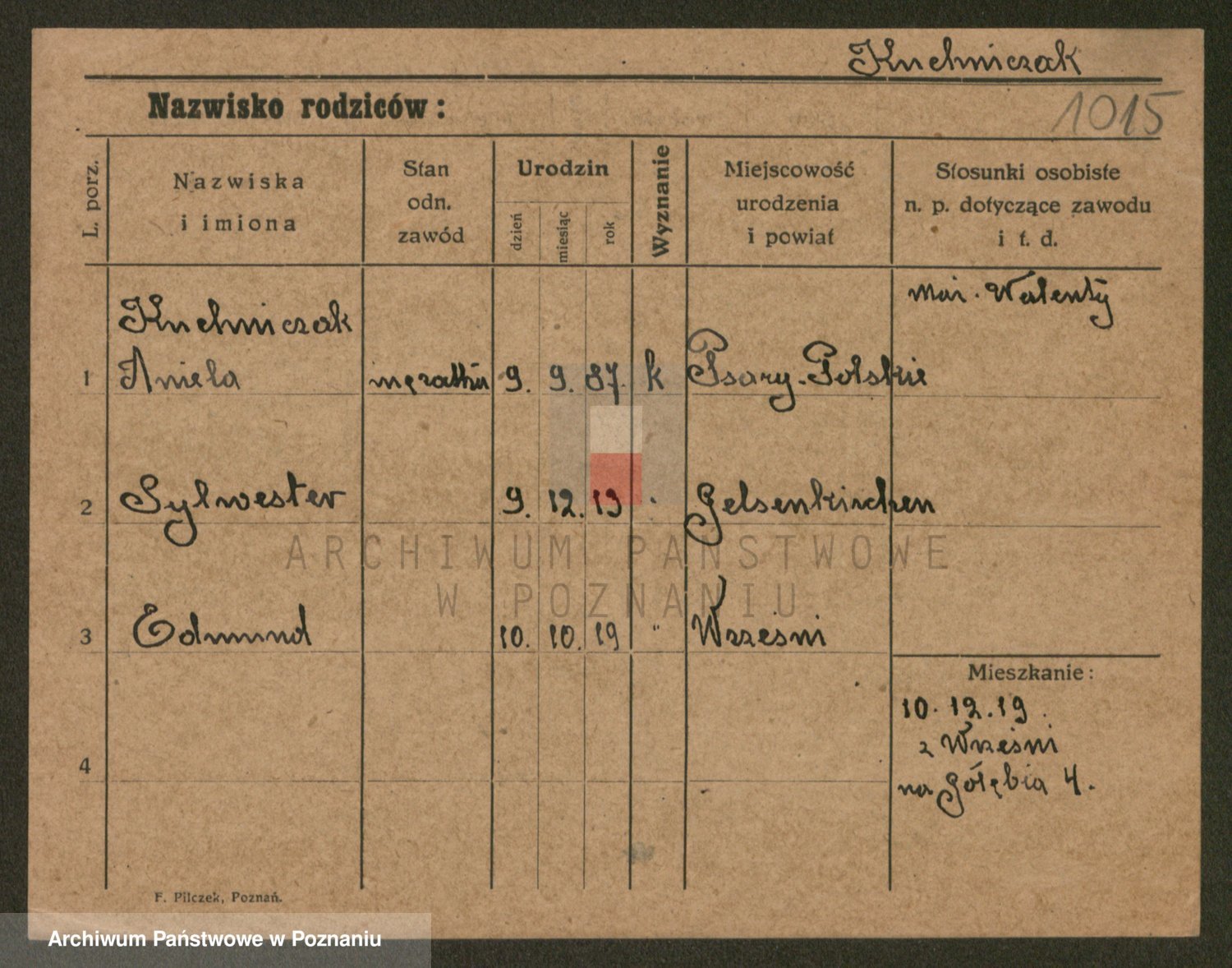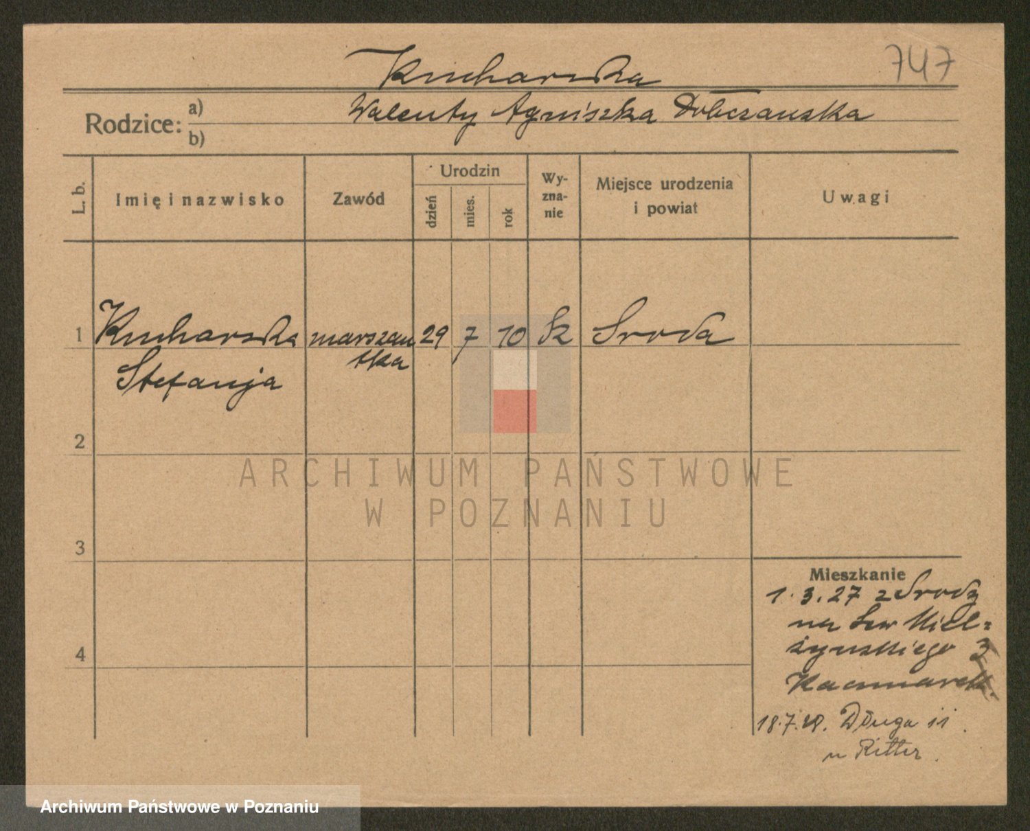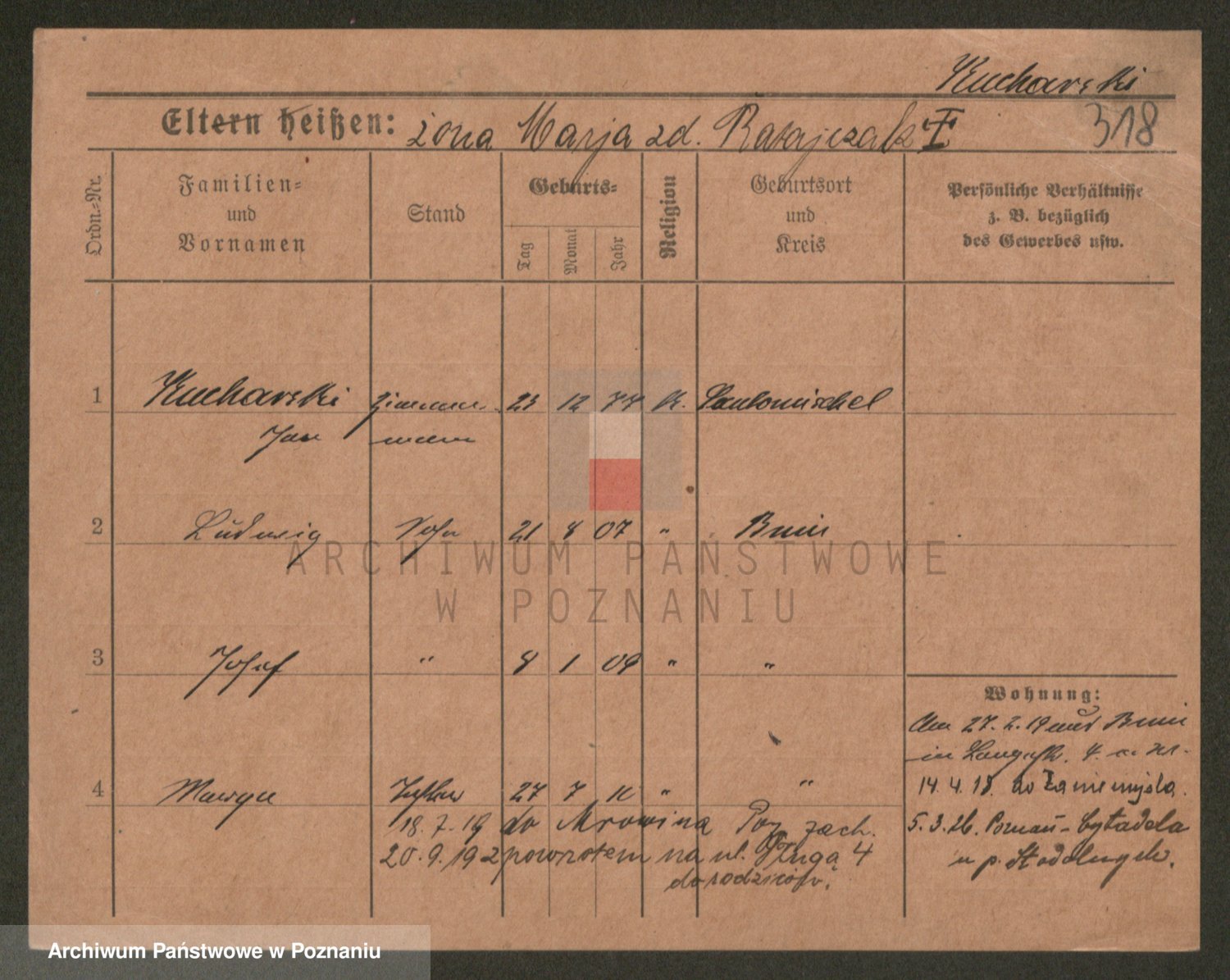 Podgląd karty osobowej dostępny jest po kliknięciu na nazwisko lub ikonkę karty. Można dokonywać powiększenia (ikony na górze) lub przechodzić między kolejnymi skanami (strzałki po bokach).