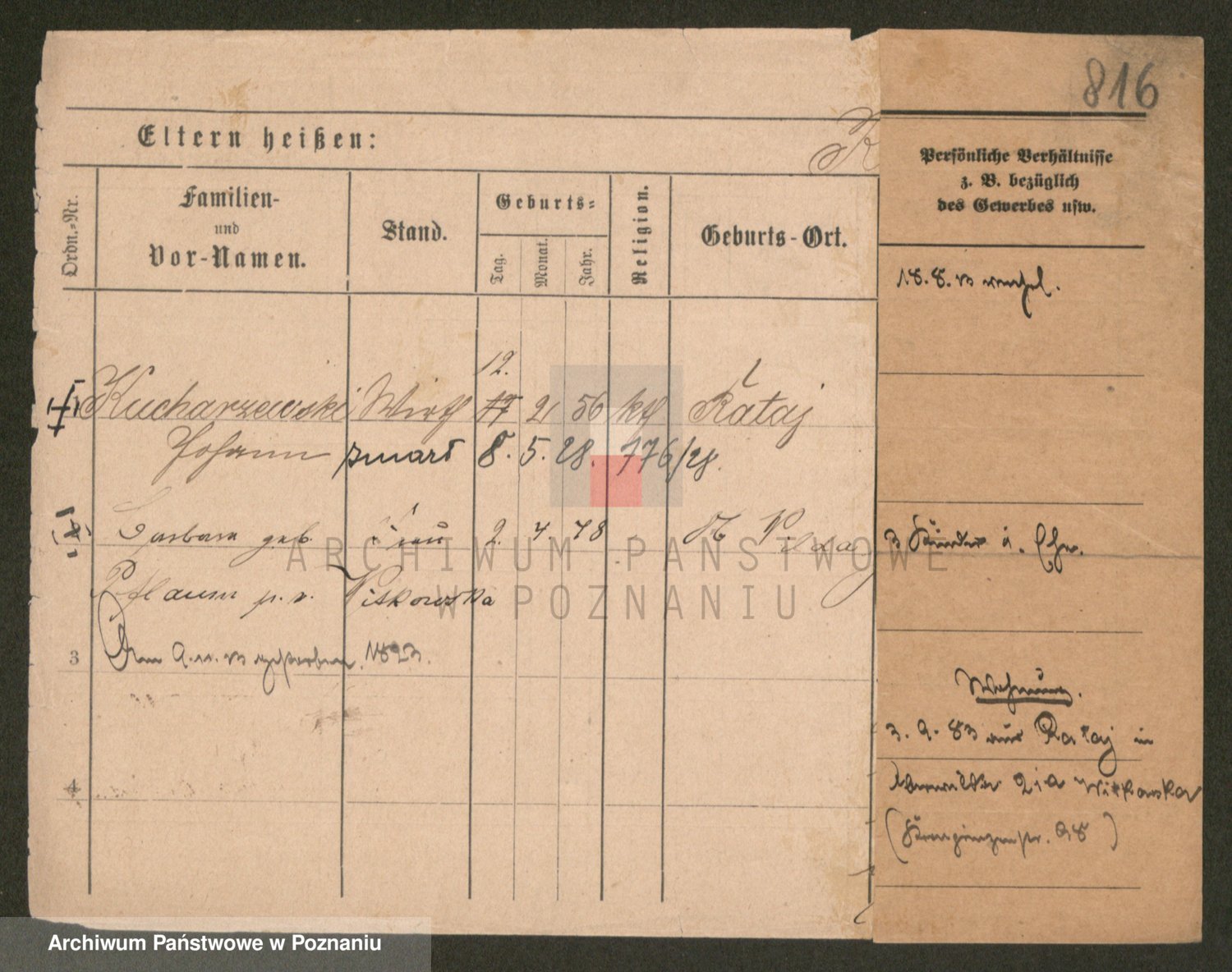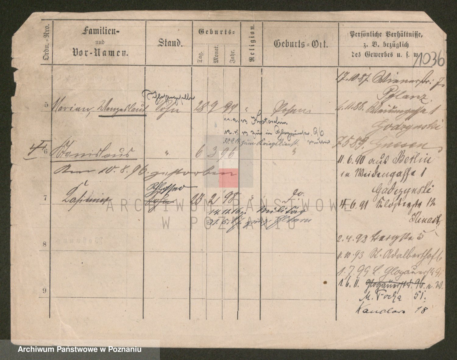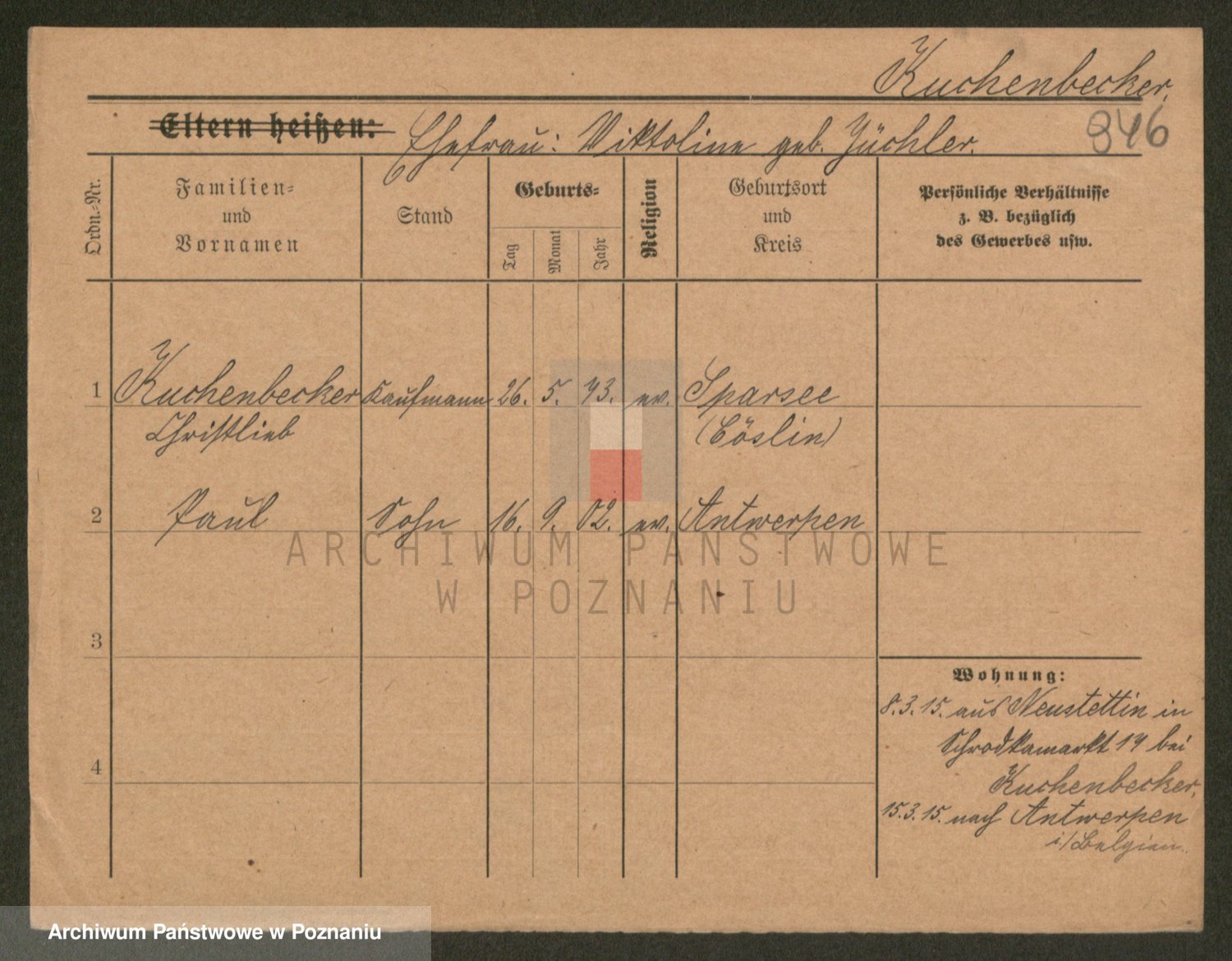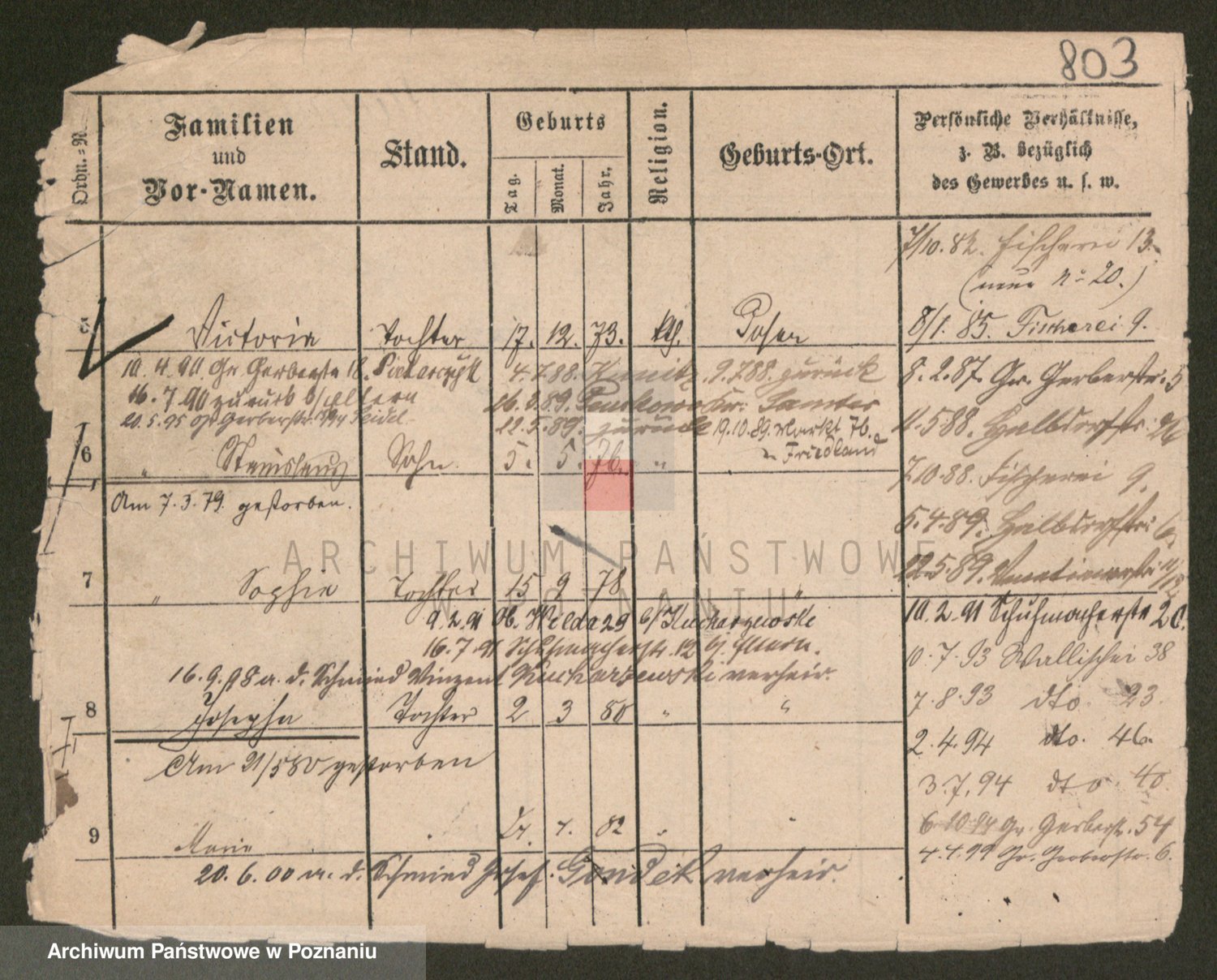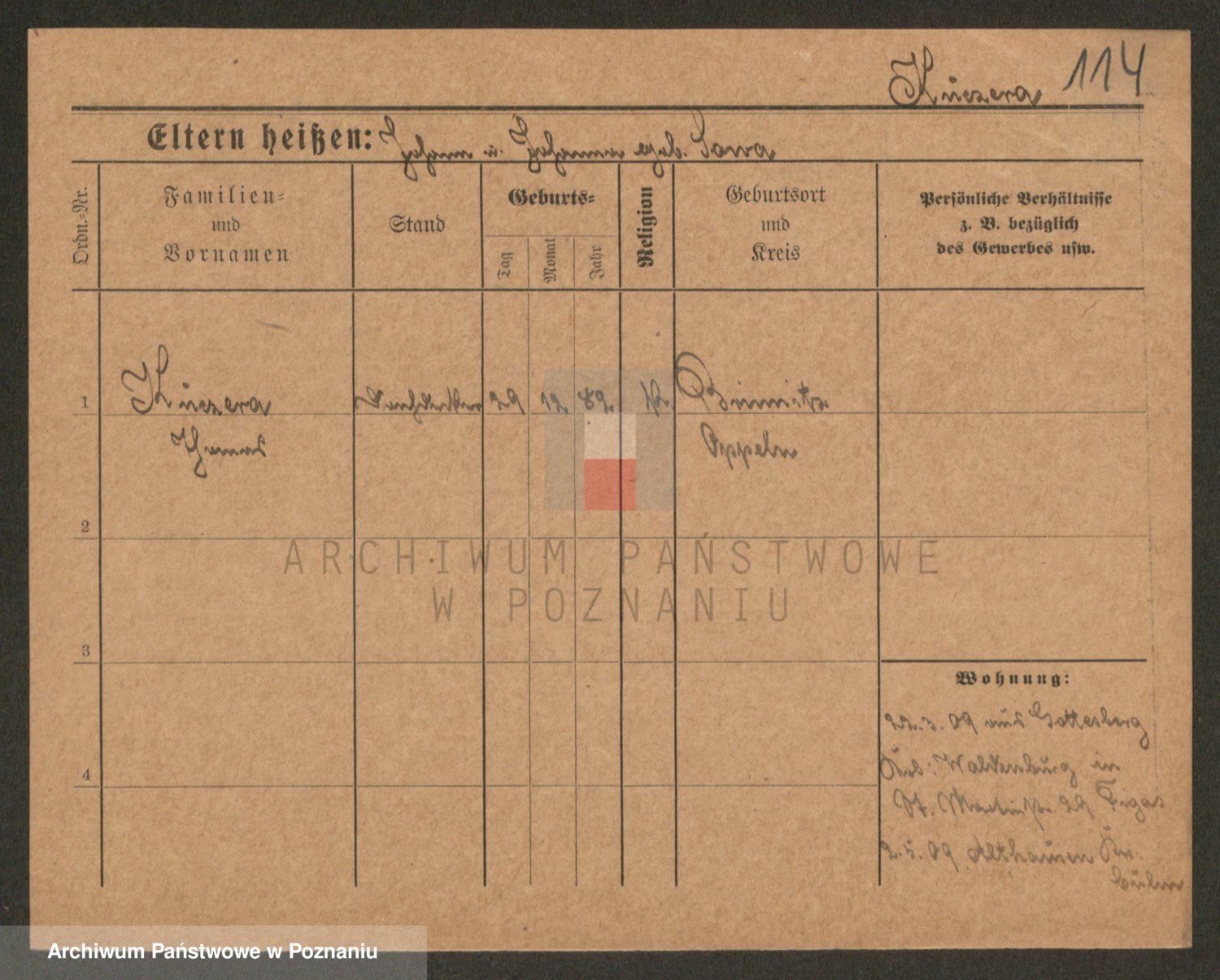 Podgląd karty osobowej dostępny jest po kliknięciu na nazwisko lub ikonkę karty. Można dokonywać powiększenia (ikony na górze) lub przechodzić między kolejnymi skanami (strzałki po bokach).