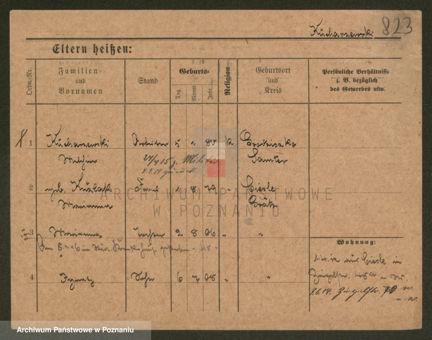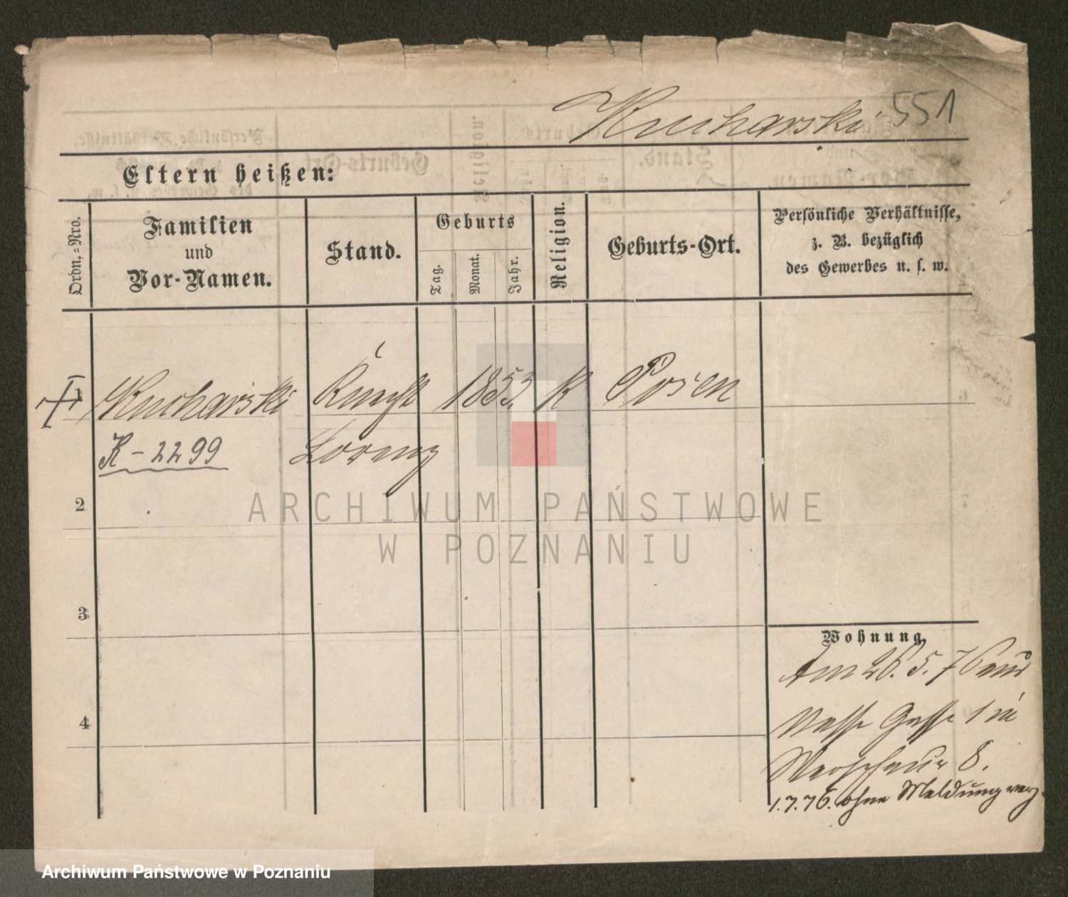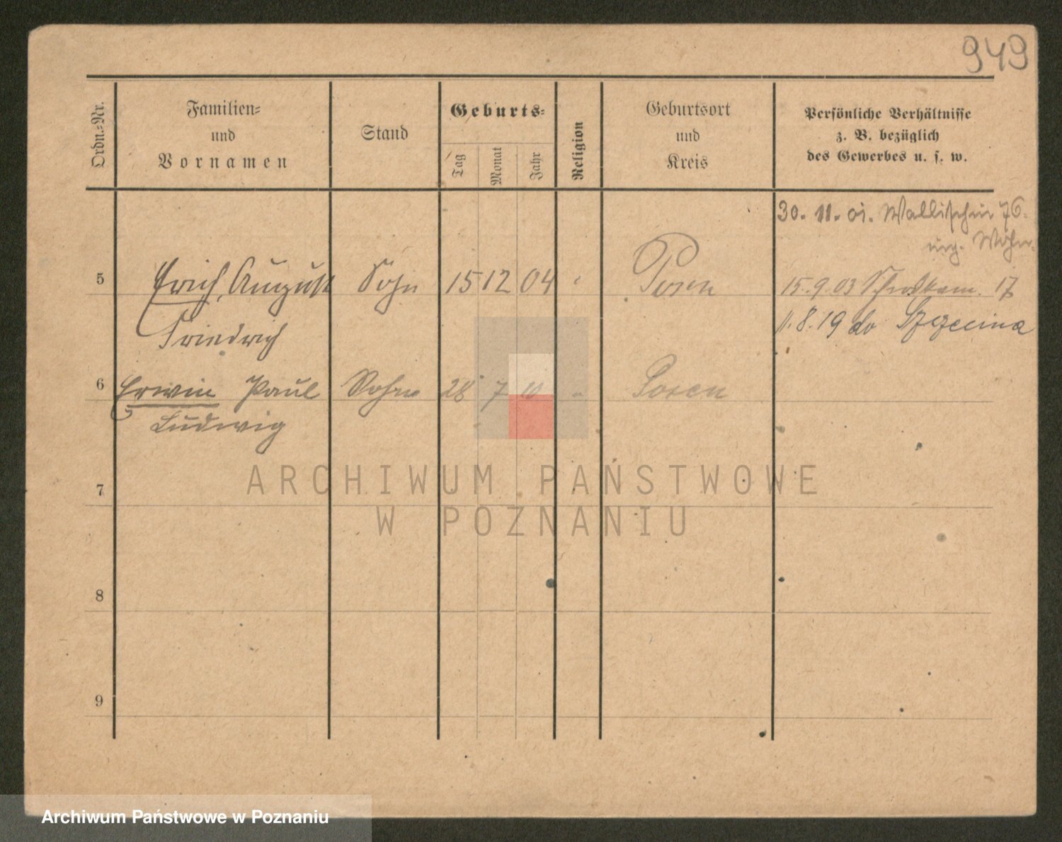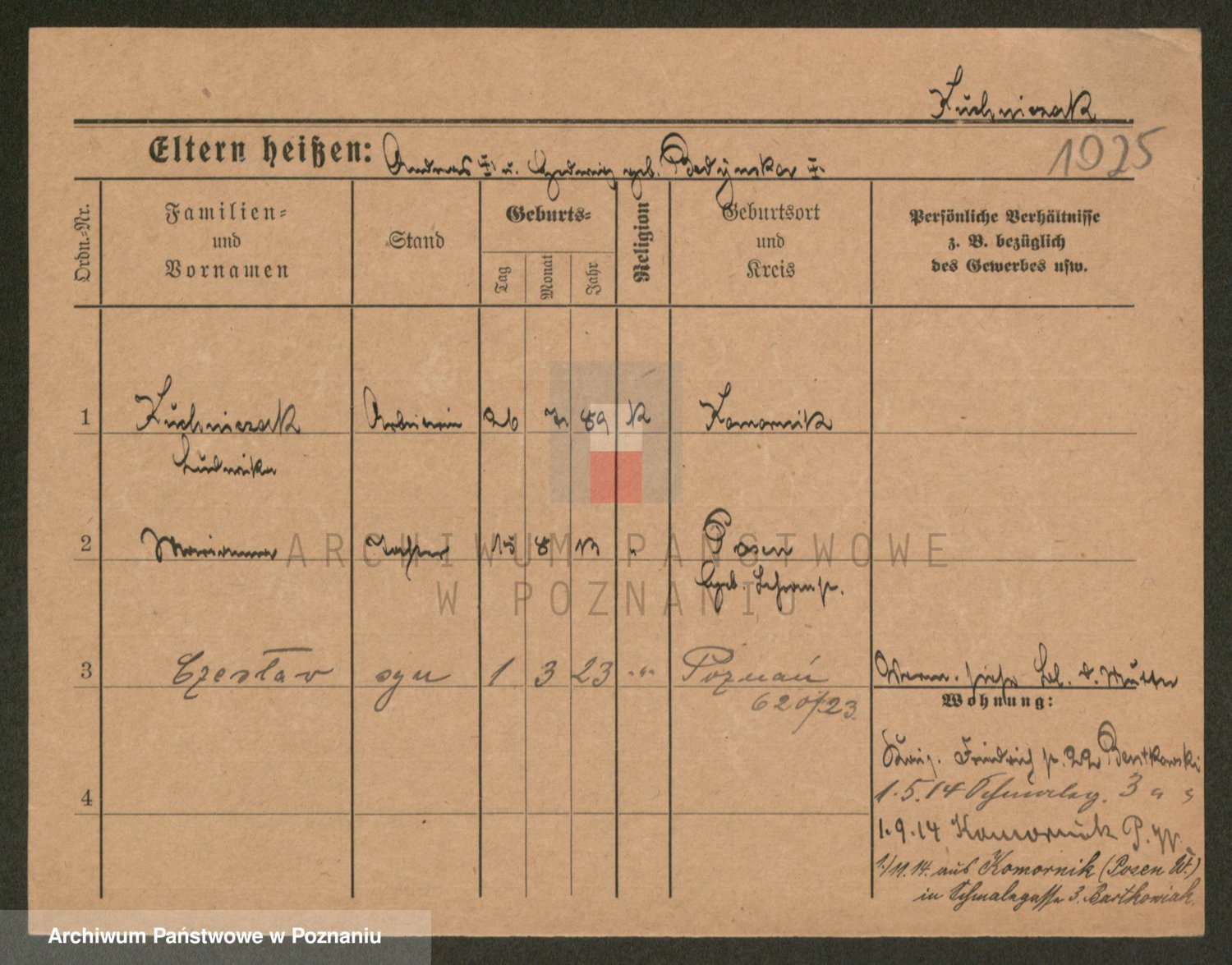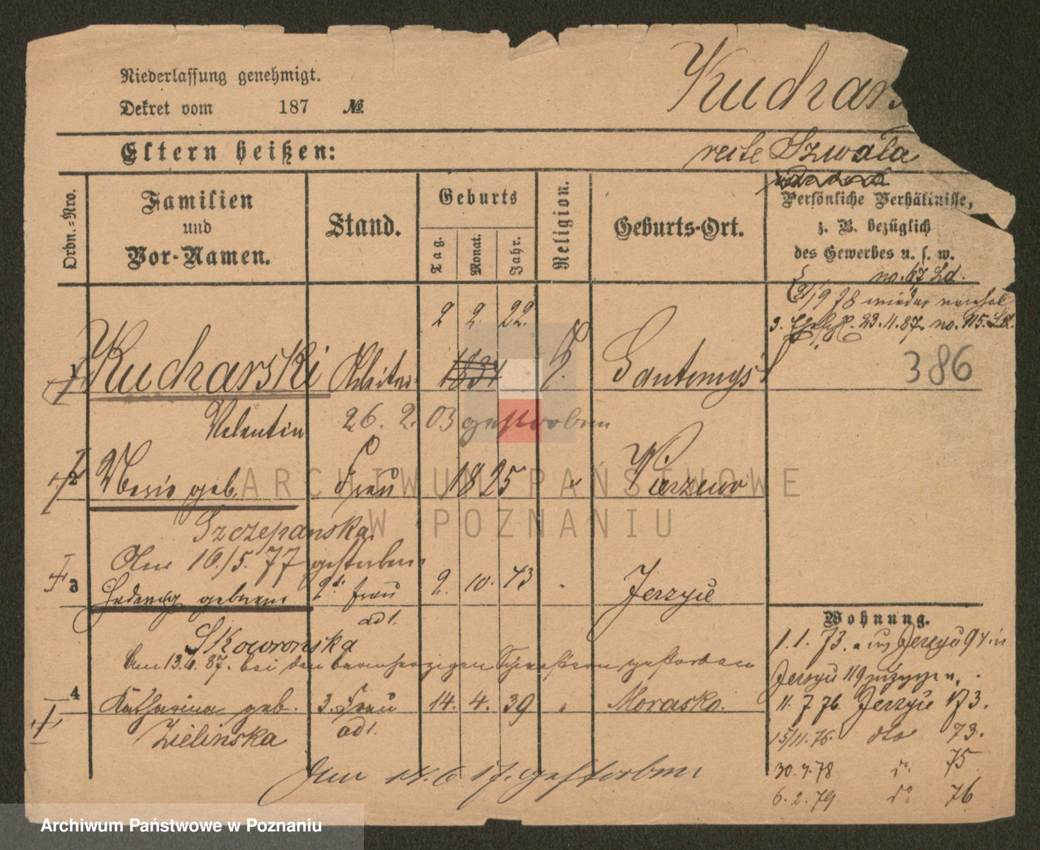 Podgląd karty osobowej dostępny jest po kliknięciu na nazwisko lub ikonkę karty. Można dokonywać powiększenia (ikony na górze) lub przechodzić między kolejnymi skanami (strzałki po bokach).