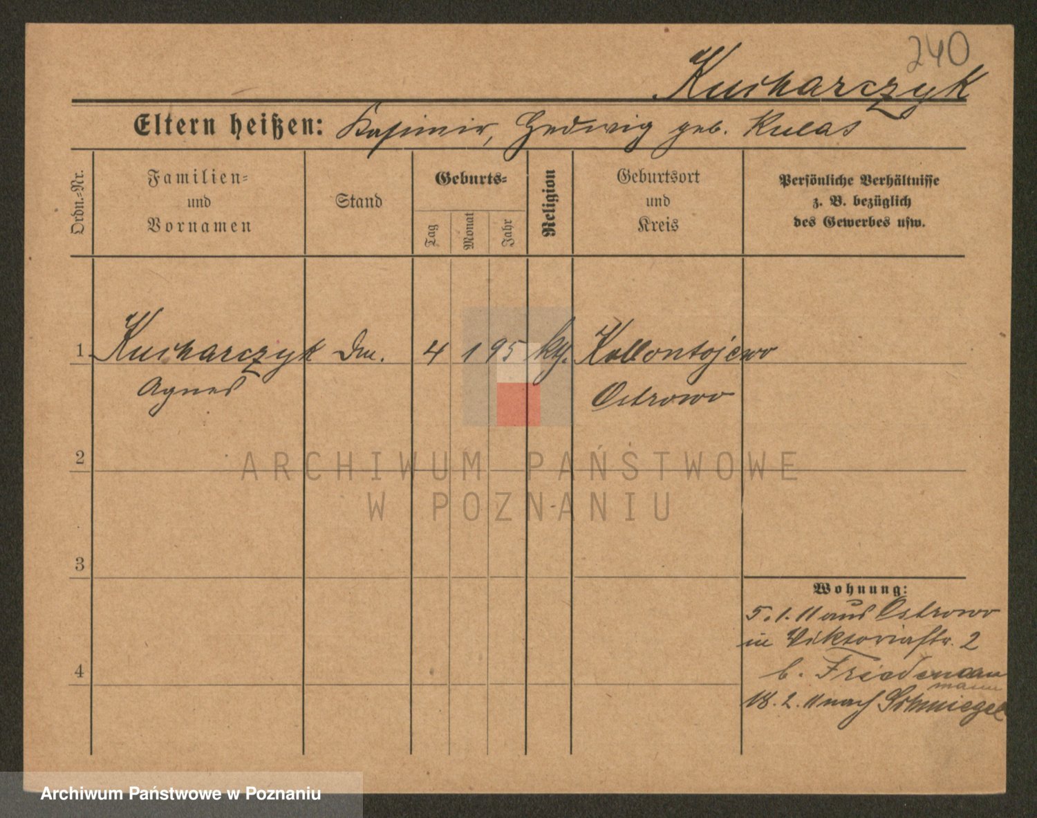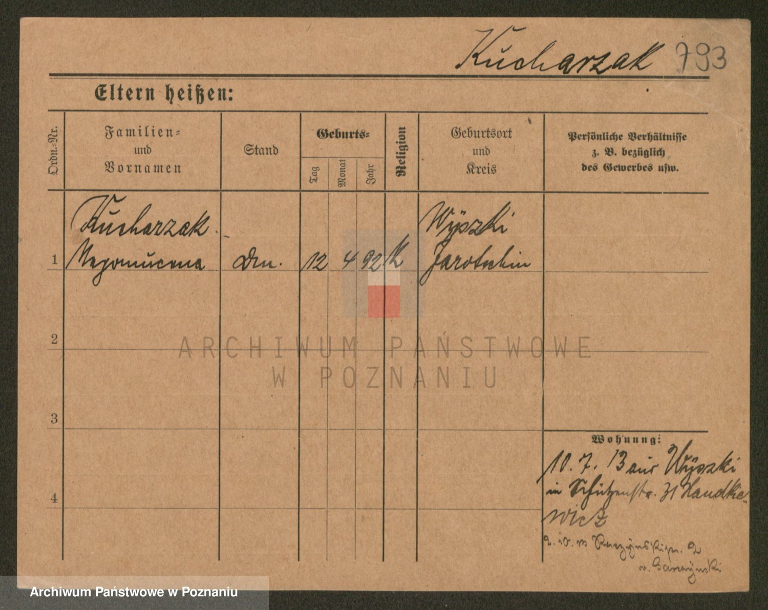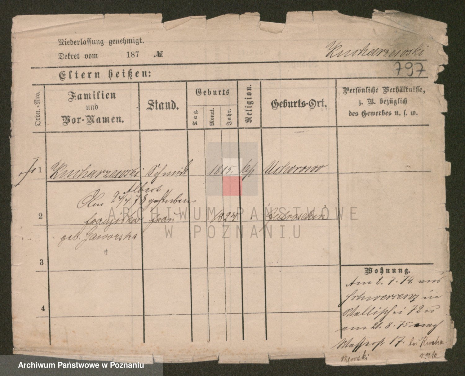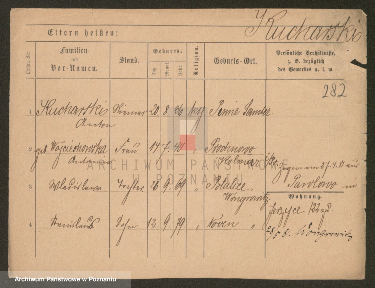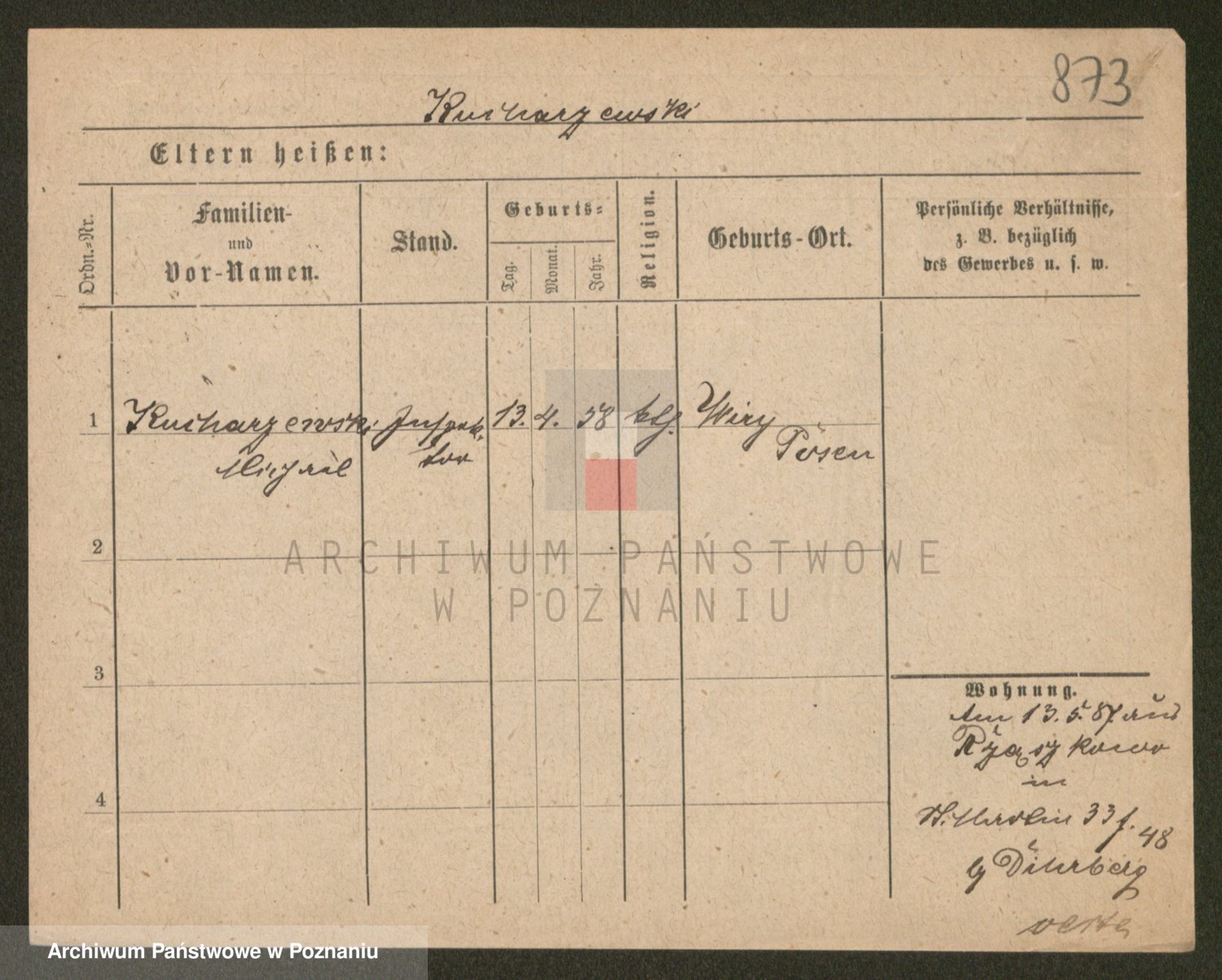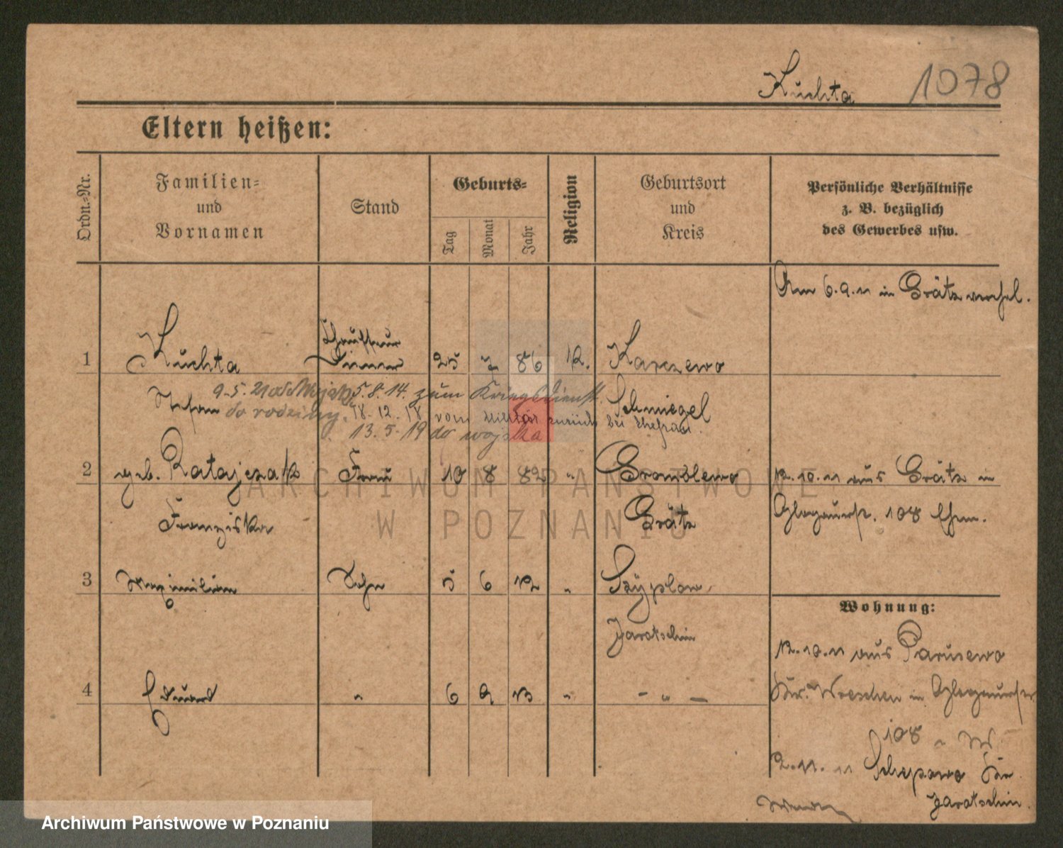 Podgląd karty osobowej dostępny jest po kliknięciu na nazwisko lub ikonkę karty. Można dokonywać powiększenia (ikony na górze) lub przechodzić między kolejnymi skanami (strzałki po bokach).