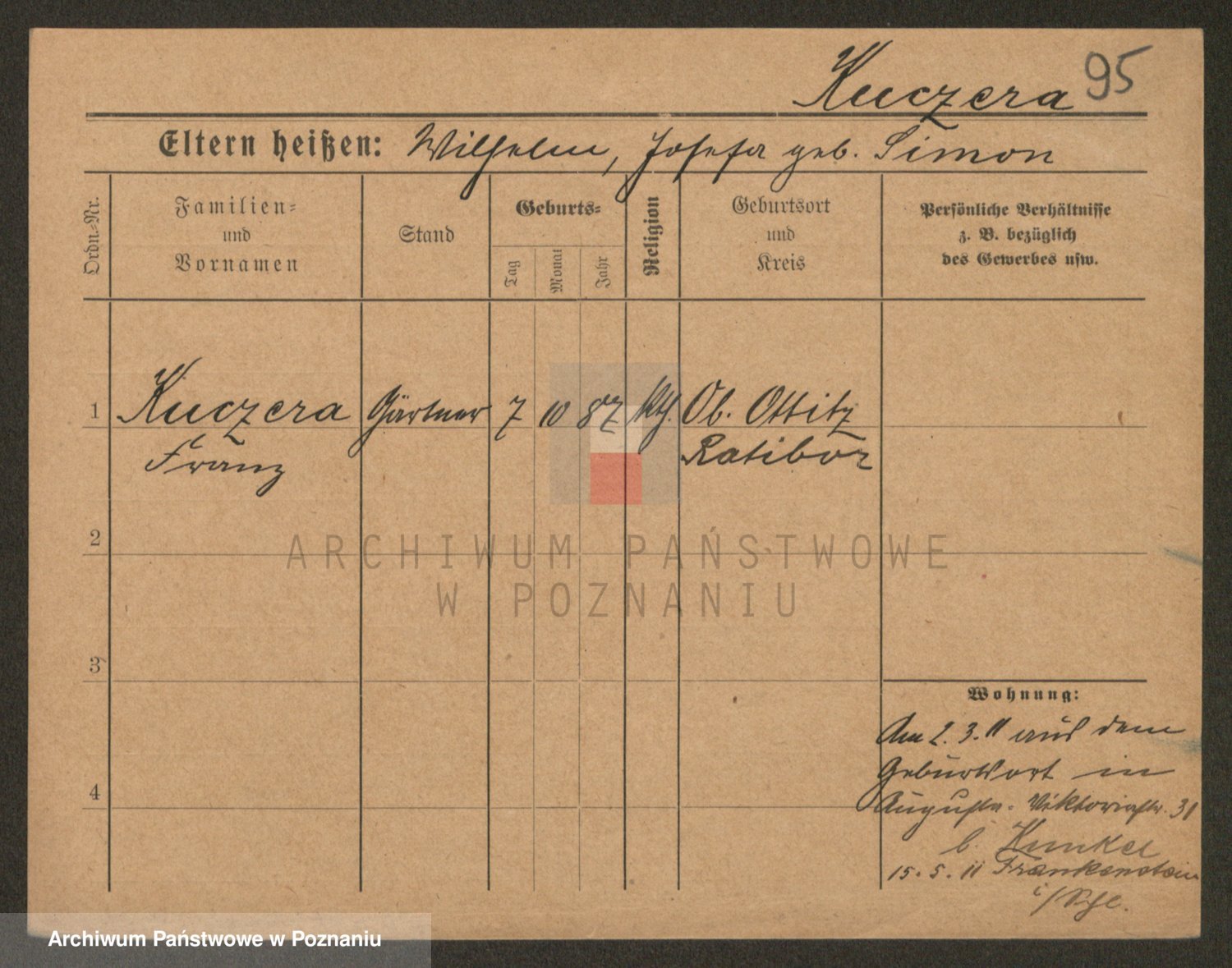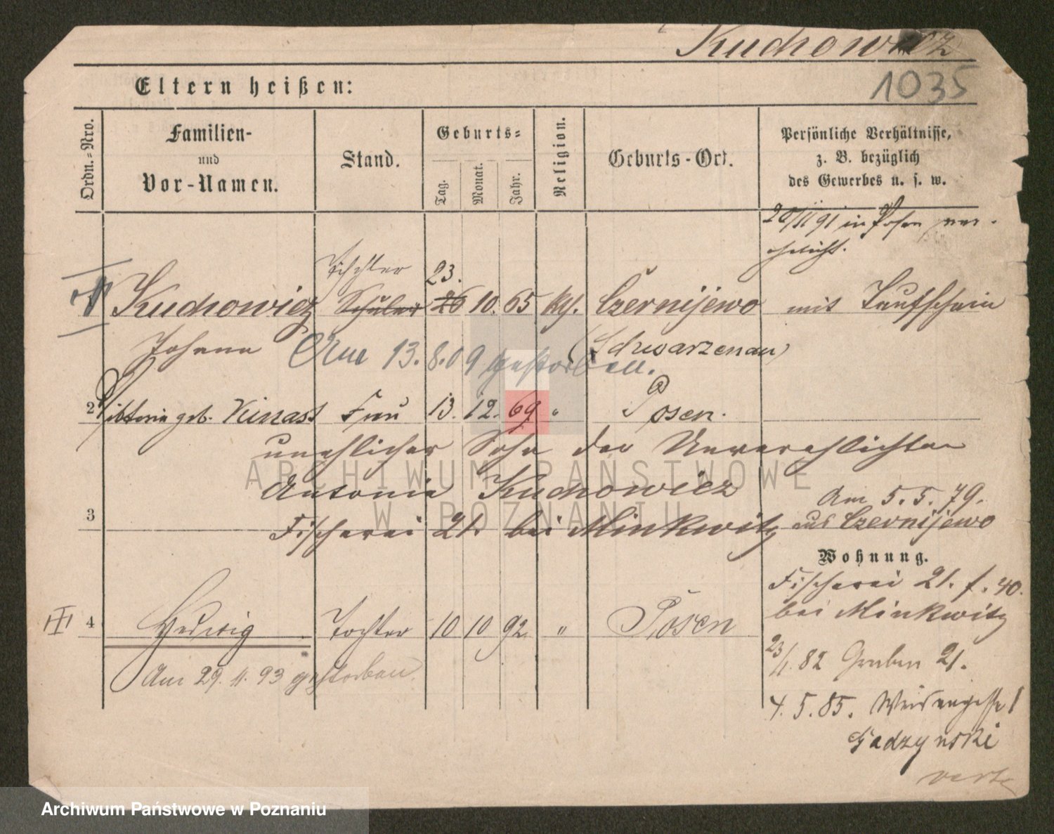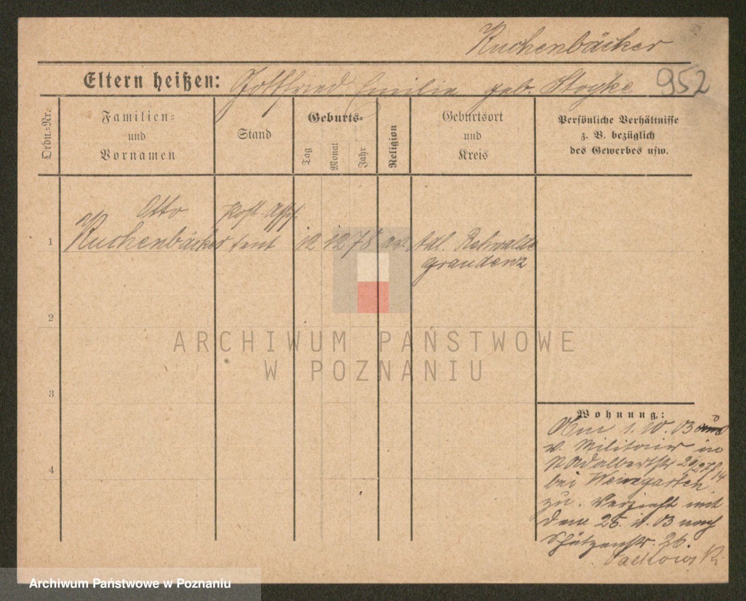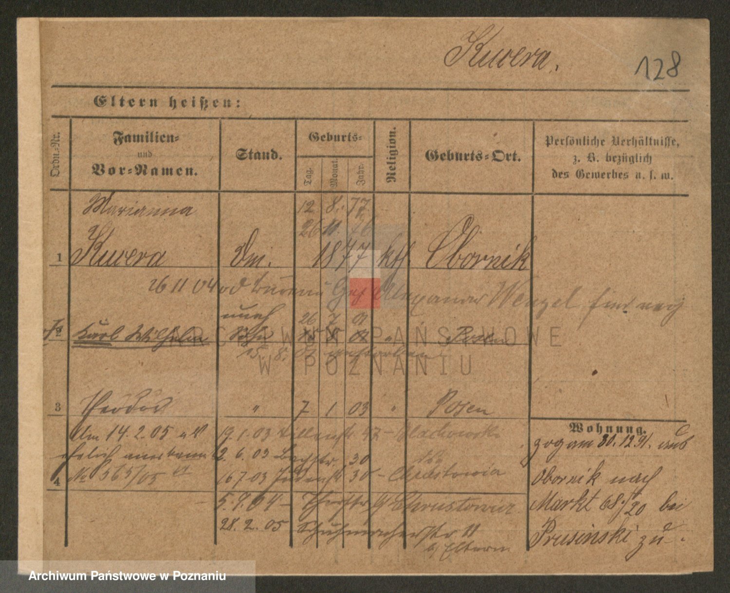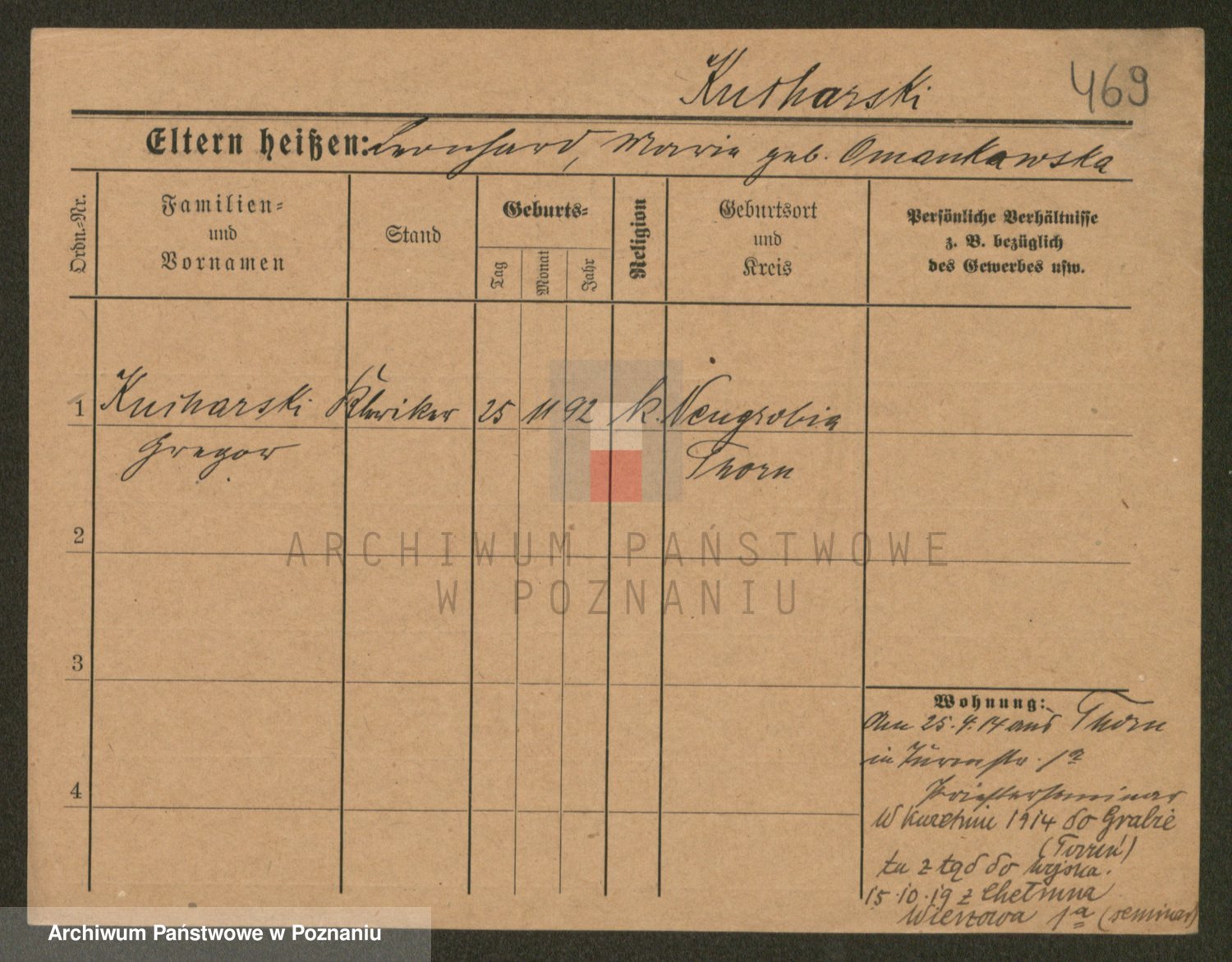 Podgląd karty osobowej dostępny jest po kliknięciu na nazwisko lub ikonkę karty. Można dokonywać powiększenia (ikony na górze) lub przechodzić między kolejnymi skanami (strzałki po bokach).