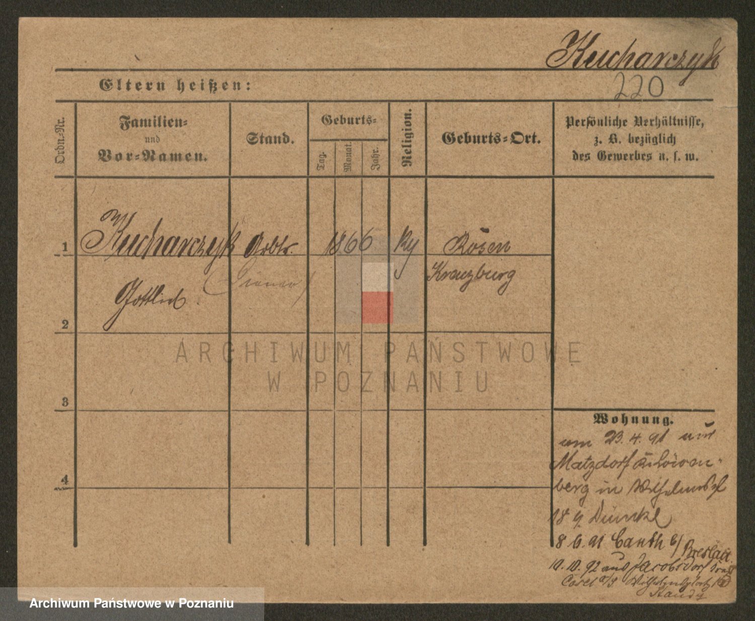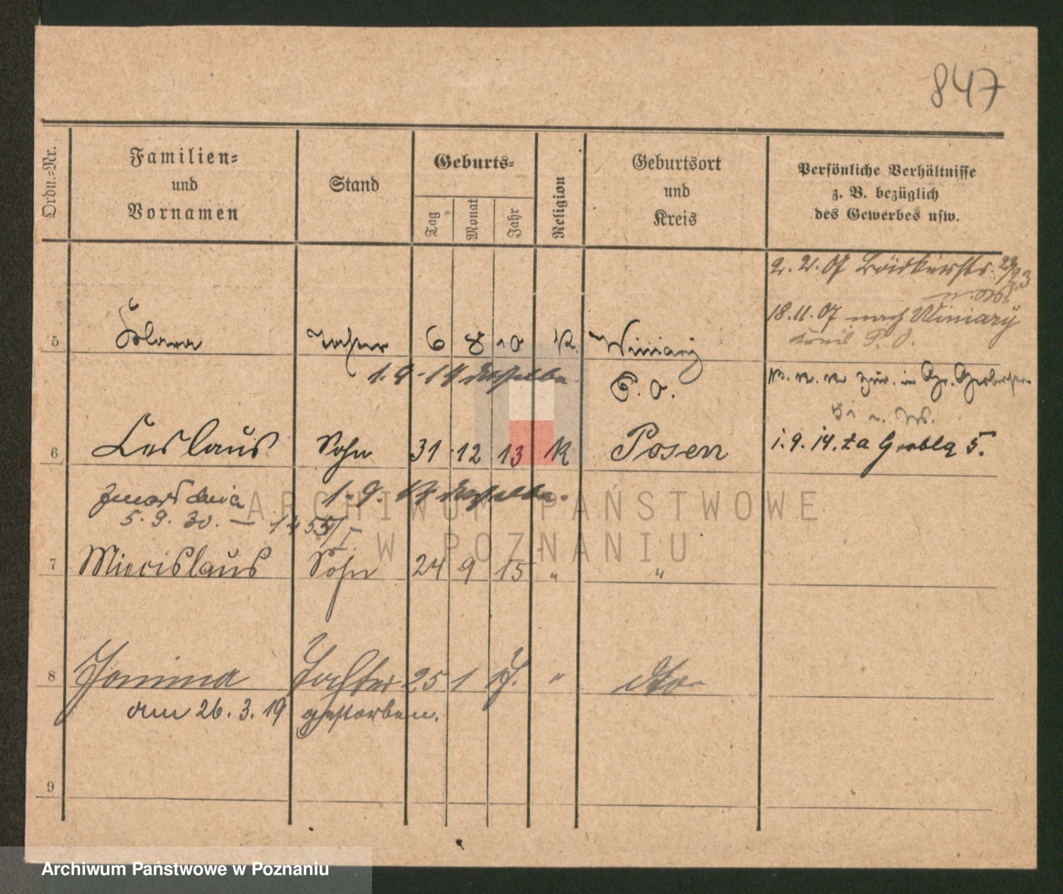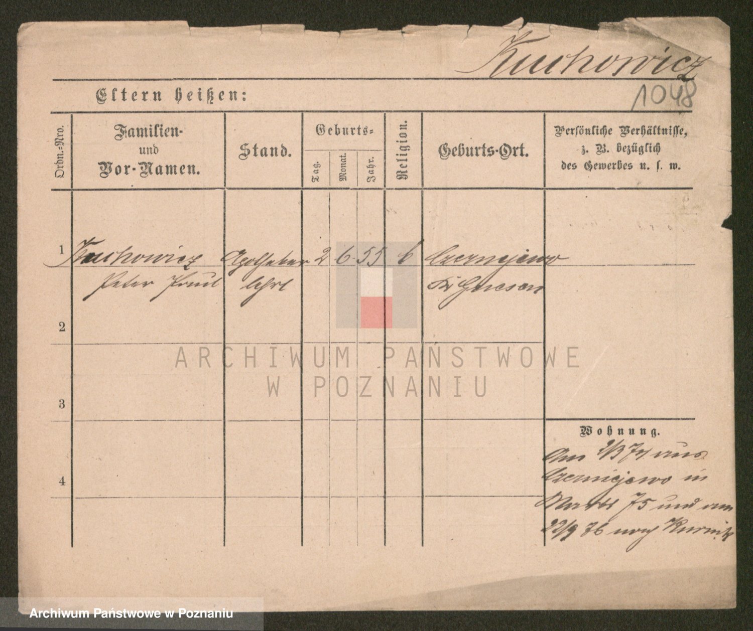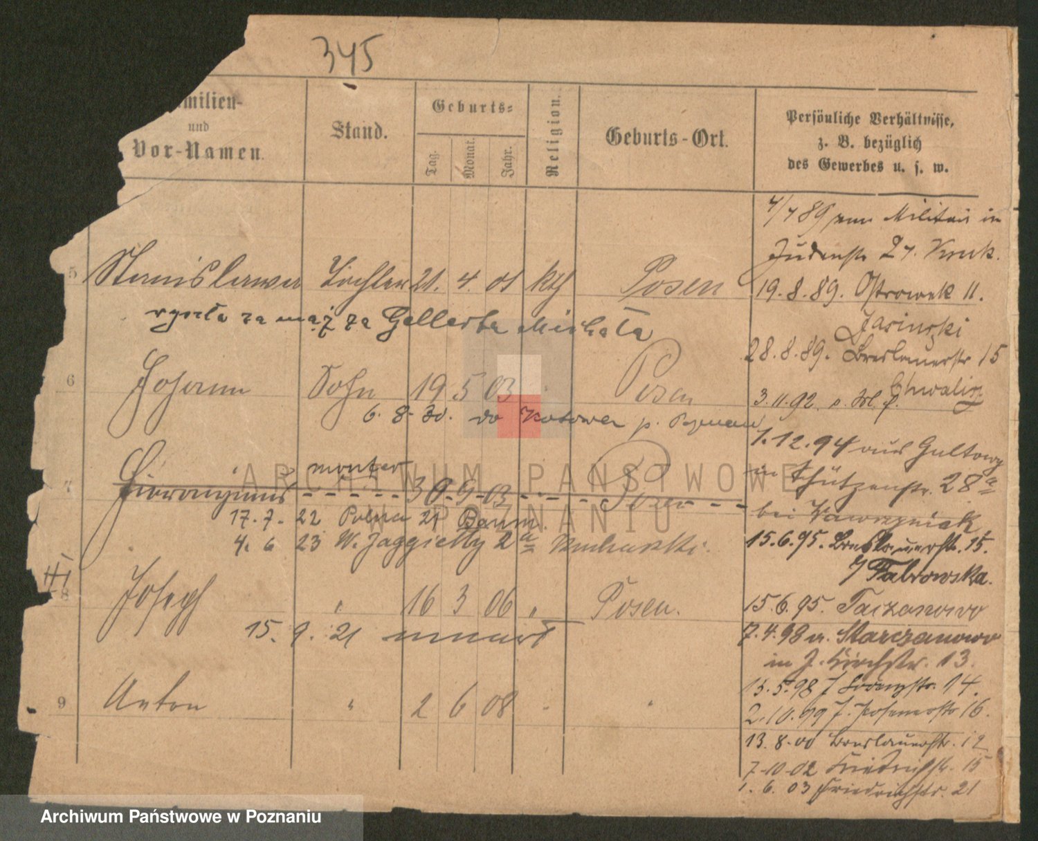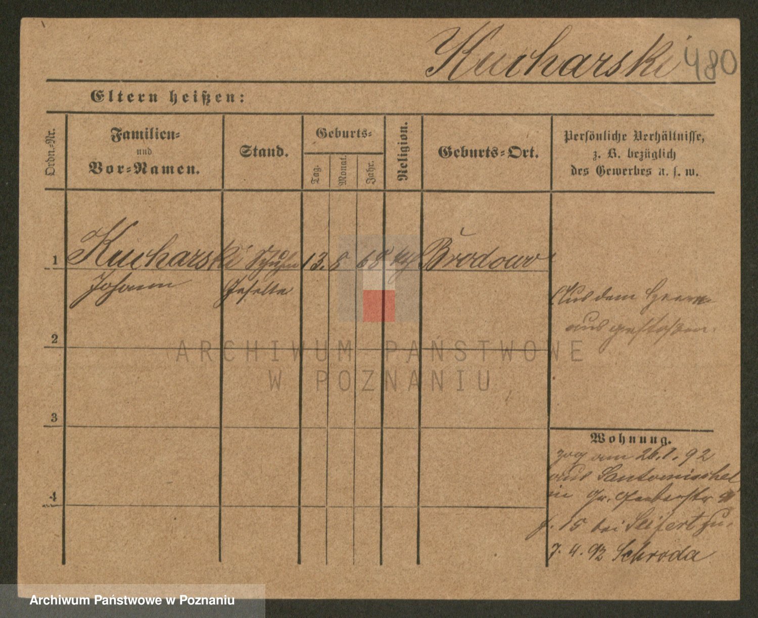 Podgląd karty osobowej dostępny jest po kliknięciu na nazwisko lub ikonkę karty. Można dokonywać powiększenia (ikony na górze) lub przechodzić między kolejnymi skanami (strzałki po bokach).