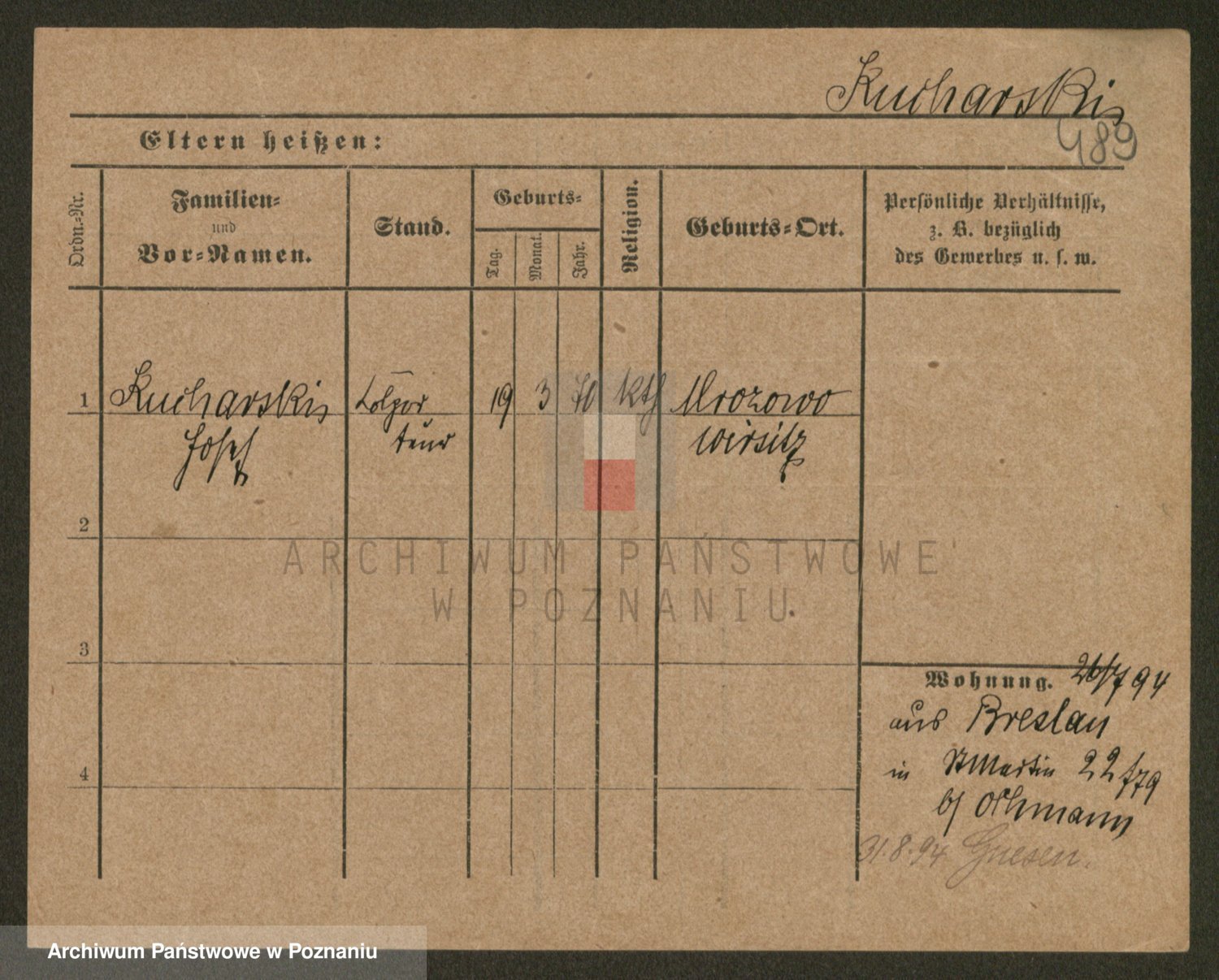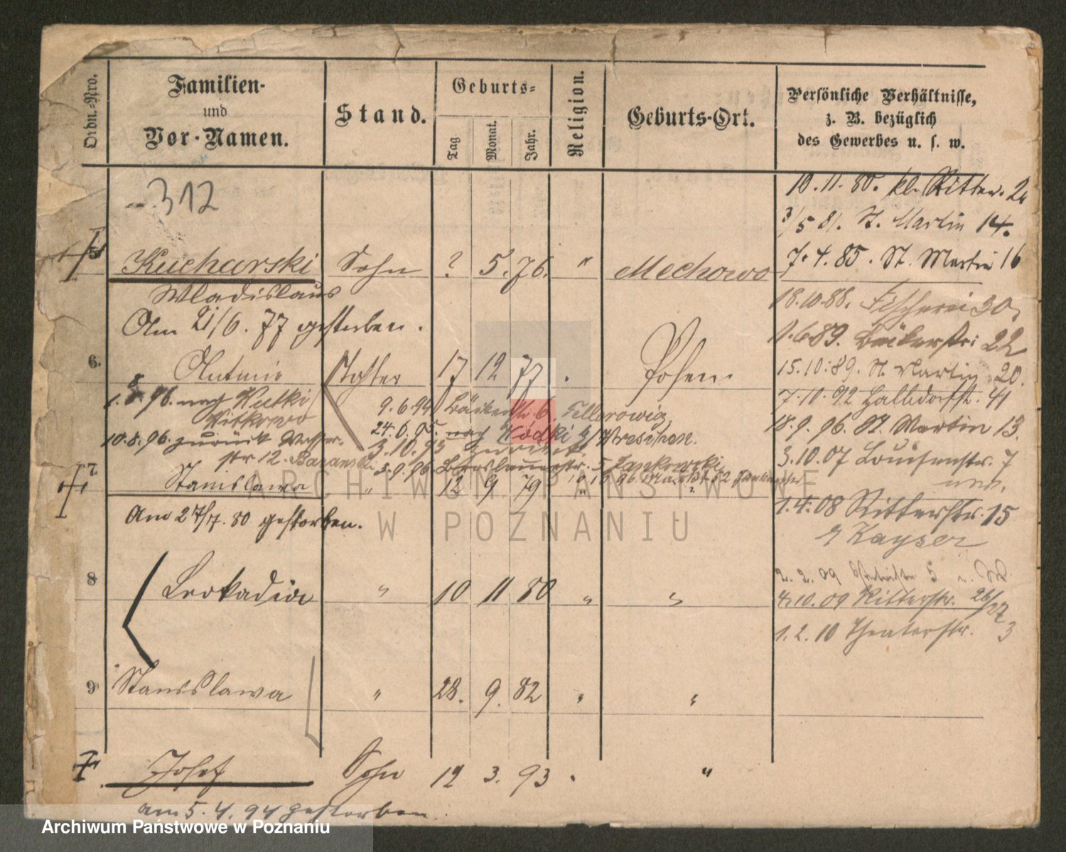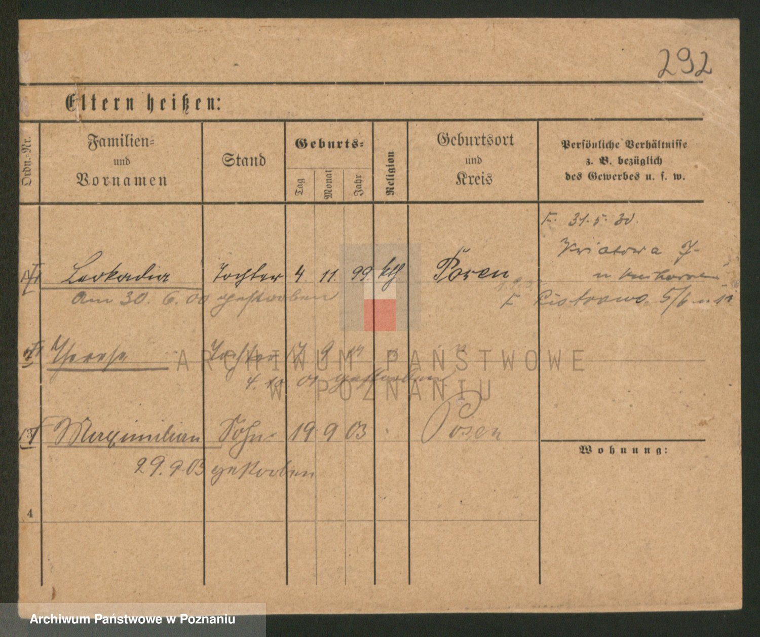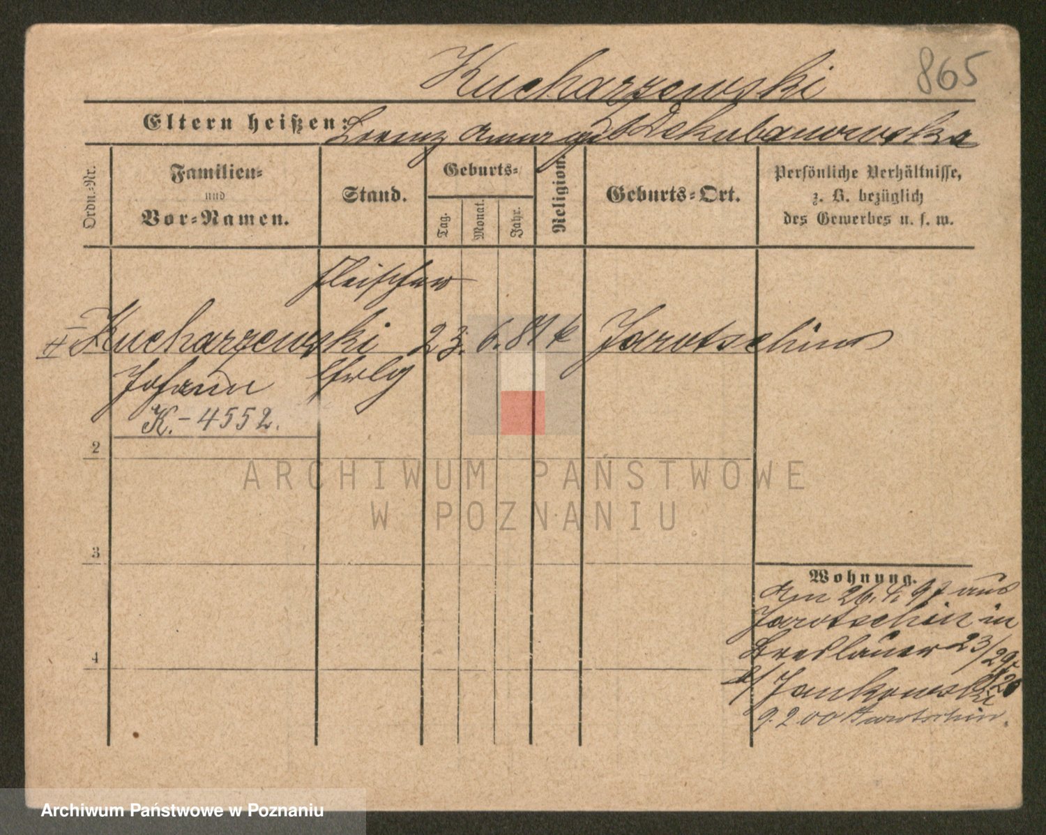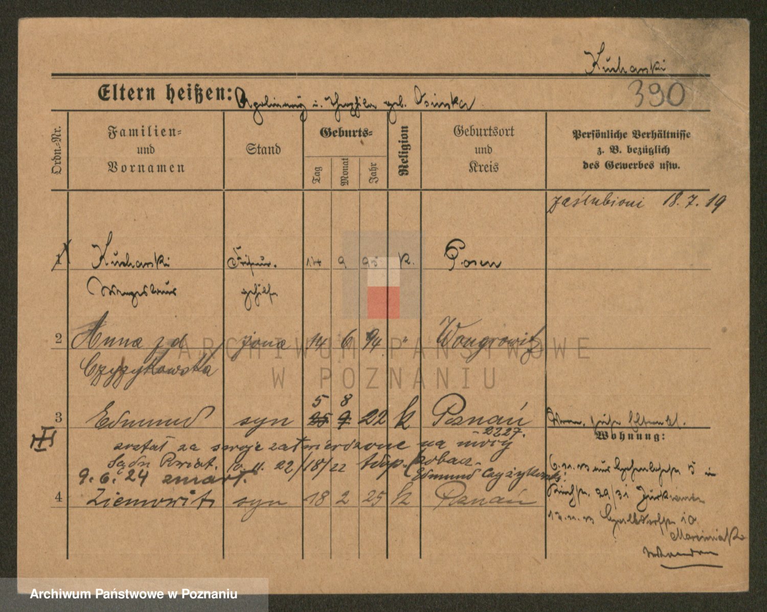 Podgląd karty osobowej dostępny jest po kliknięciu na nazwisko lub ikonkę karty. Można dokonywać powiększenia (ikony na górze) lub przechodzić między kolejnymi skanami (strzałki po bokach).