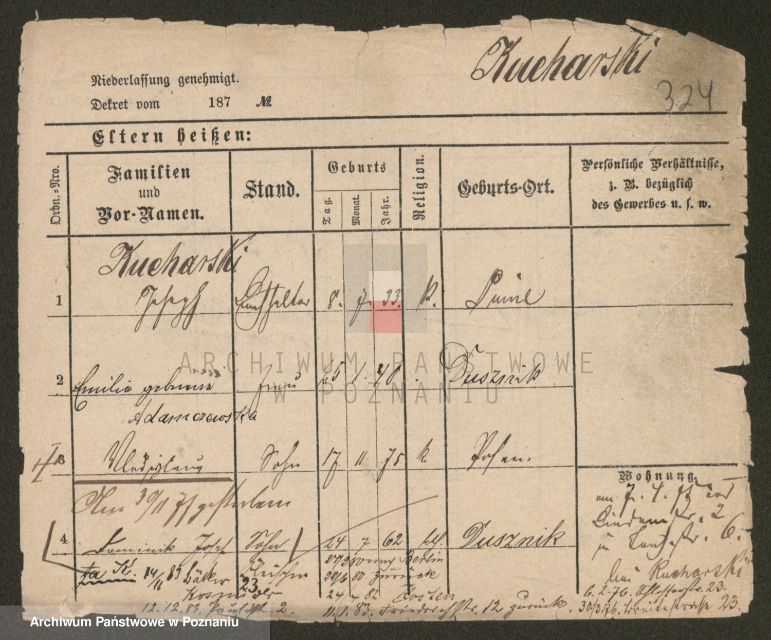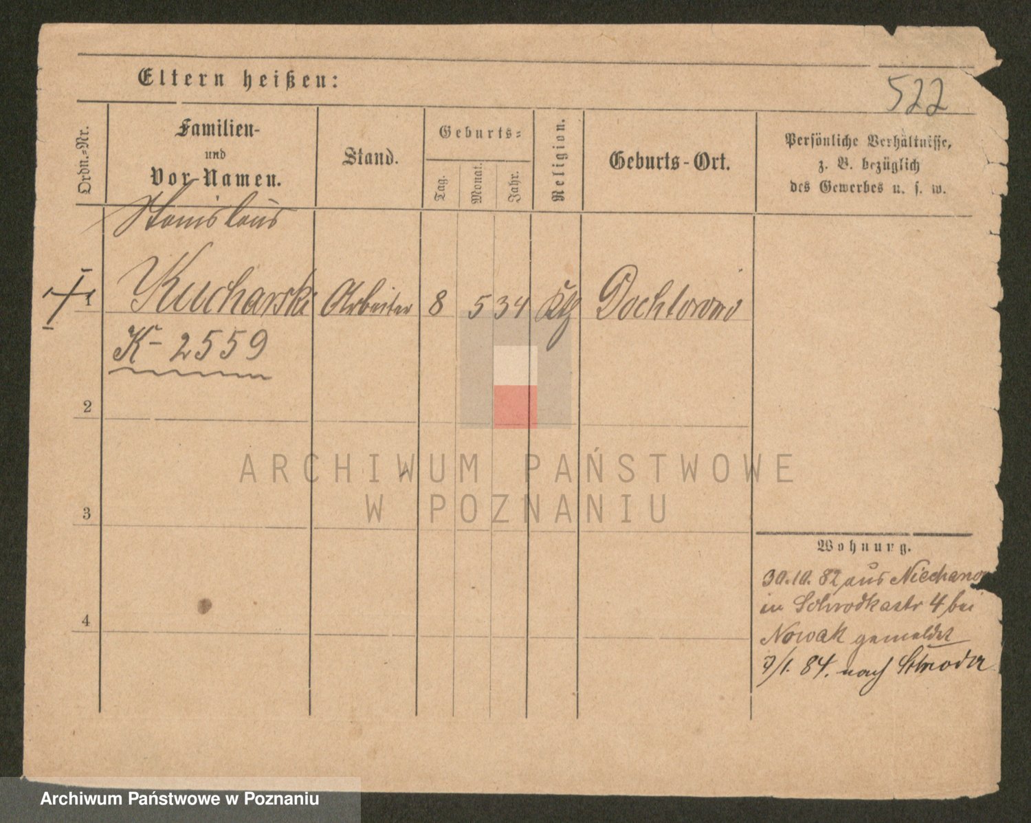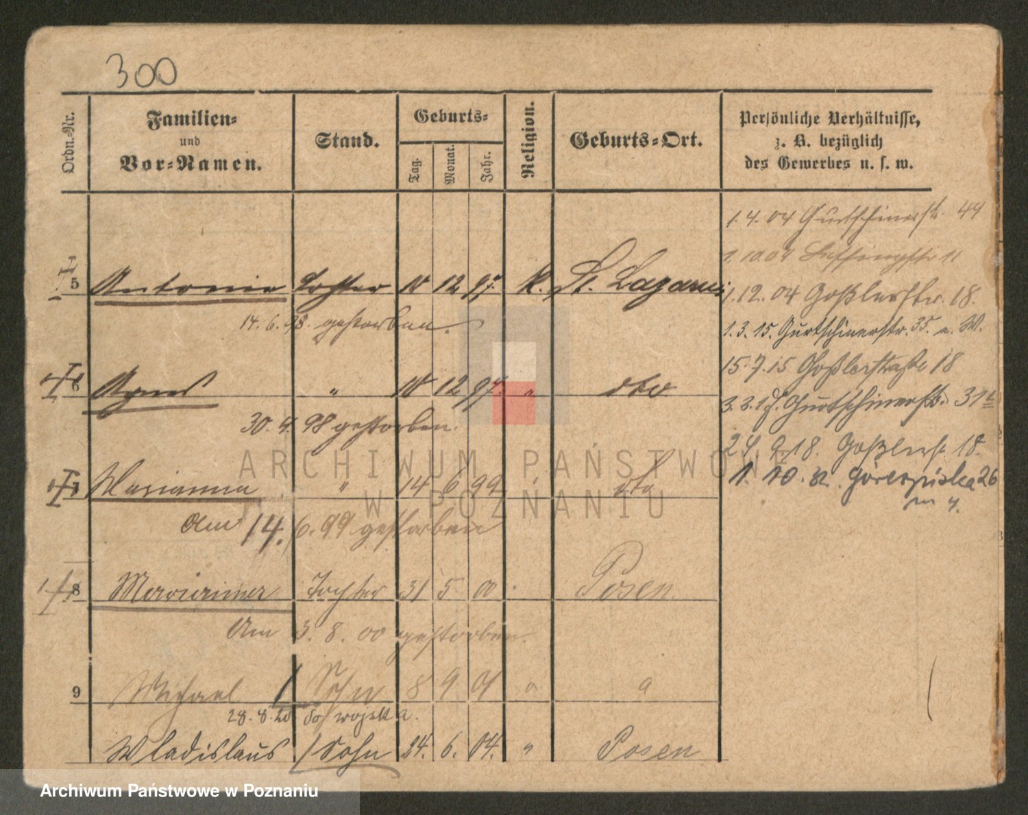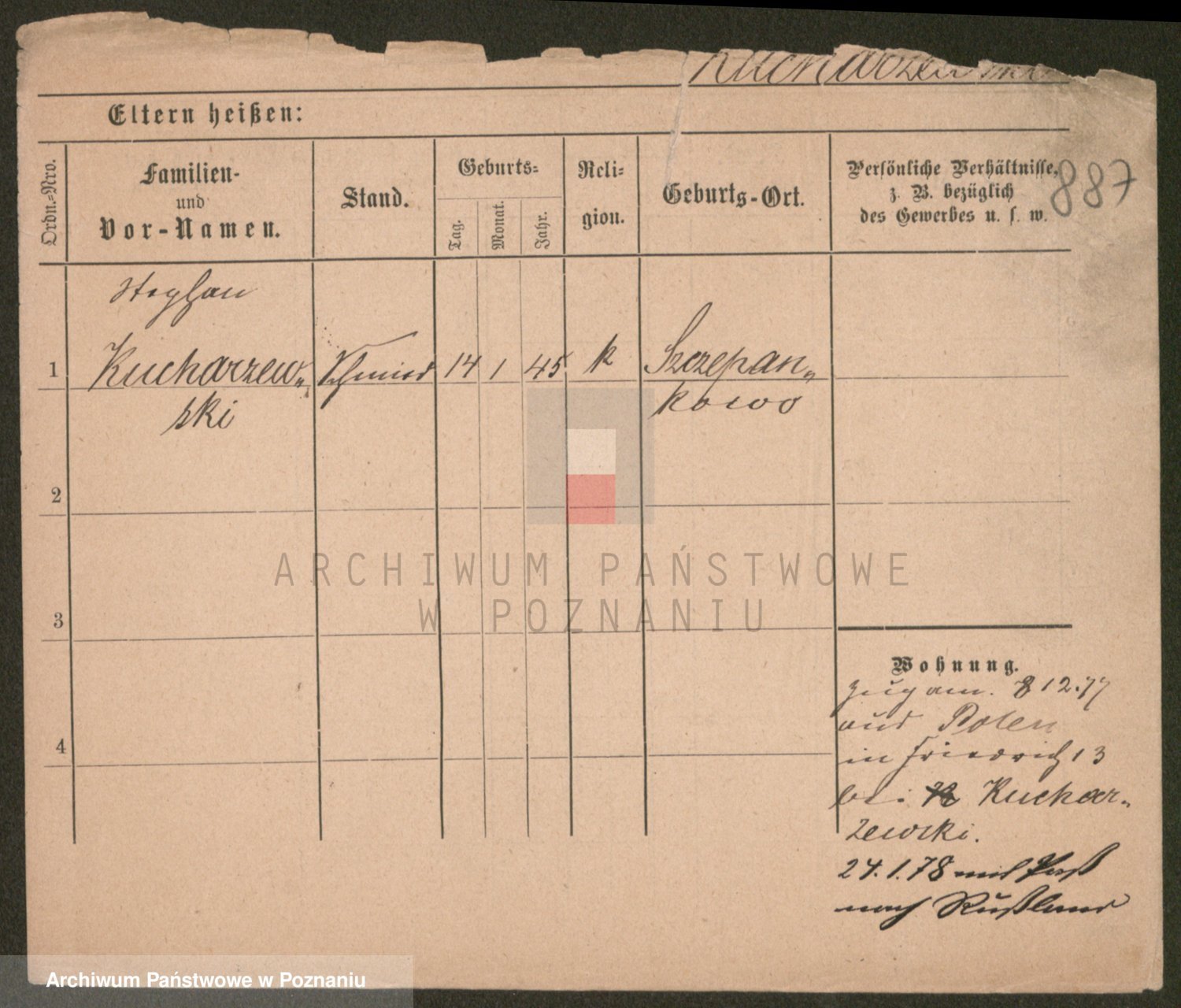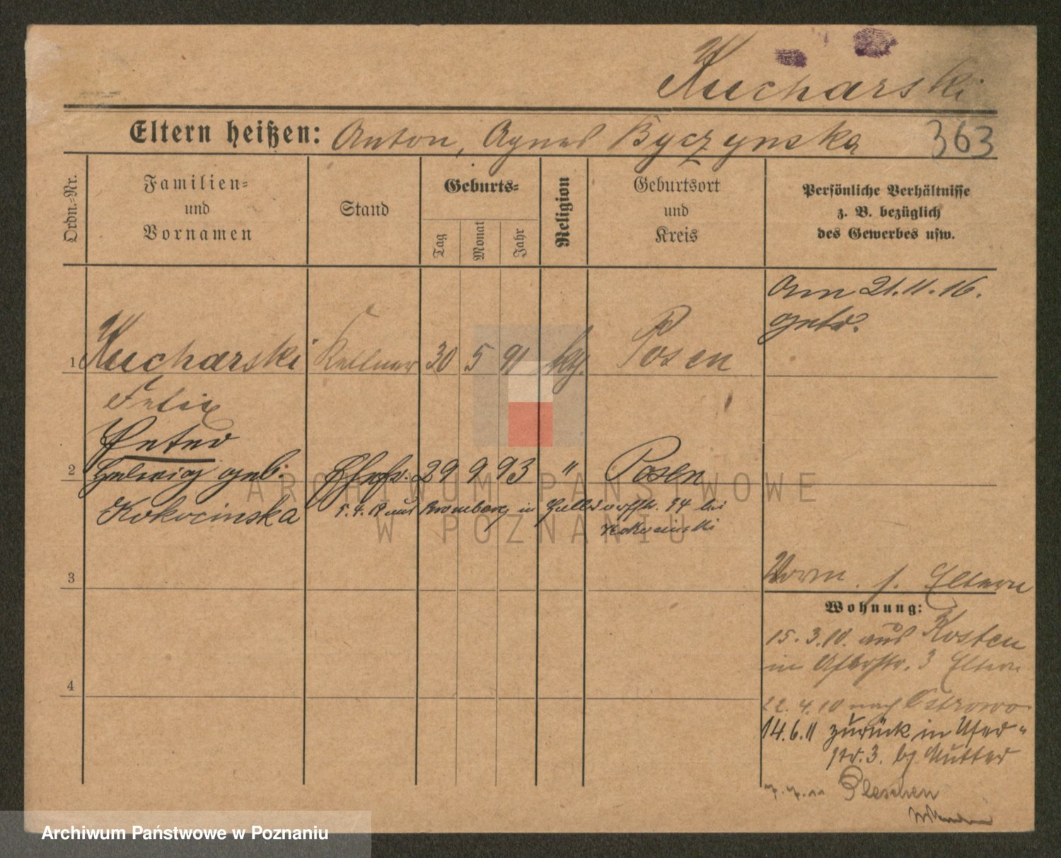 Podgląd karty osobowej dostępny jest po kliknięciu na nazwisko lub ikonkę karty. Można dokonywać powiększenia (ikony na górze) lub przechodzić między kolejnymi skanami (strzałki po bokach).
