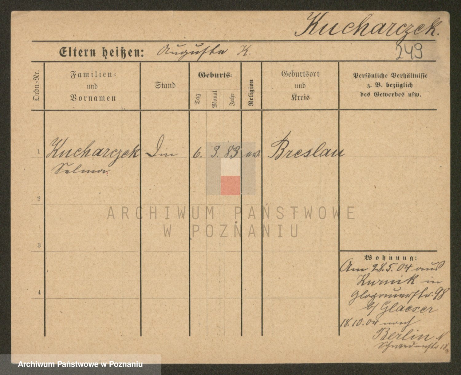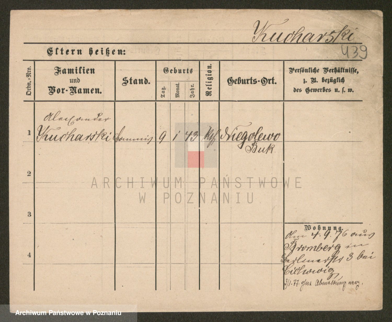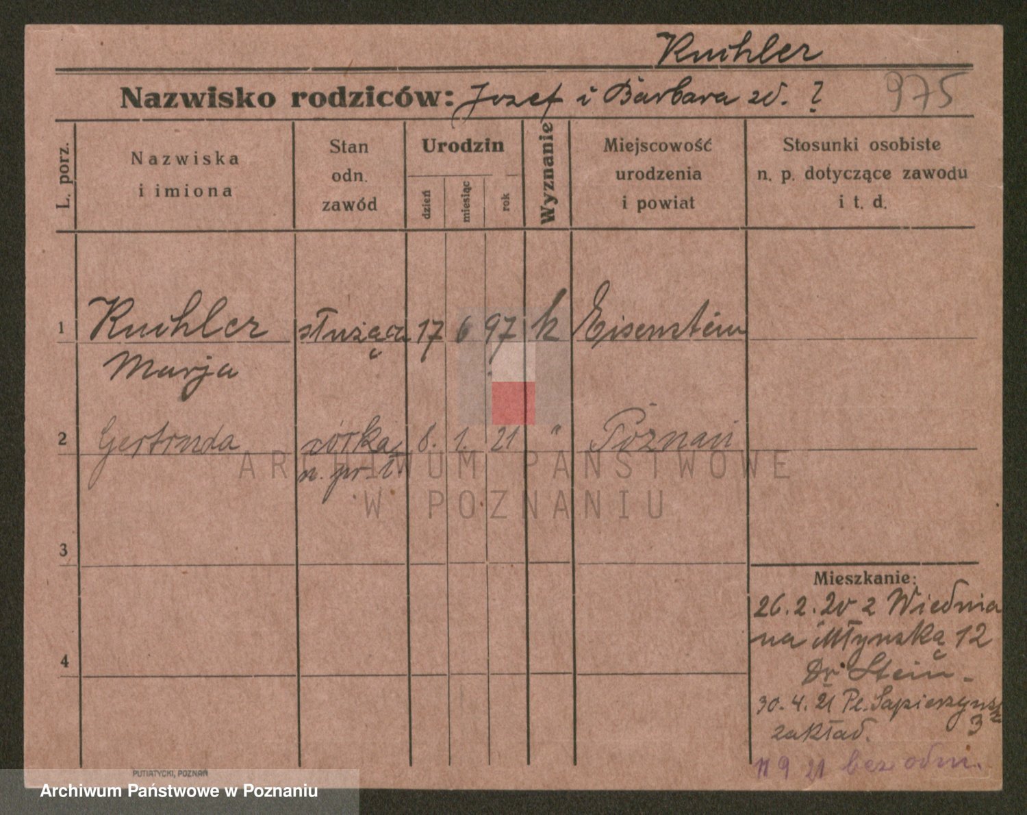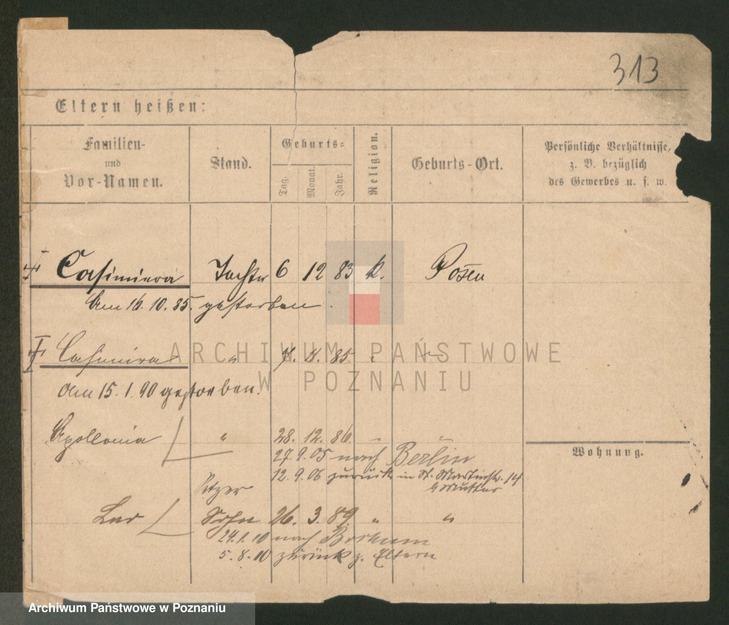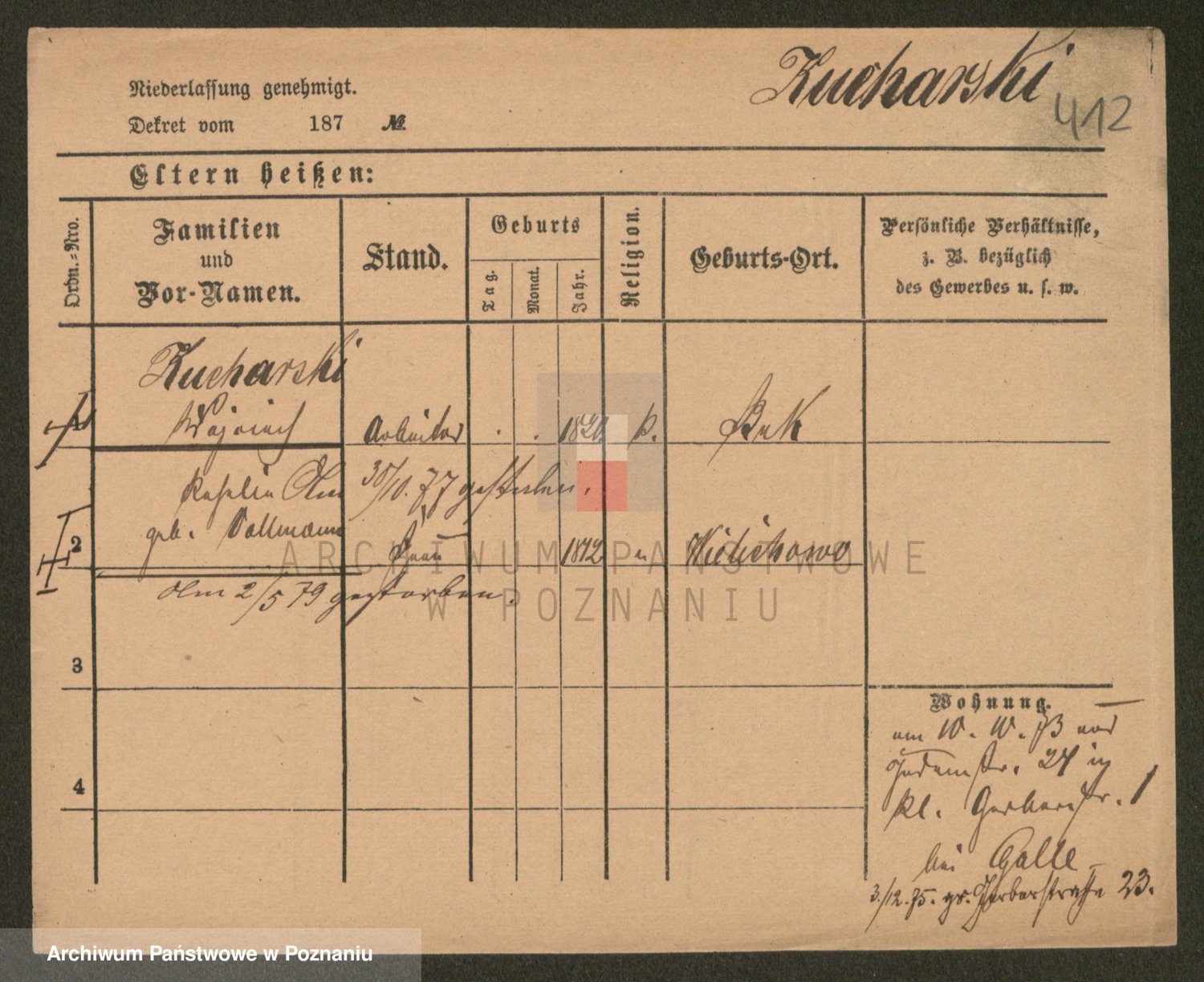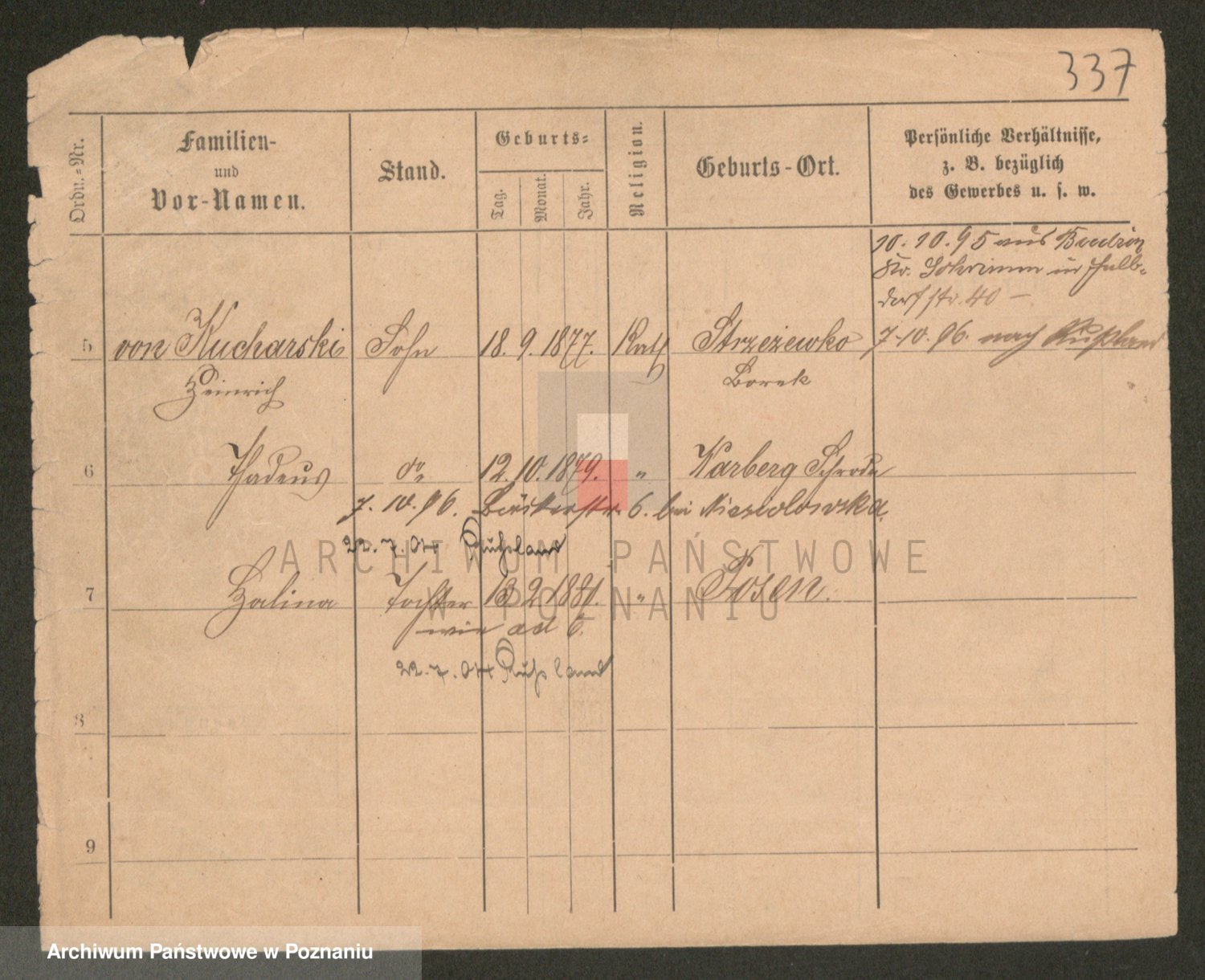 Podgląd karty osobowej dostępny jest po kliknięciu na nazwisko lub ikonkę karty. Można dokonywać powiększenia (ikony na górze) lub przechodzić między kolejnymi skanami (strzałki po bokach).