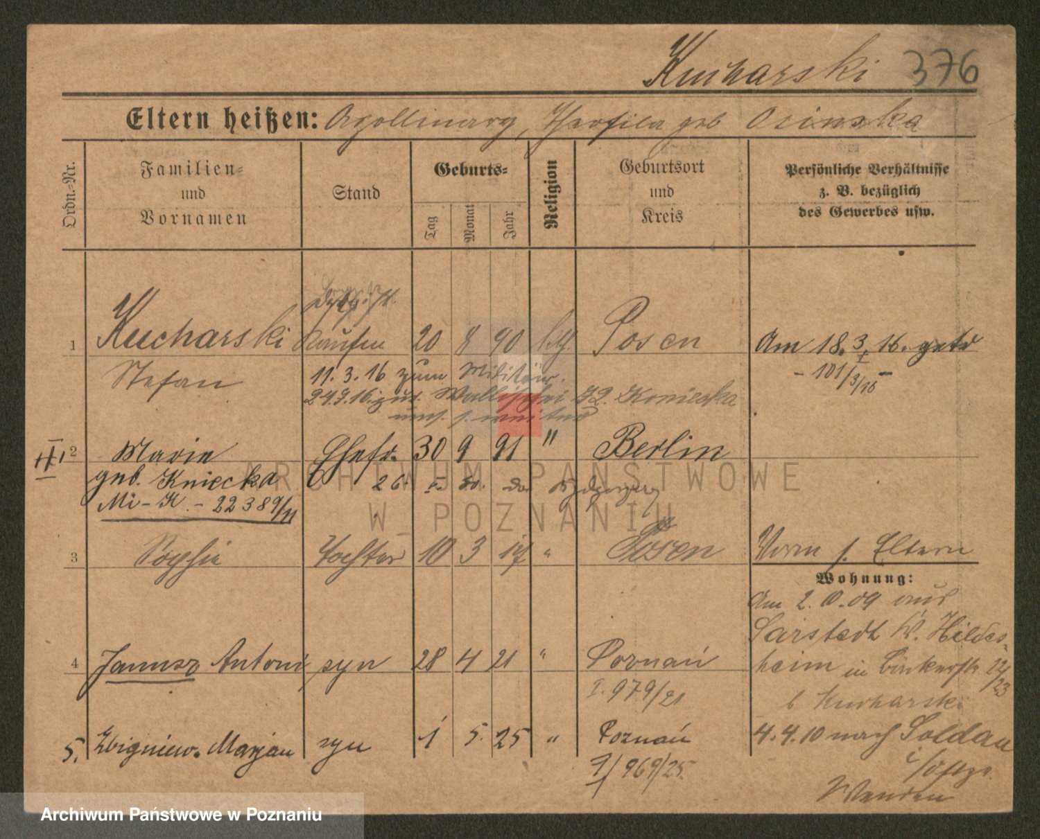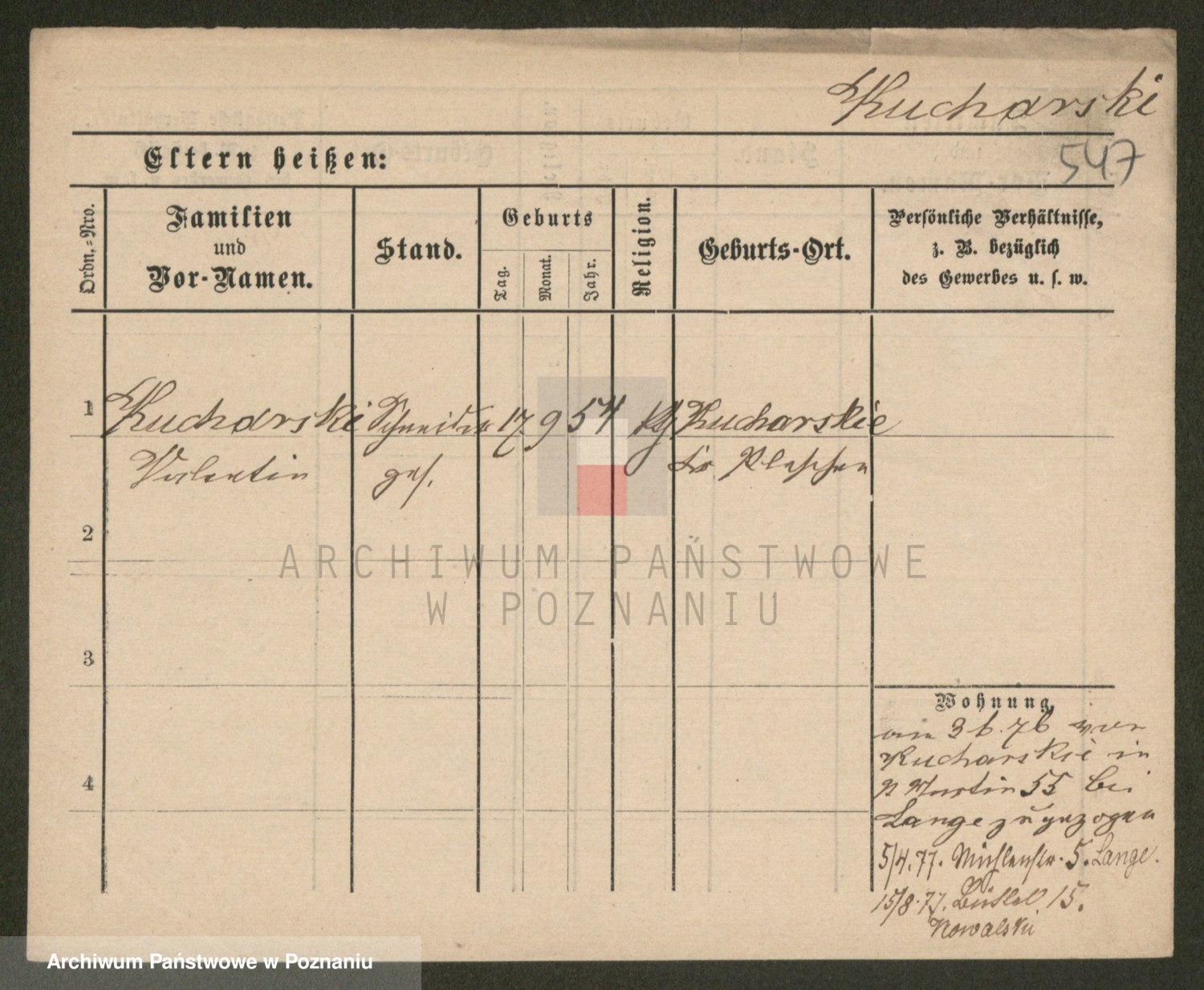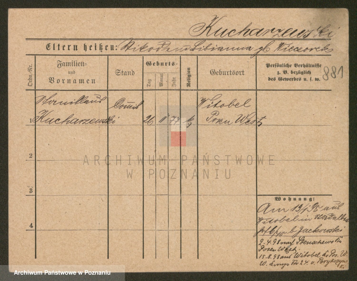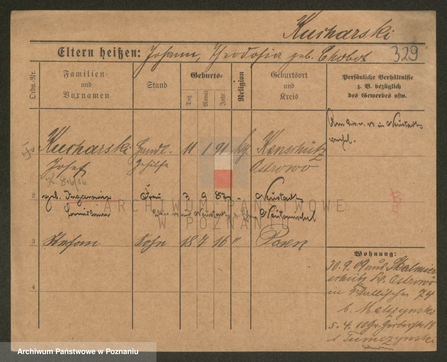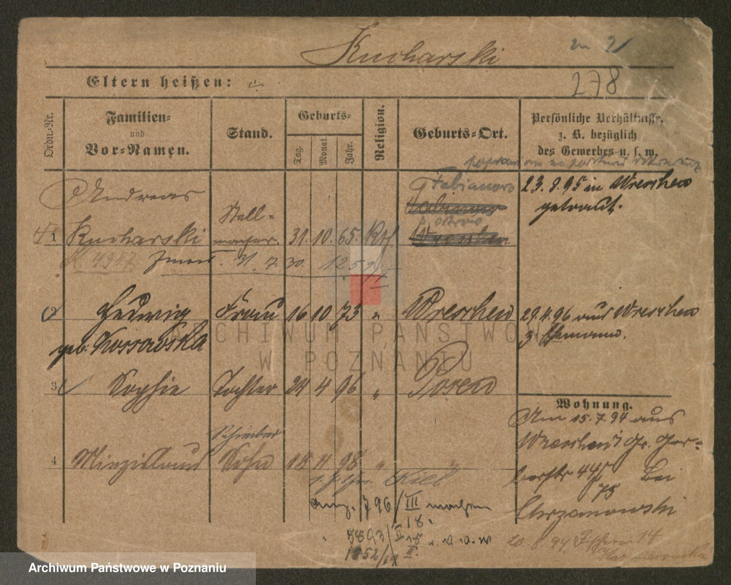Podgląd karty osobowej dostępny jest po kliknięciu na nazwisko lub ikonkę karty. Można dokonywać powiększenia (ikony na górze) lub przechodzić między kolejnymi skanami (strzałki po bokach).