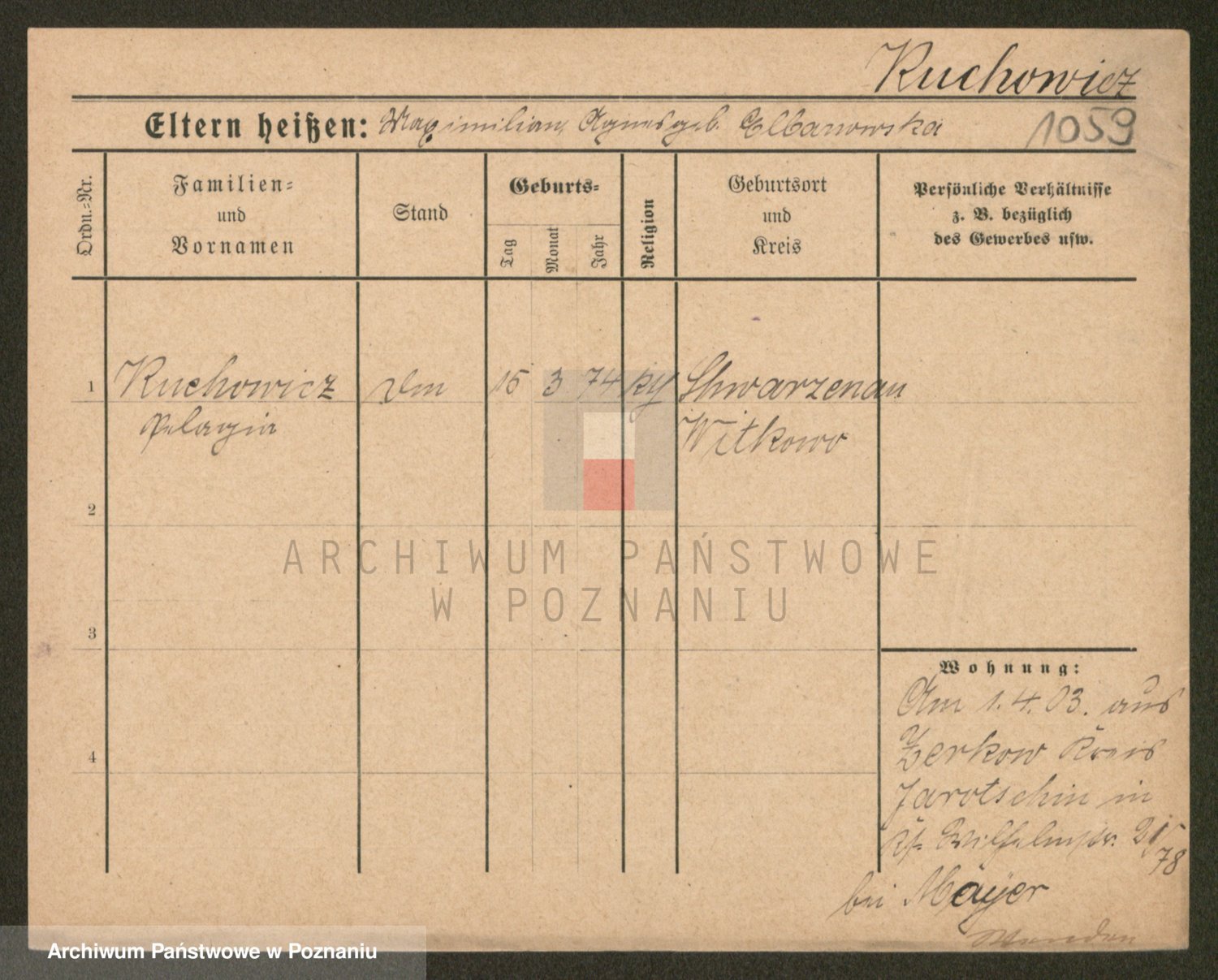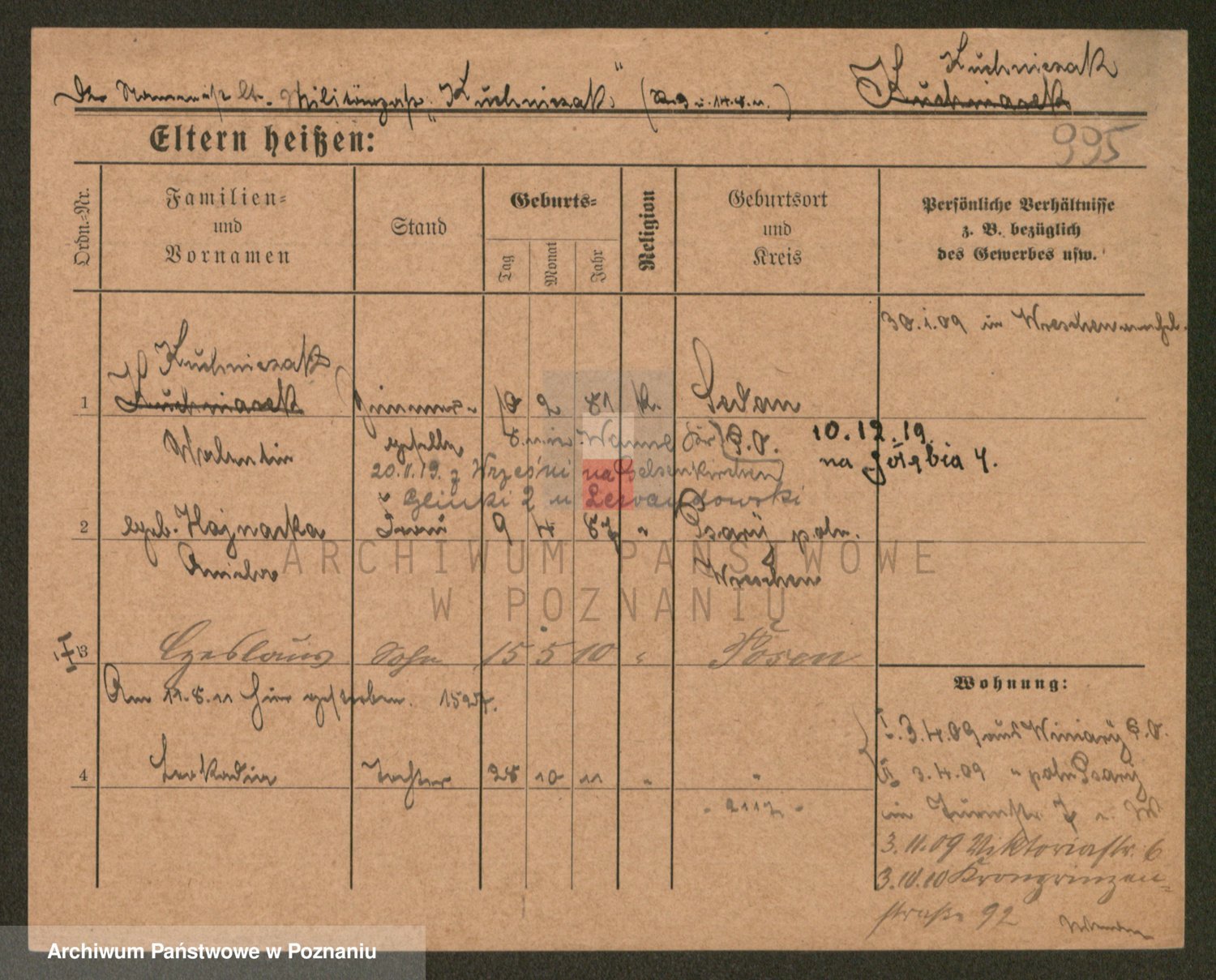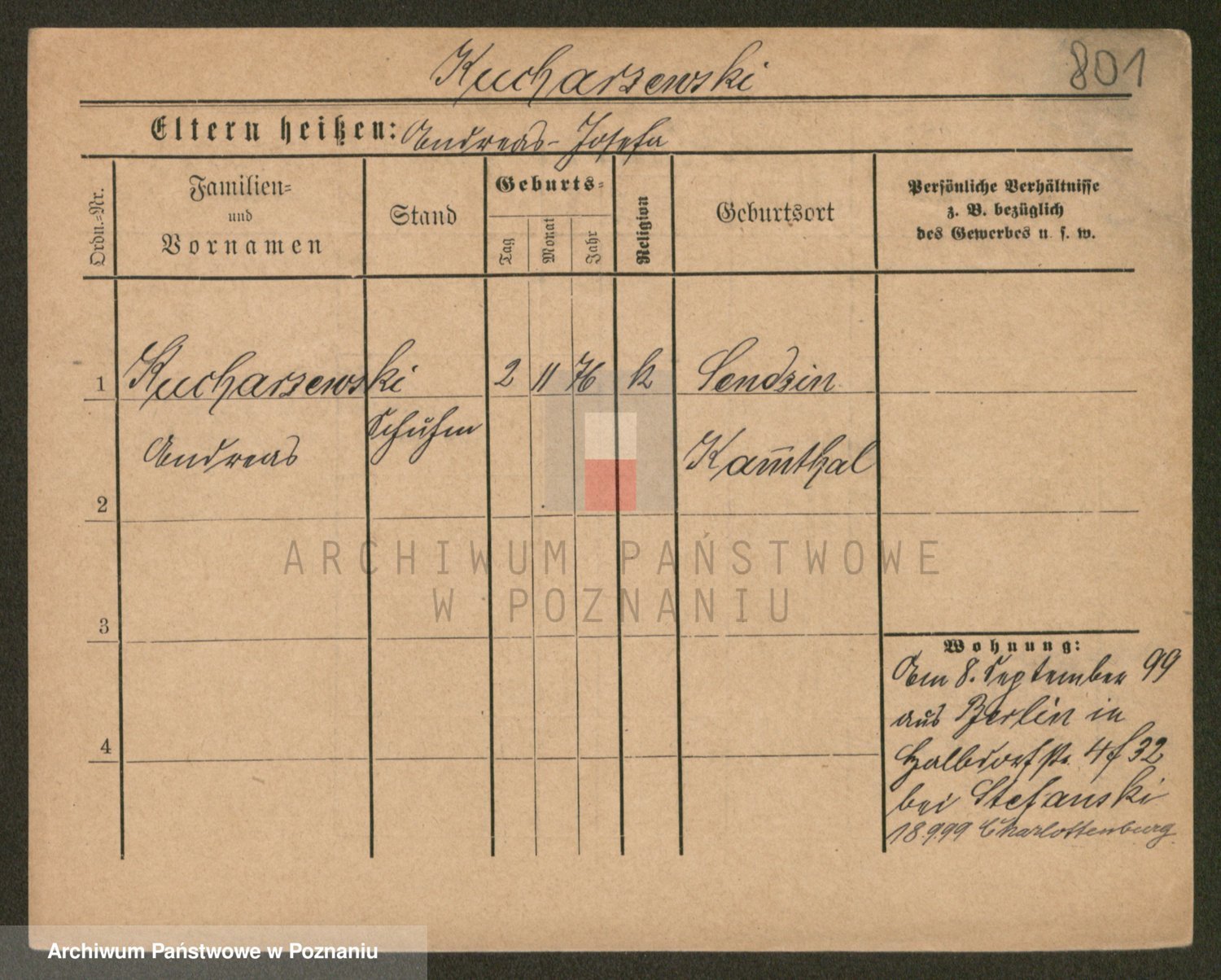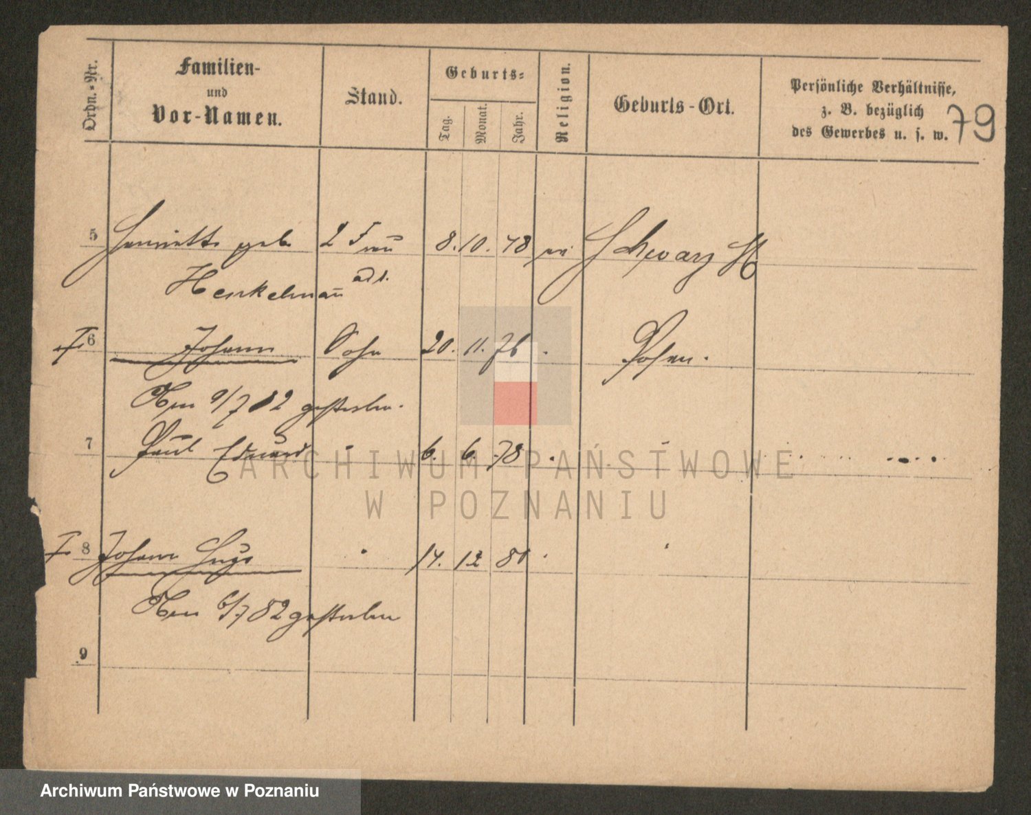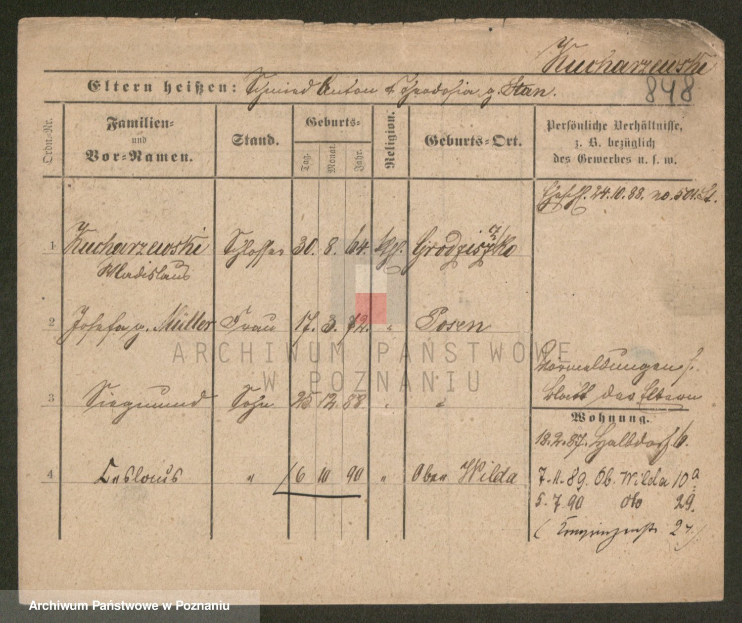 Podgląd karty osobowej dostępny jest po kliknięciu na nazwisko lub ikonkę karty. Można dokonywać powiększenia (ikony na górze) lub przechodzić między kolejnymi skanami (strzałki po bokach).