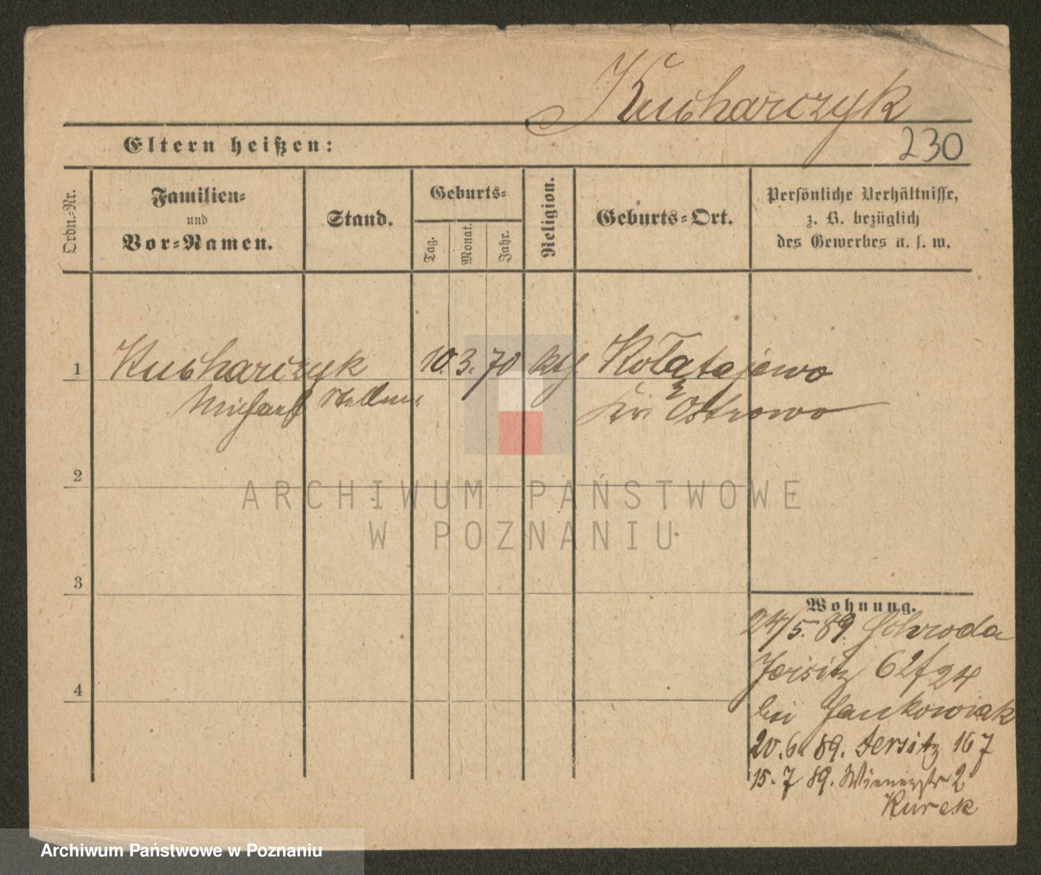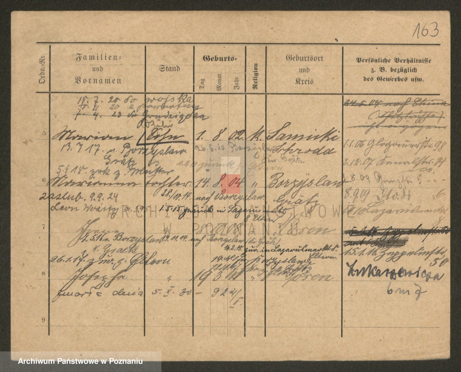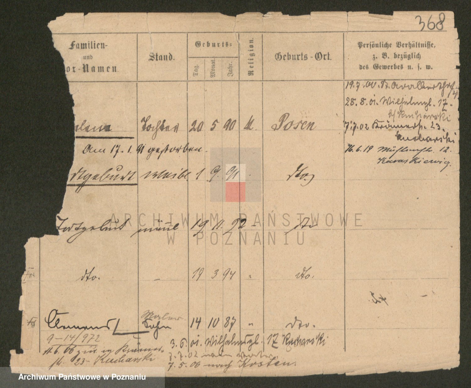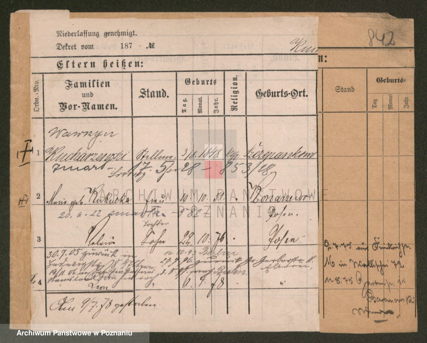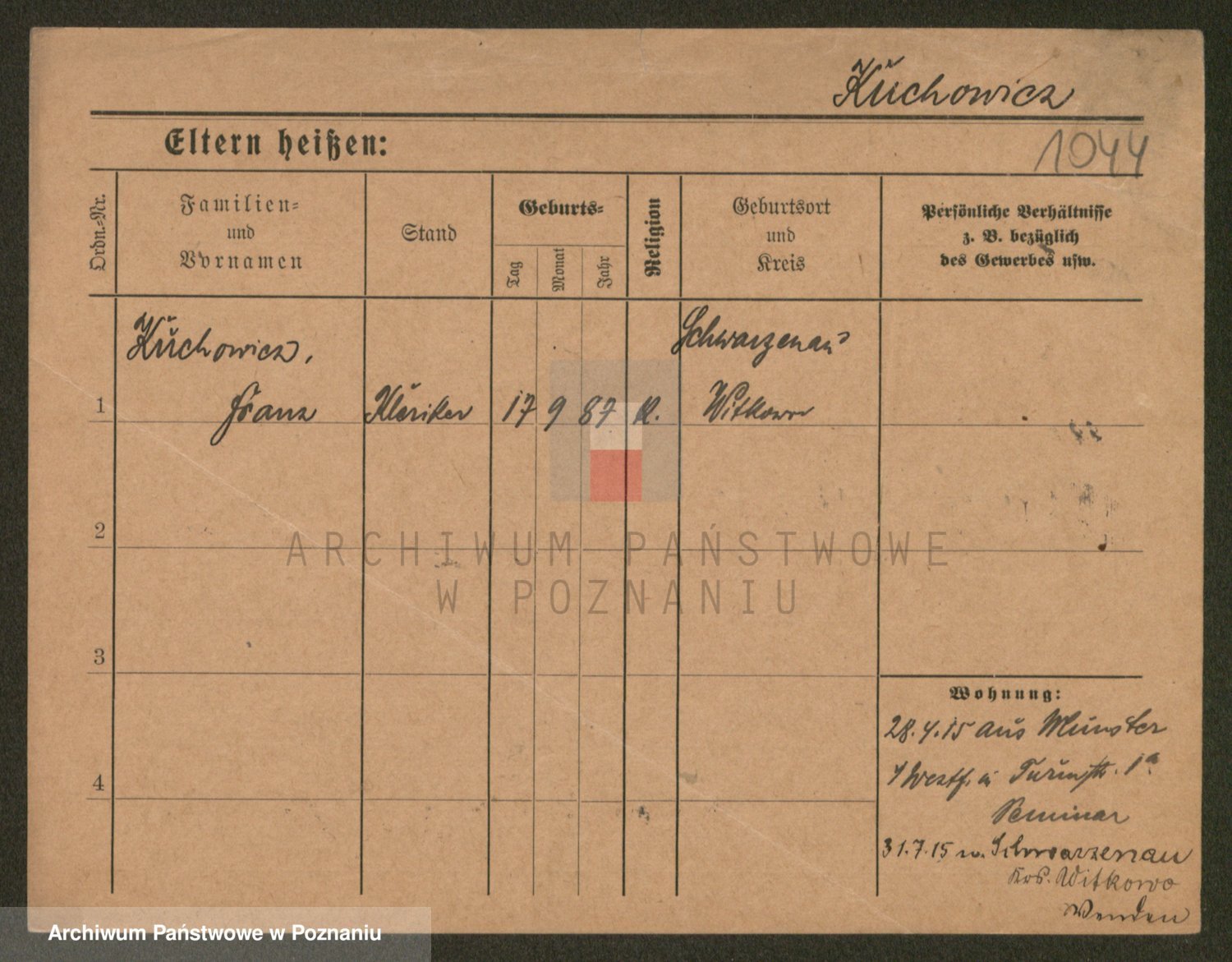 Podgląd karty osobowej dostępny jest po kliknięciu na nazwisko lub ikonkę karty. Można dokonywać powiększenia (ikony na górze) lub przechodzić między kolejnymi skanami (strzałki po bokach).