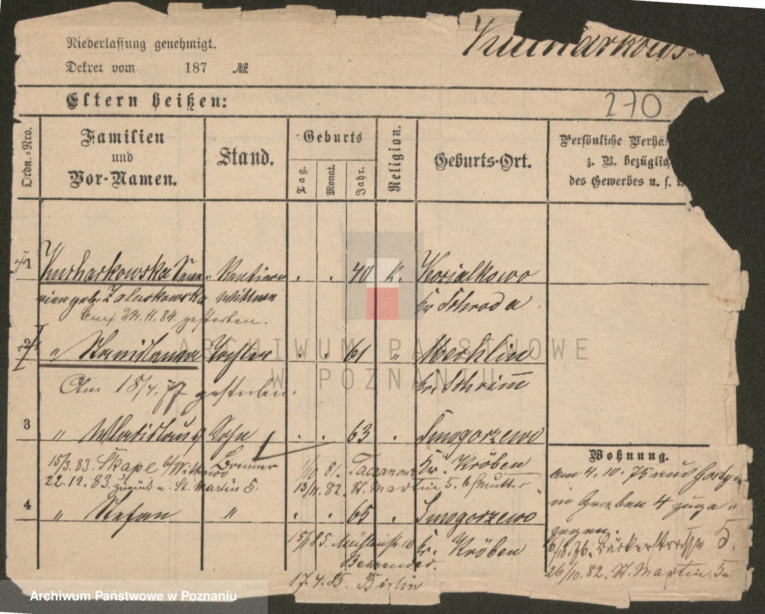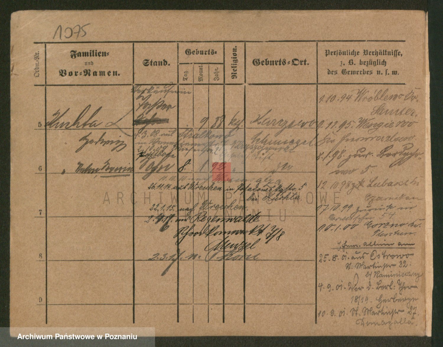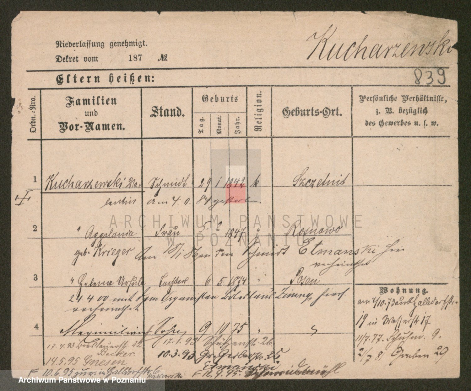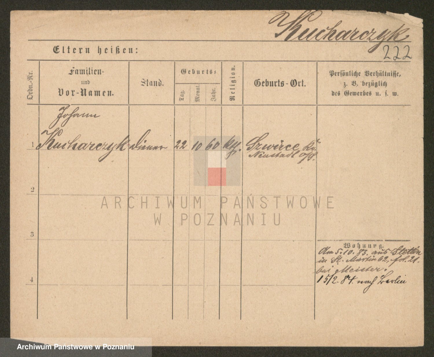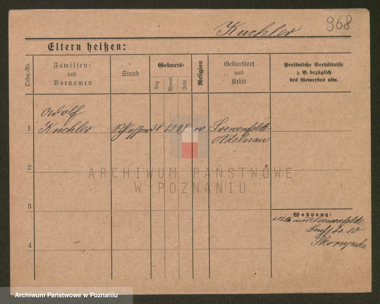 Podgląd karty osobowej dostępny jest po kliknięciu na nazwisko lub ikonkę karty. Można dokonywać powiększenia (ikony na górze) lub przechodzić między kolejnymi skanami (strzałki po bokach).